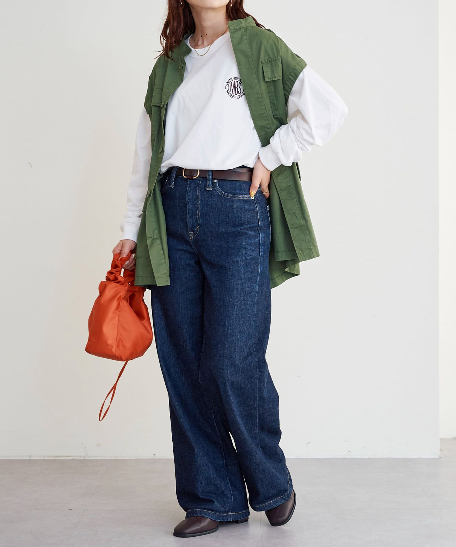 レディースは定番のタックインスタイル、ロングスカートやキャミワンピース合わせにも◎