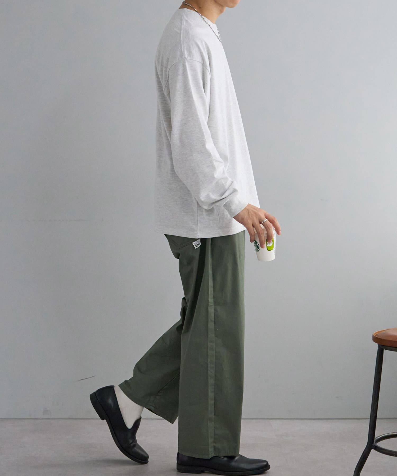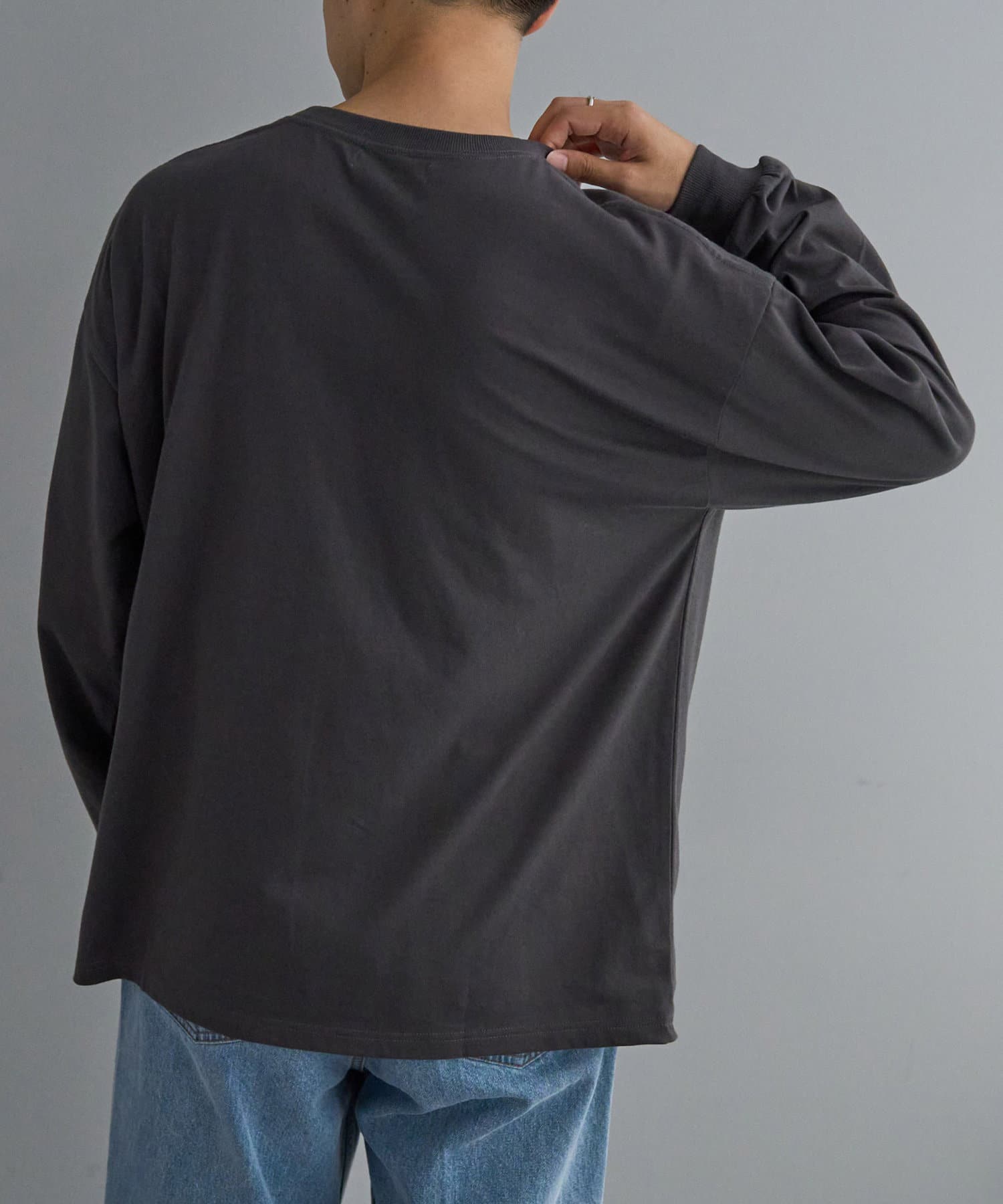 レディースはビッグシルエットで、メンズは程よくゆったりとしたサイジングで着用ができ、一枚でも、季節の変わり目にインナーとしても男女共にデイリーユースの着回しに幅広く万能です。