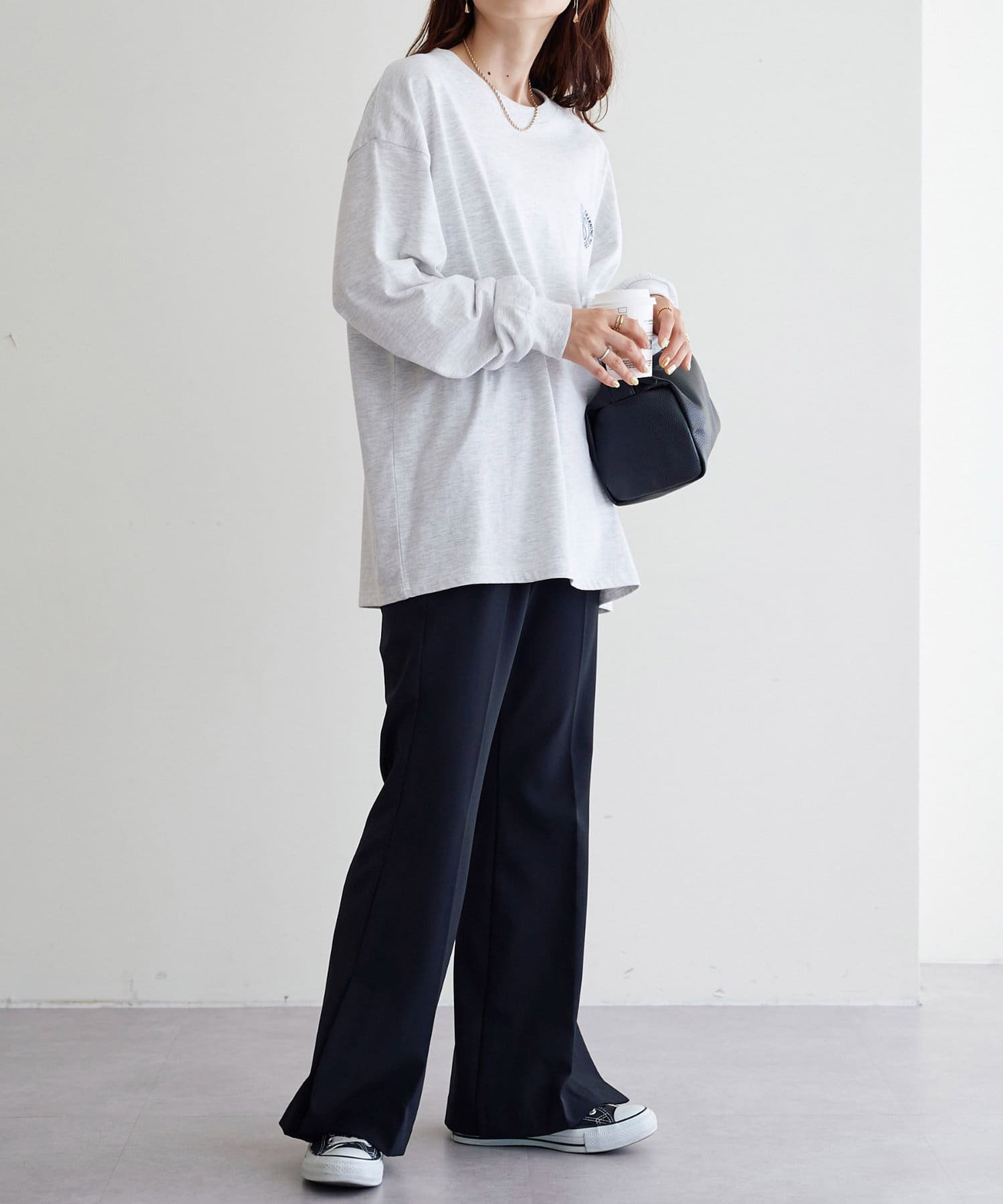 シンプルだからこそ使い勝手が良い、ワンポイント刺繍ロンTシャツ