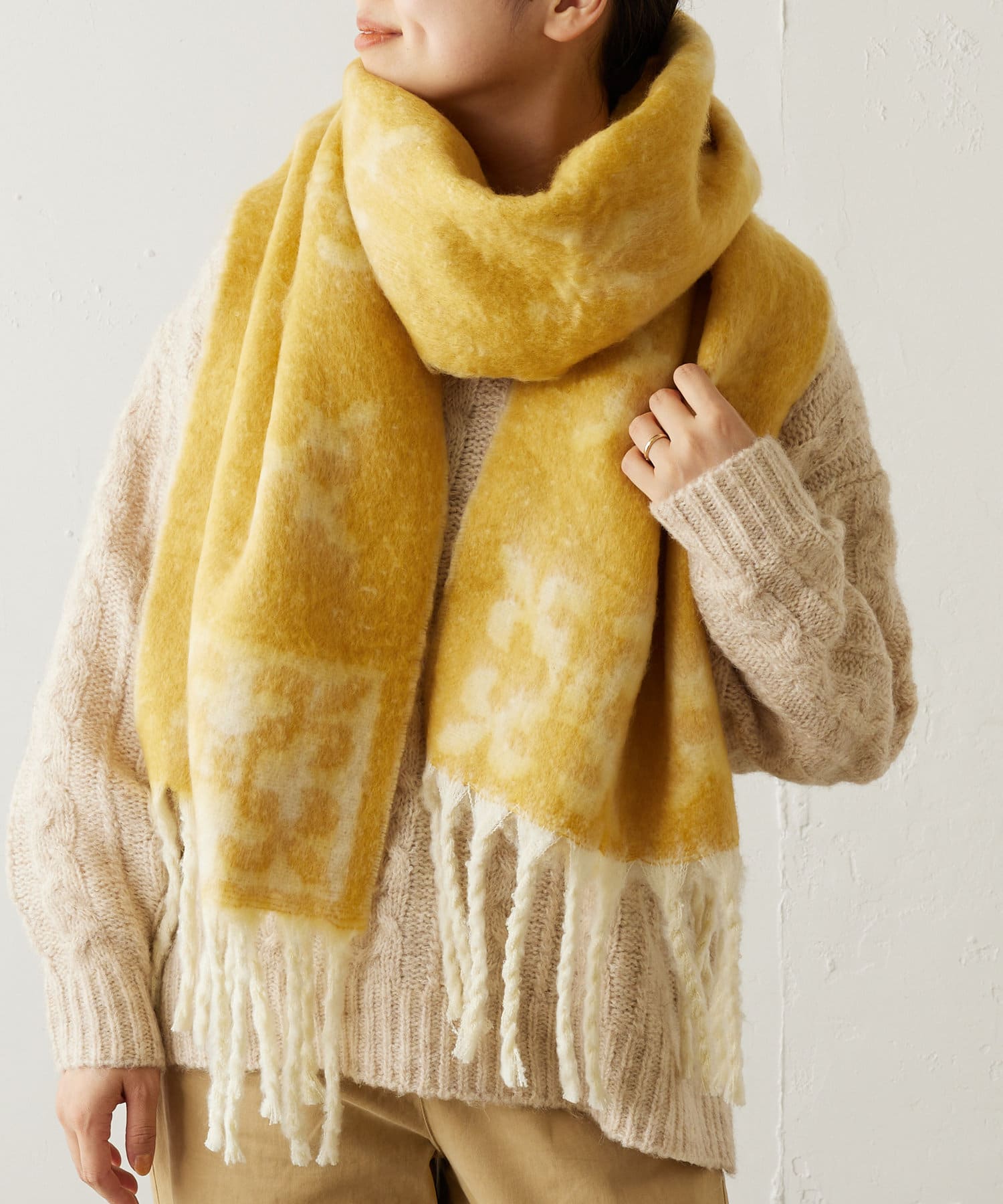 【Daily russet】モノグラム 太フリンジマフラー