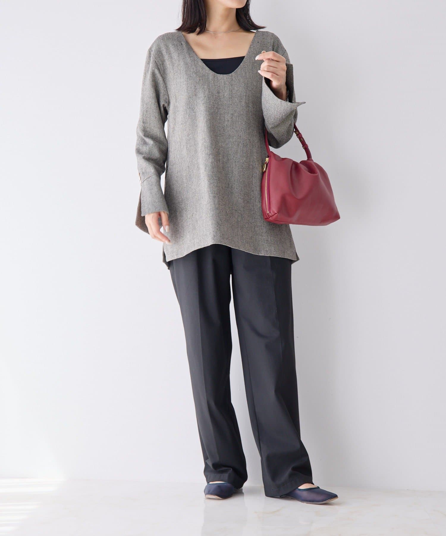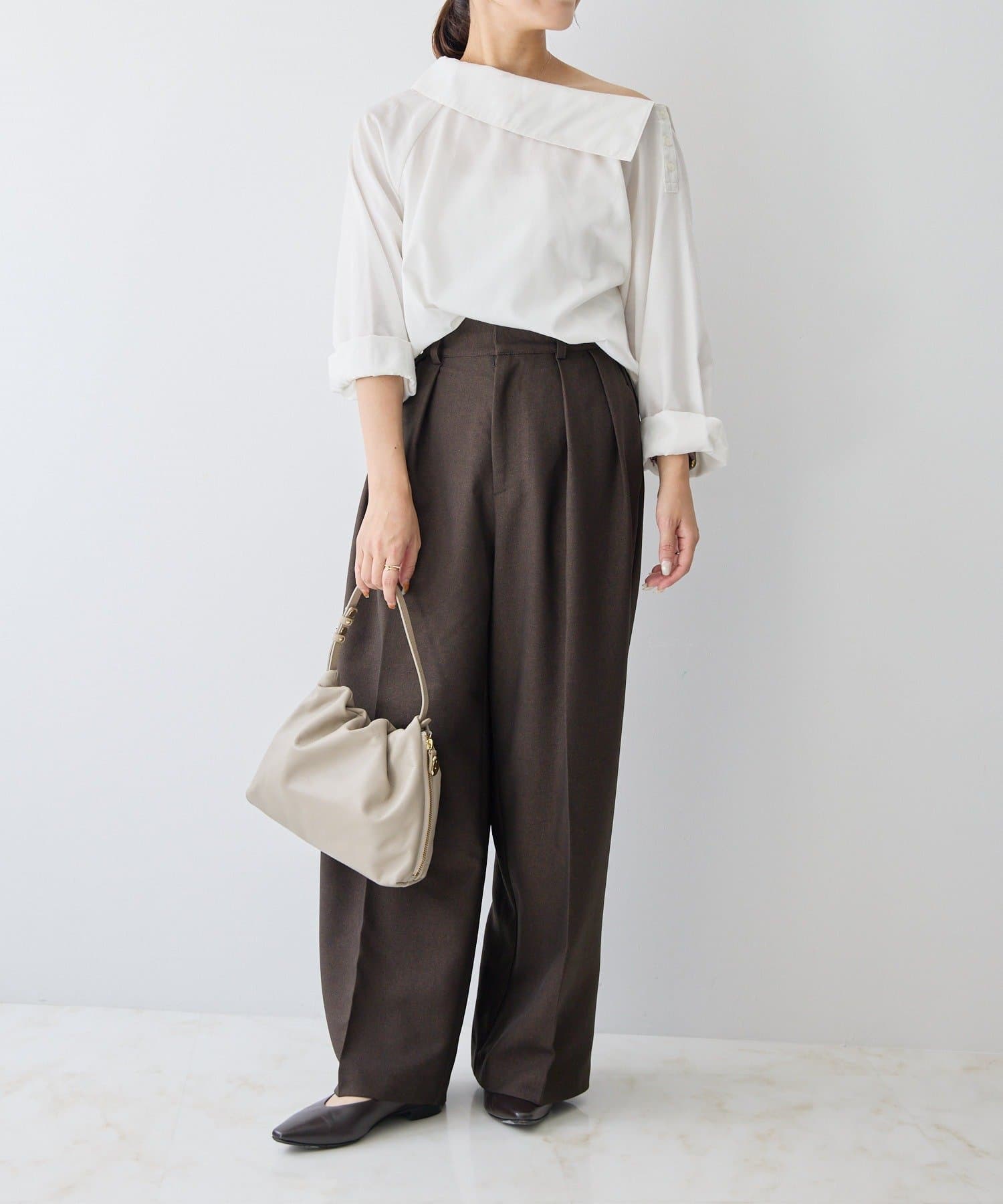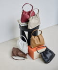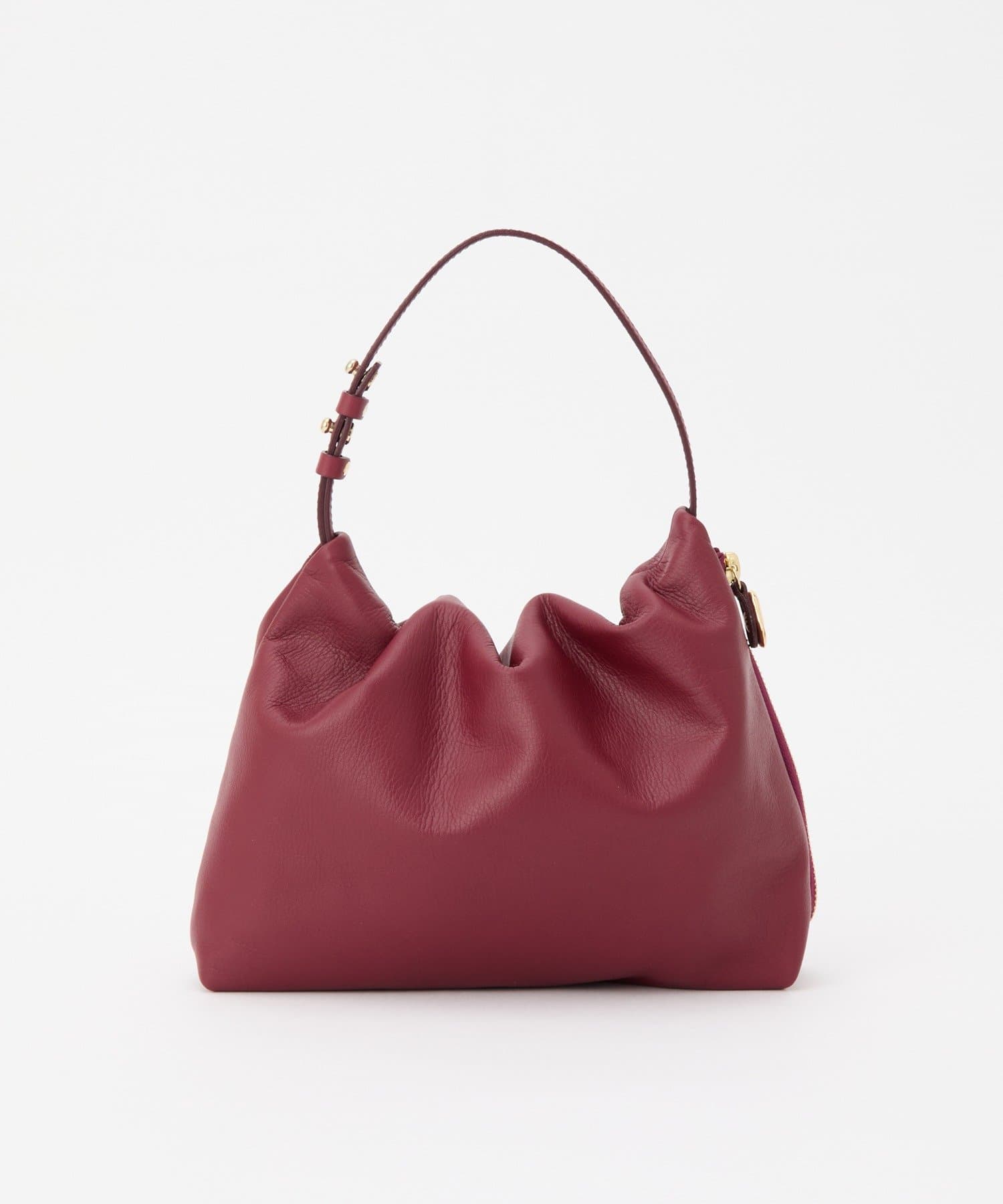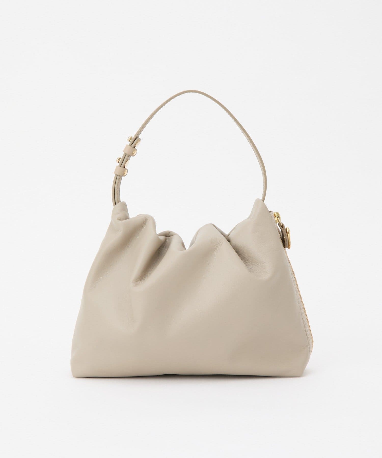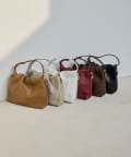 特徴的なバッグ上部のギャザーは荷物の量によって変化し、表情を楽しめるのがポイント。
