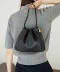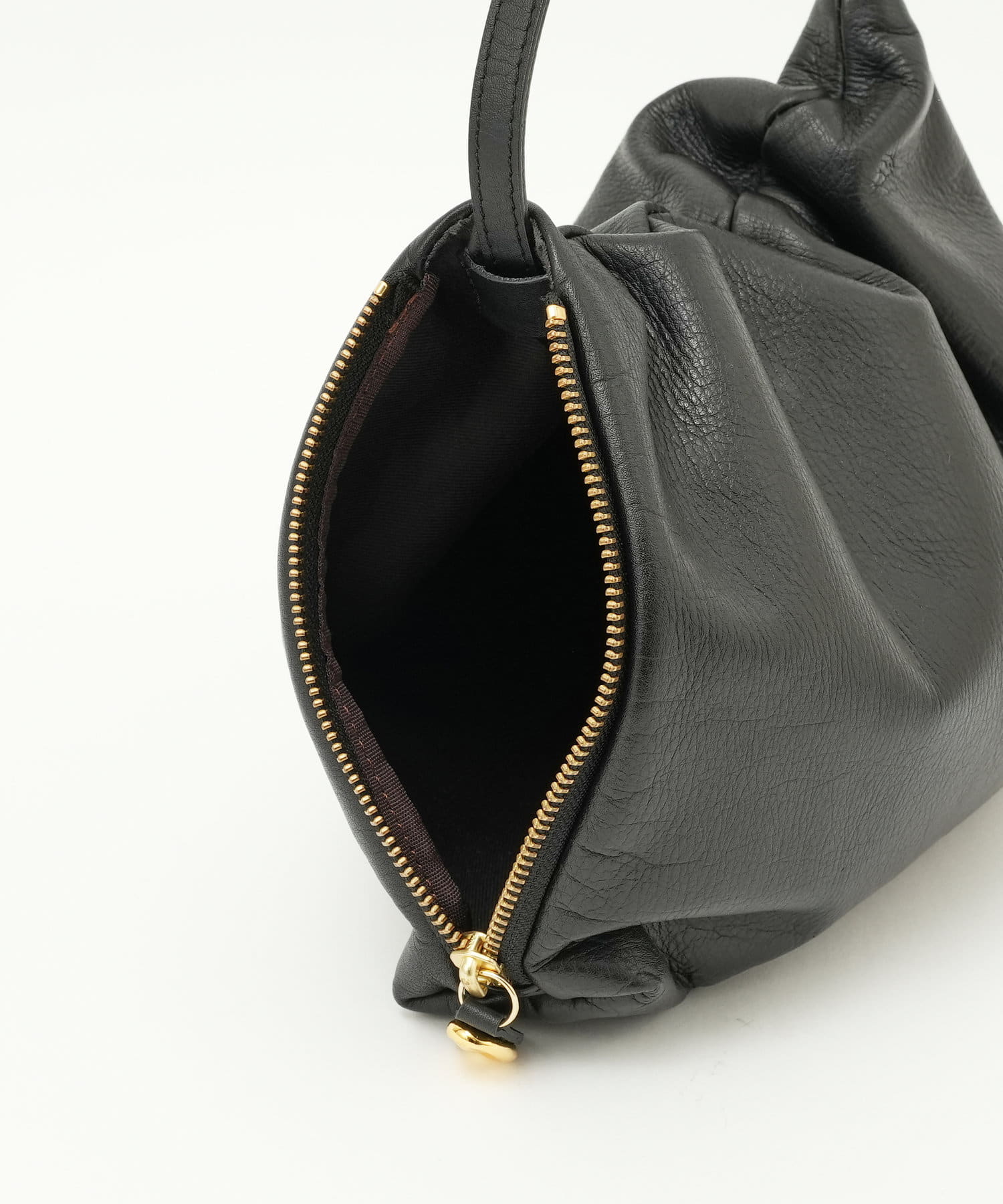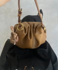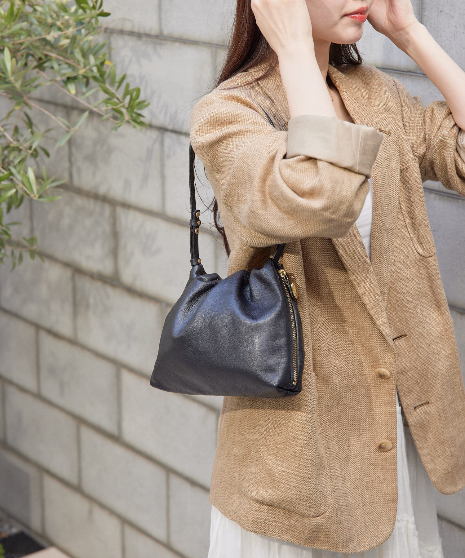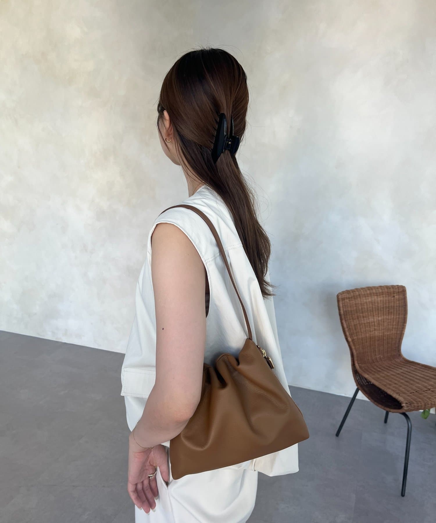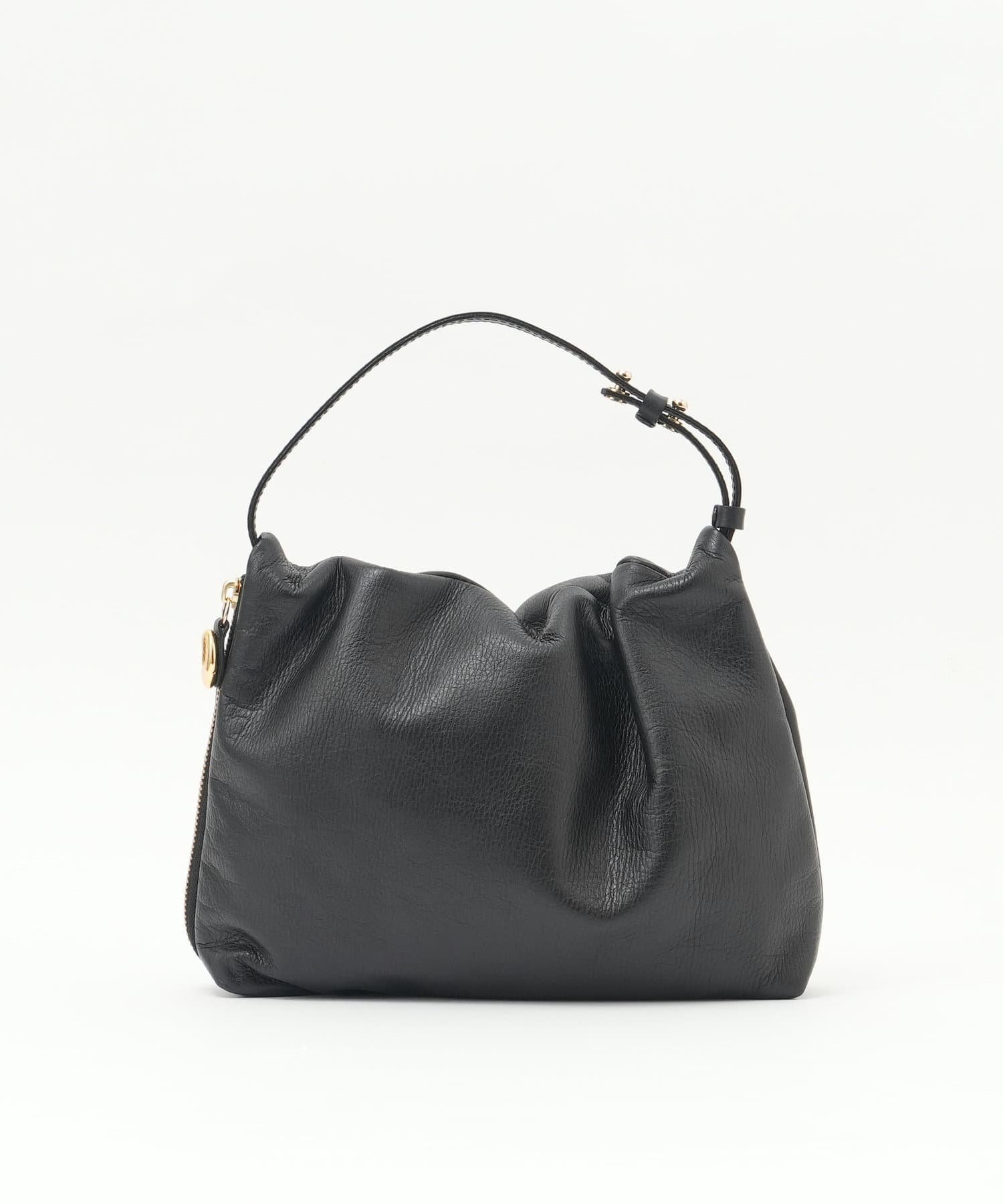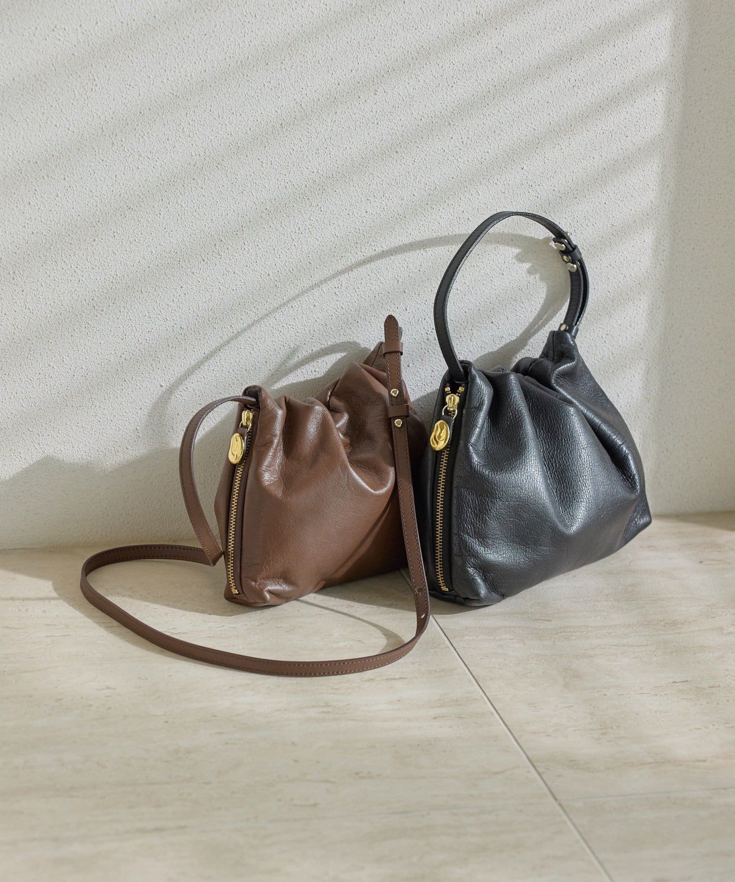 特徴的なバッグ上部のギャザーは荷物の量によって変化し、表情を楽しめるのがポイント。