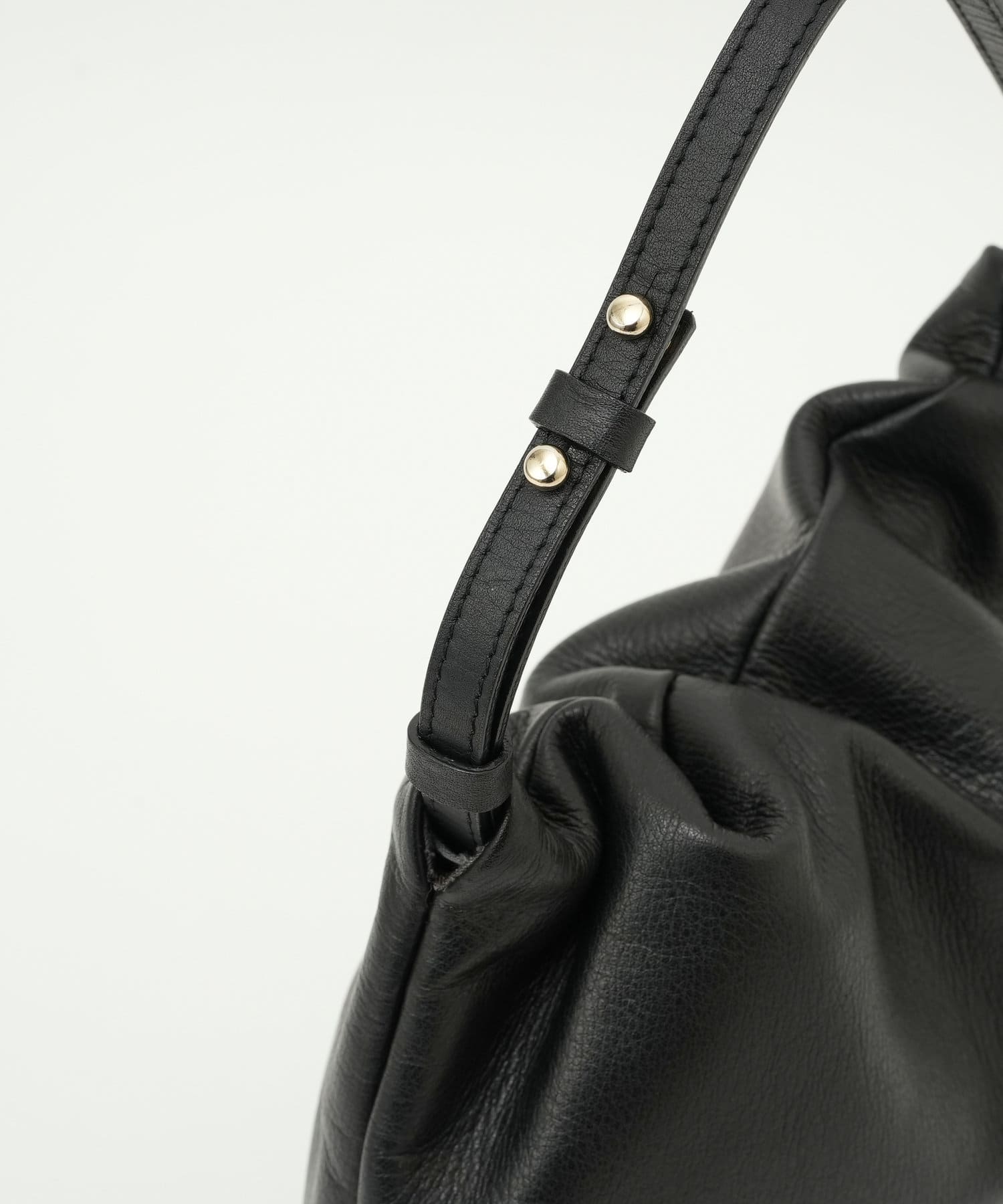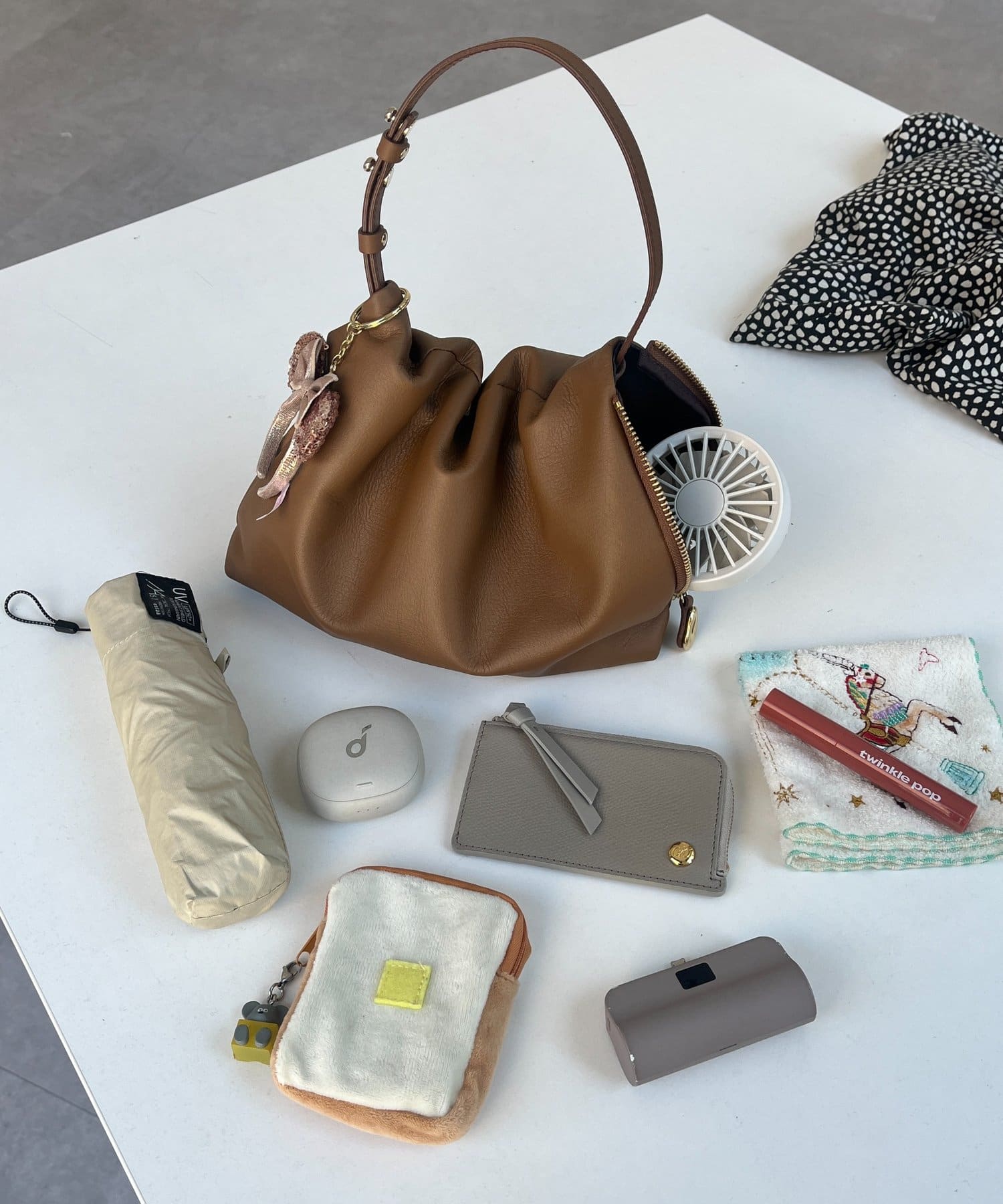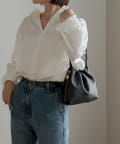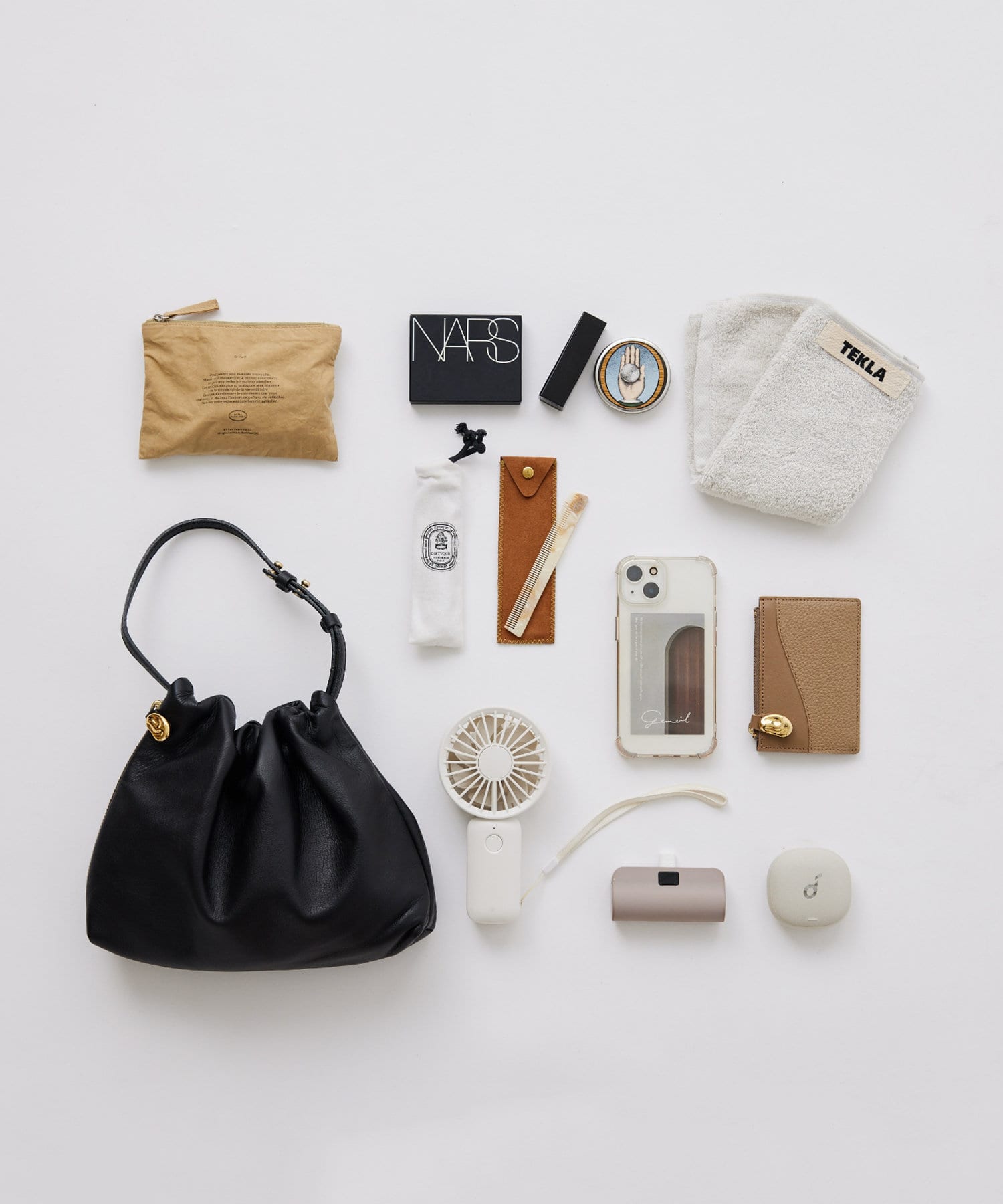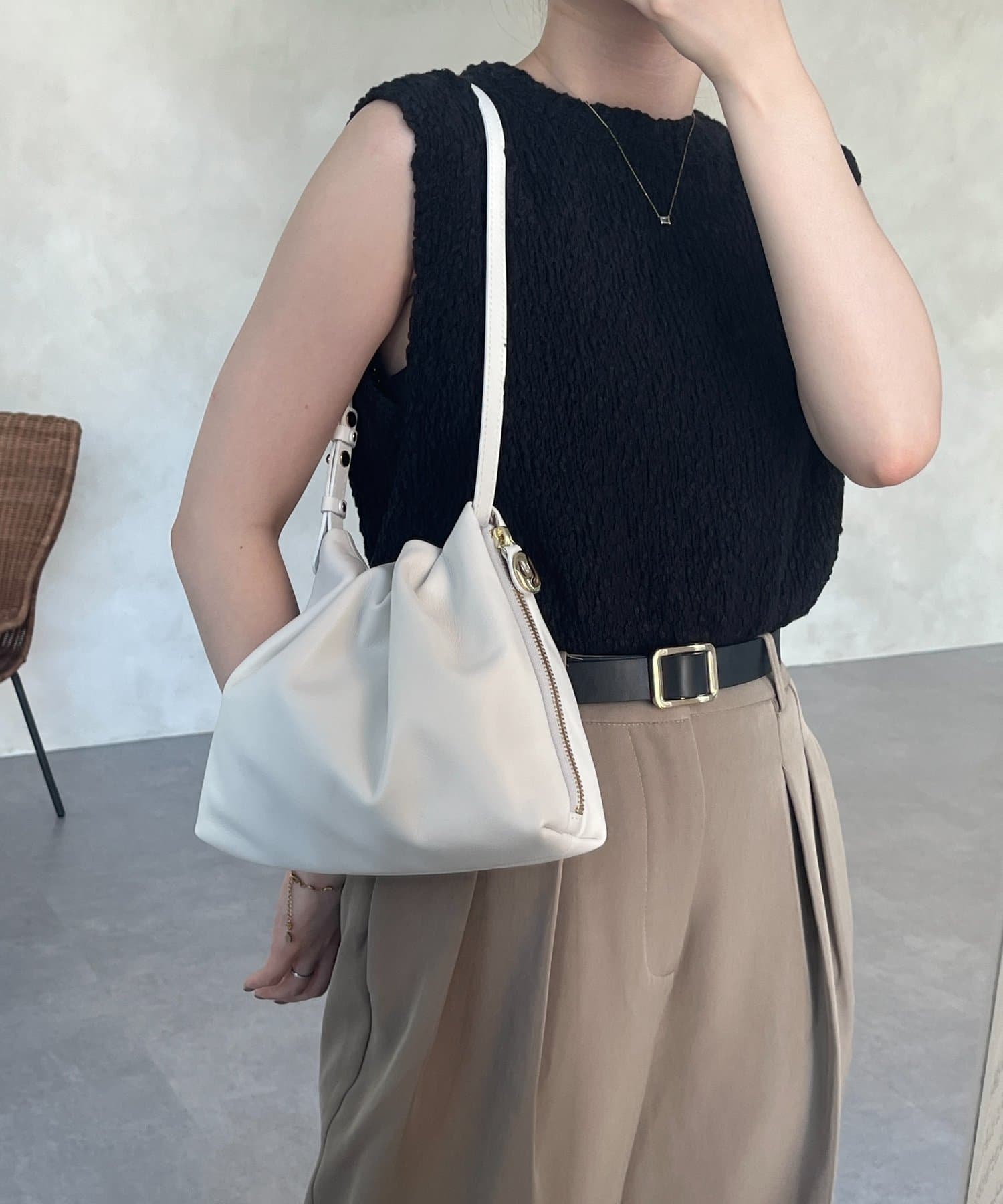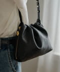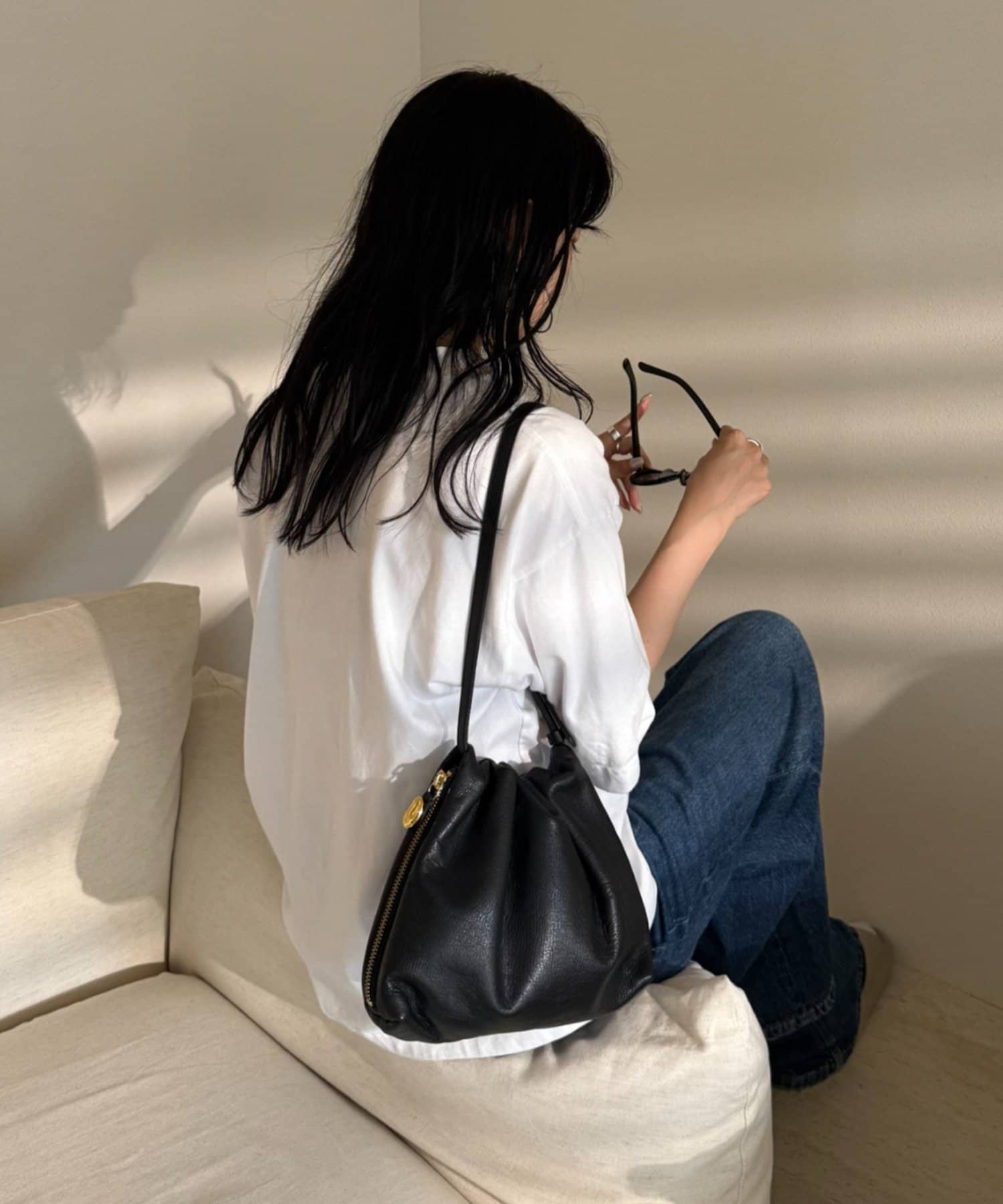 特徴的なバッグ上部のギャザーは荷物の量によって変化し、表情を楽しめるのがポイント。