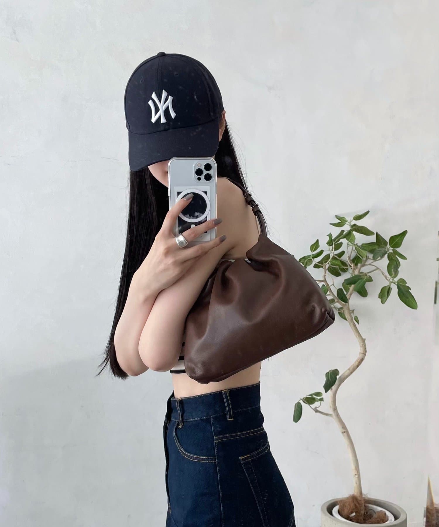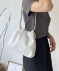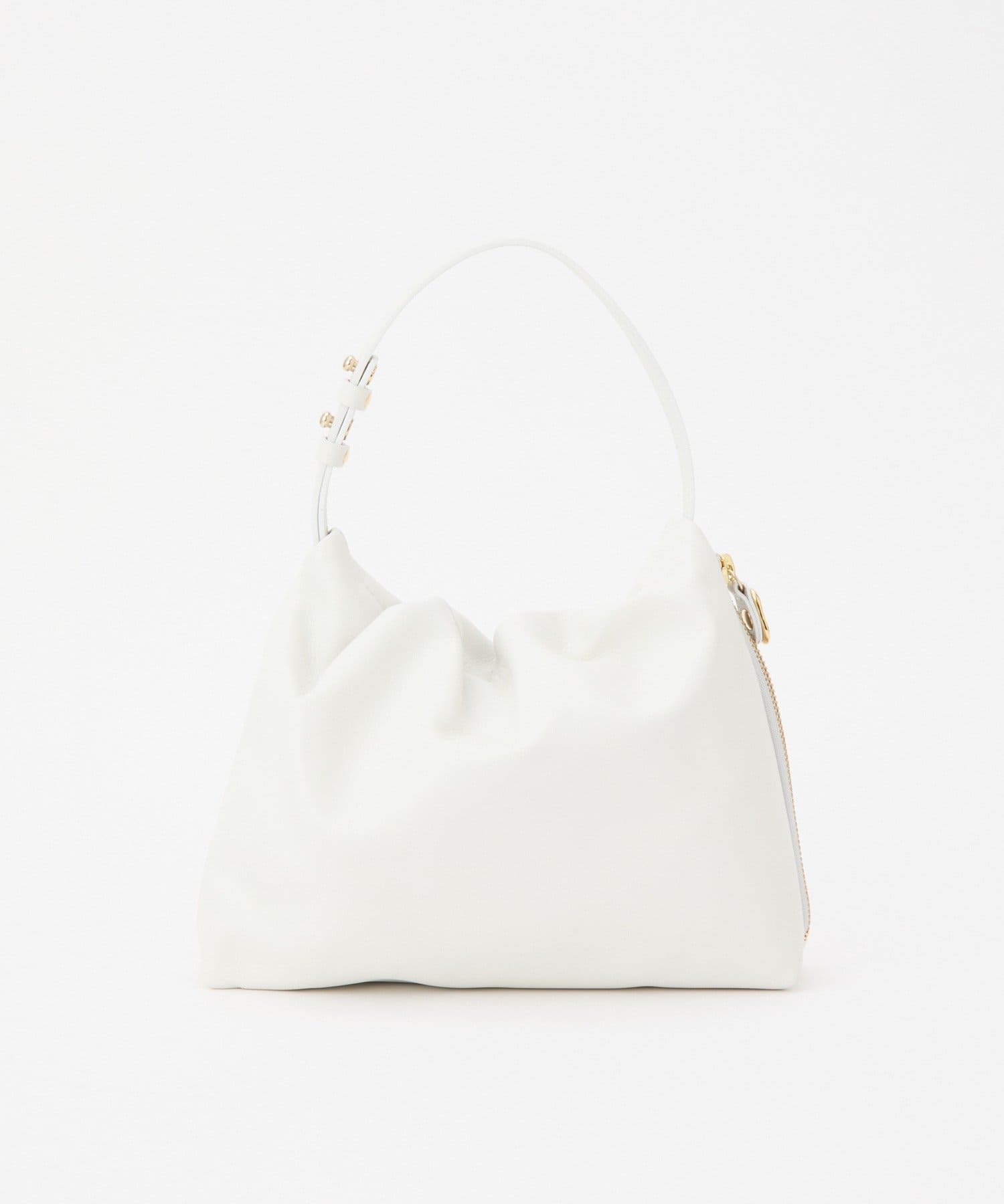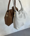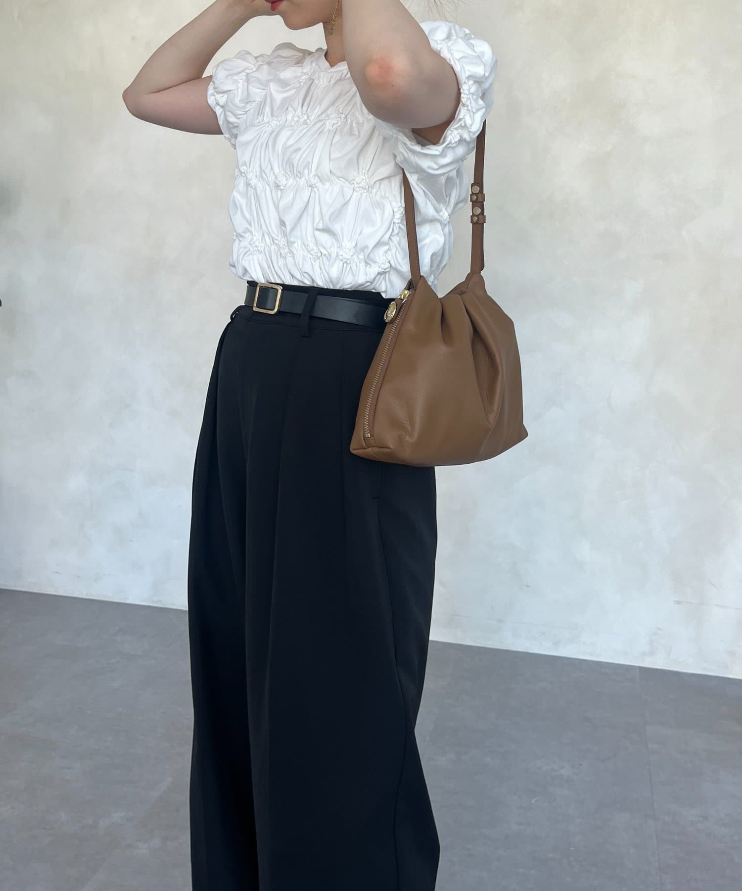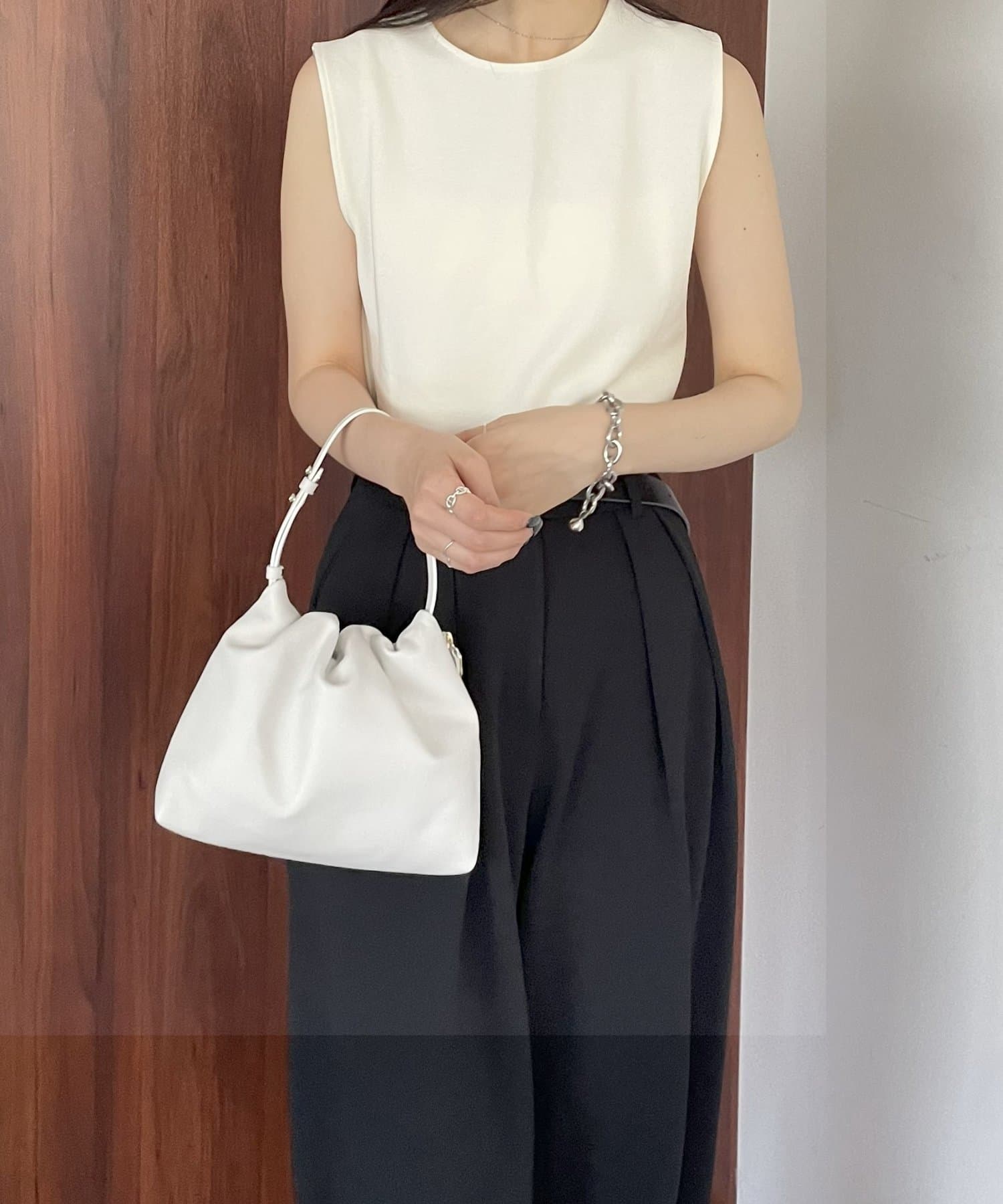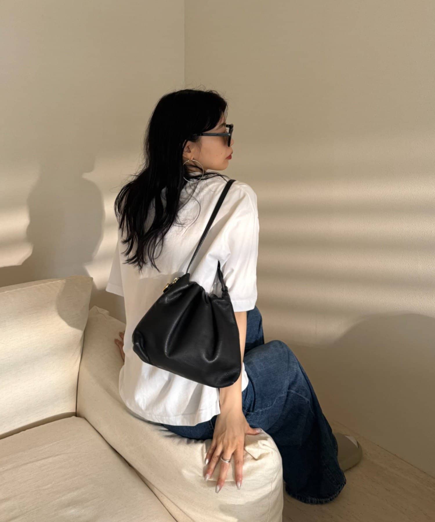特徴的なバッグ上部のギャザーは荷物の量によって変化し、表情を楽しめるのがポイント。