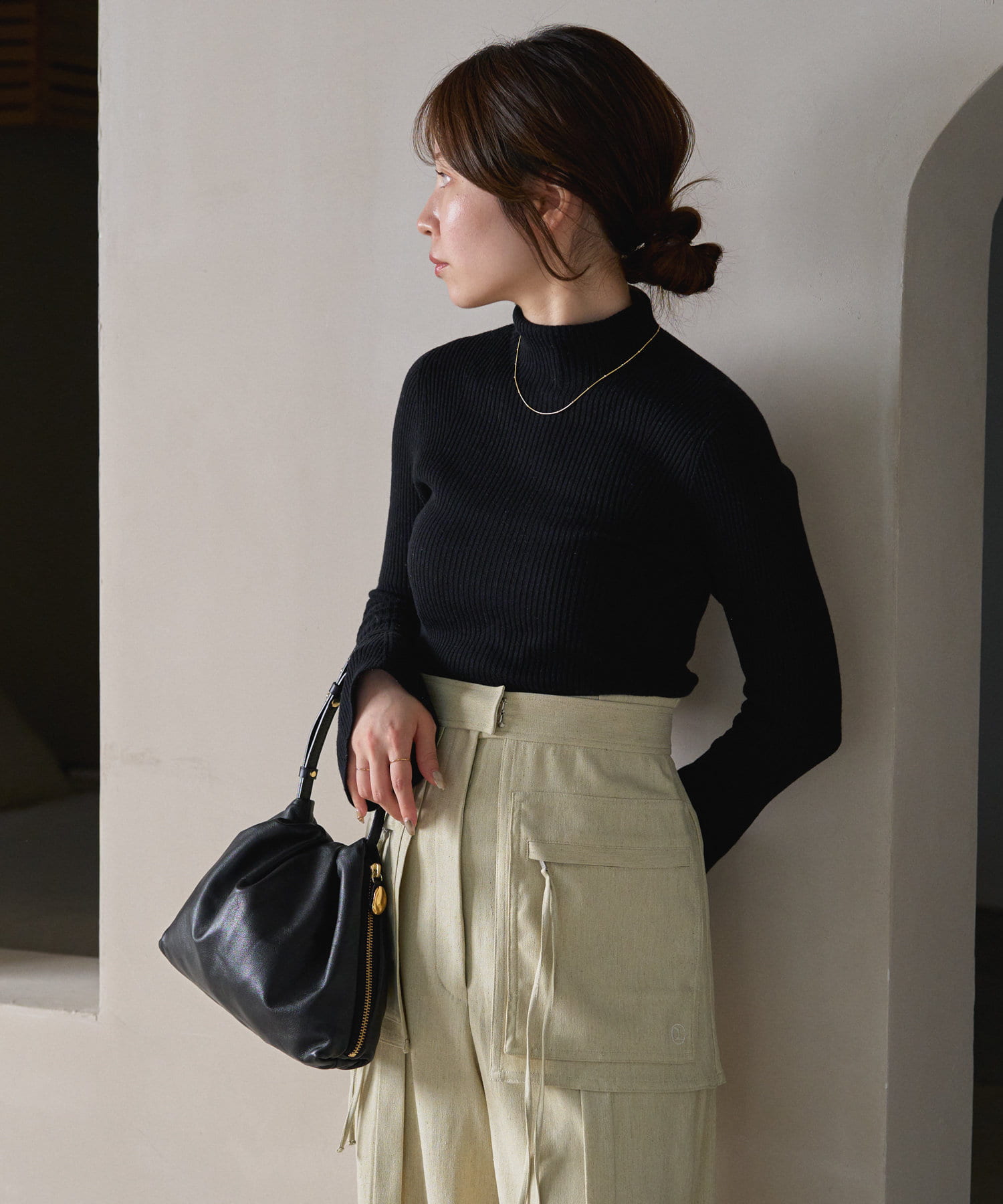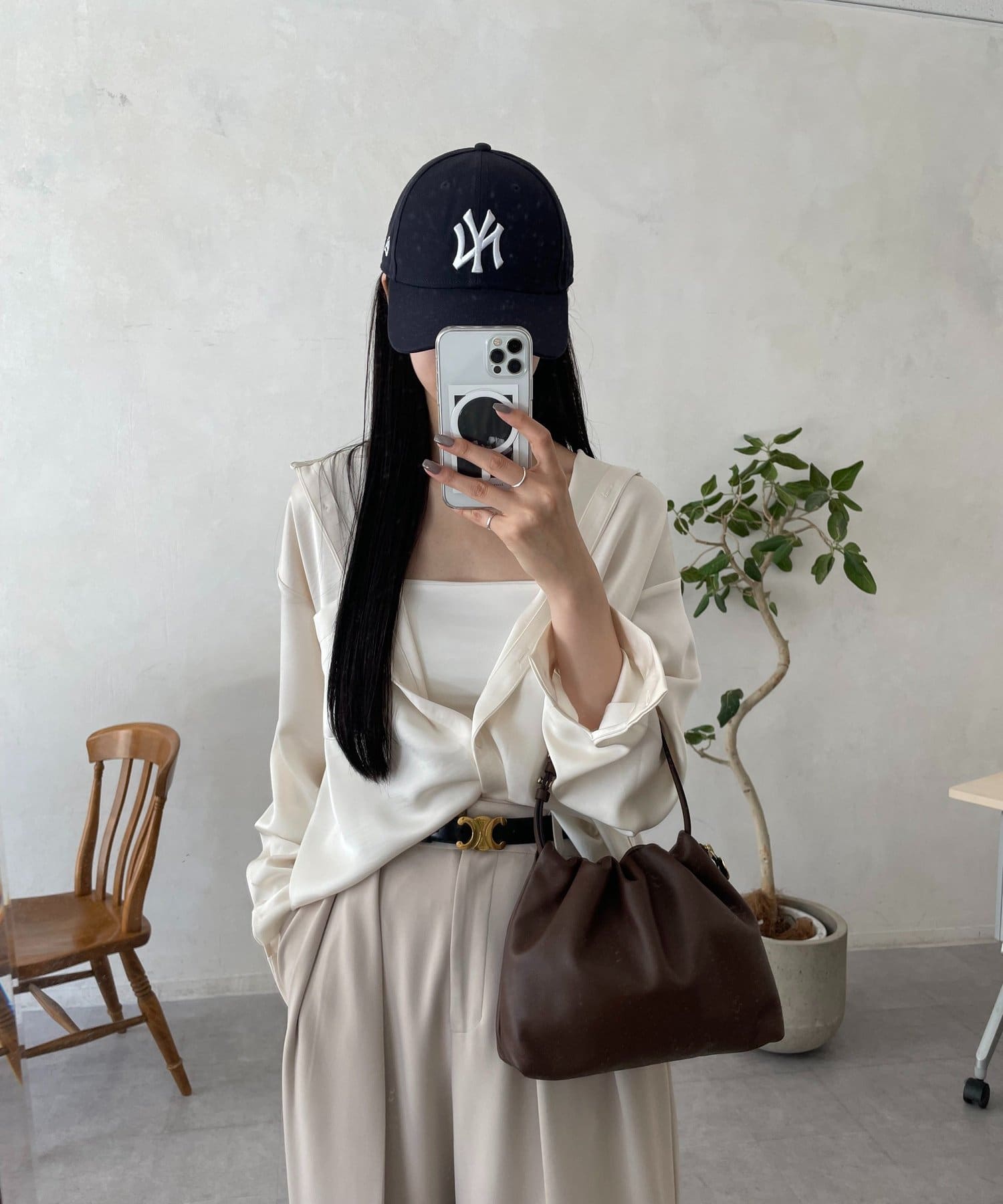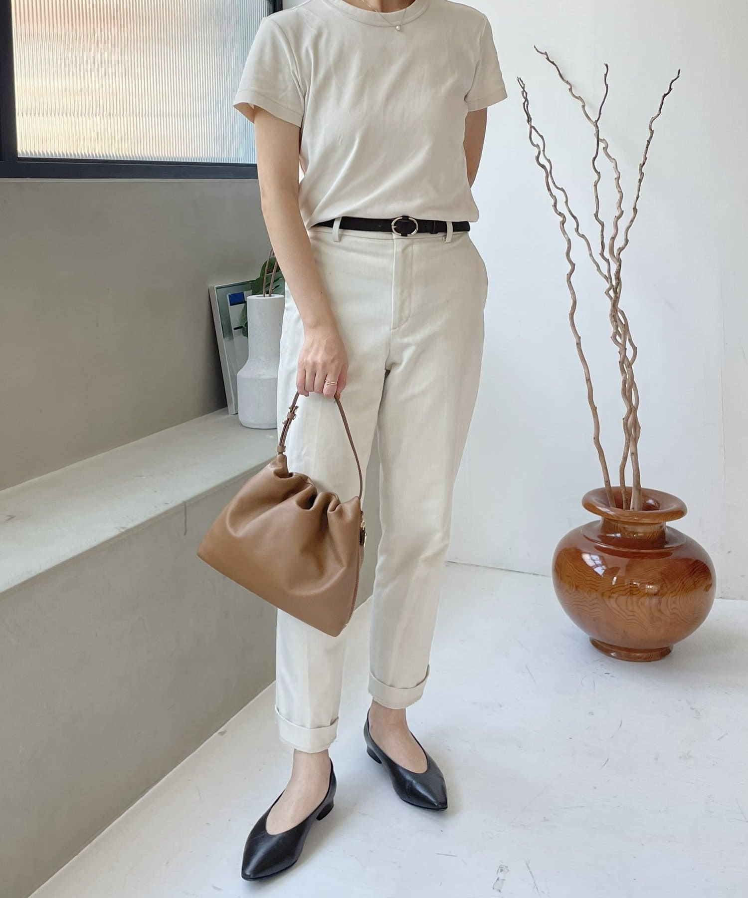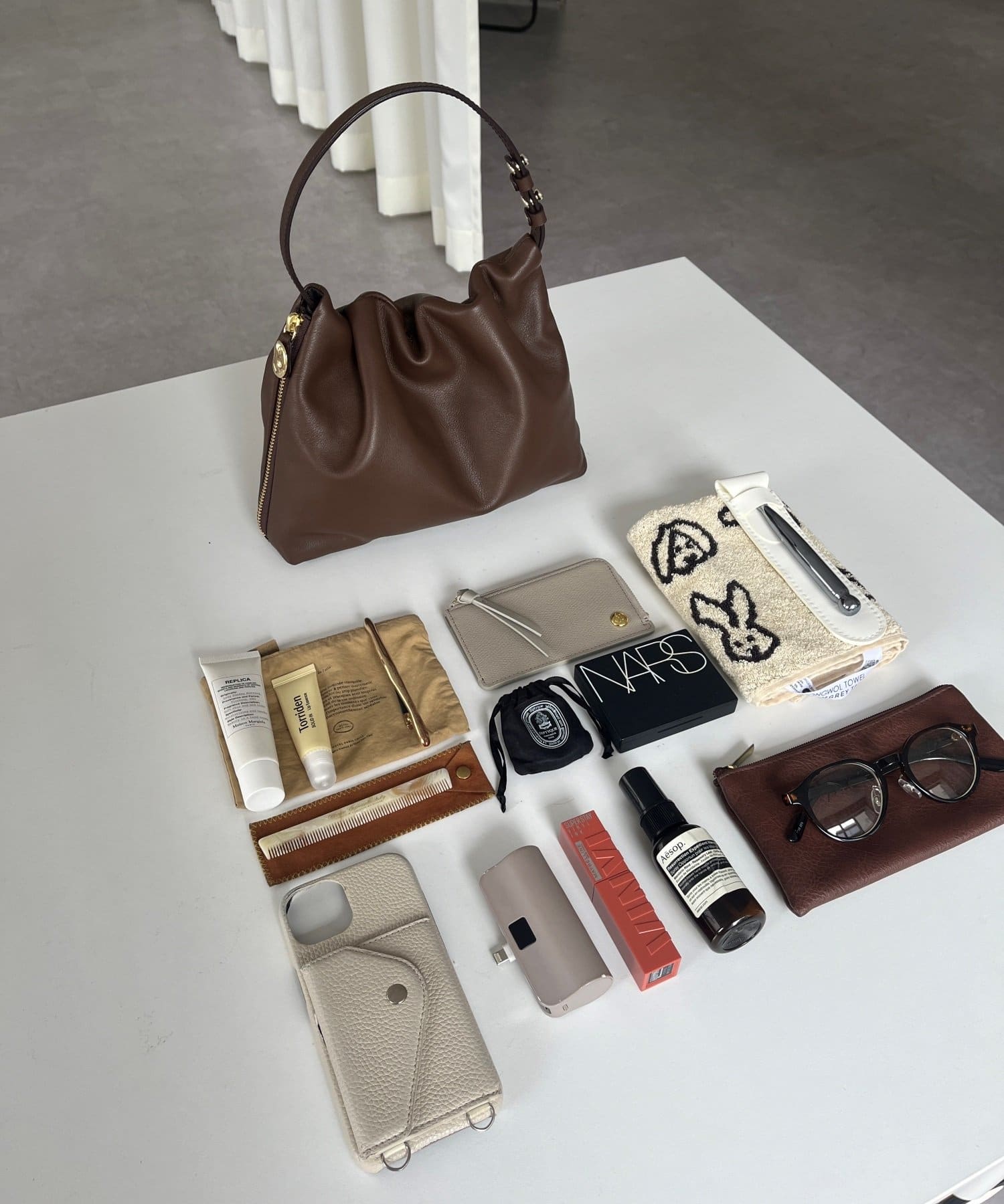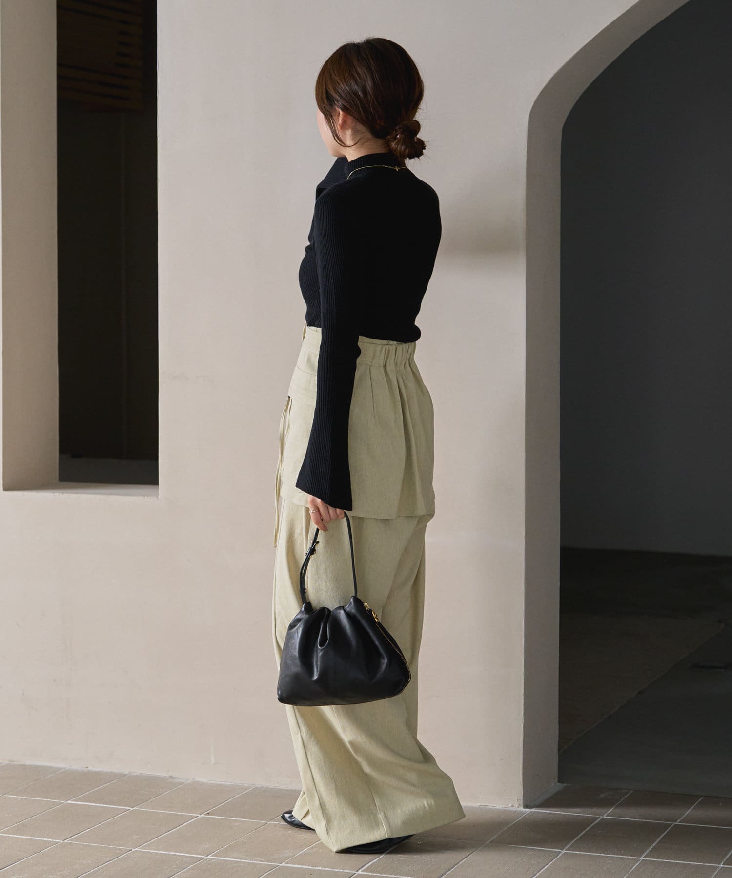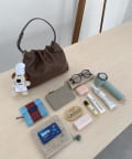 特徴的なバッグ上部のギャザーは荷物の量によって変化し、表情を楽しめるのがポイント。