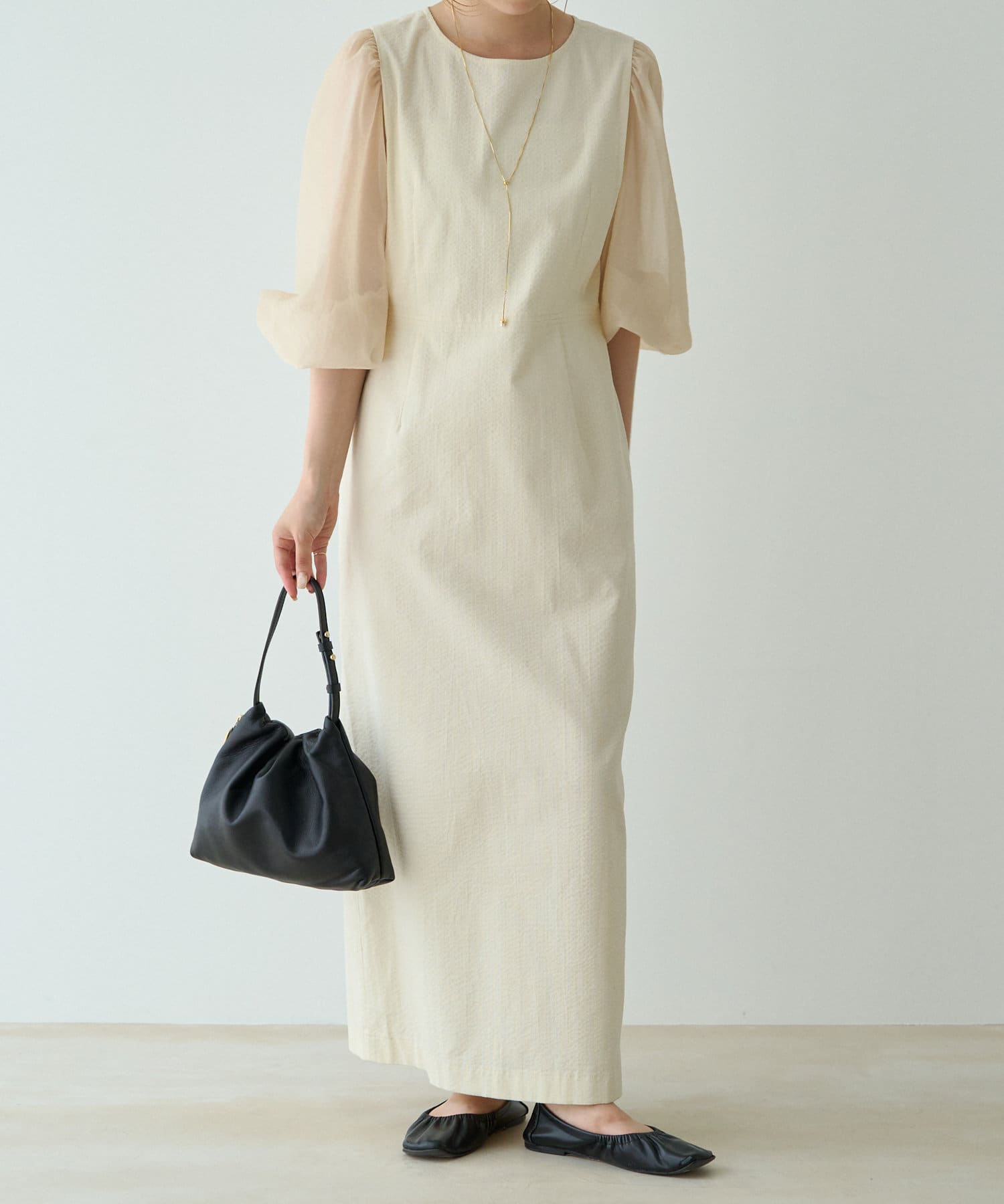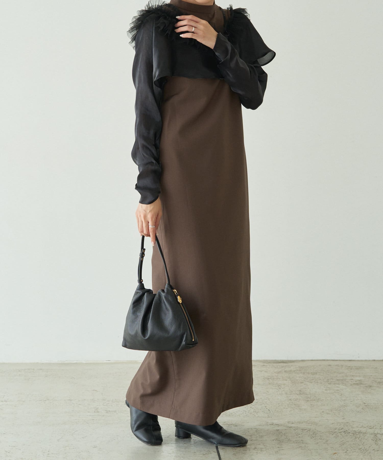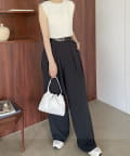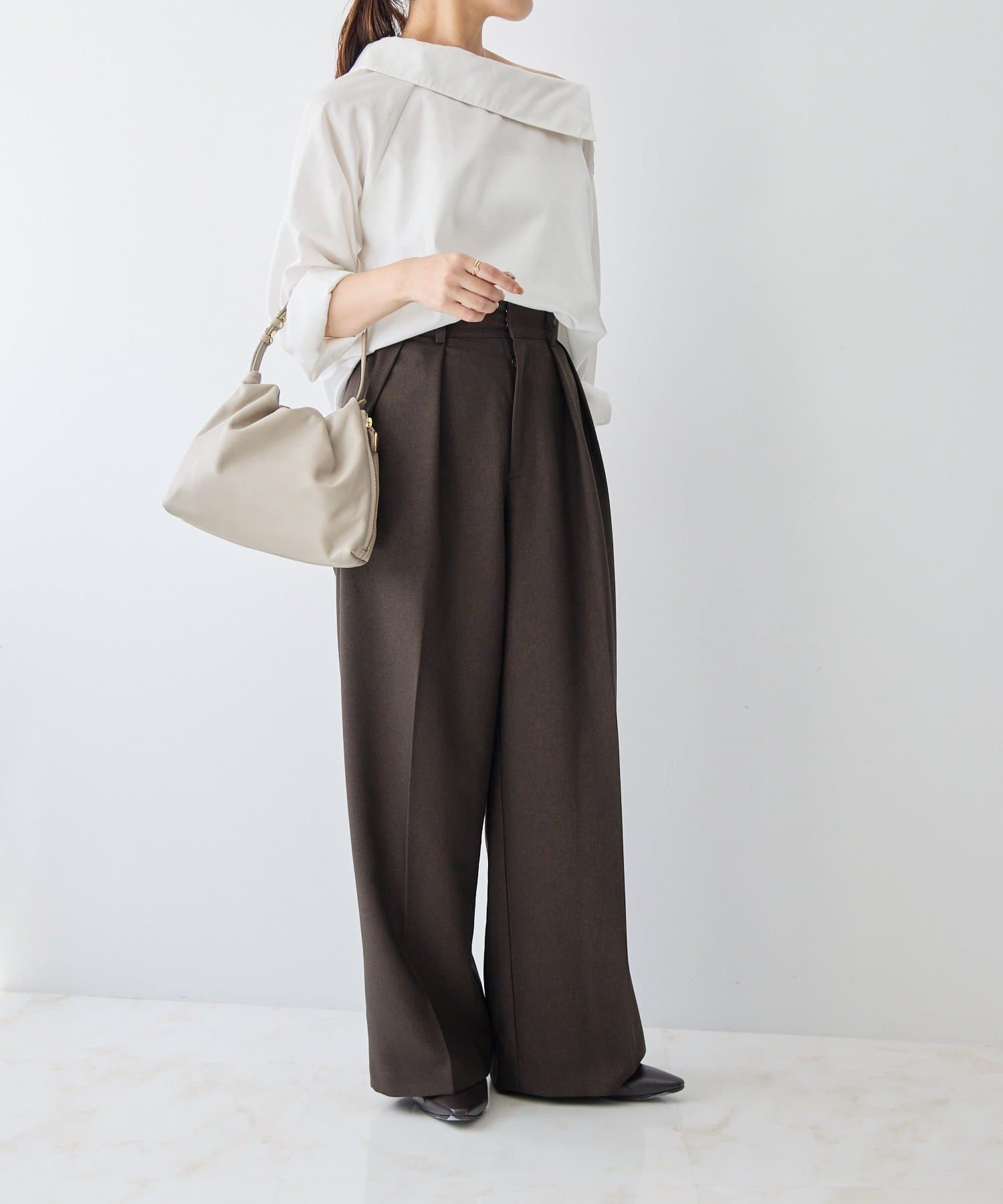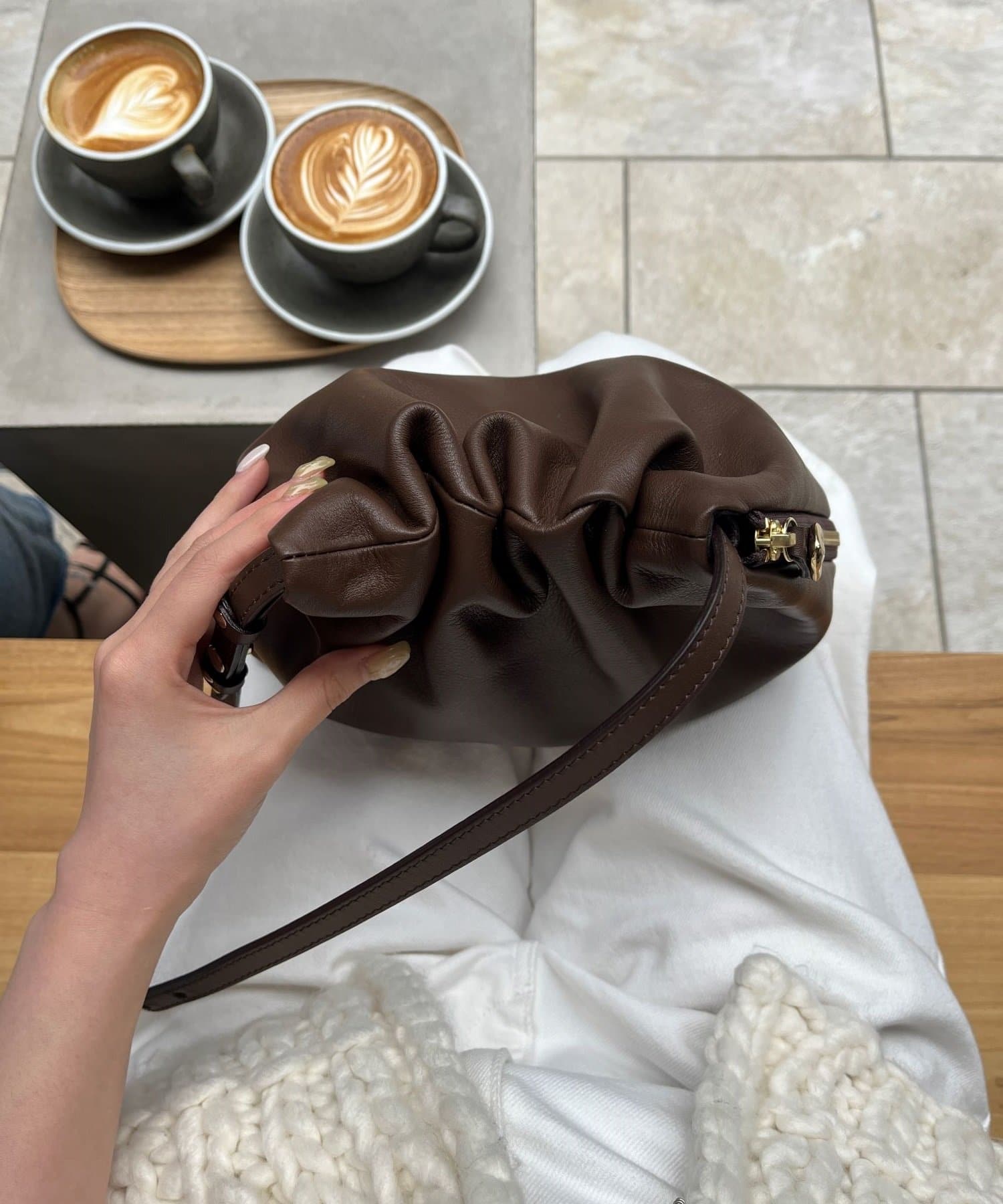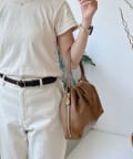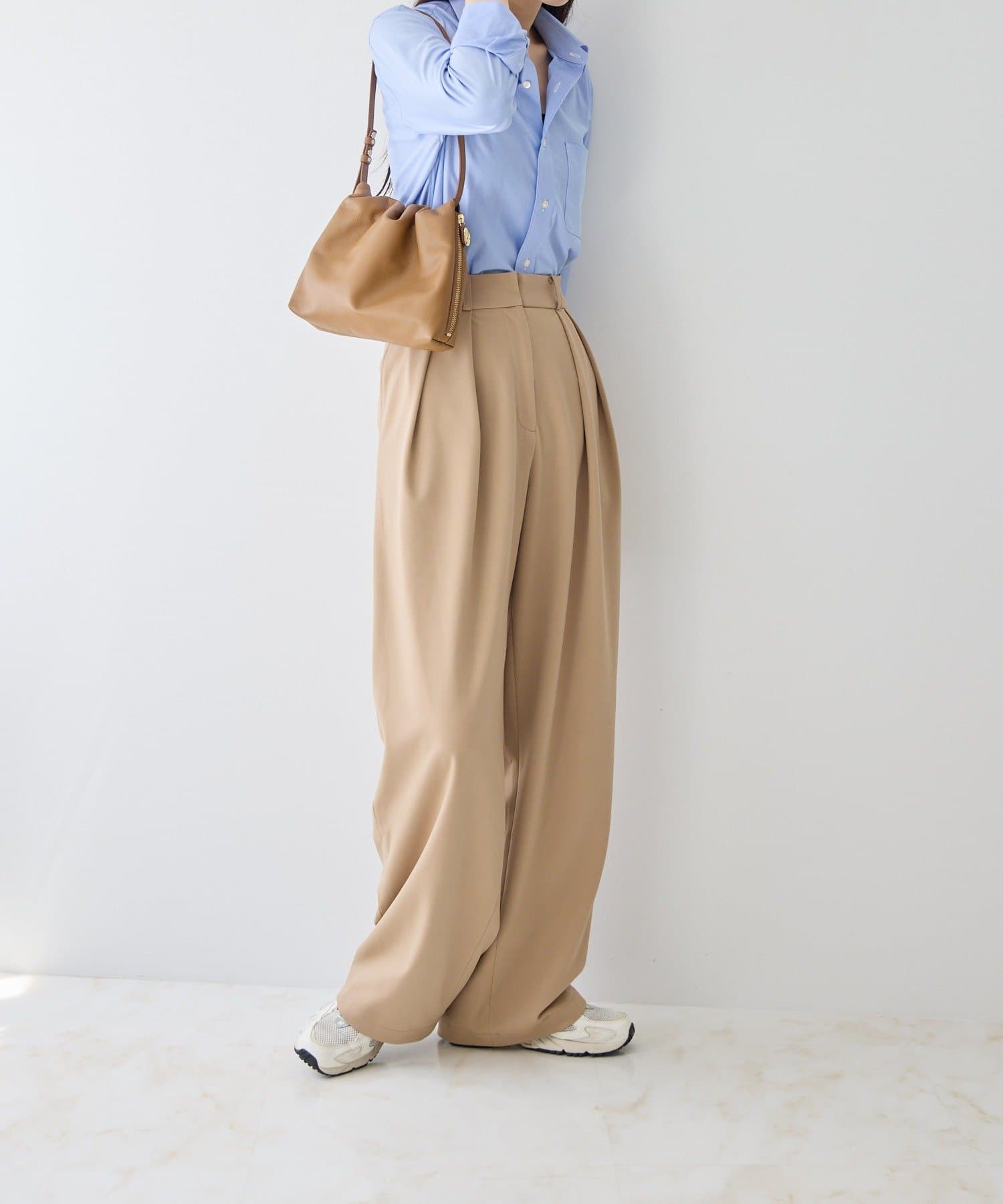 特徴的なバッグ上部のギャザーは荷物の量によって変化し、表情を楽しめるのがポイント。