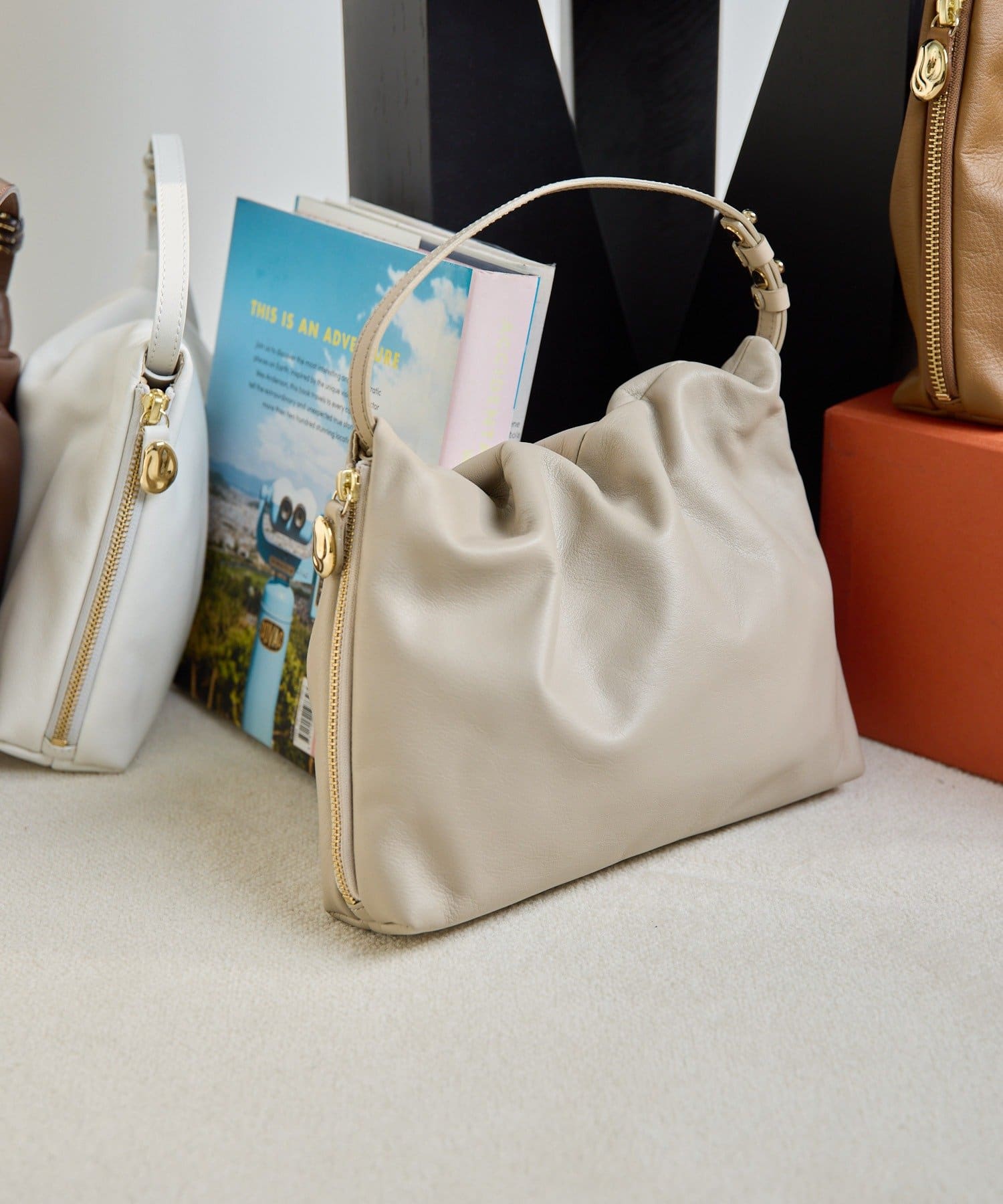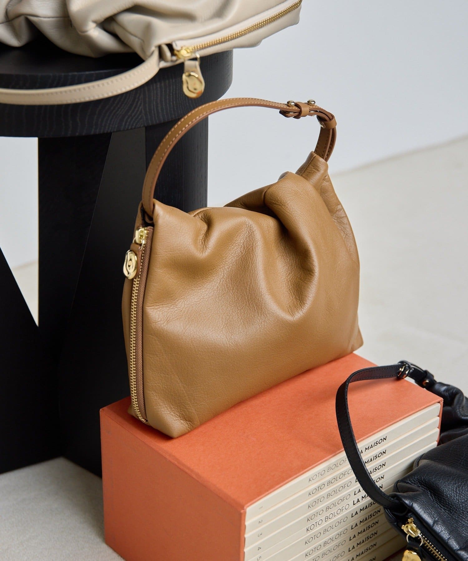 柔らかく軽い本革を使用したワンハンドルバッグ。