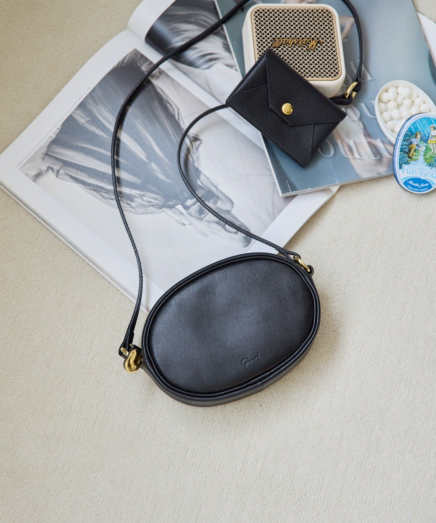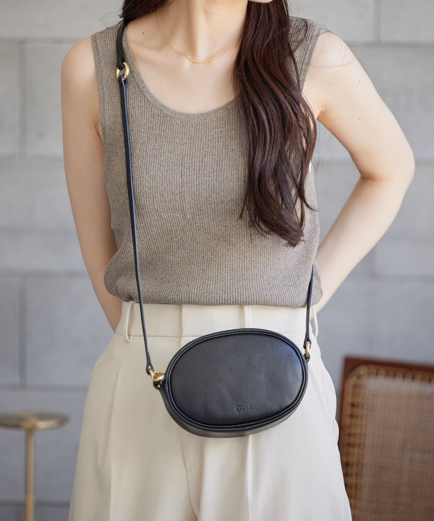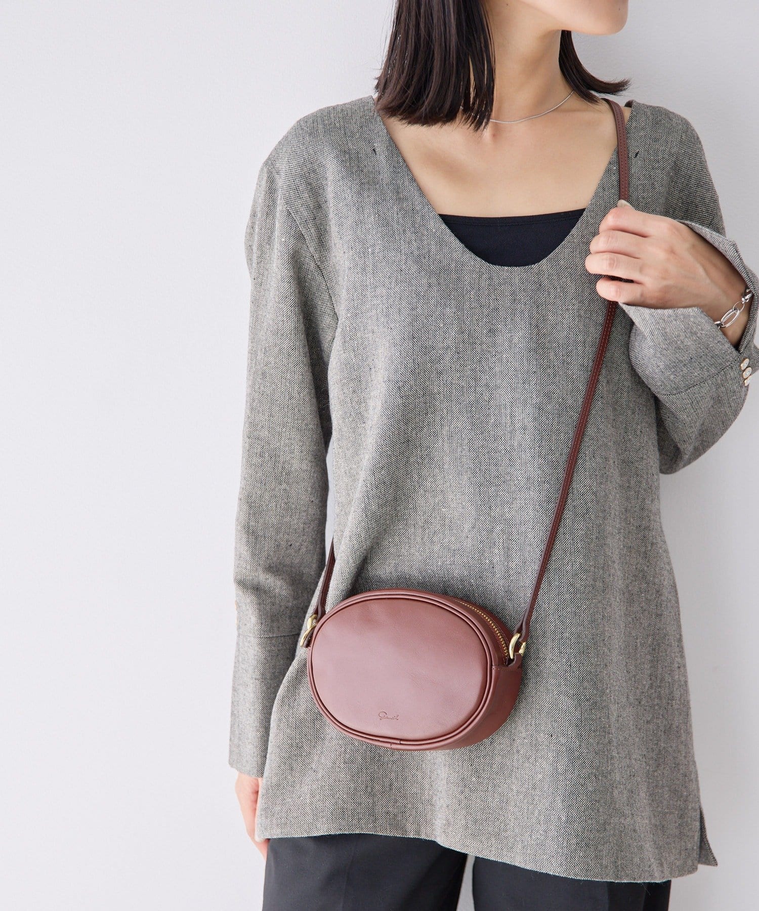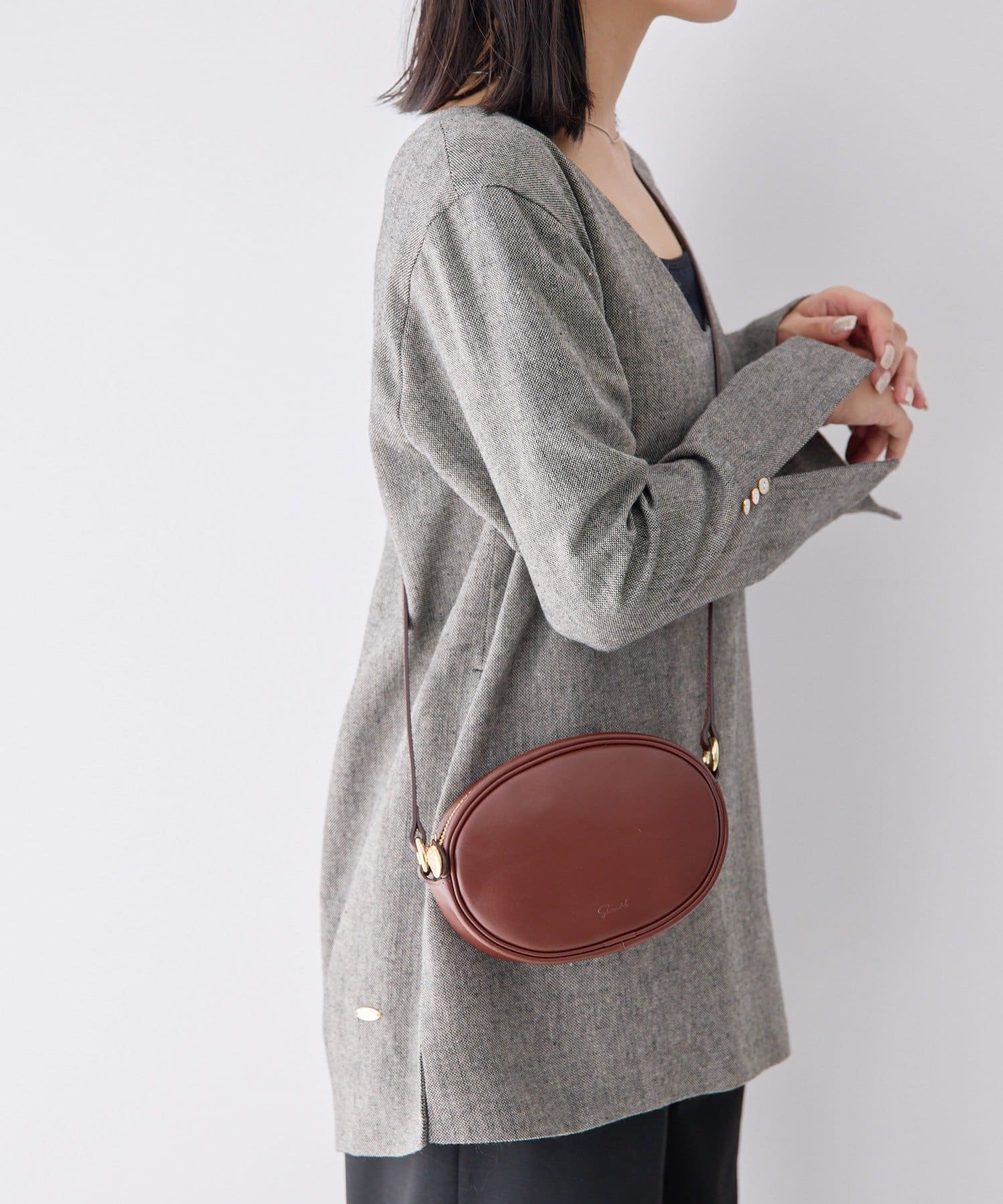 シルエットにこだわったオーバル型のミニショルダーバッグ