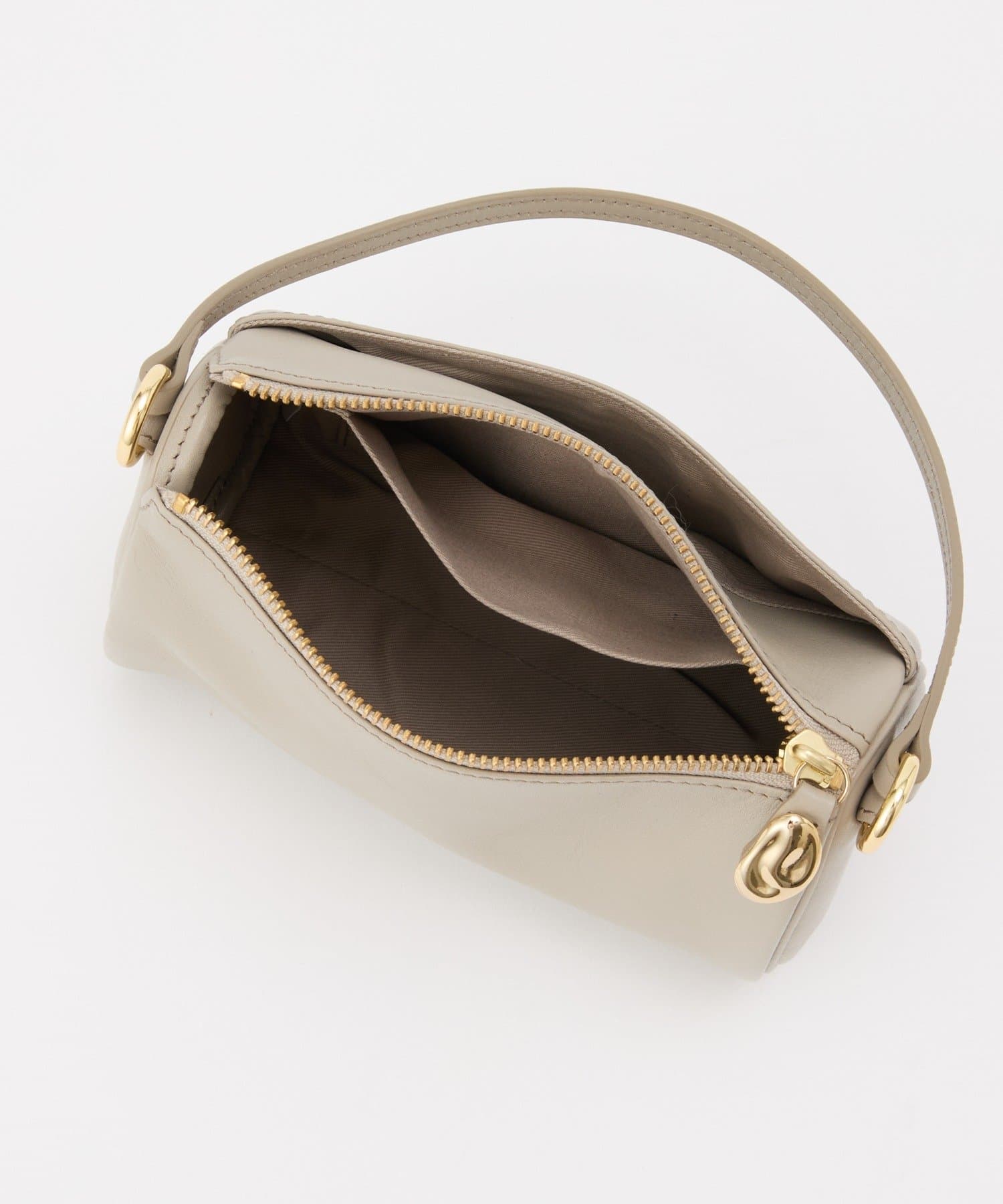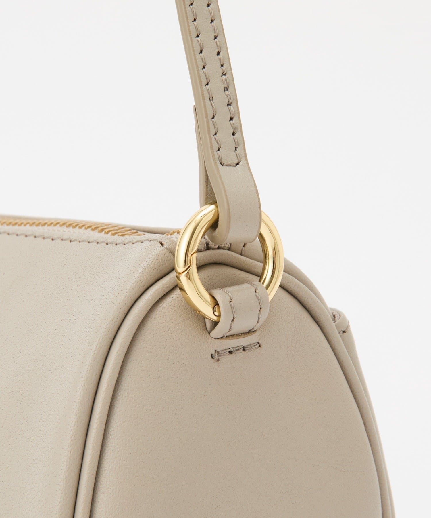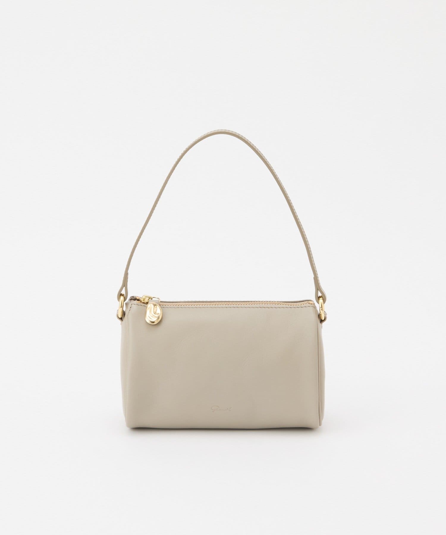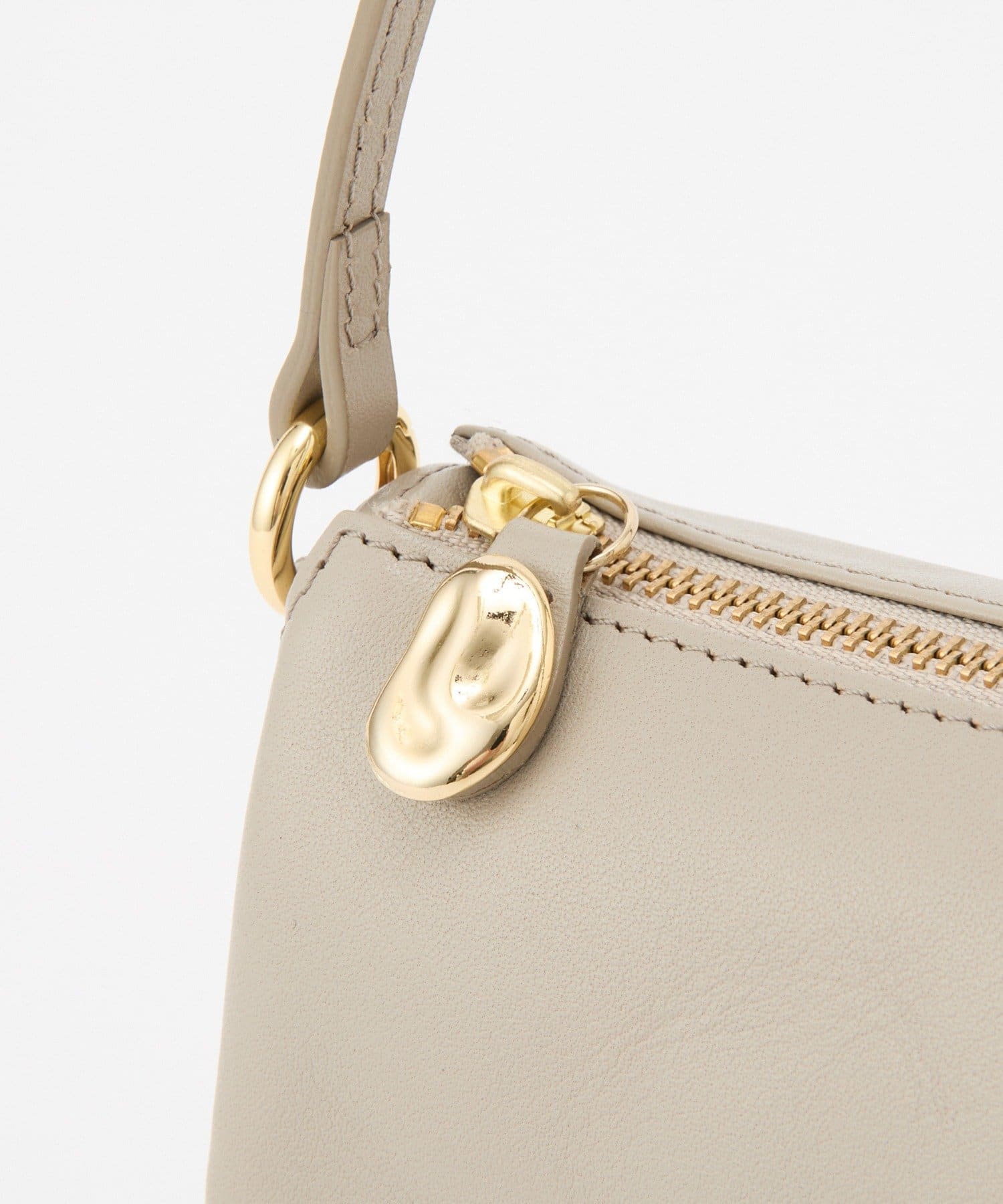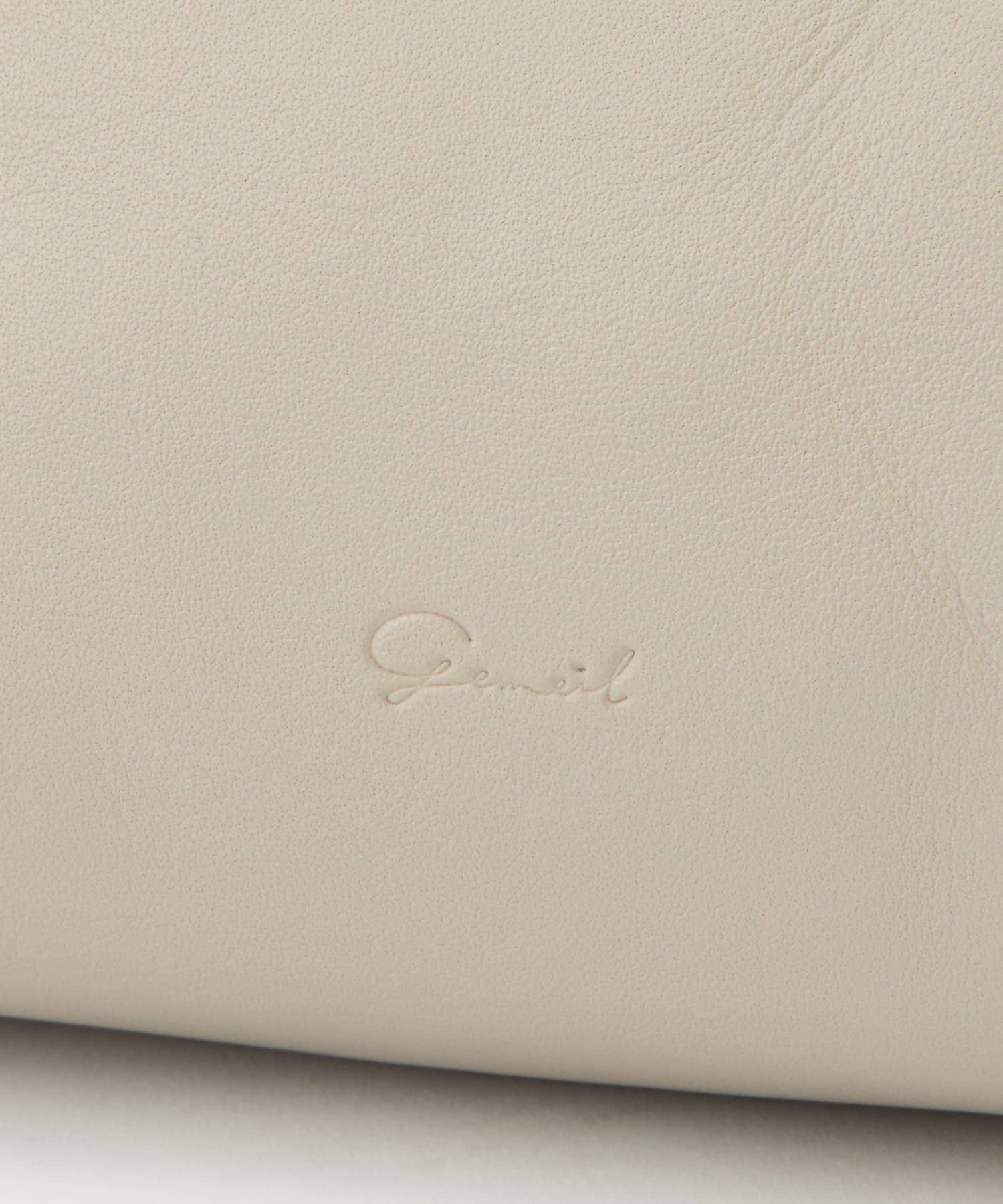 gemeilのアイコンでもあるニュアンスパーツをファスナーの引手に施し、バッグ正面にはさりげないロゴの刻印も。