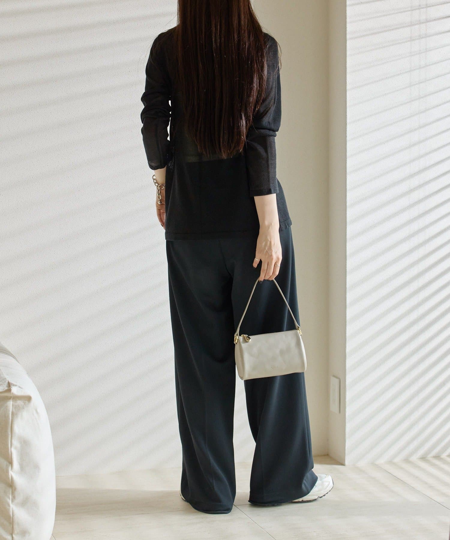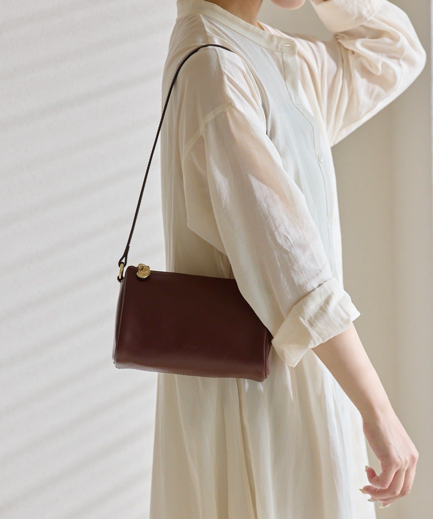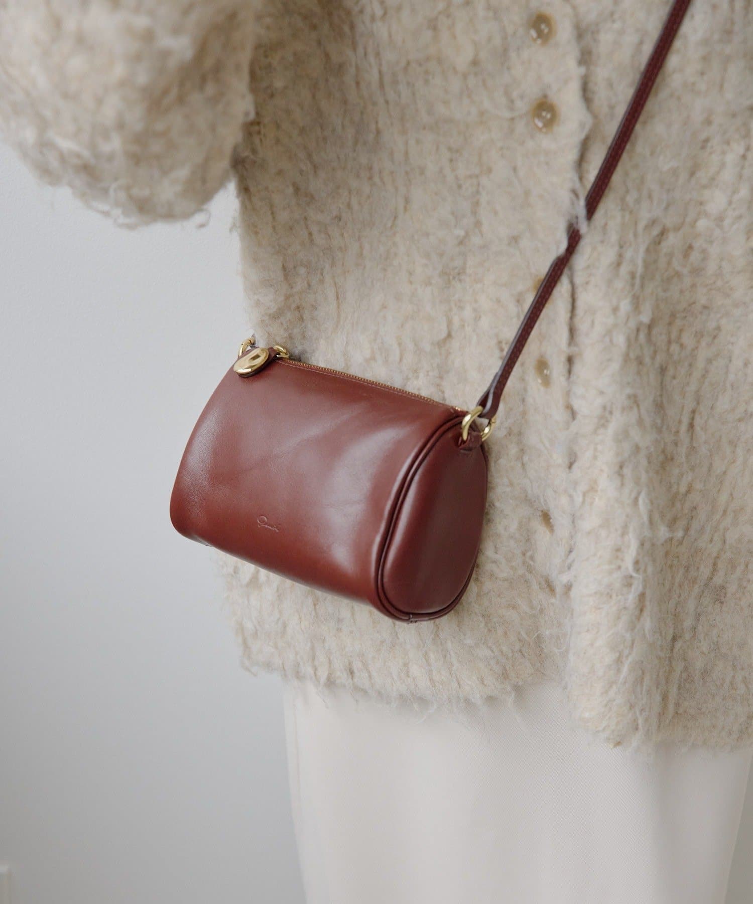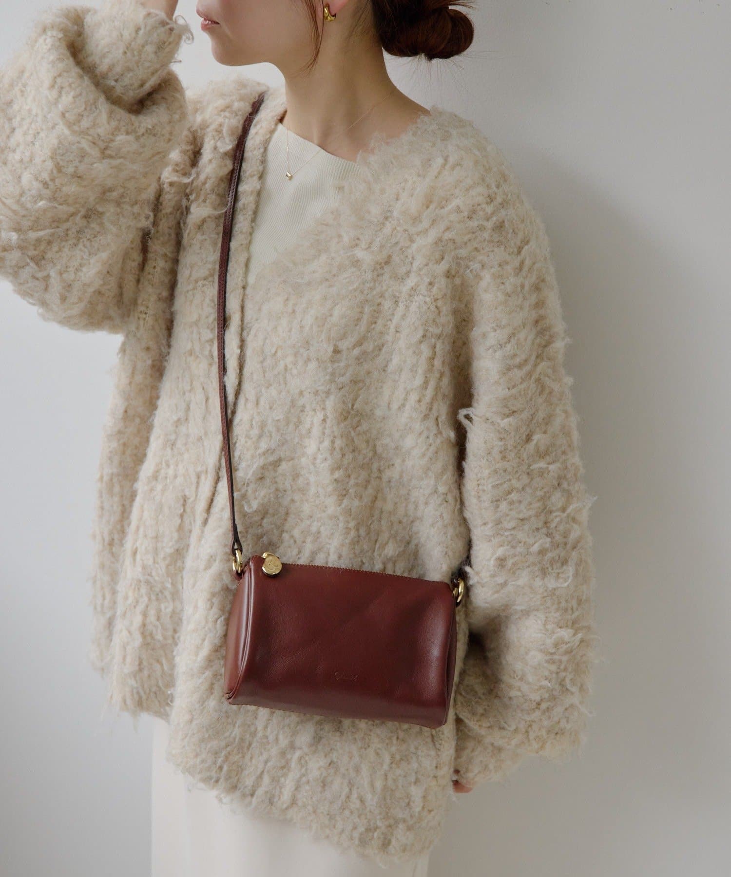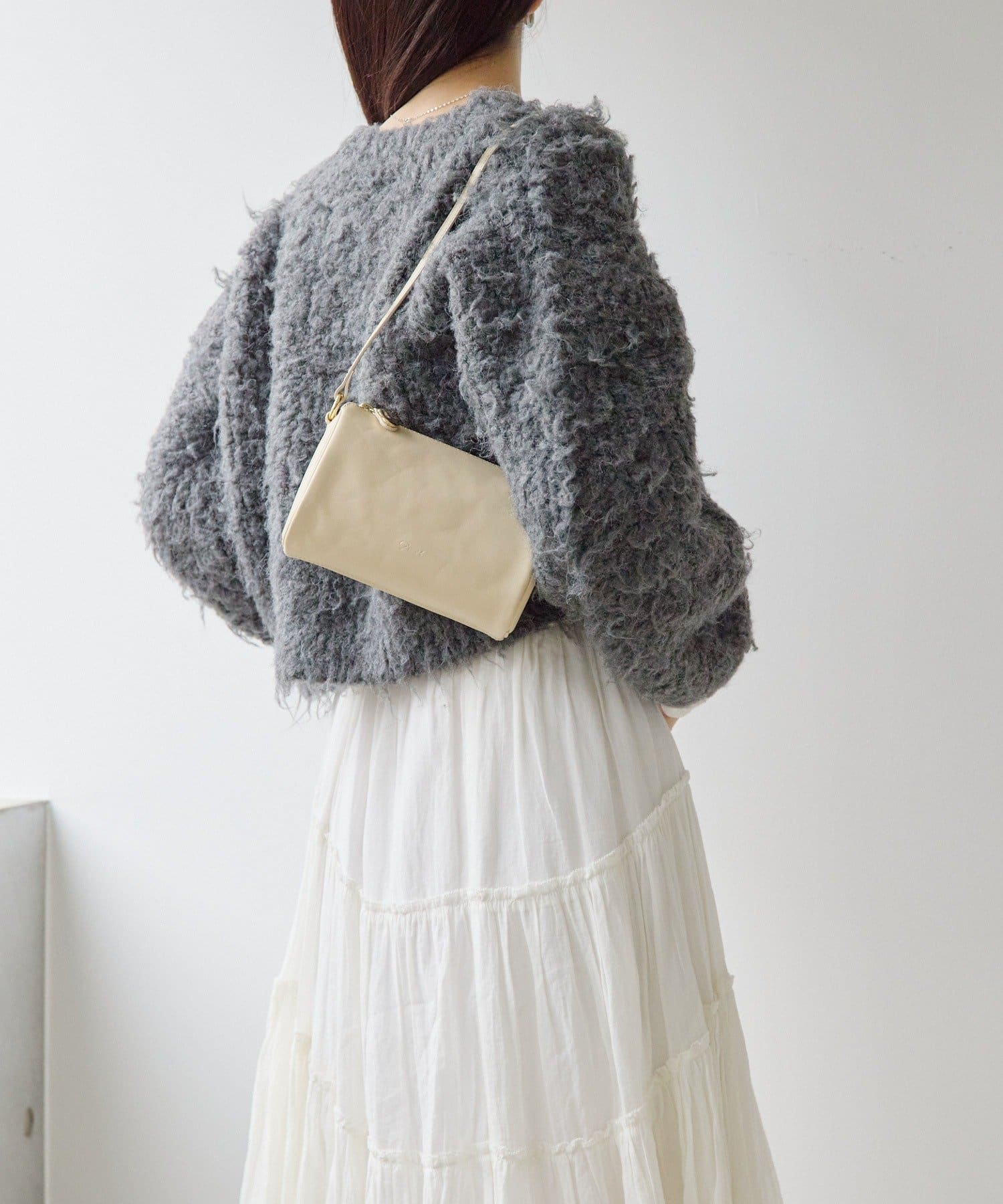 gemeilのアイコンでもあるニュアンスパーツをファスナーの引手に施し、バッグ正面にはさりげないロゴの刻印も。
