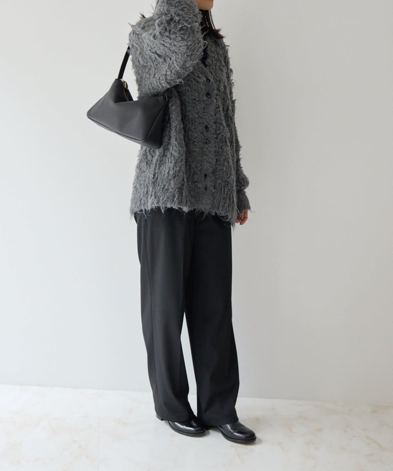 バッグの真ん中がくたっとなるシルエットが特徴のバッグ。