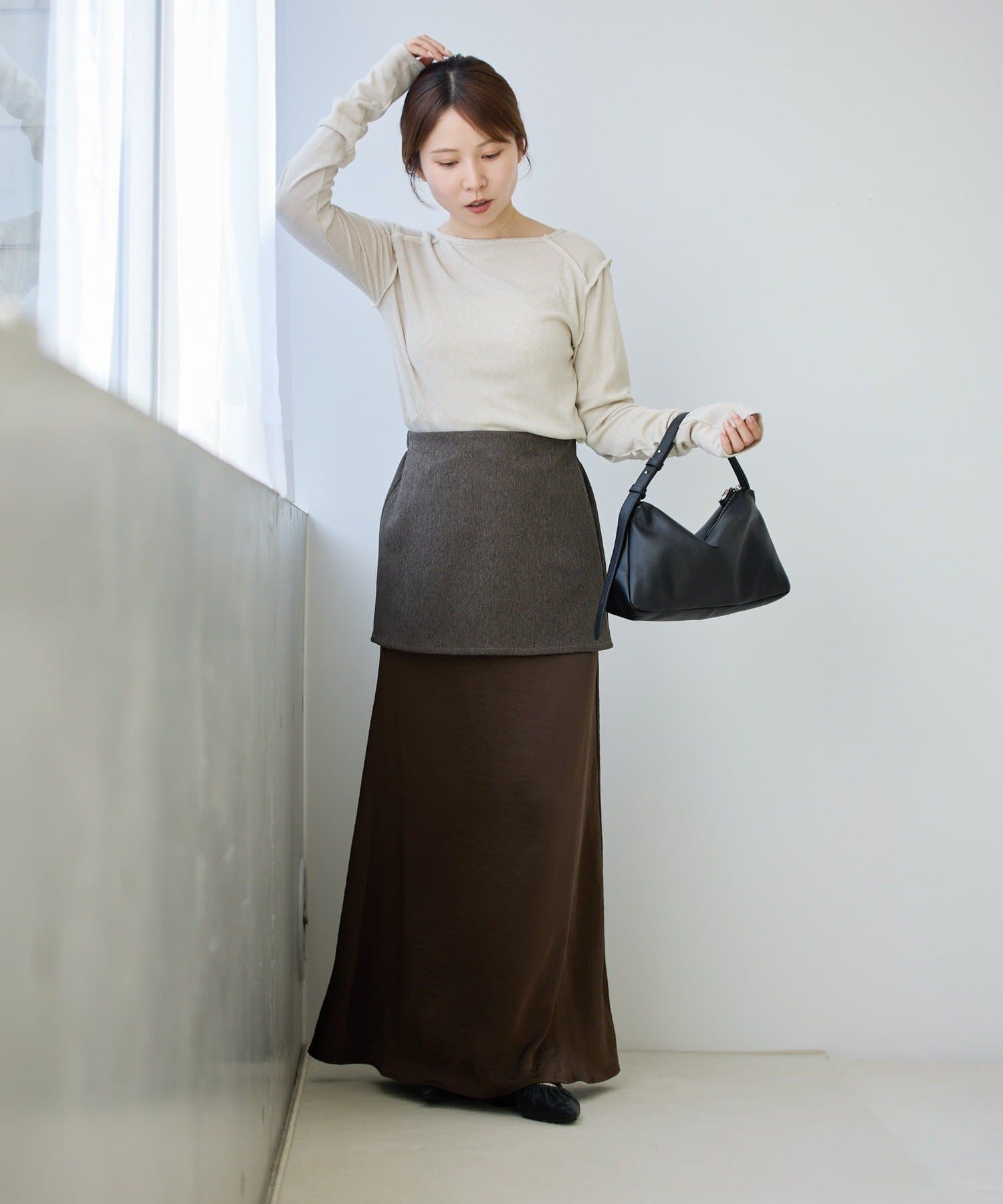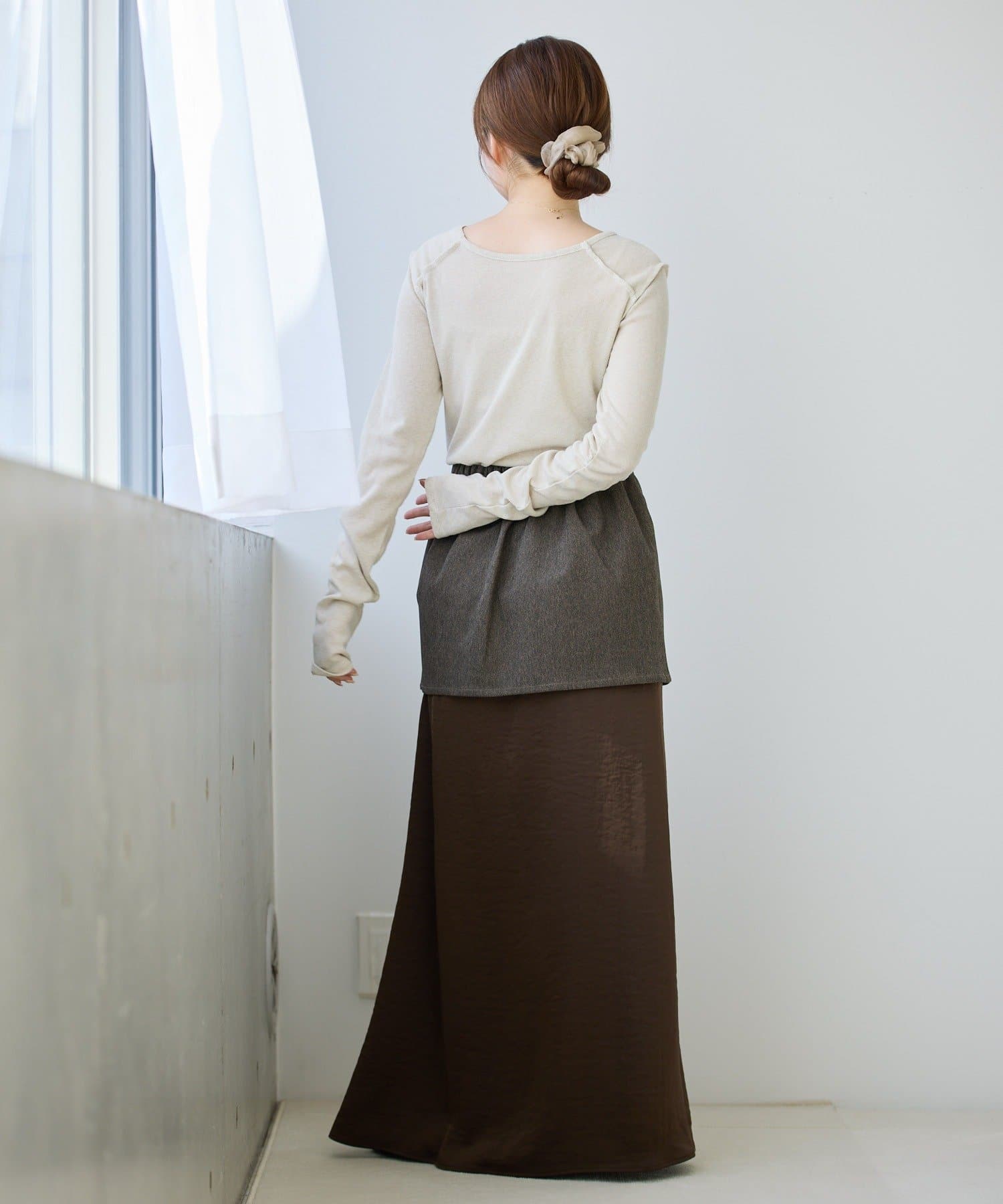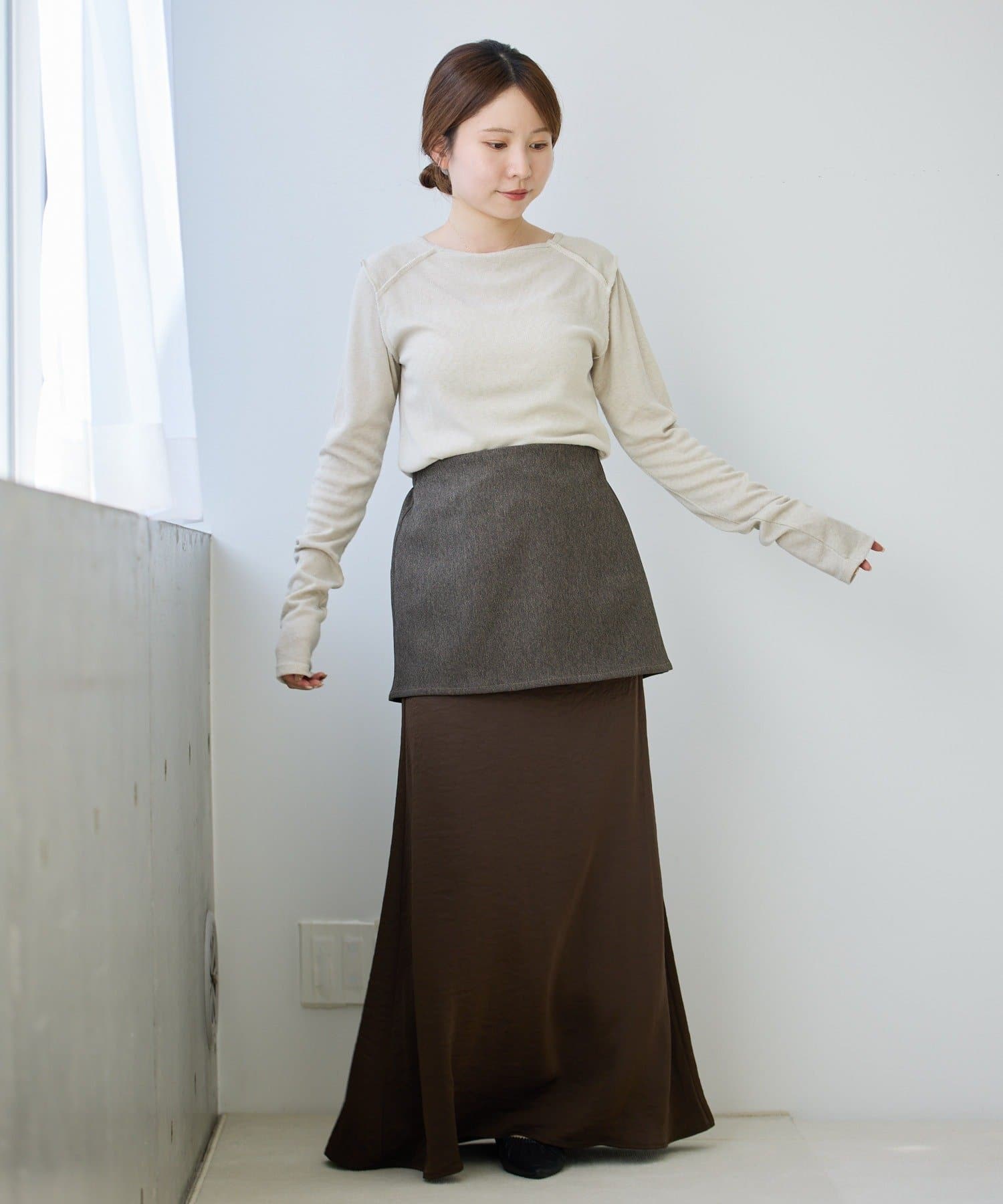 レイヤードすることでお尻周りをカバーできるのも嬉しいポイント◎