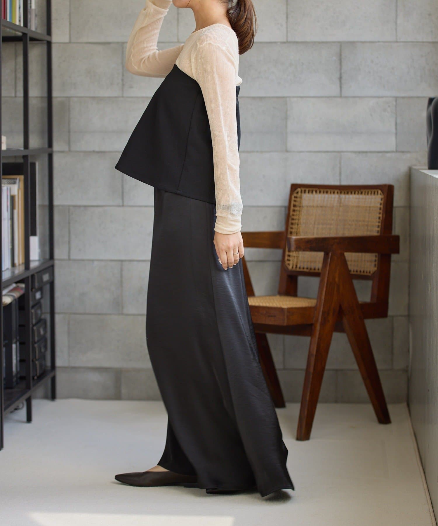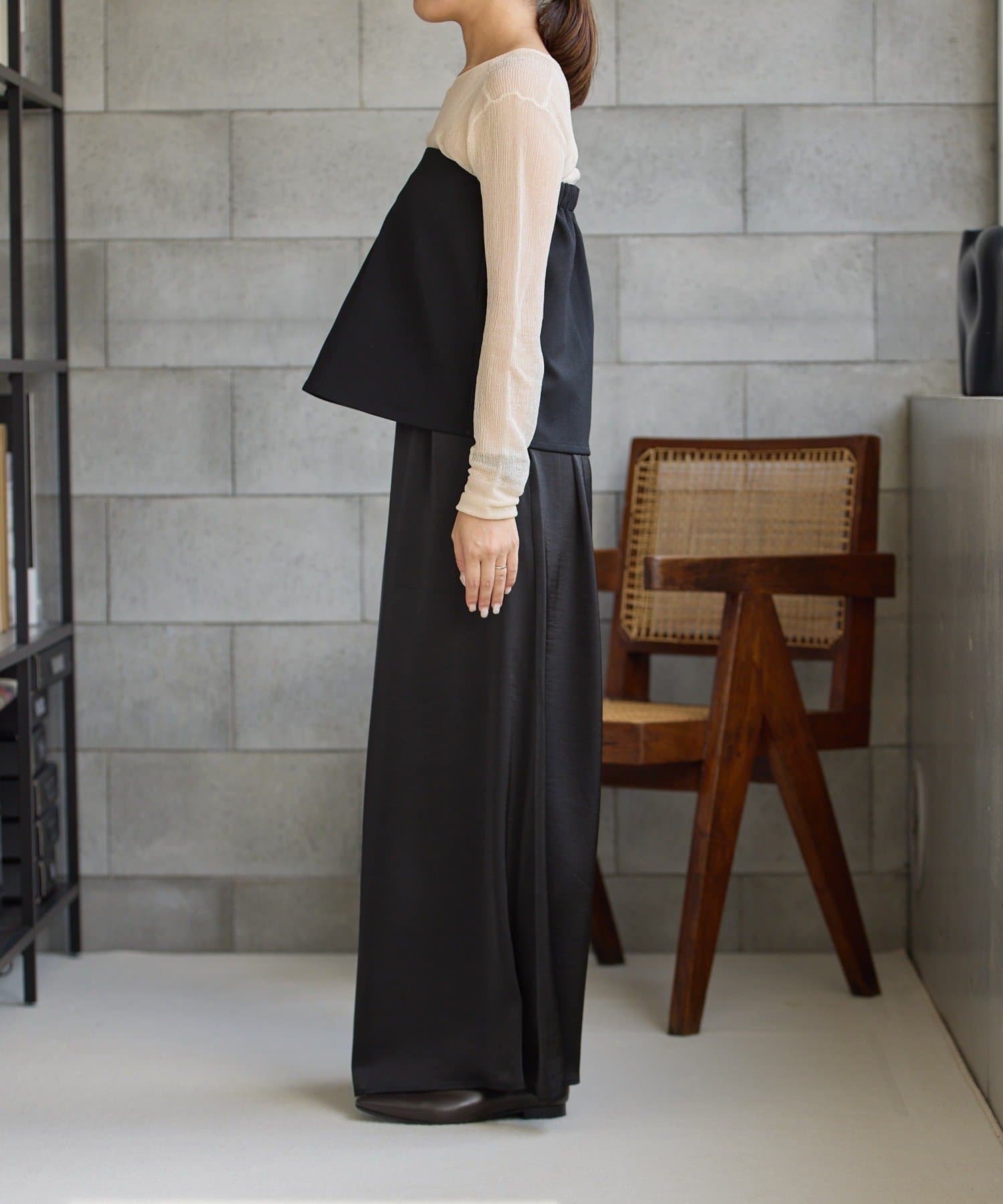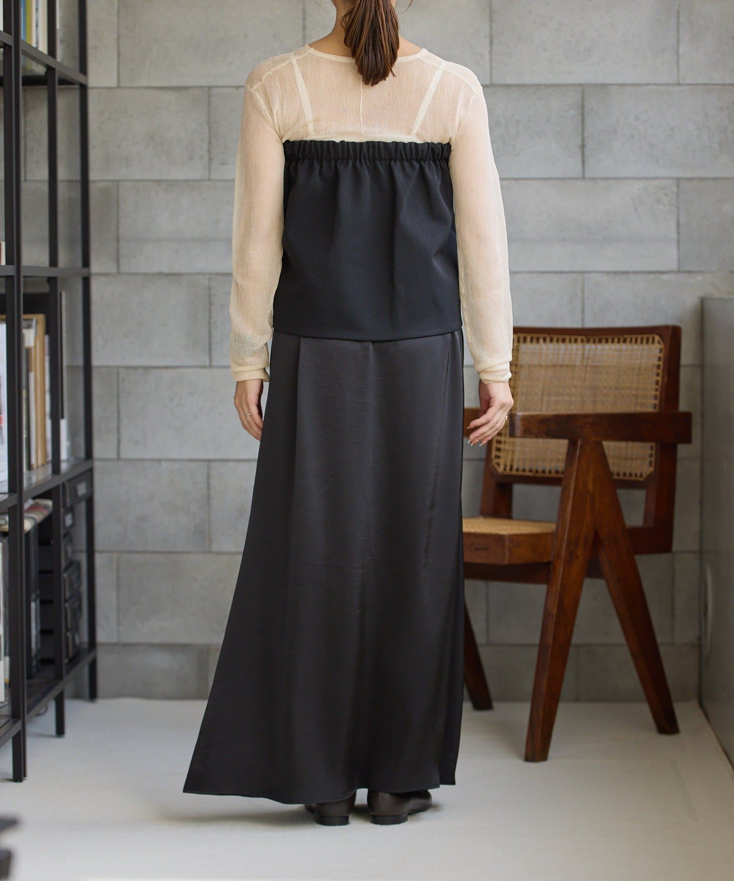 レイヤードすることでお尻周りをカバーできるのも嬉しいポイント◎