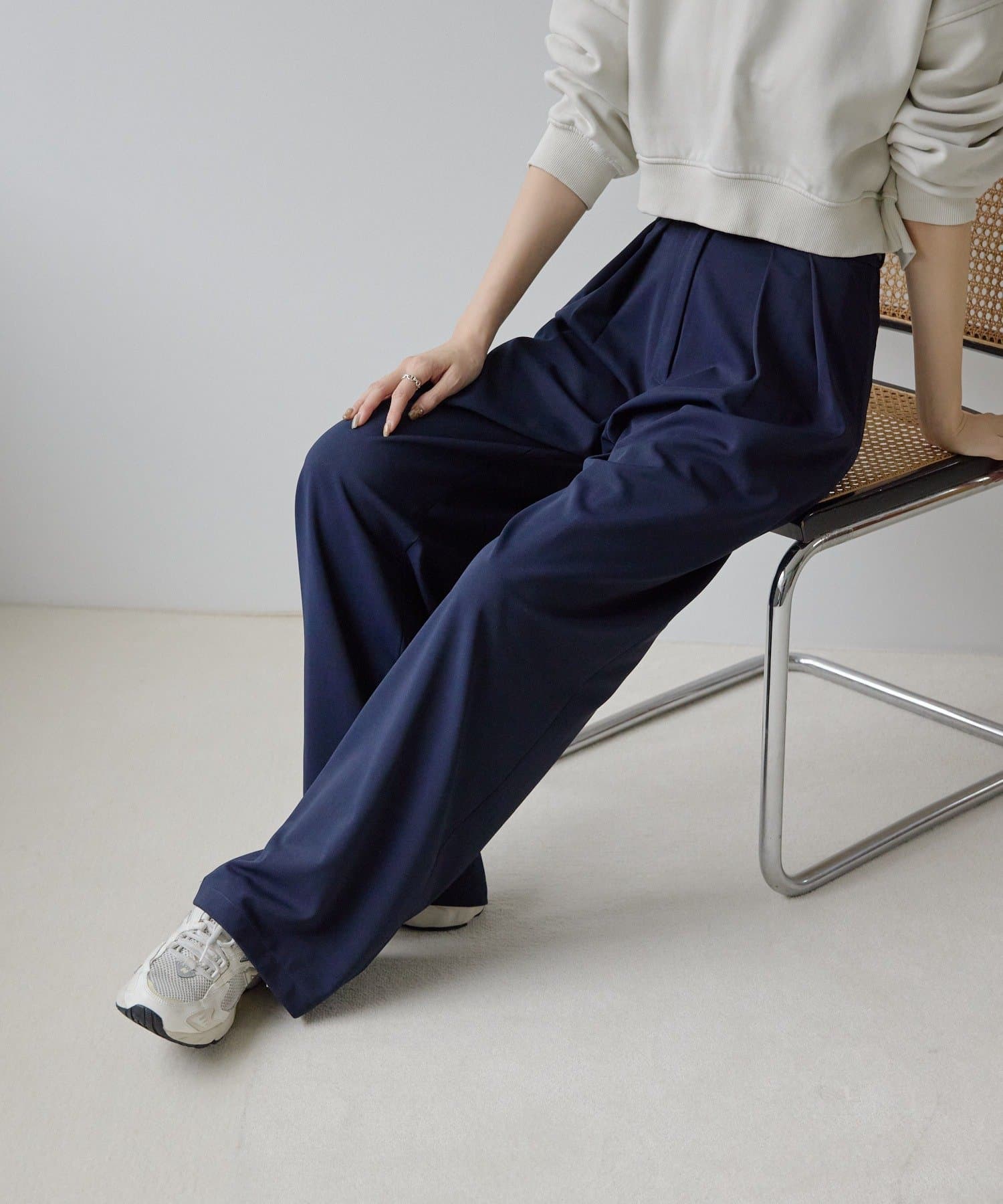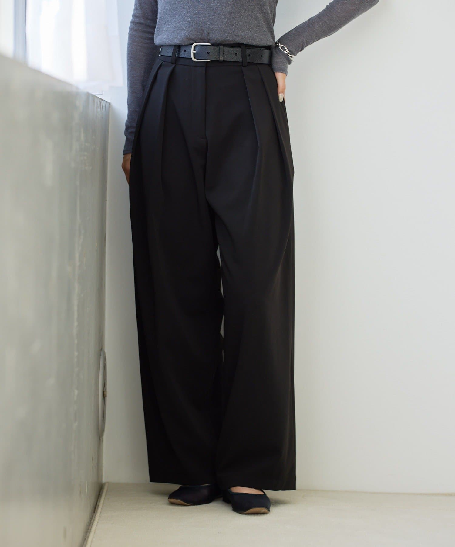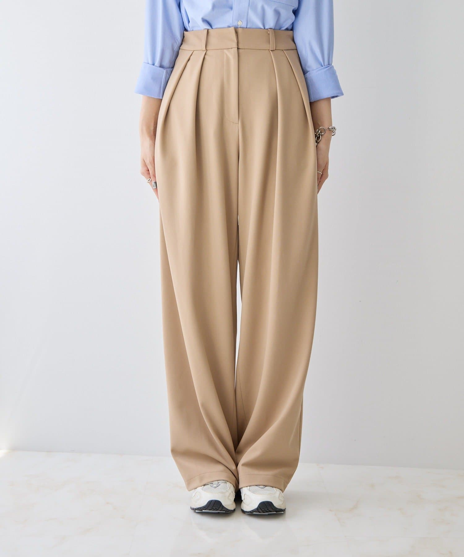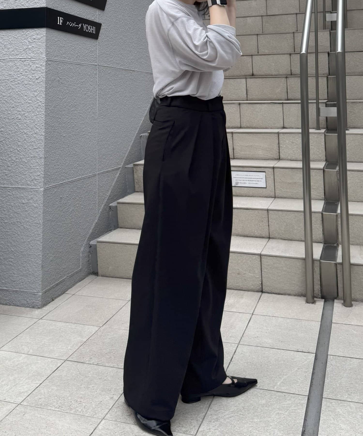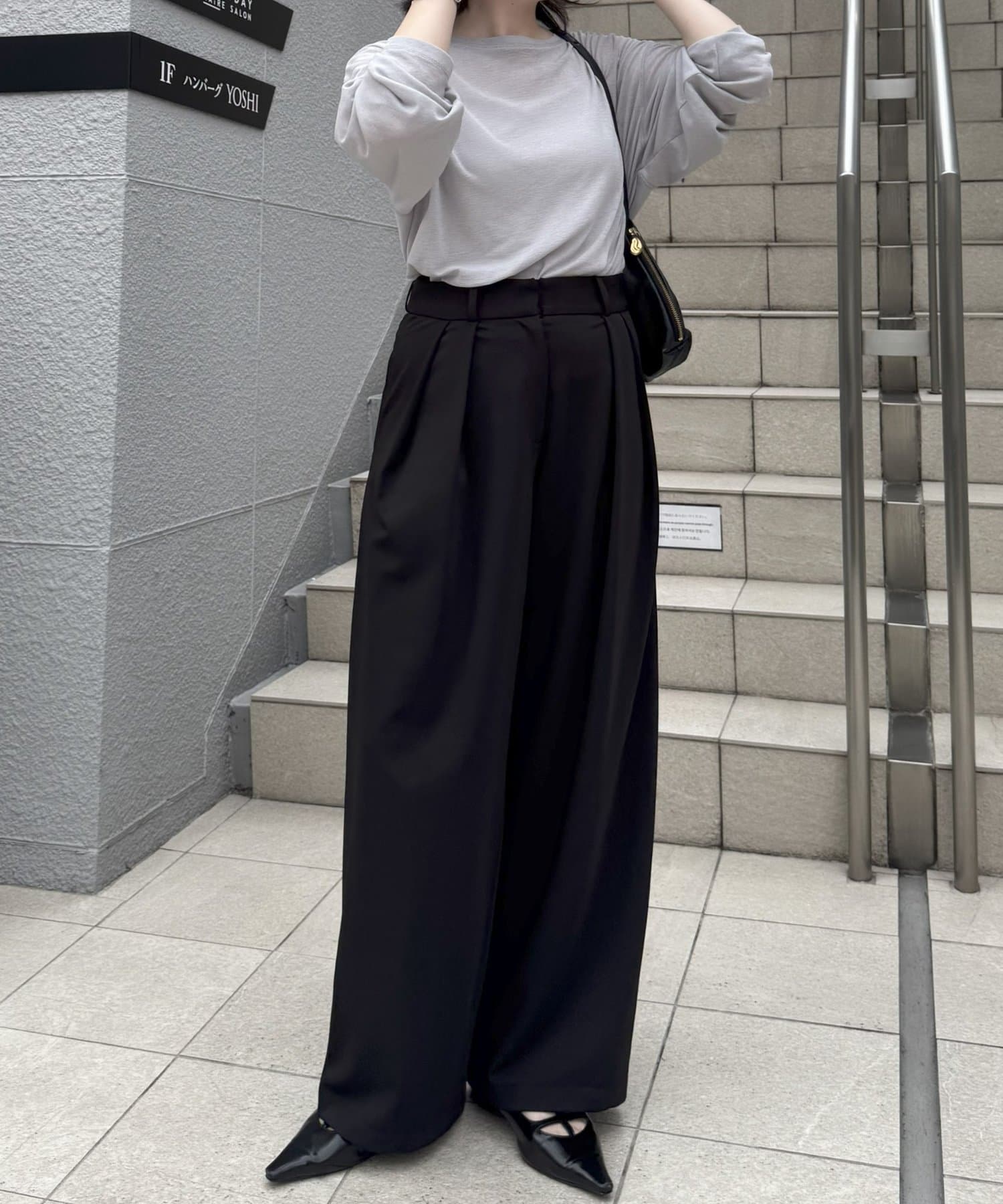 高身長でも、絶妙な「ズルっと感」。理想の美脚を叶える、高身長のためのタックワイドパンツ