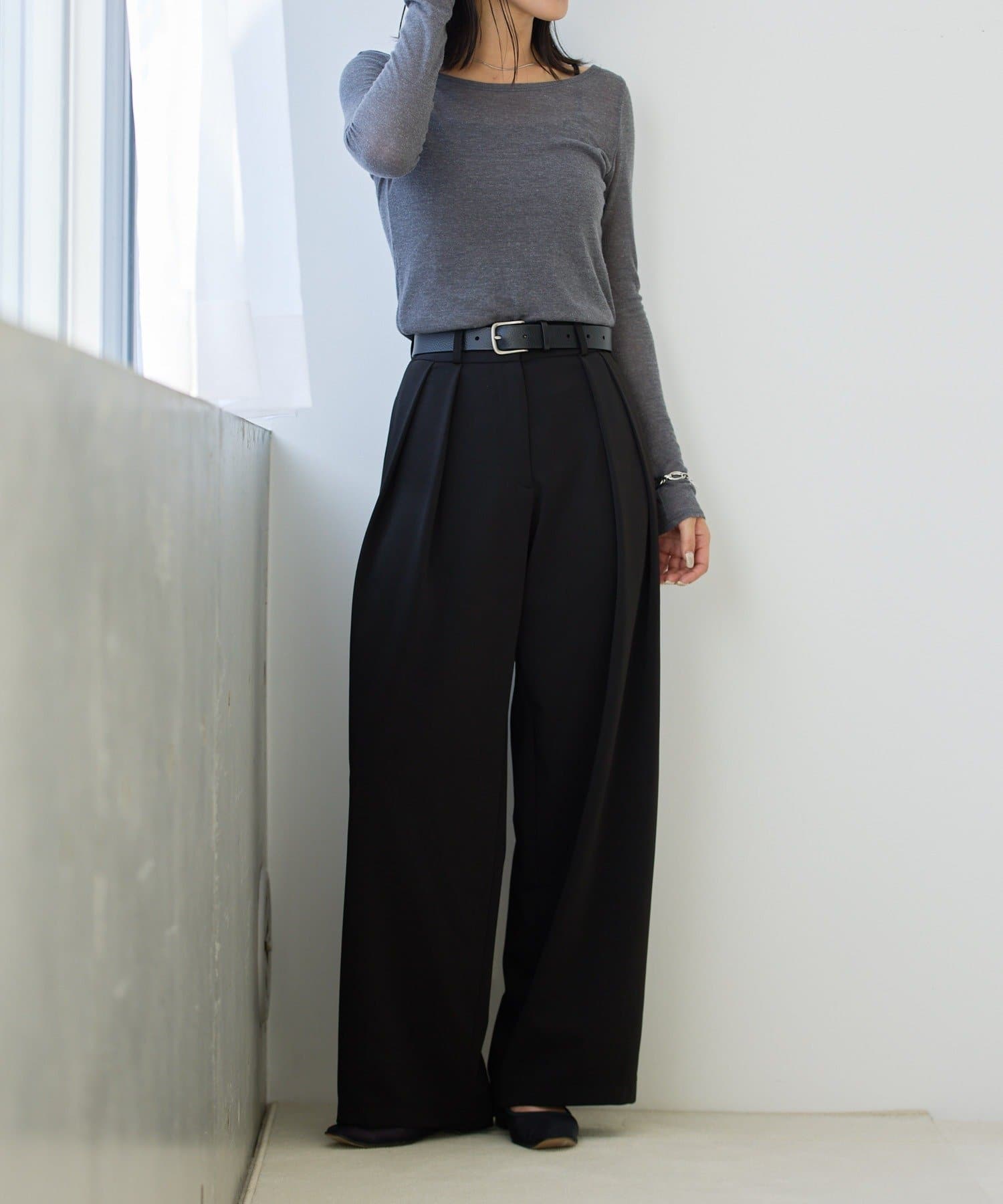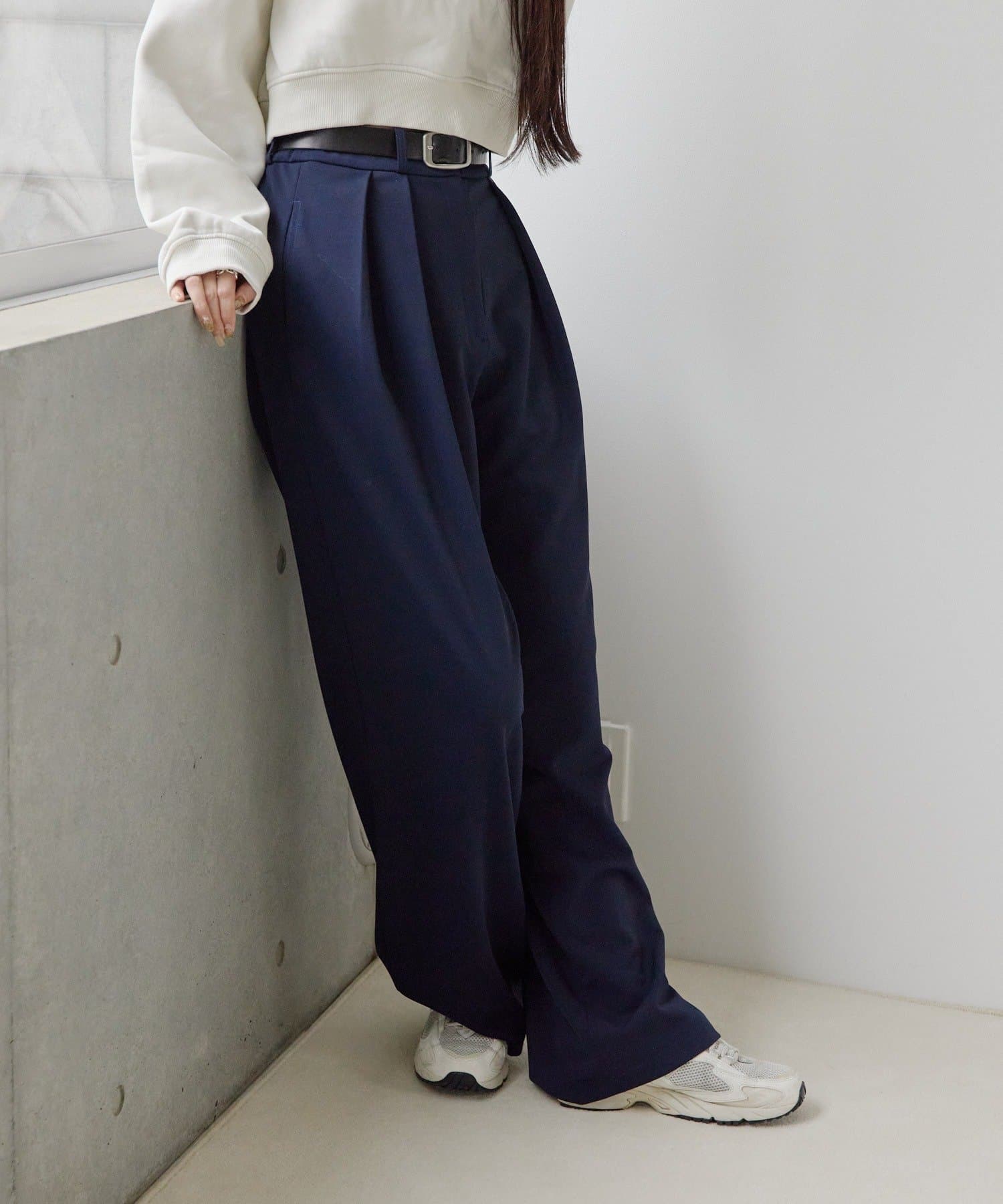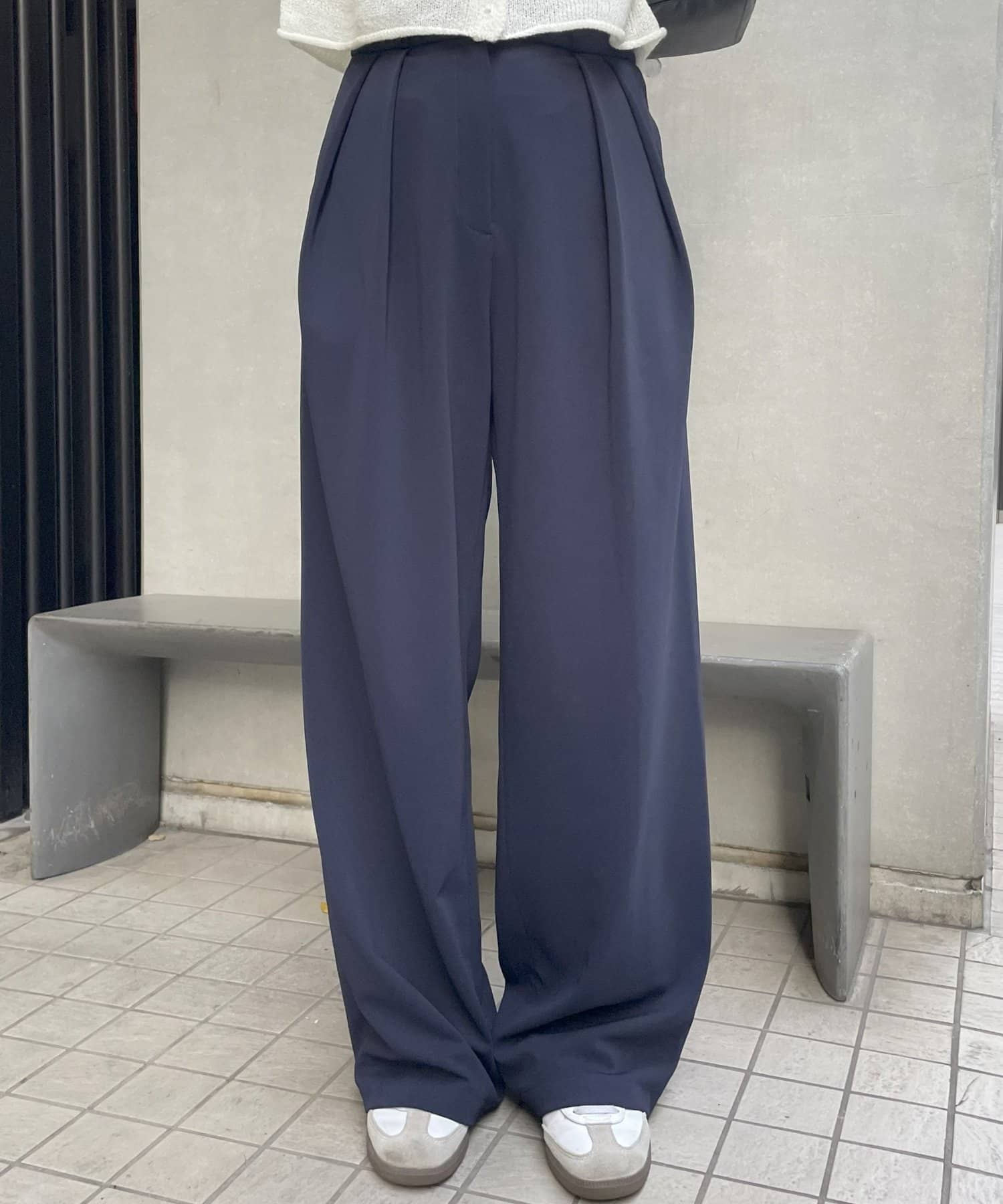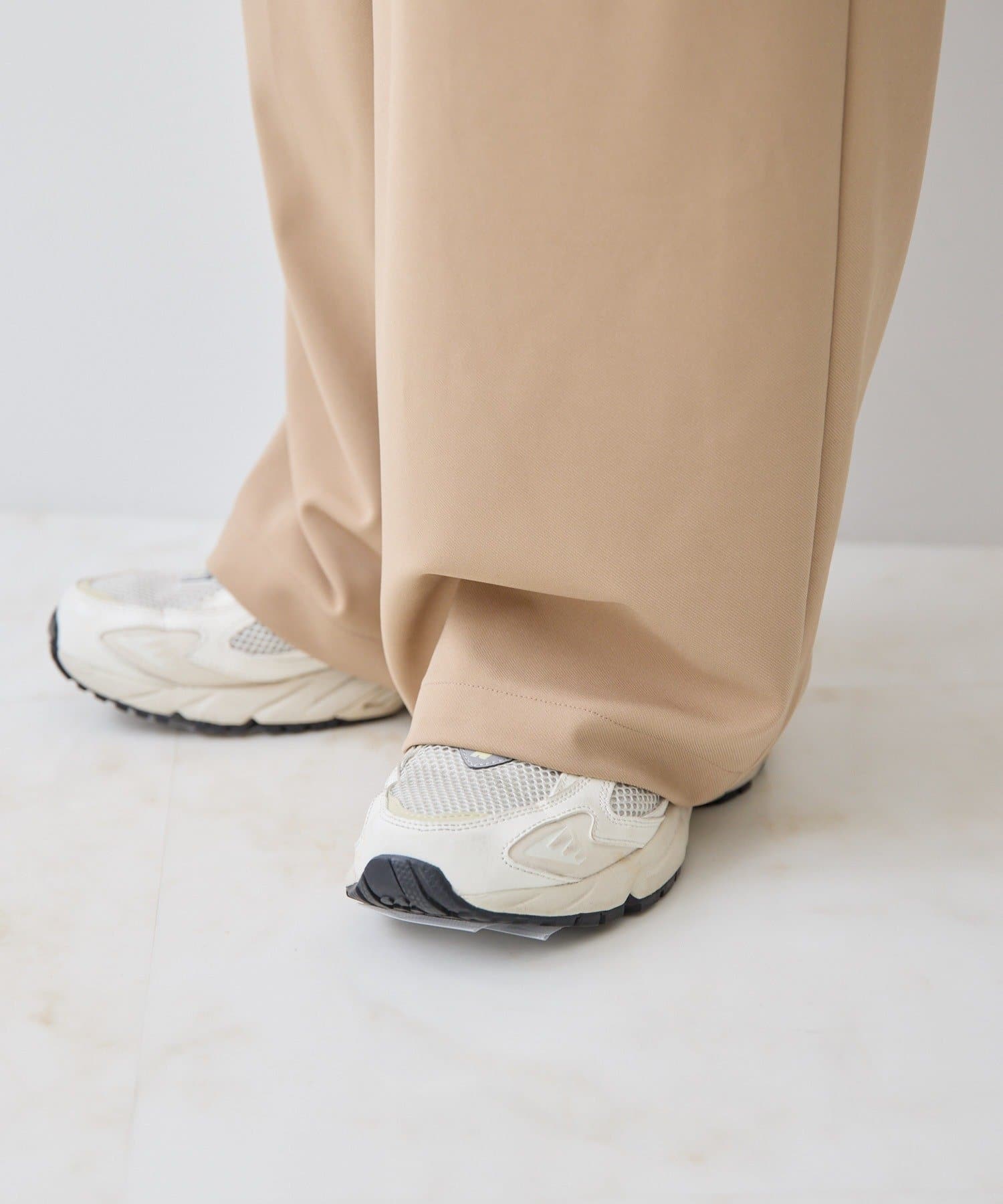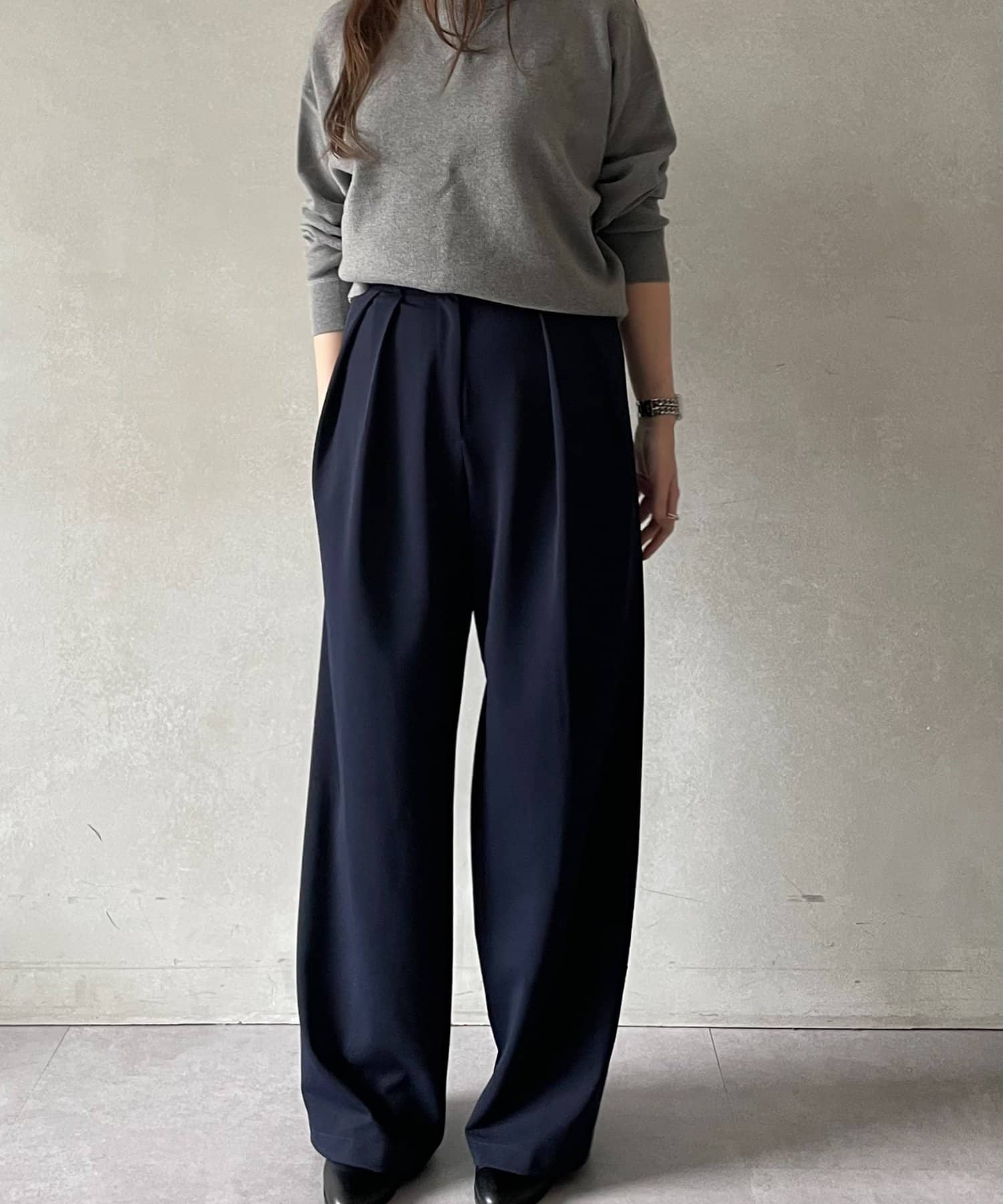 高身長でも、絶妙な「ズルっと感」。理想の美脚を叶える、高身長のためのタックワイドパンツ