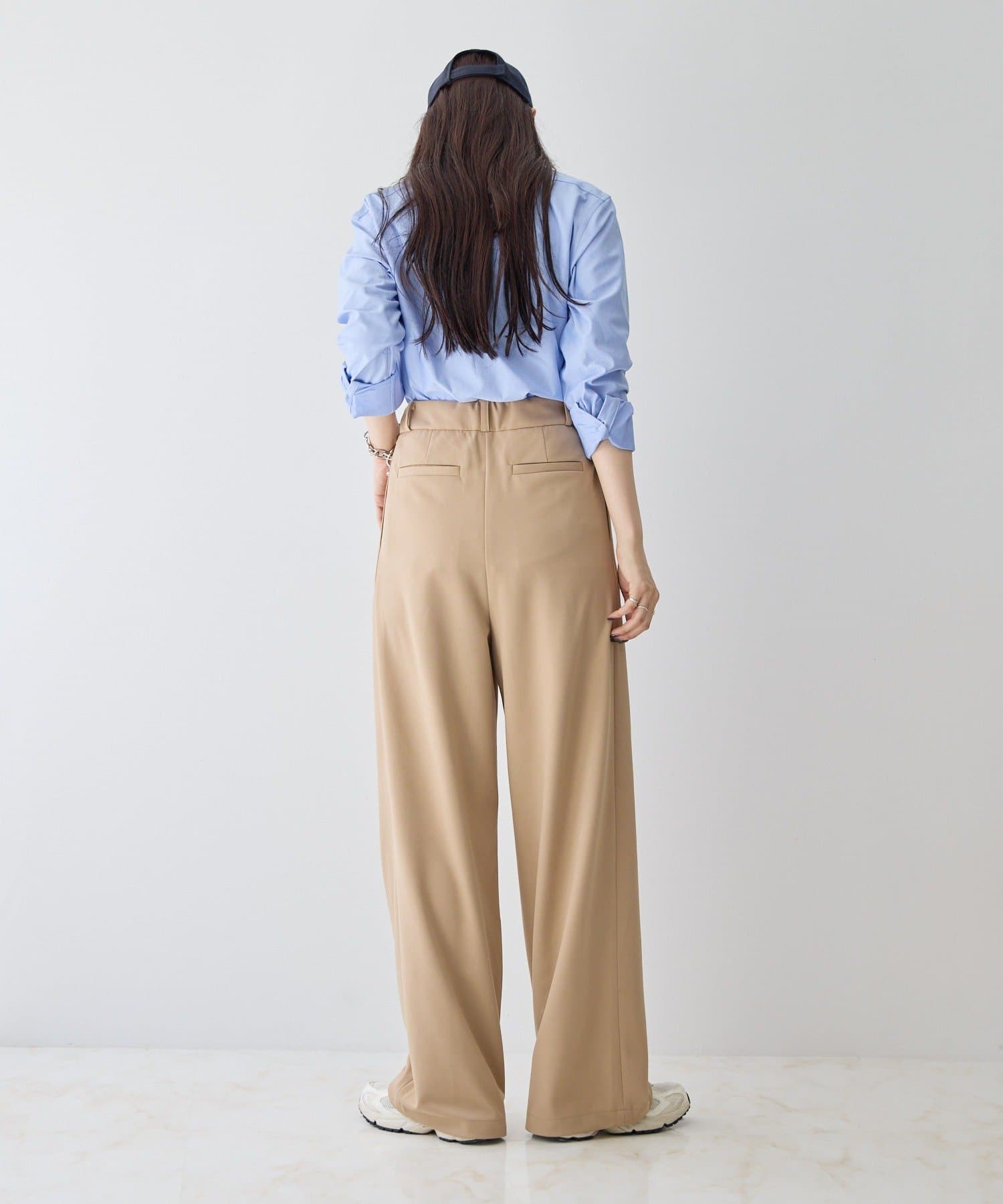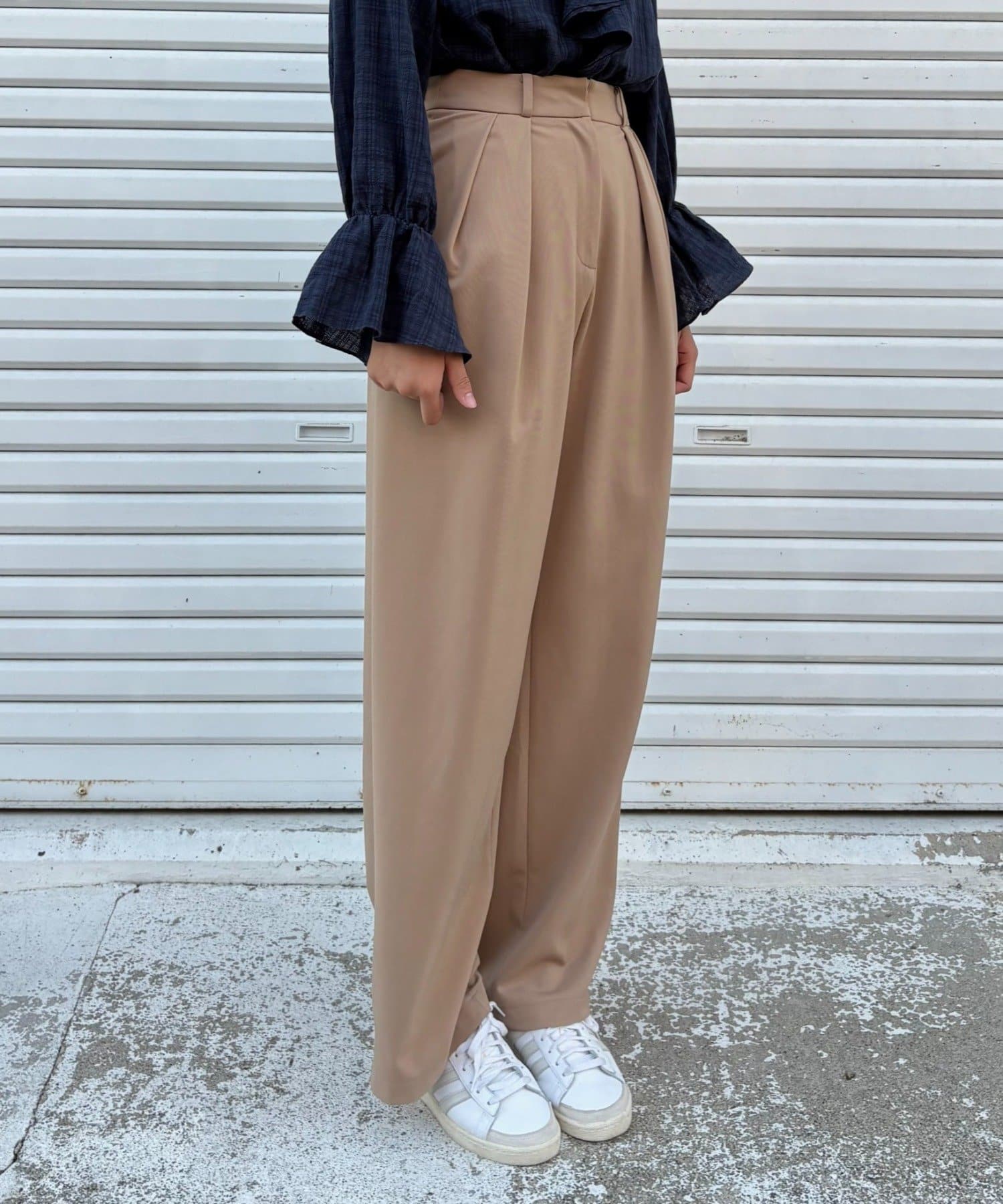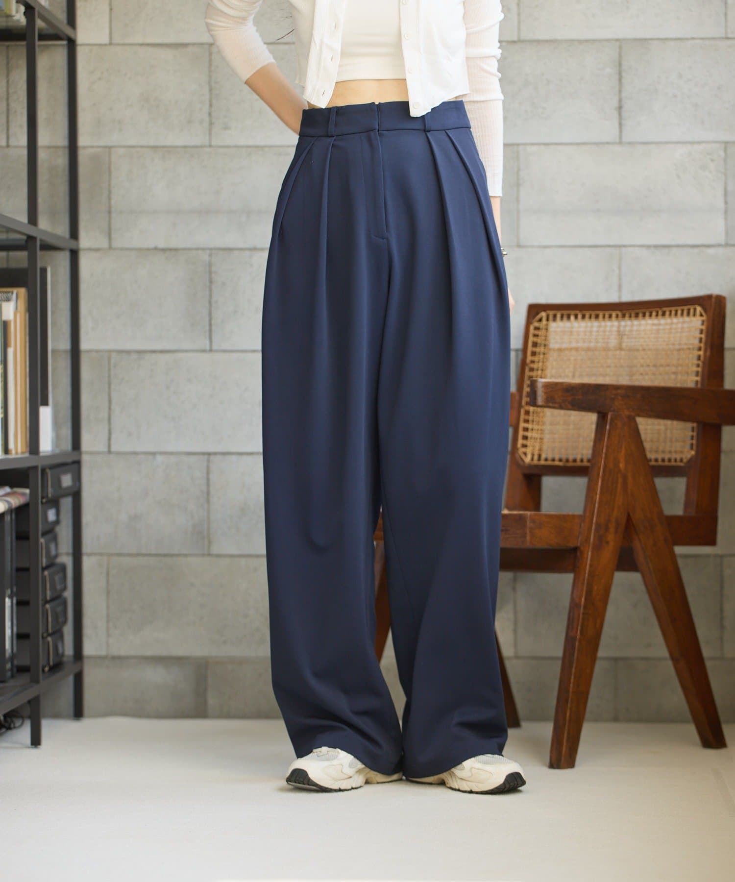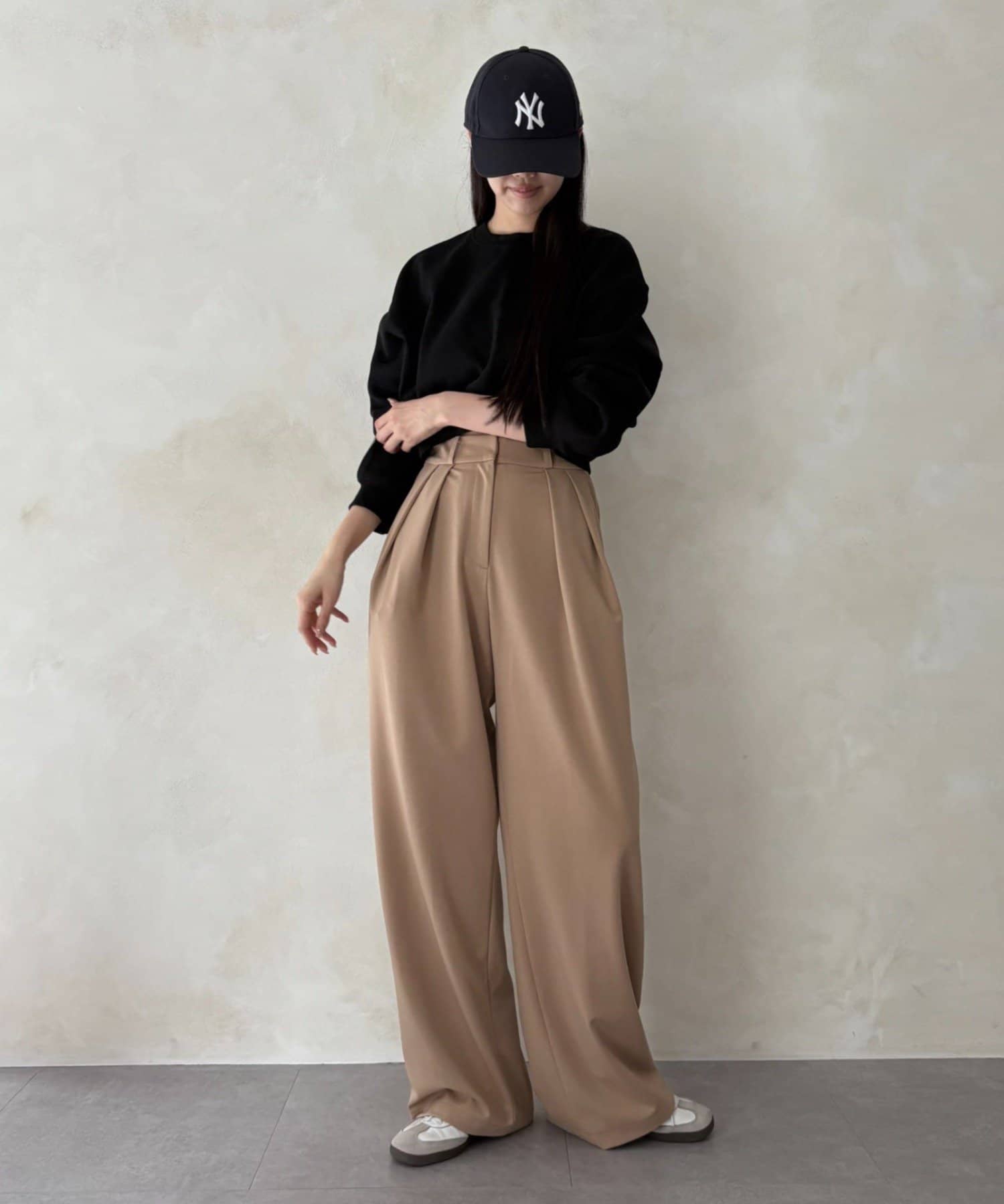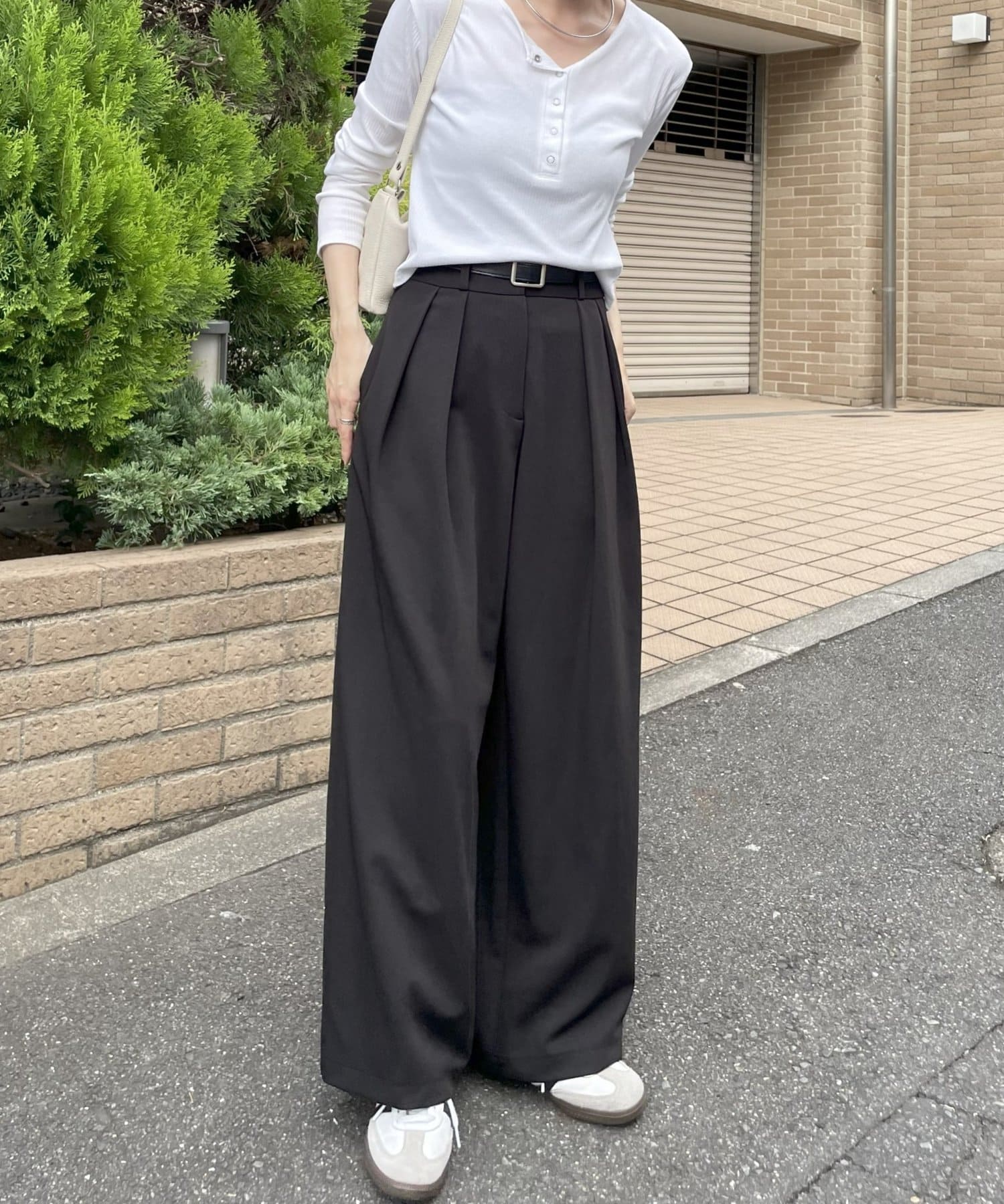 高身長でも、絶妙な「ズルっと感」。理想の美脚を叶える、高身長のためのタックワイドパンツ