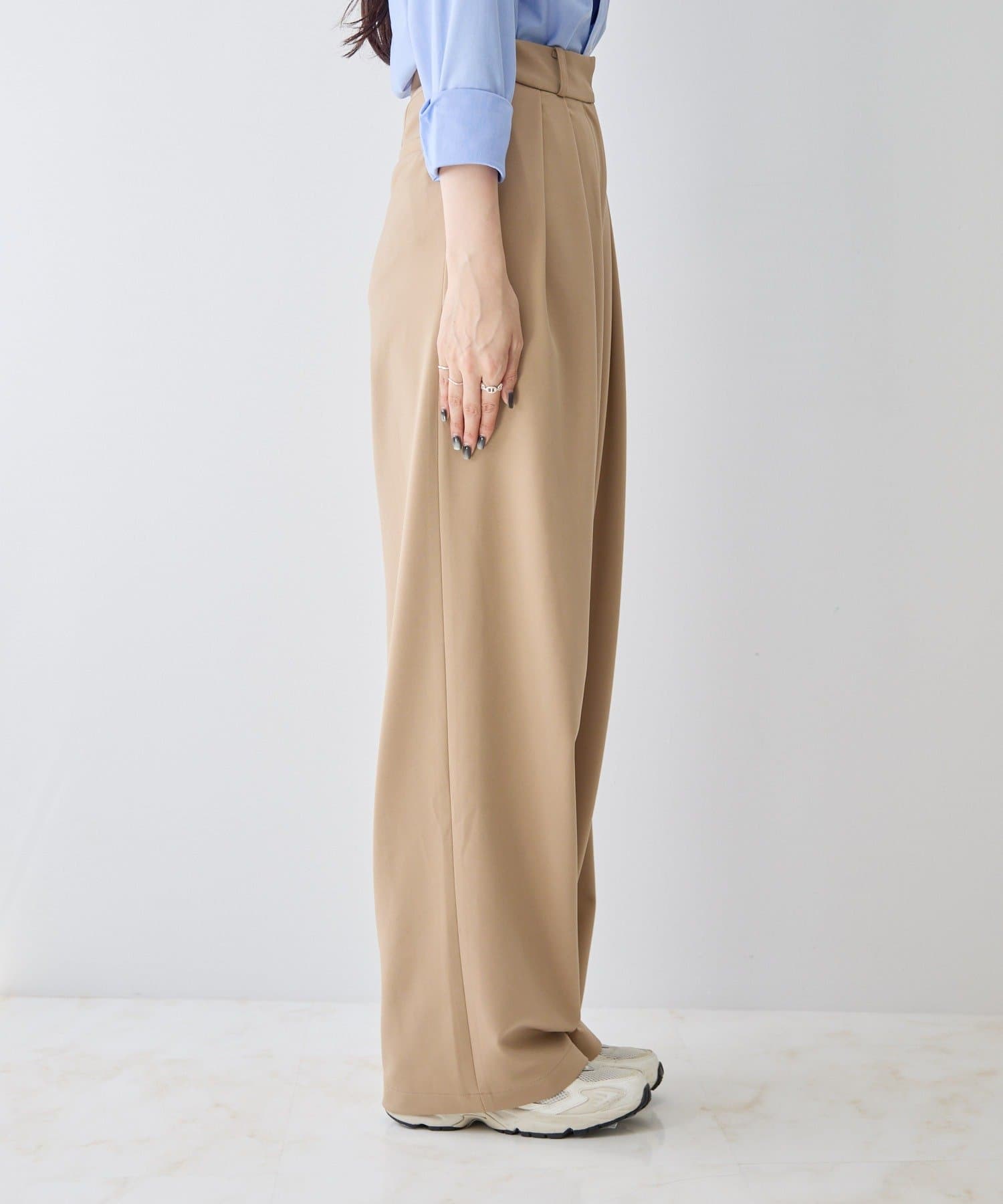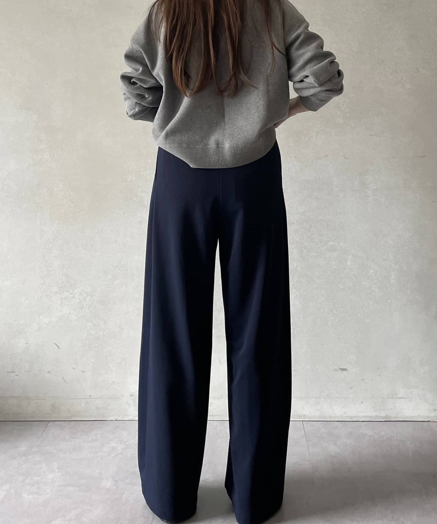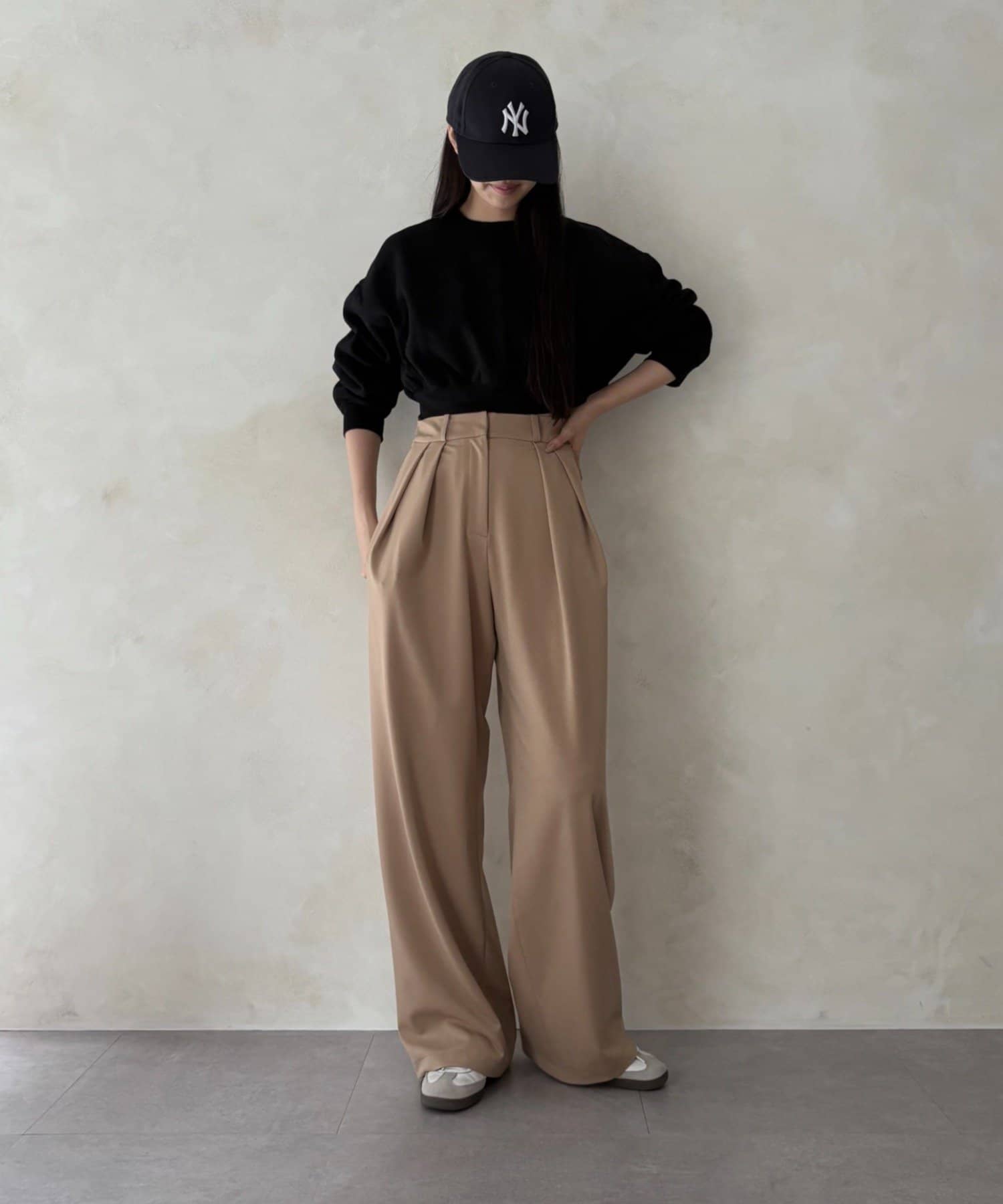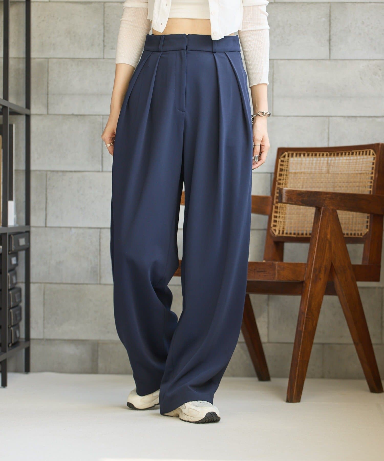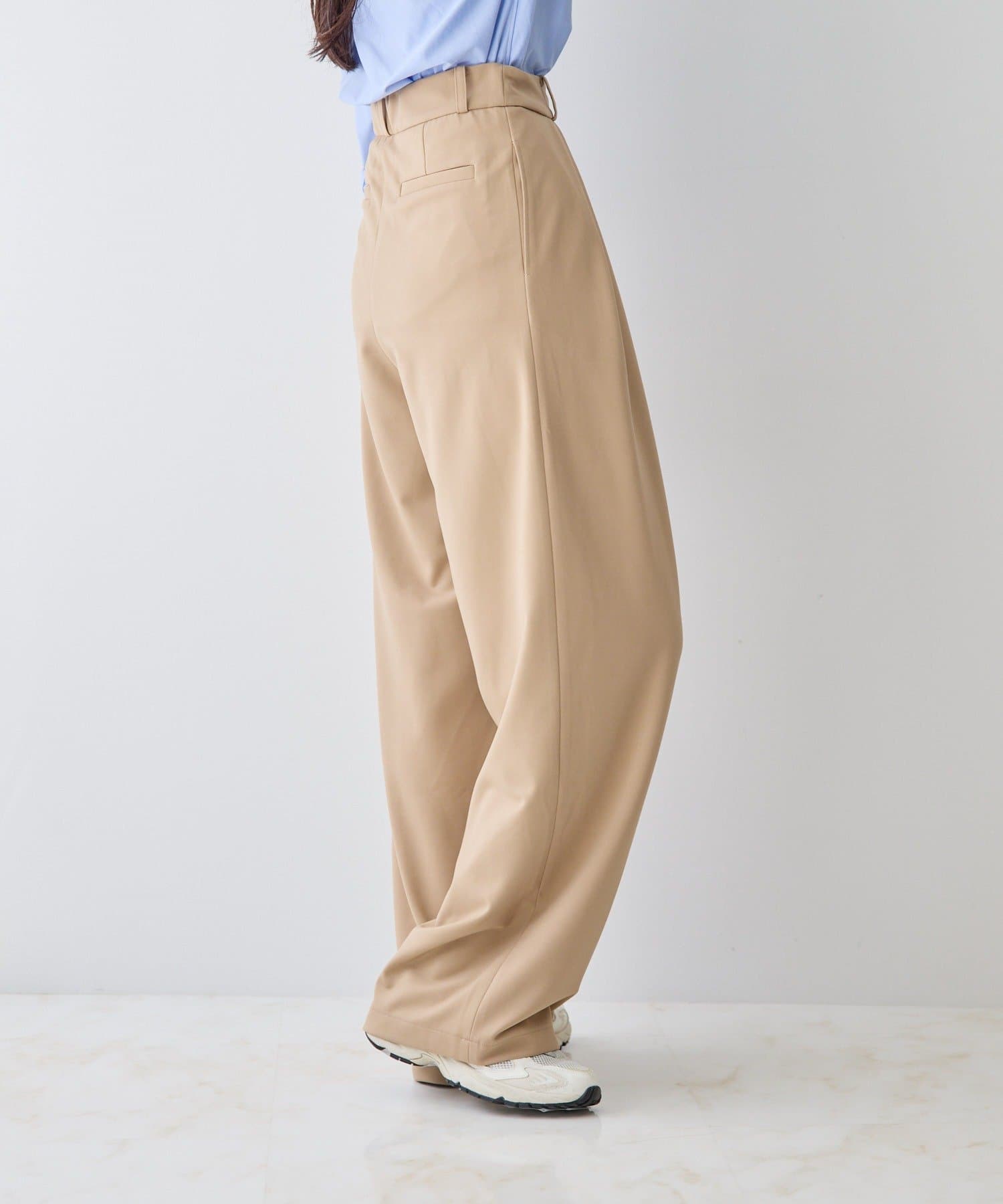 高身長でも、絶妙な「ズルっと感」。理想の美脚を叶える、高身長のためのタックワイドパンツ