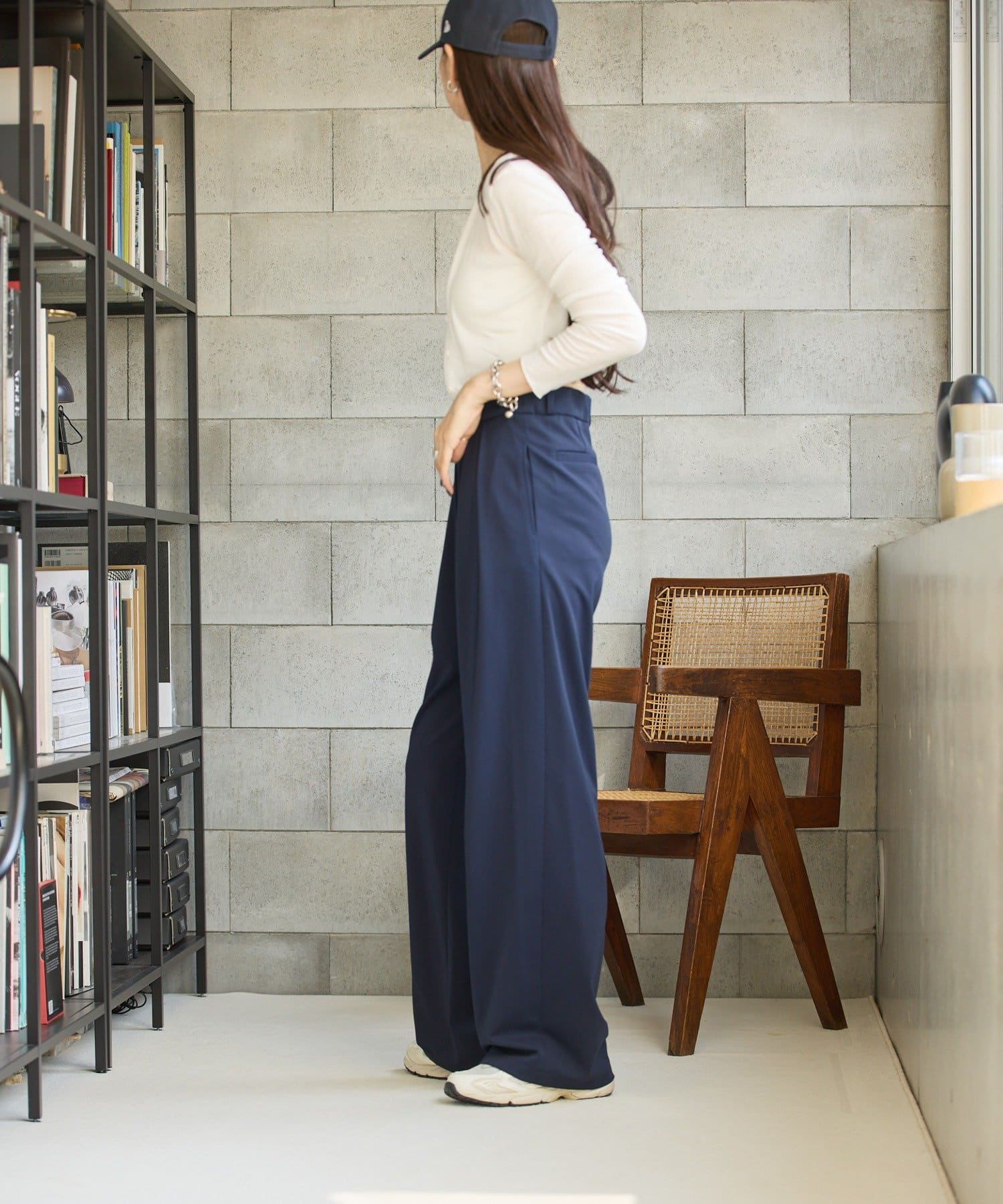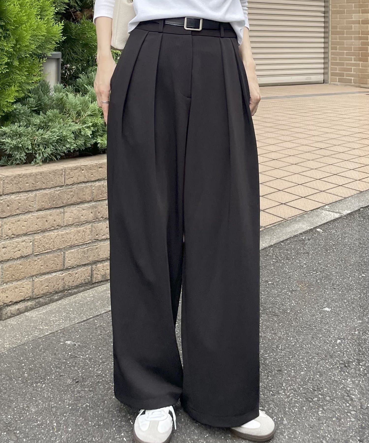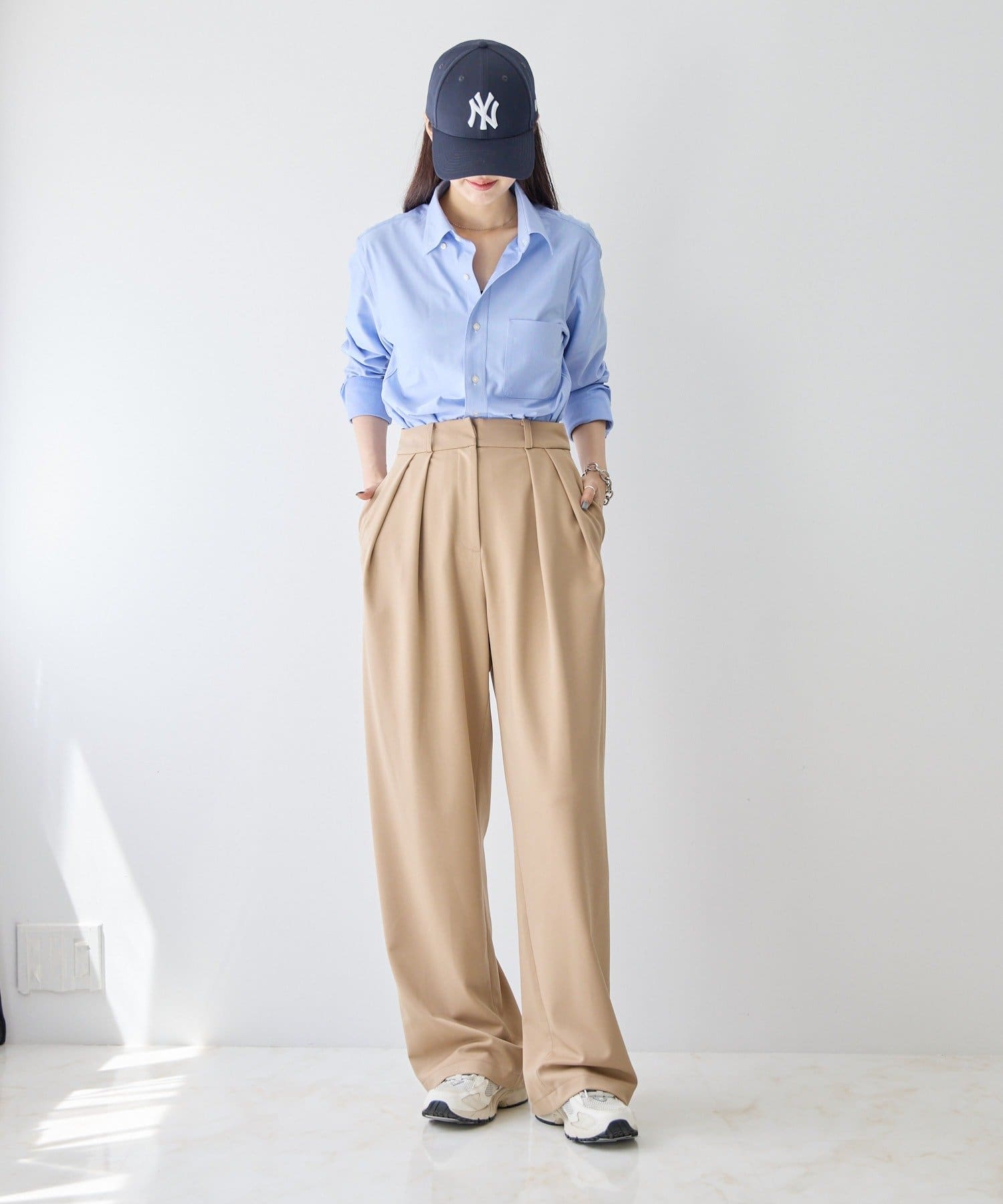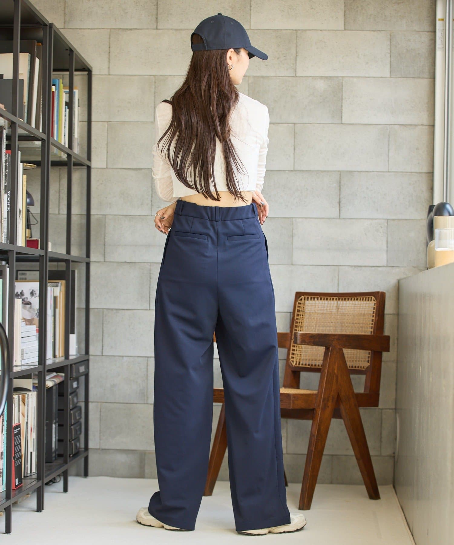 高身長でも、絶妙な「ズルっと感」。理想の美脚を叶える、高身長のためのタックワイドパンツ