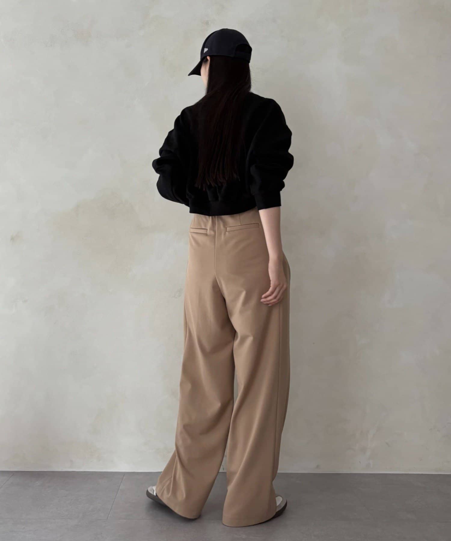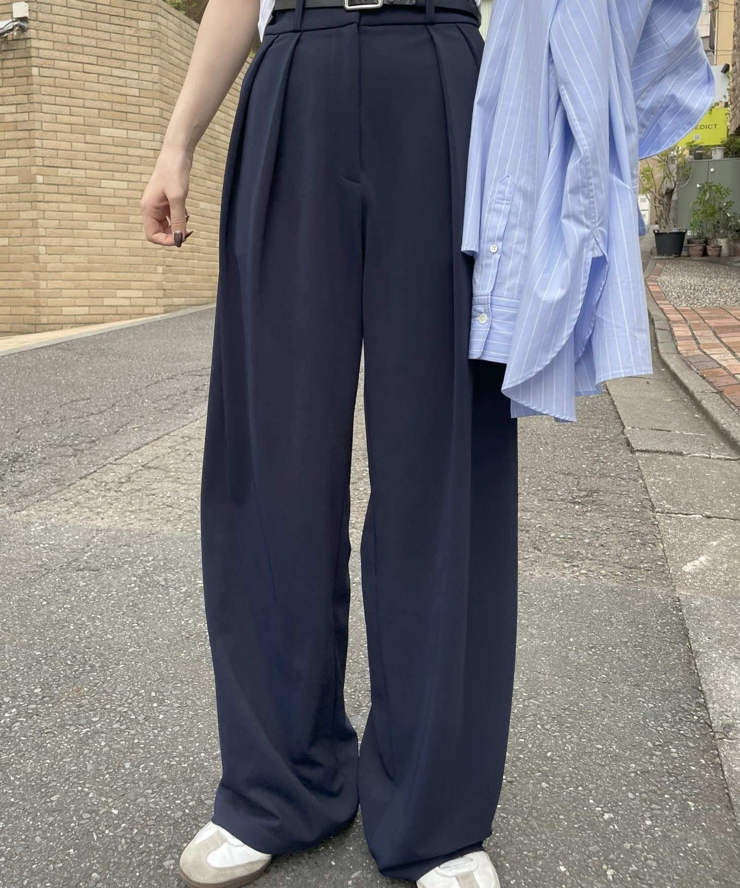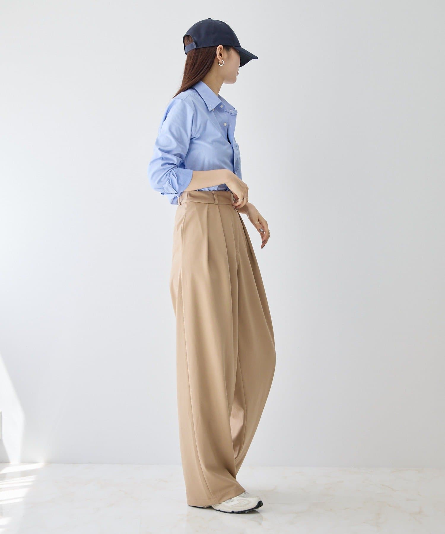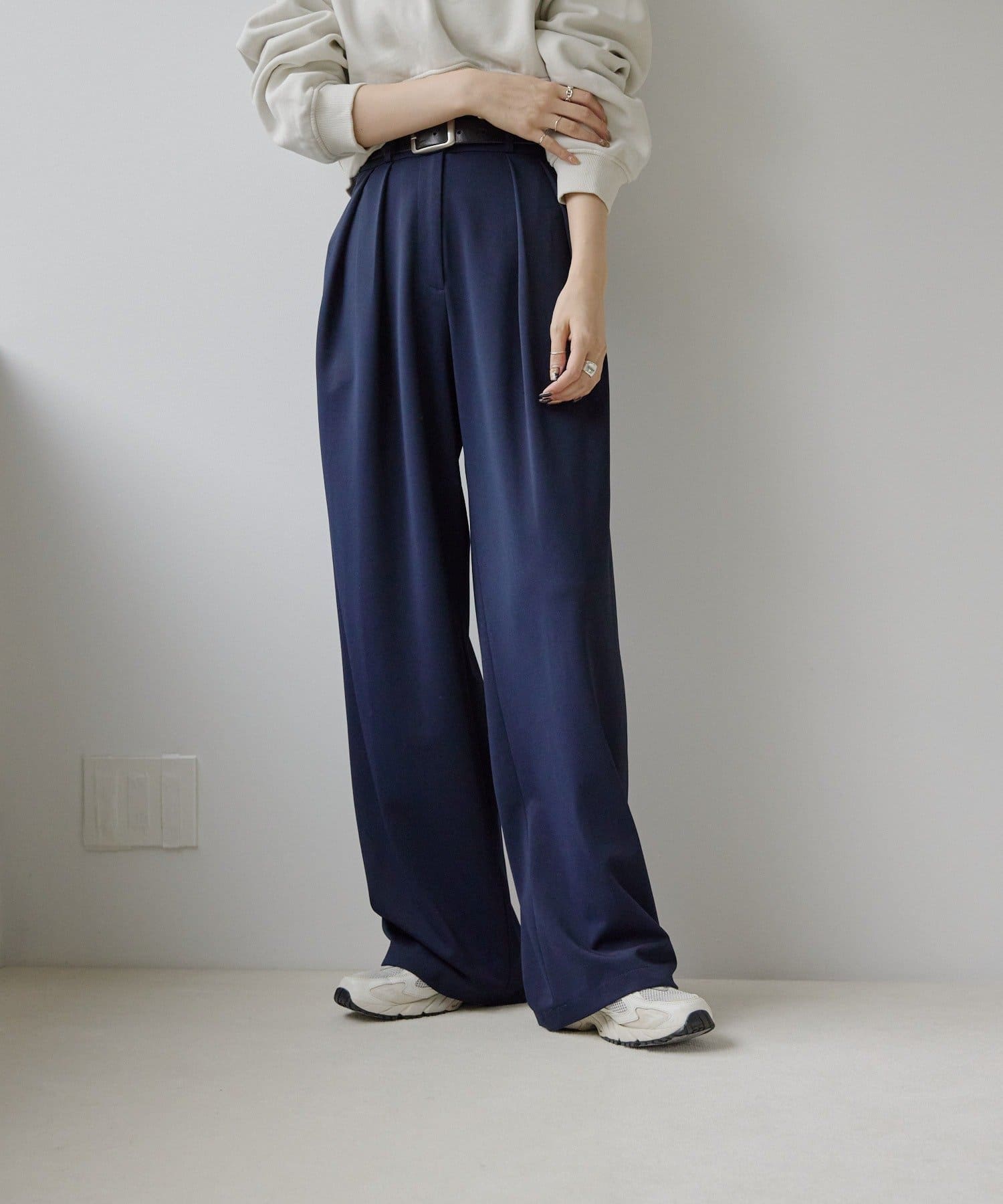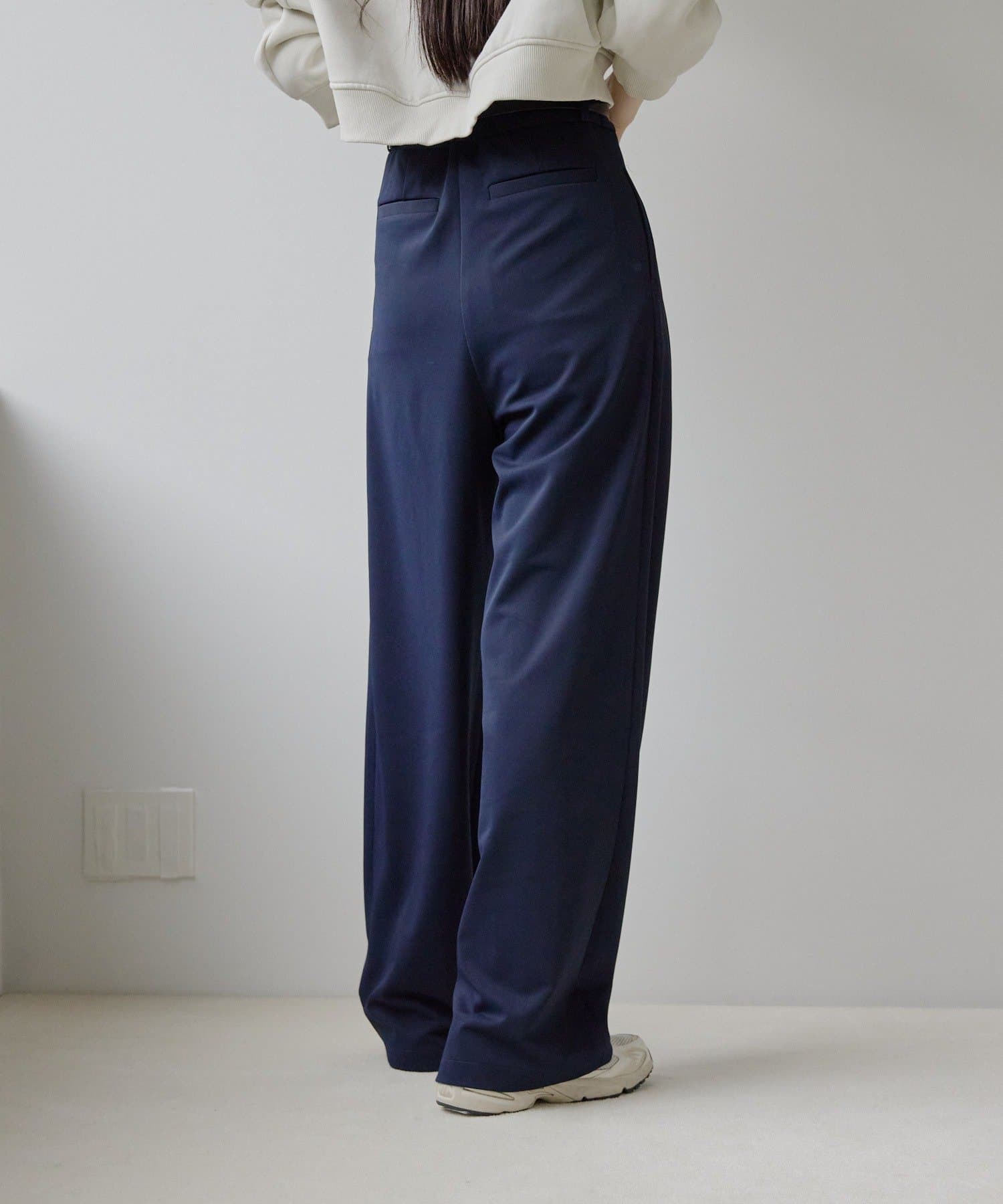 高身長でも、絶妙な「ズルっと感」。理想の美脚を叶える、高身長のためのタックワイドパンツ
