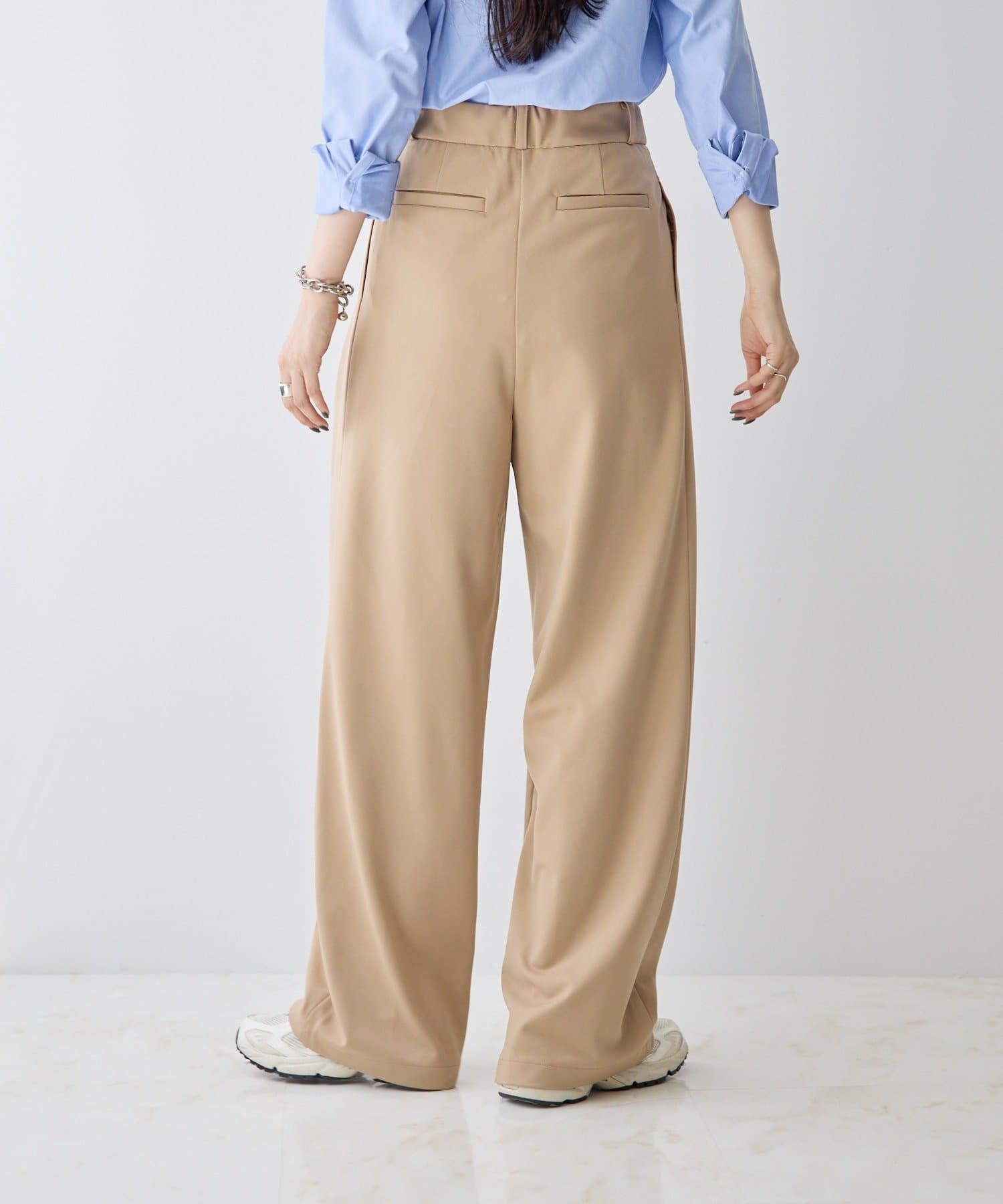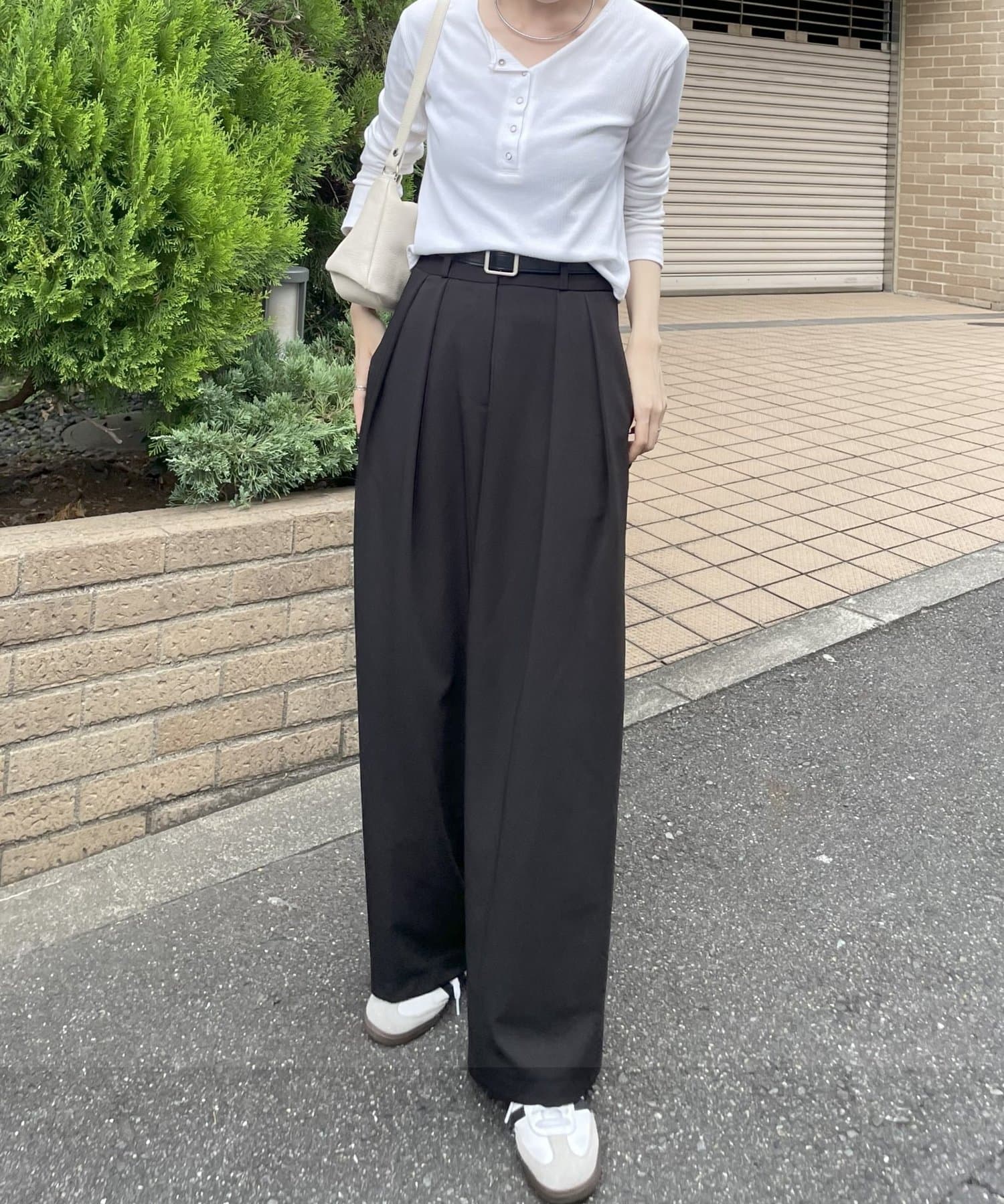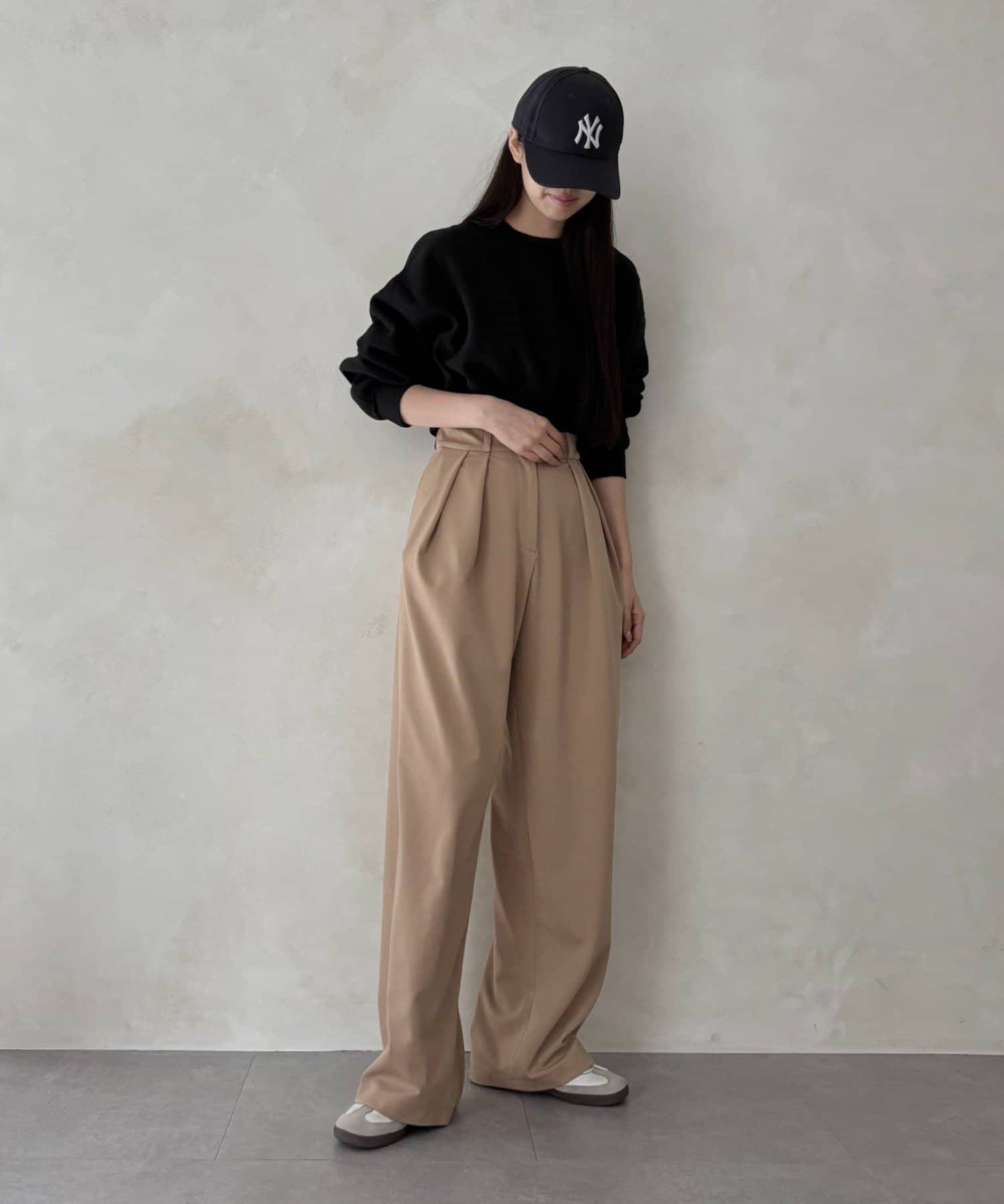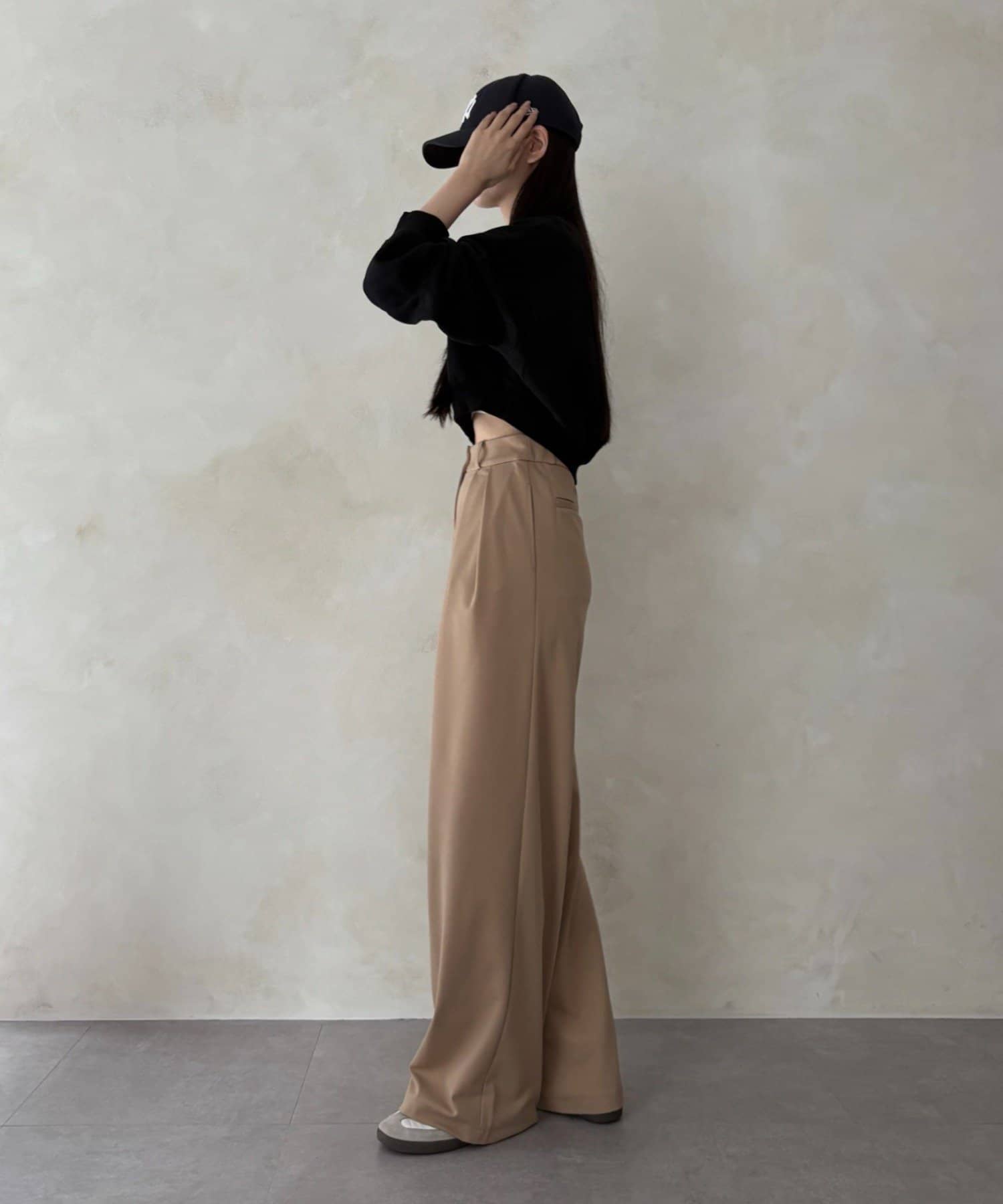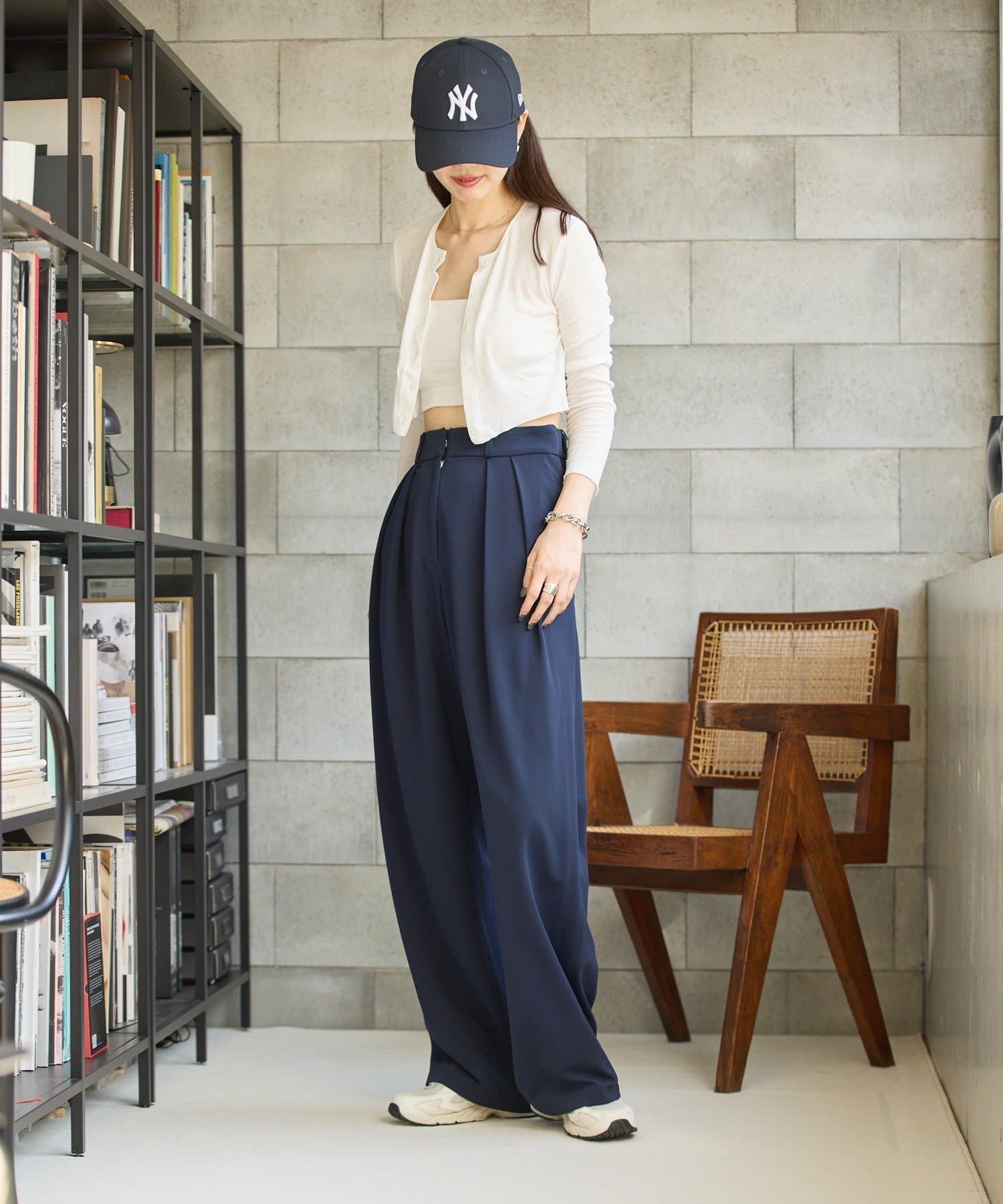 高身長でも、絶妙な「ズルっと感」。理想の美脚を叶える、高身長のためのタックワイドパンツ