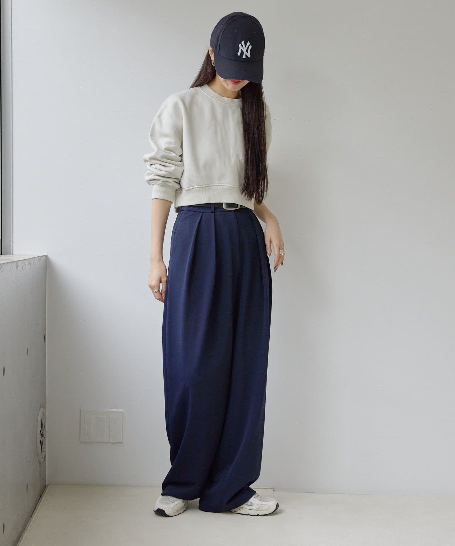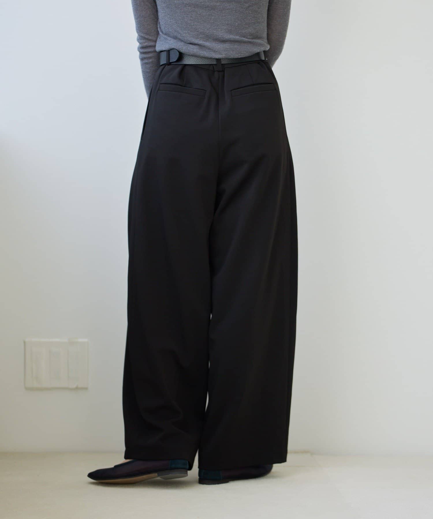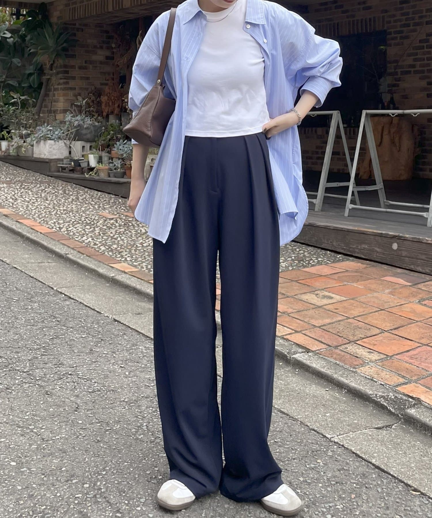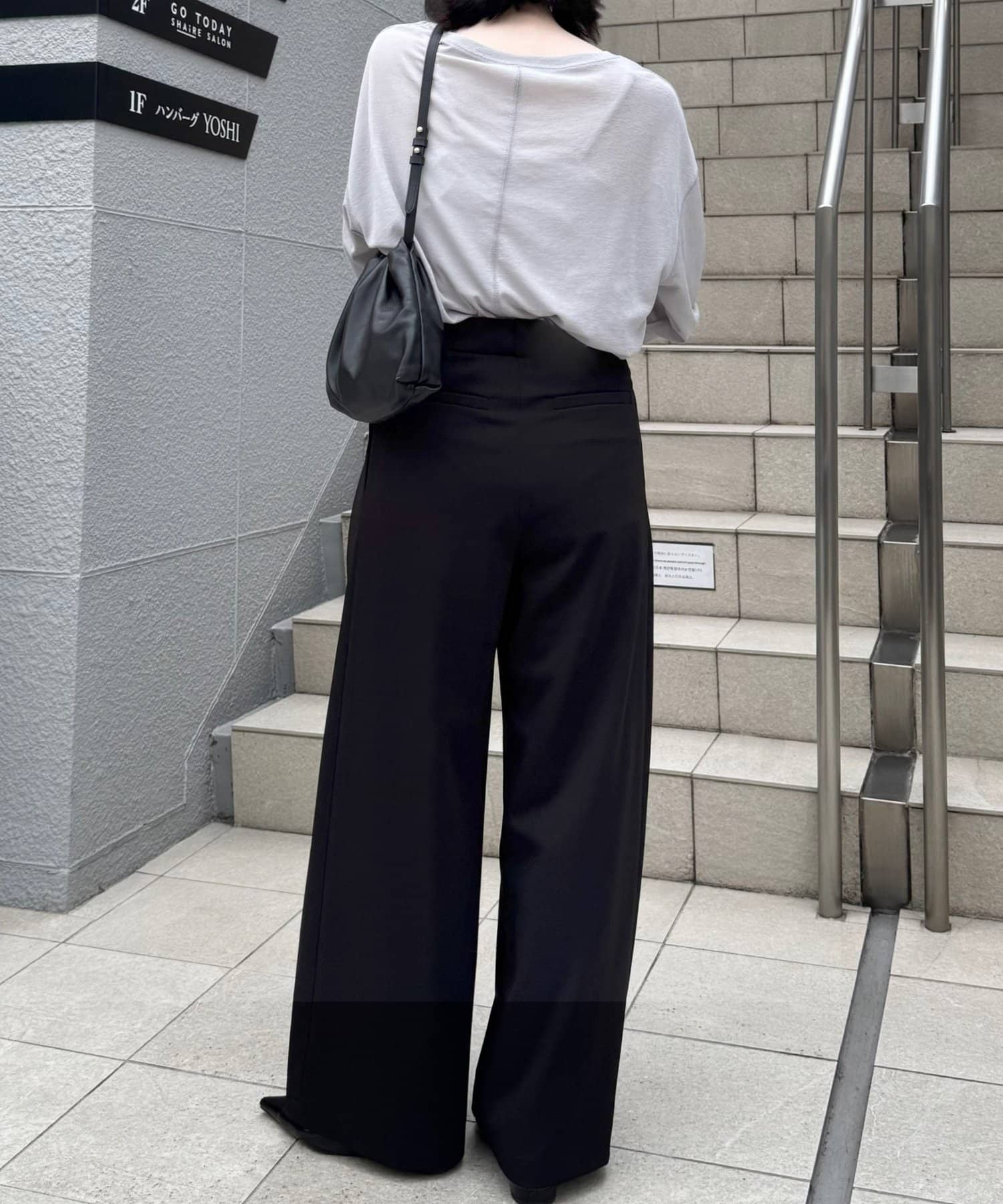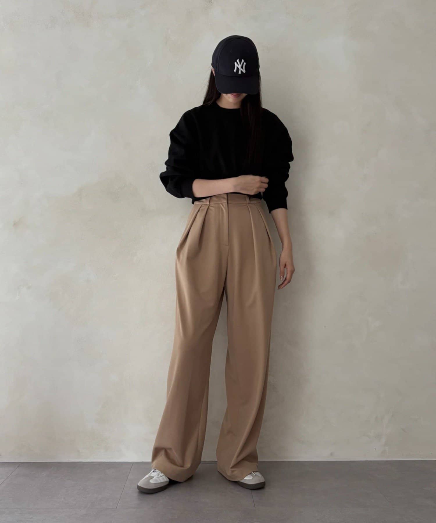 高身長でも、絶妙な「ズルっと感」。理想の美脚を叶える、高身長のためのタックワイドパンツ
