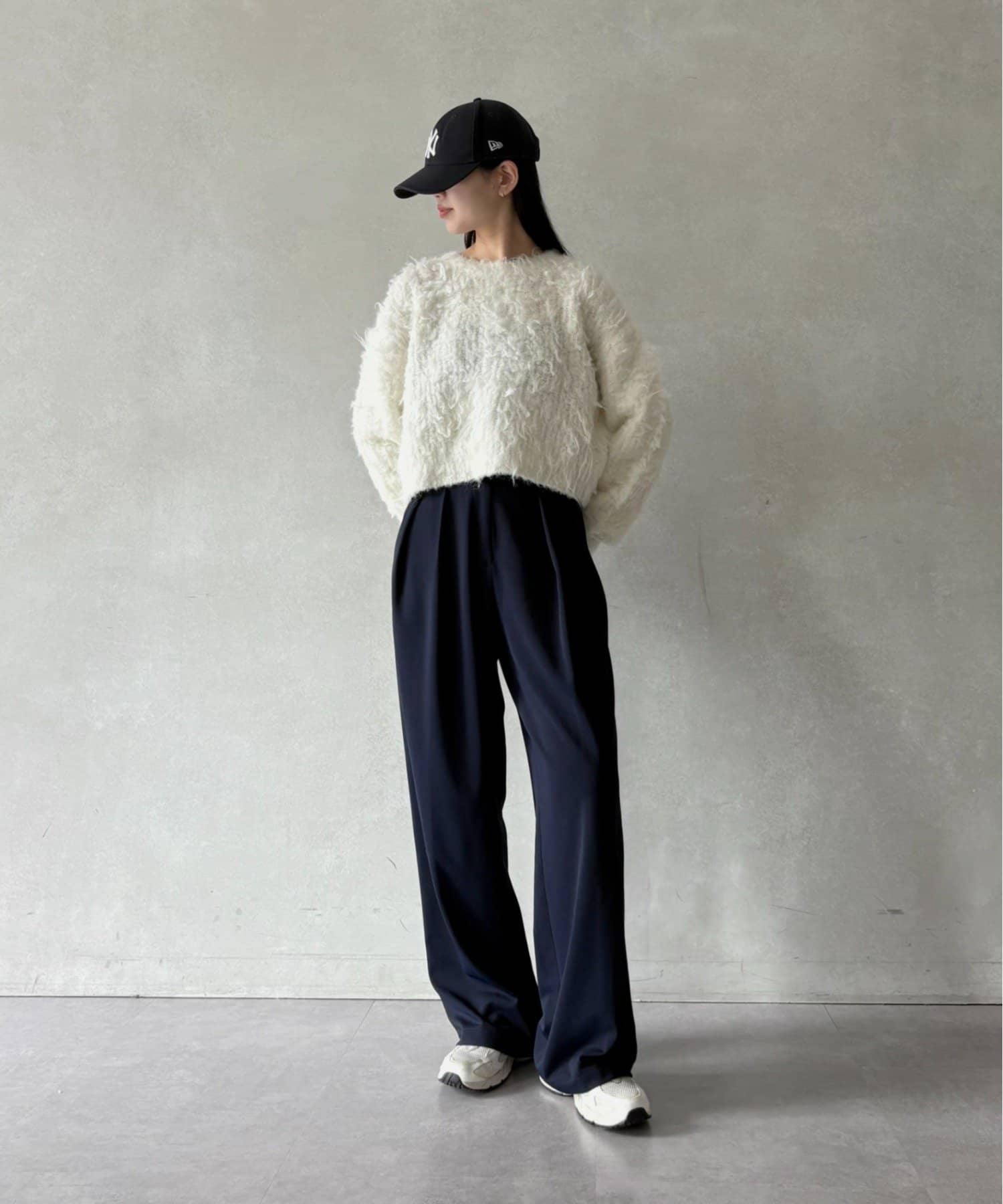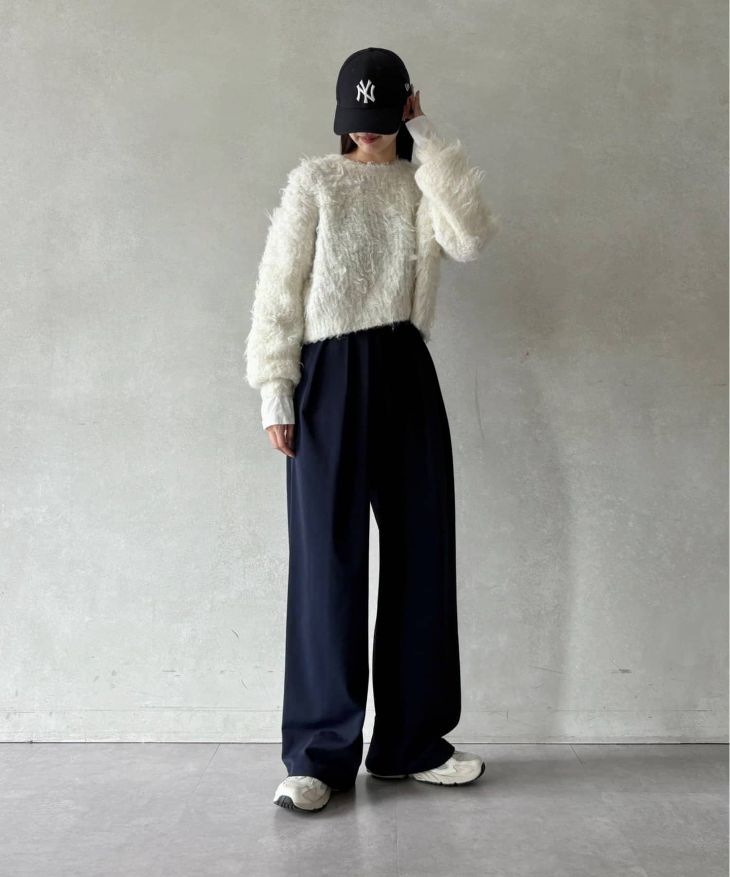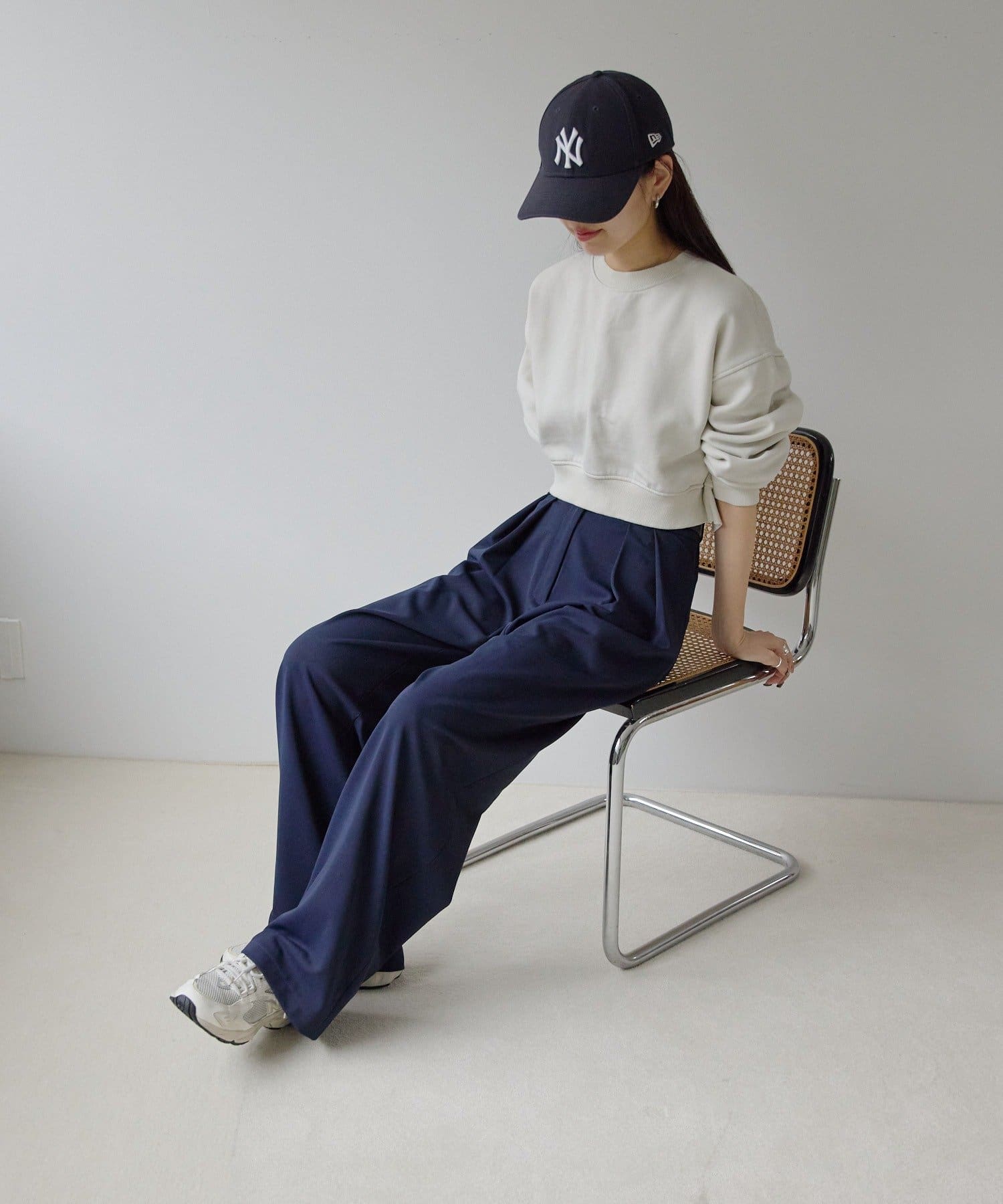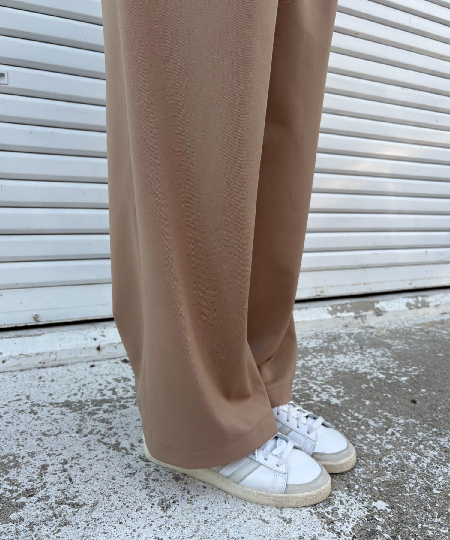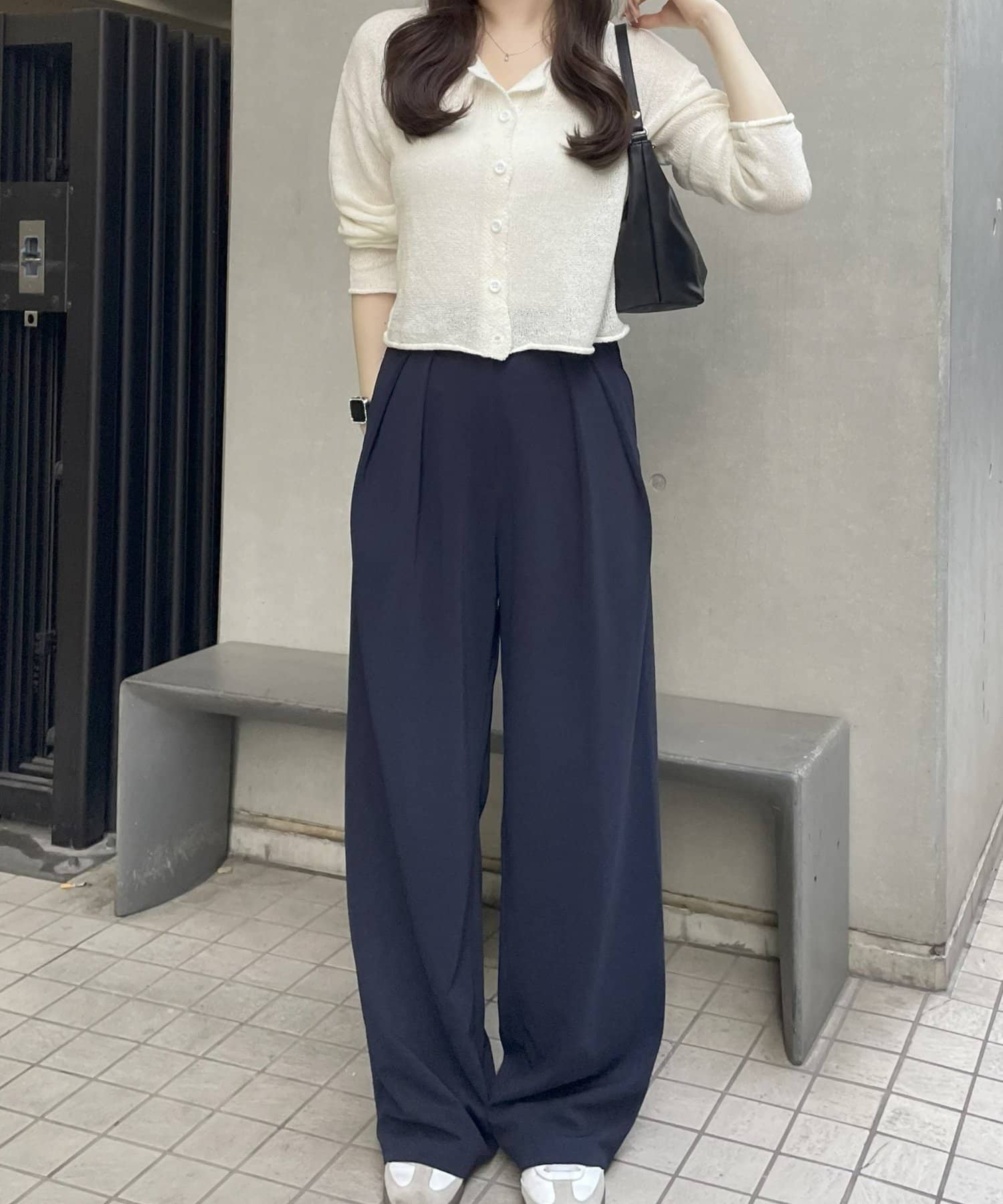 高身長でも、絶妙な「ズルっと感」。理想の美脚を叶える、高身長のためのタックワイドパンツ
