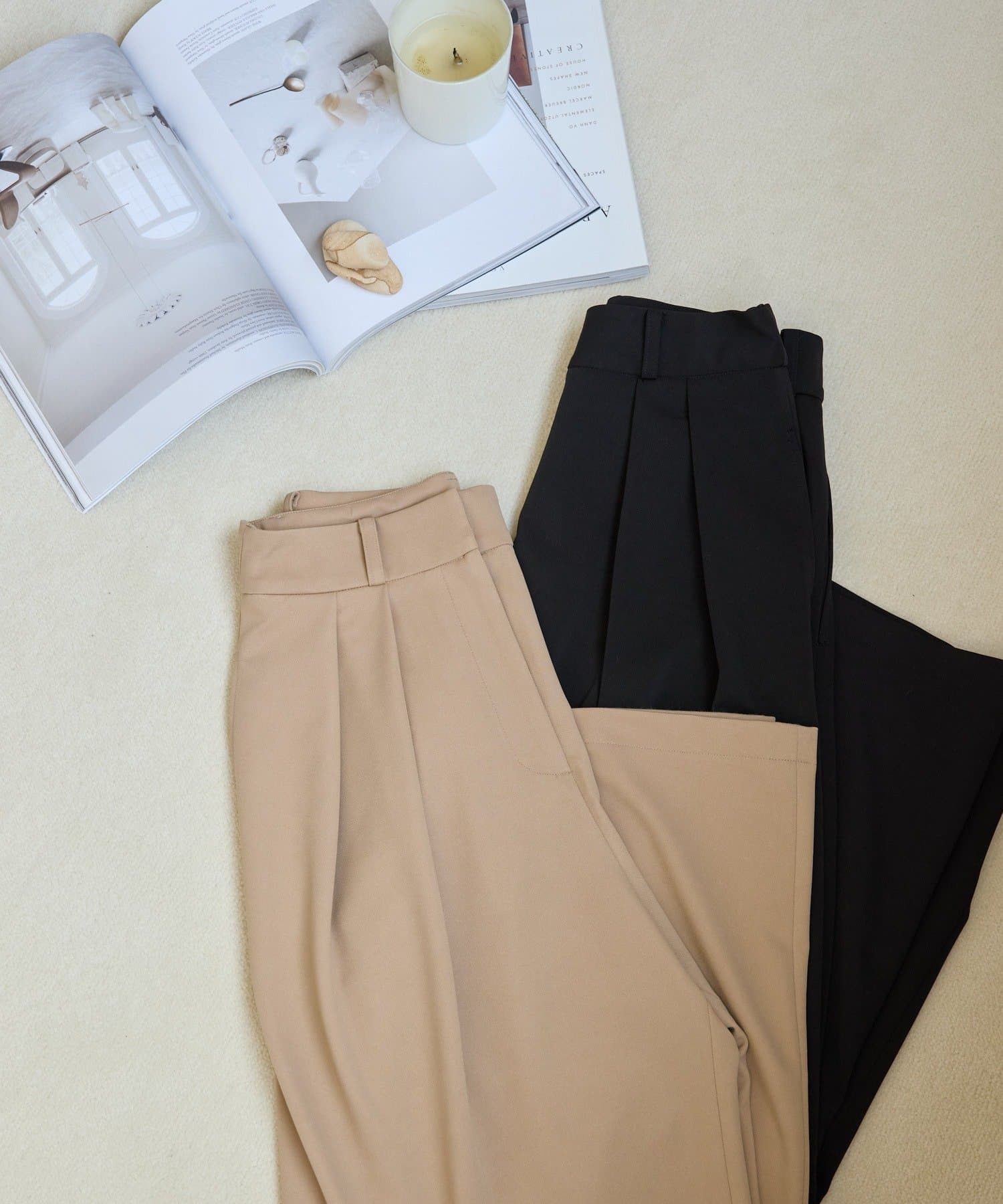 ベルトをプラスすればハイウエストからジャストウエストまで様々な着こなしで着用可能です。