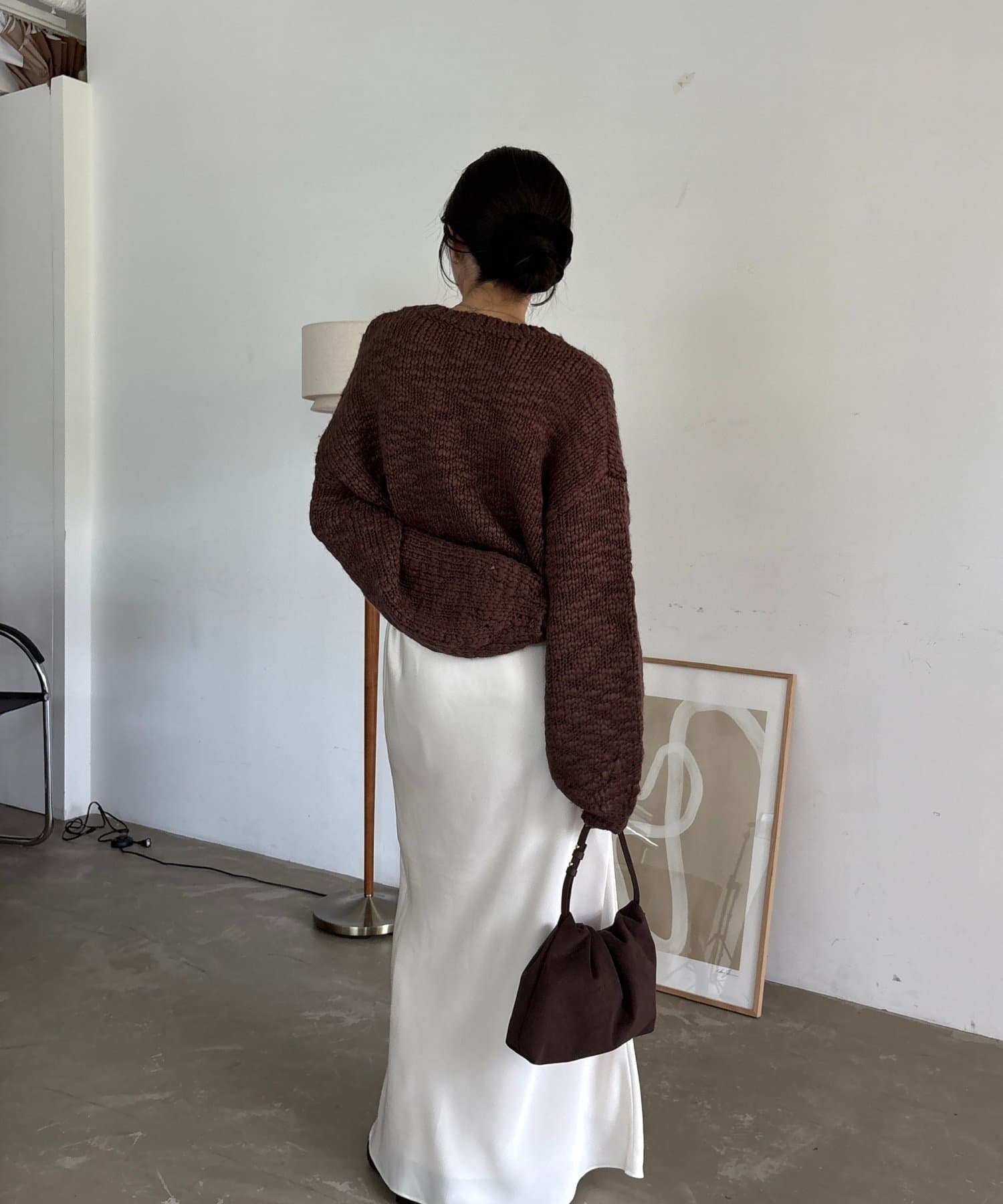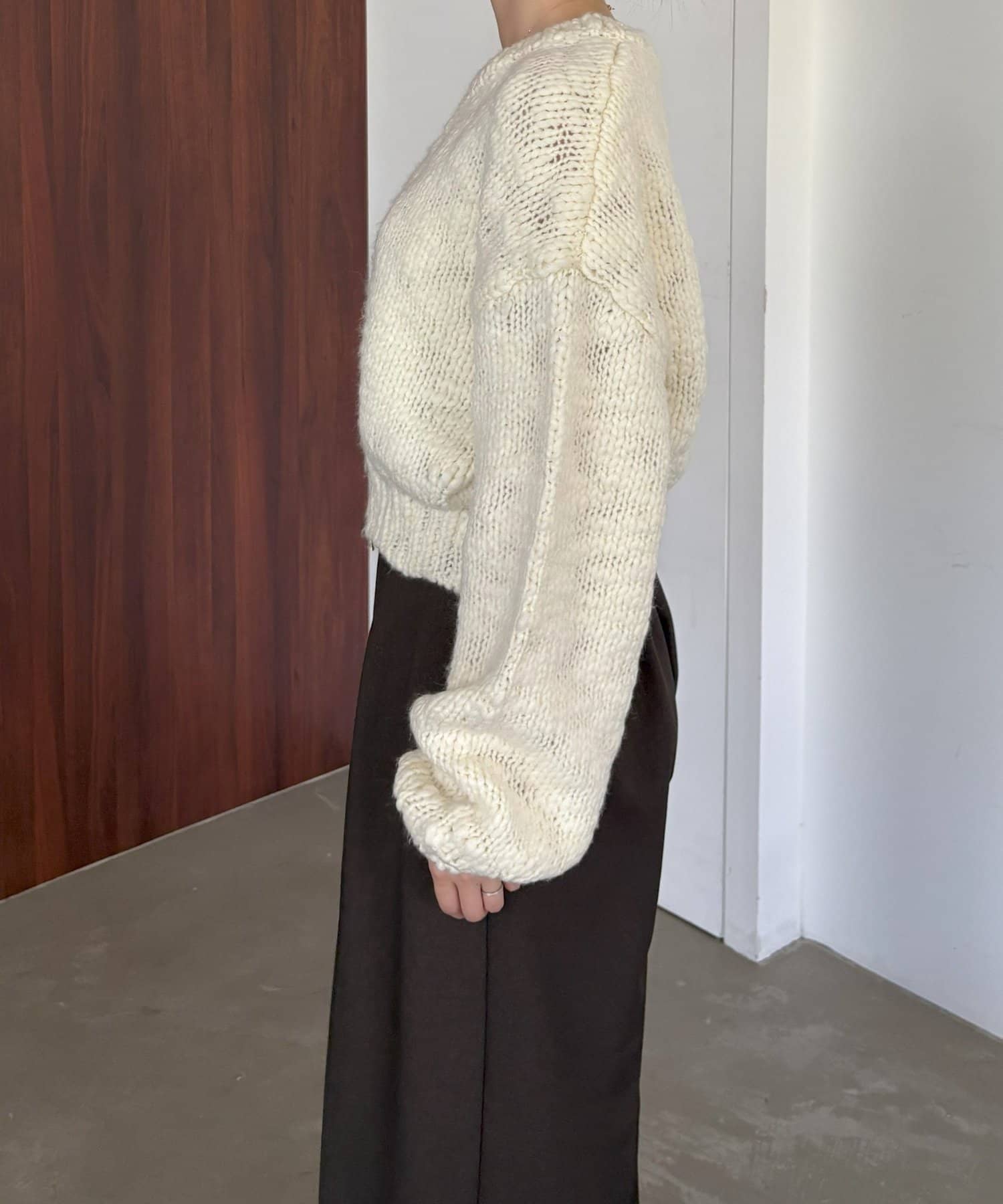 たぽっと丸みのある袖がポイント。全体的に丸みのあるシルエットで、女性らしい印象を演出します。