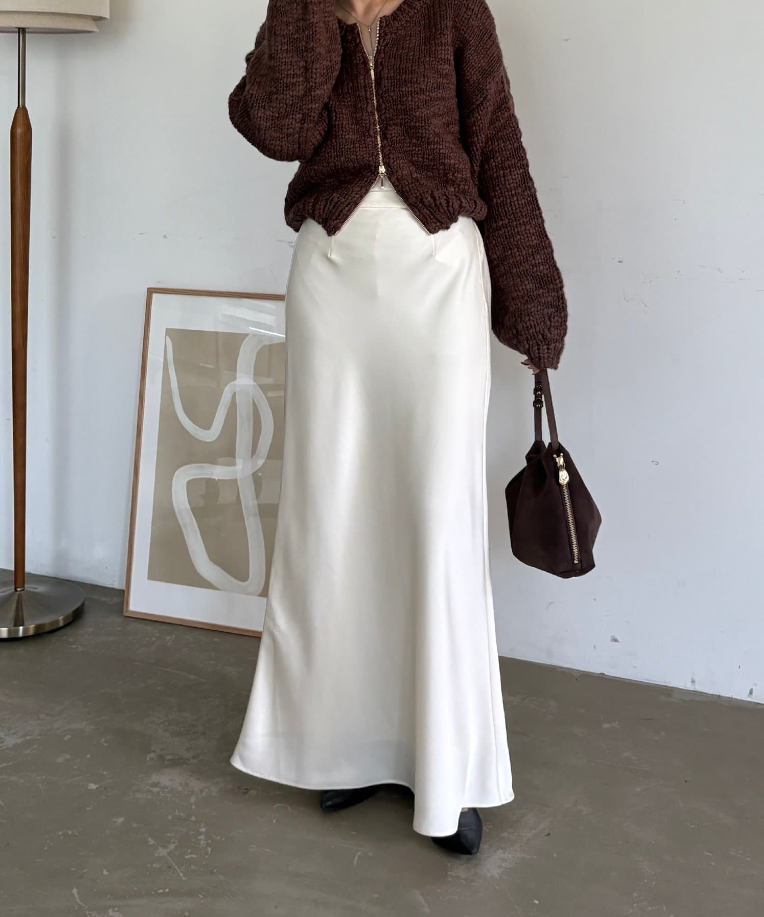Wジップ仕様で、裾をウエスト位置まで開けて抜け感を出す着こなしがおすすめ。