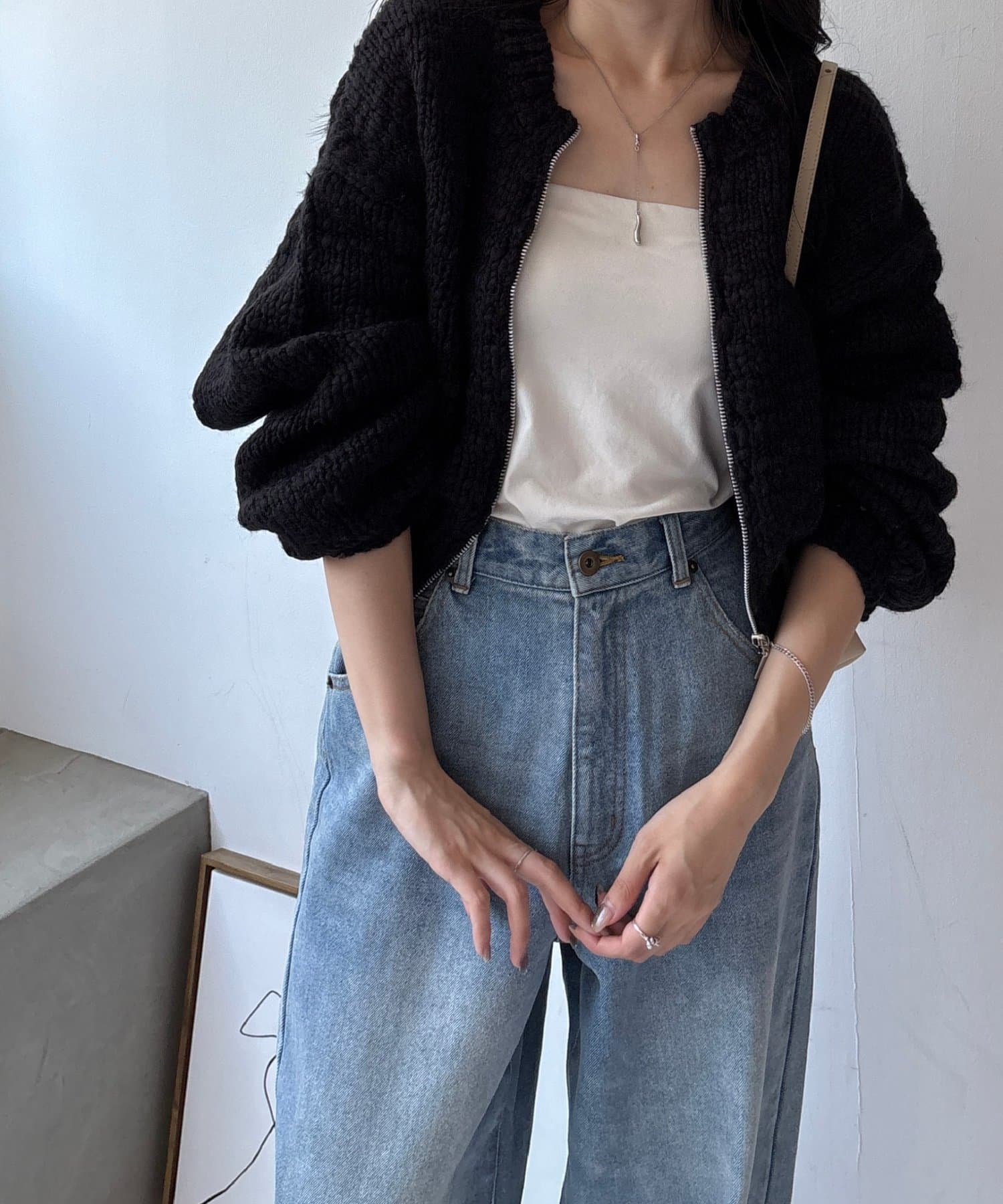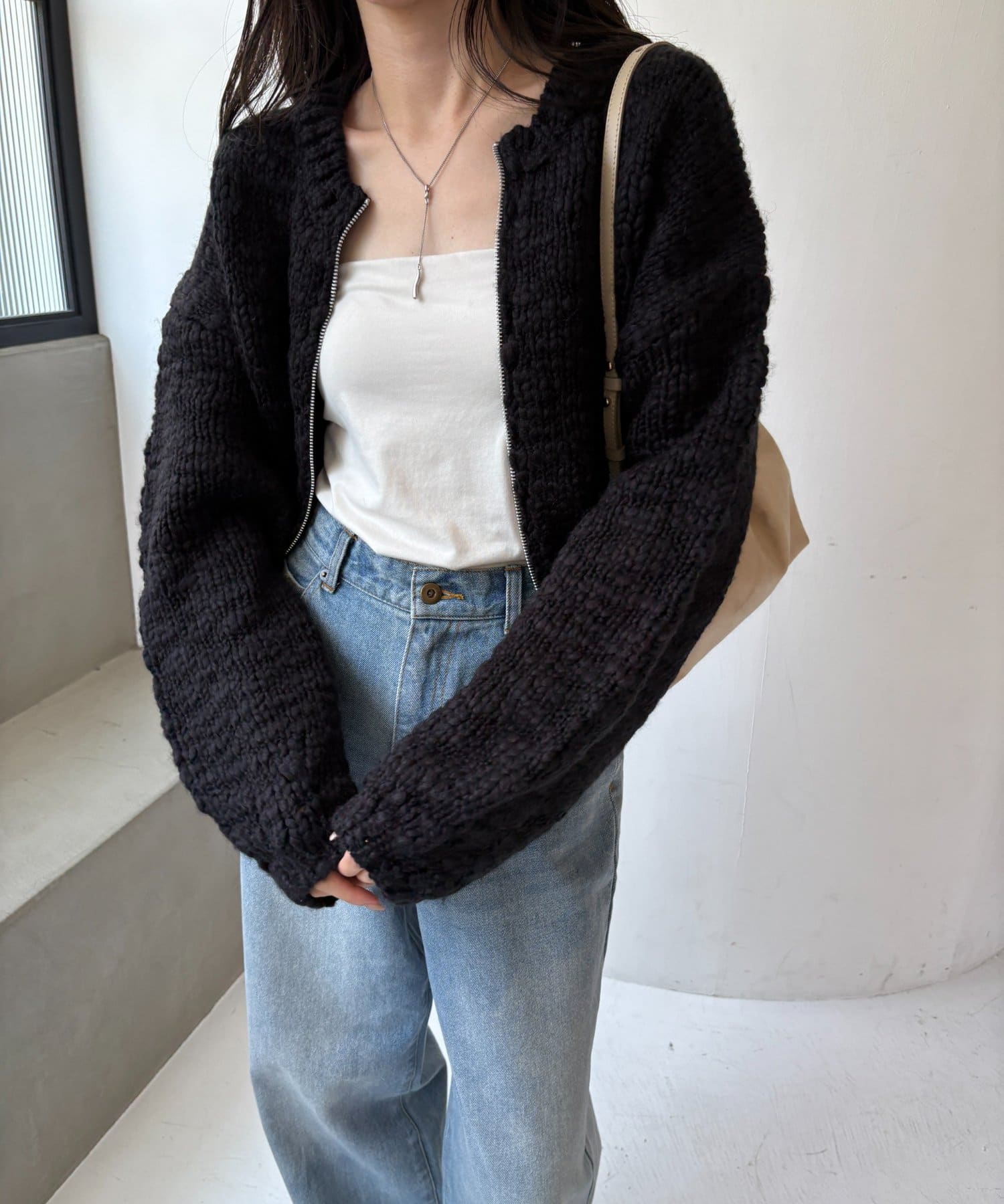 【CAPRICIEUX LE'MAGE×gemeil コラボアイテム】Wジップ スラブカーディガン