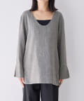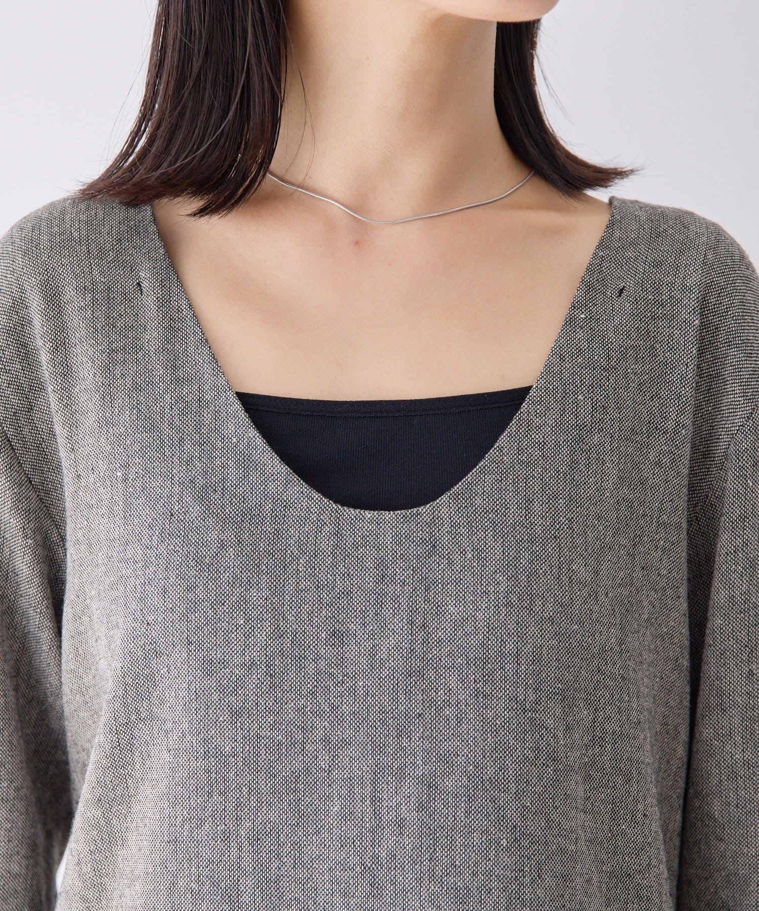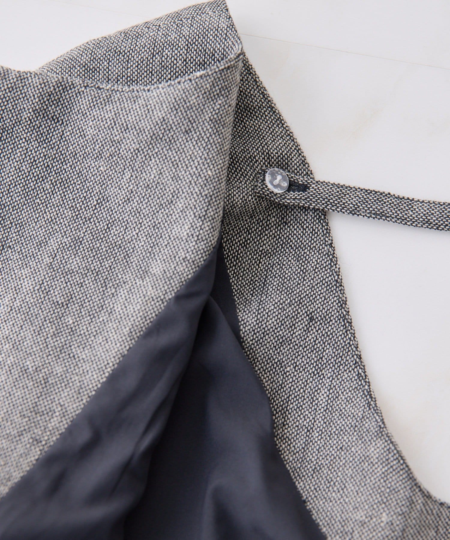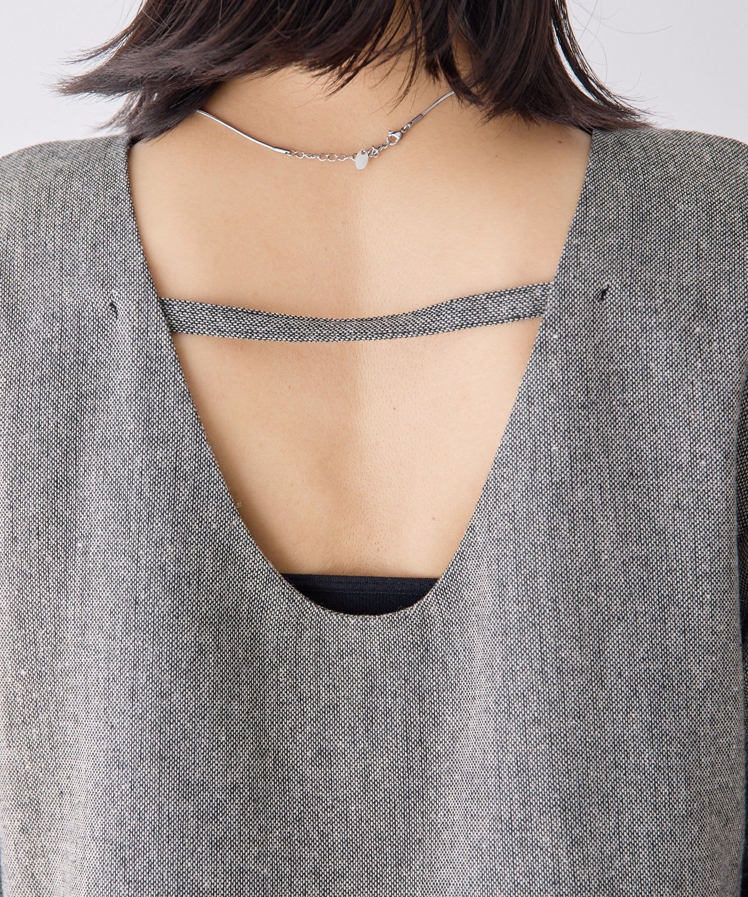 取り外し可能な紐は、トップスとして着用する際に外せば、すっきりとした印象に。