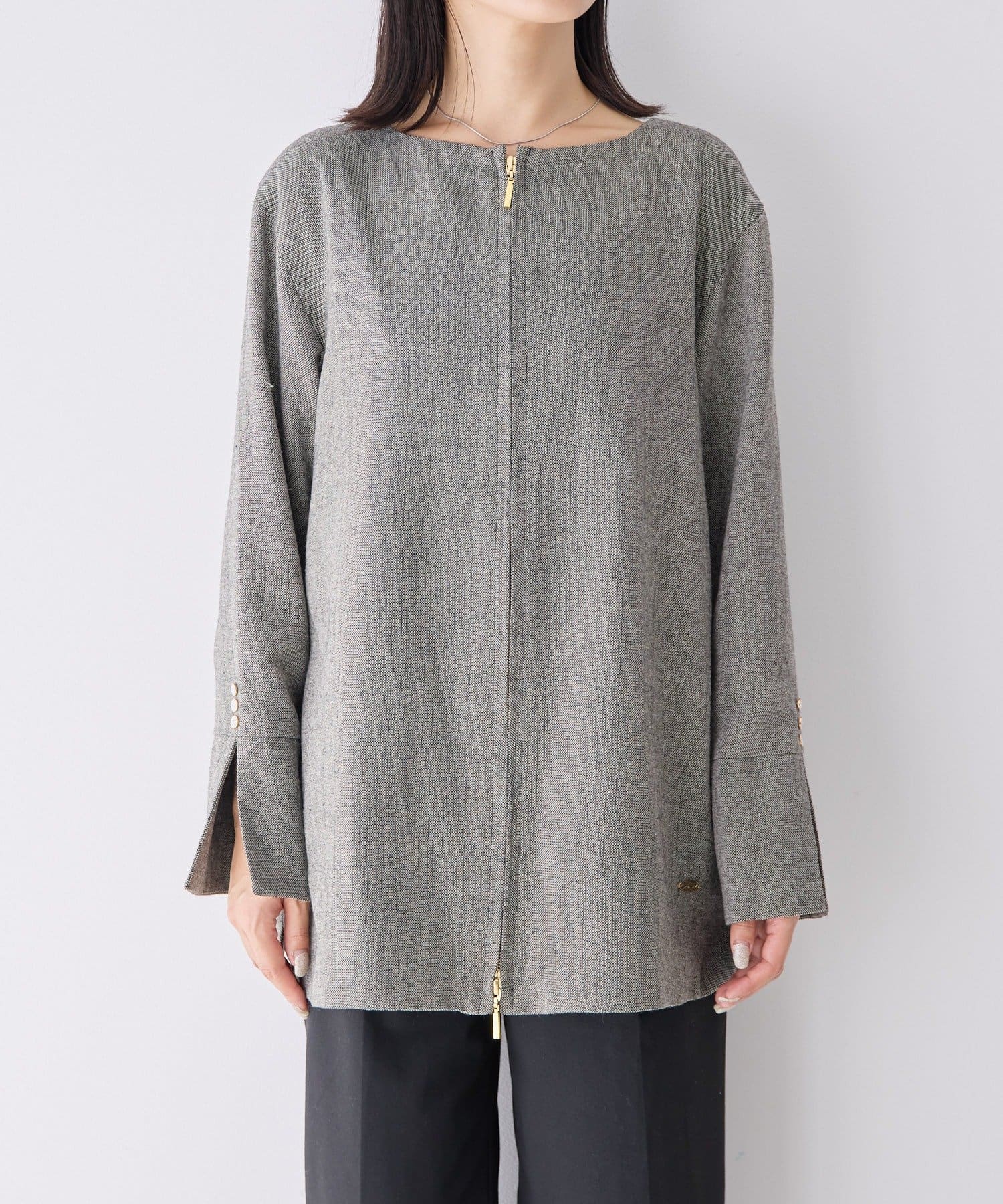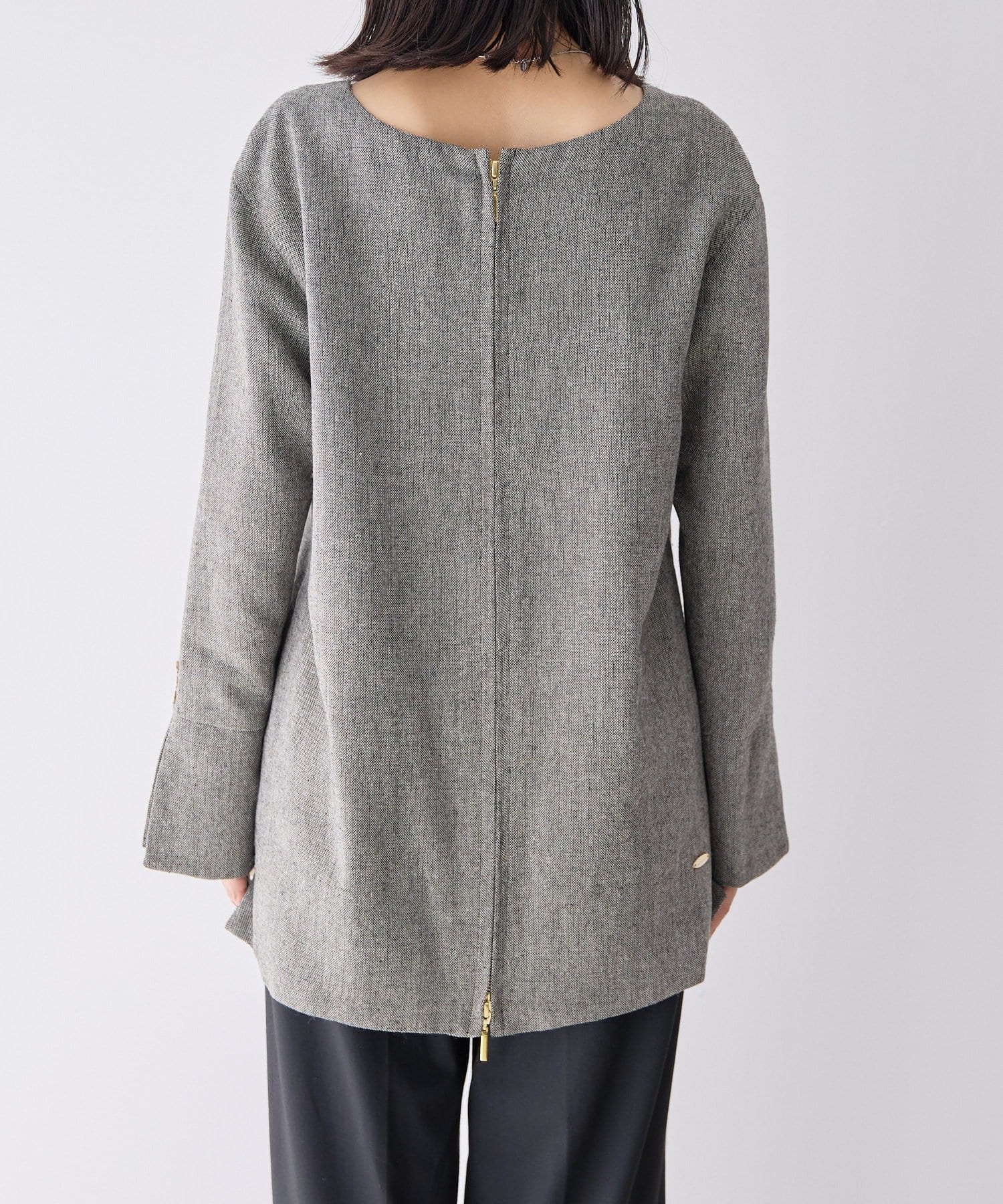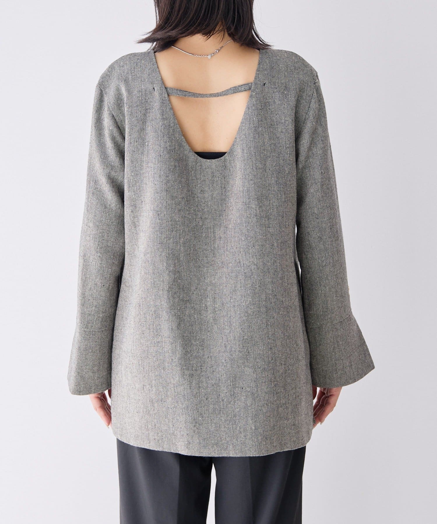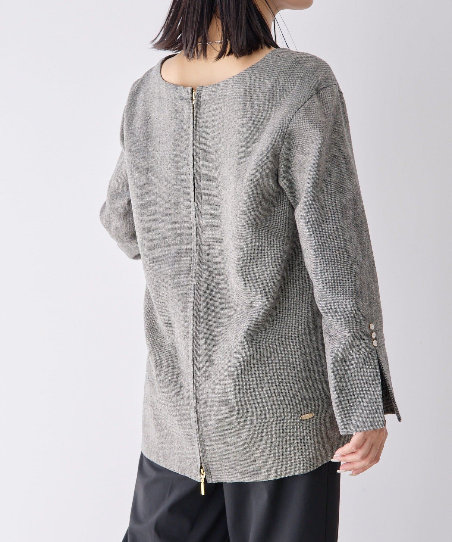 前後どちらでも着られる2WAY仕様なので、トップスとしても、ジャケットとしても着用可能。