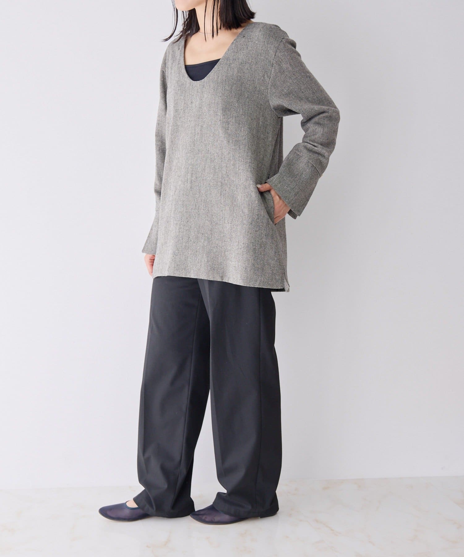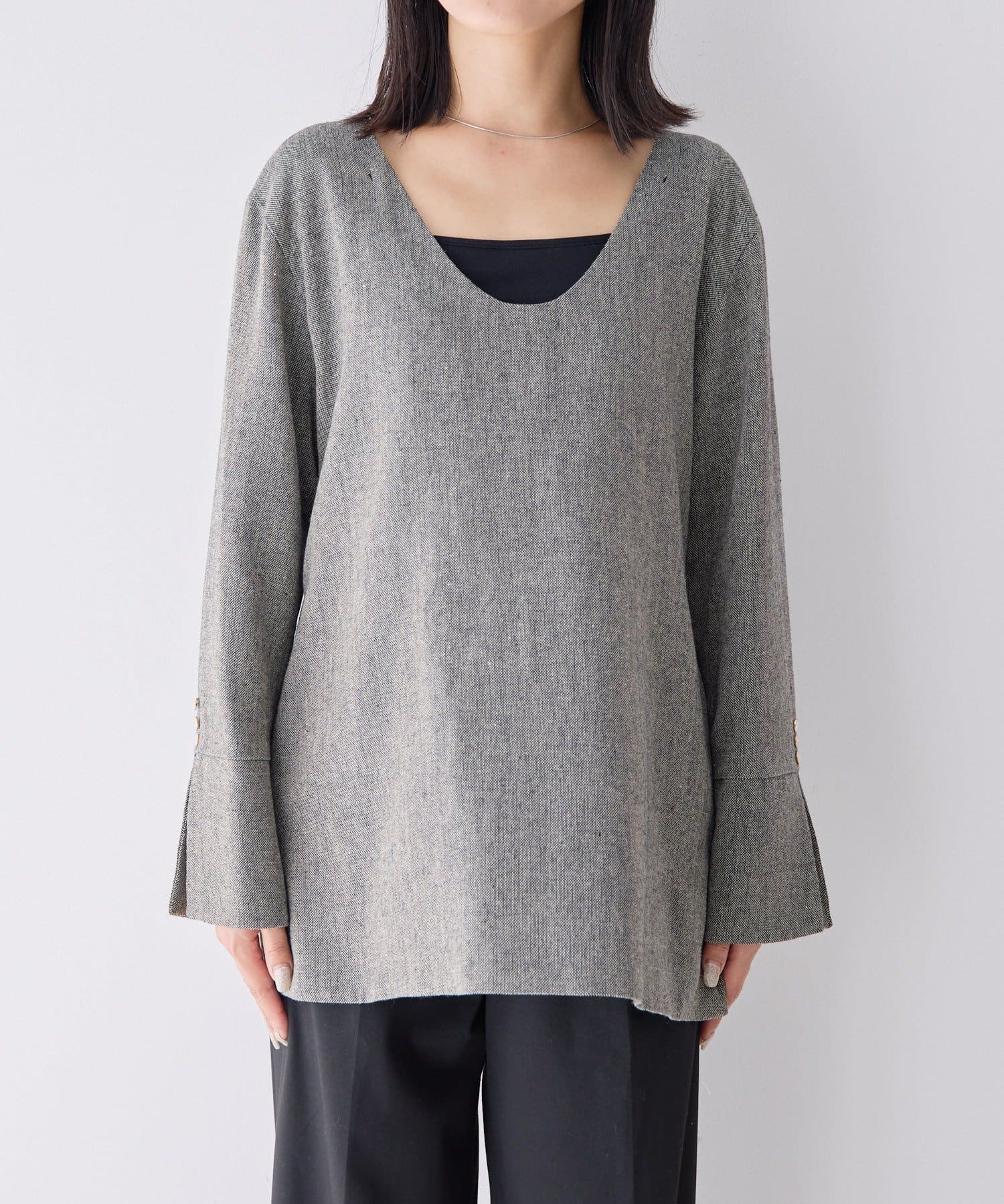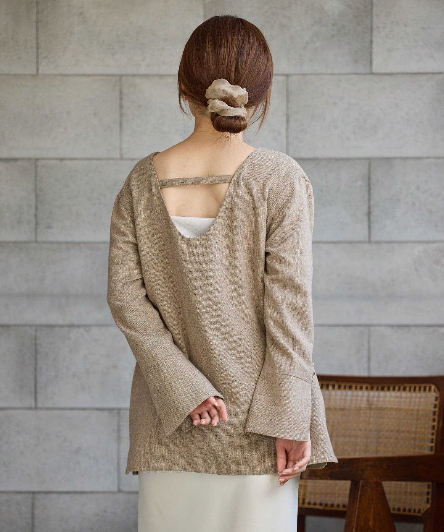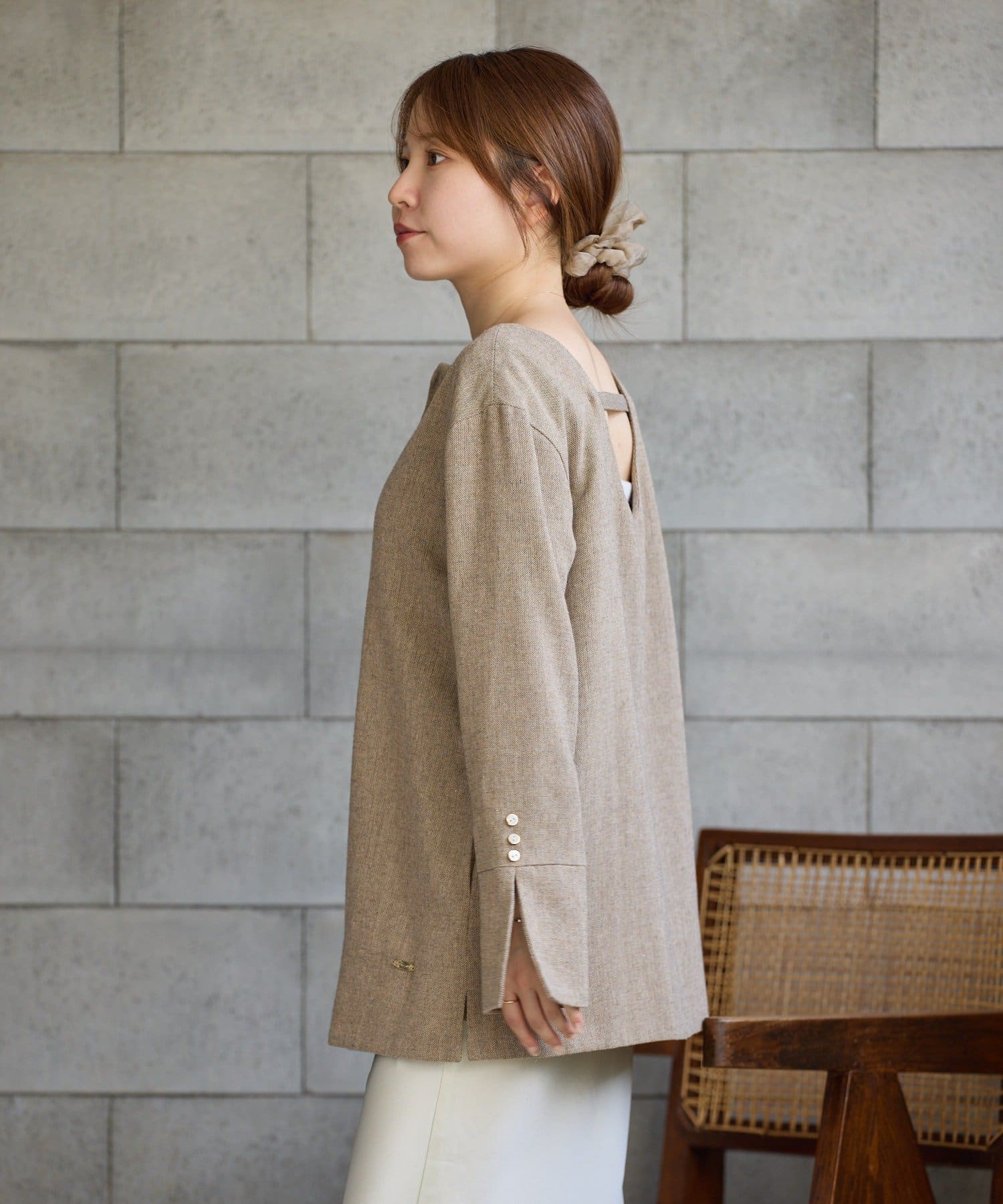 前後どちらでも着られる2WAY仕様なので、トップスとしても、ジャケットとしても着用可能。