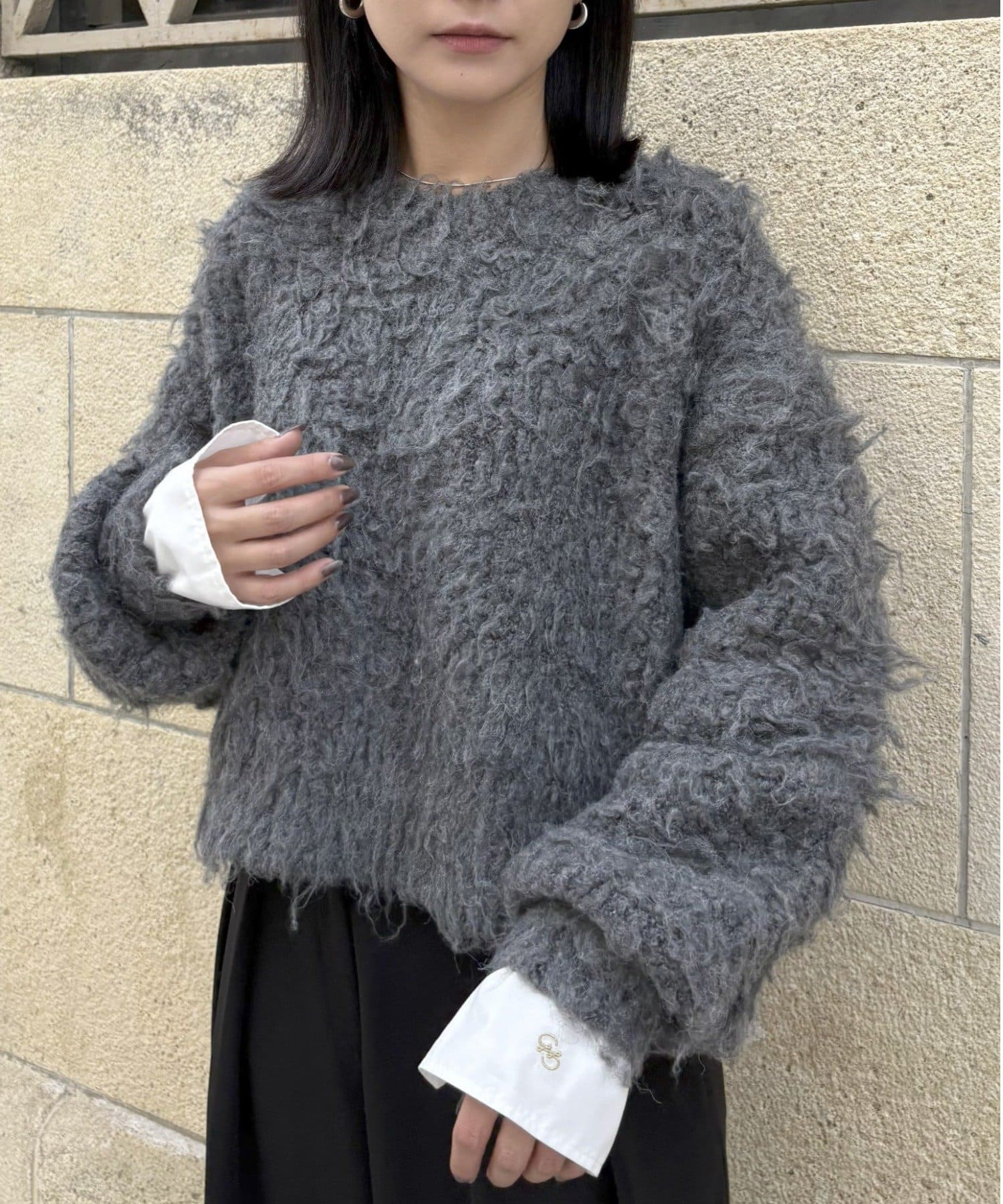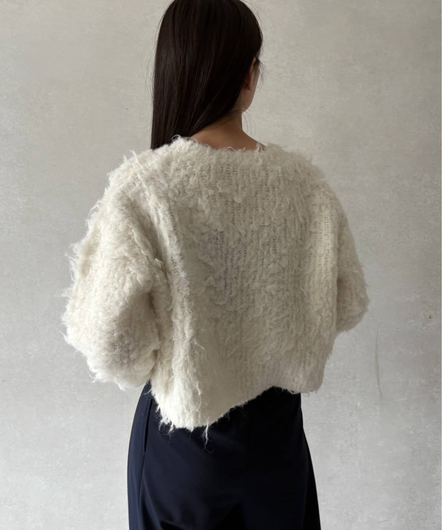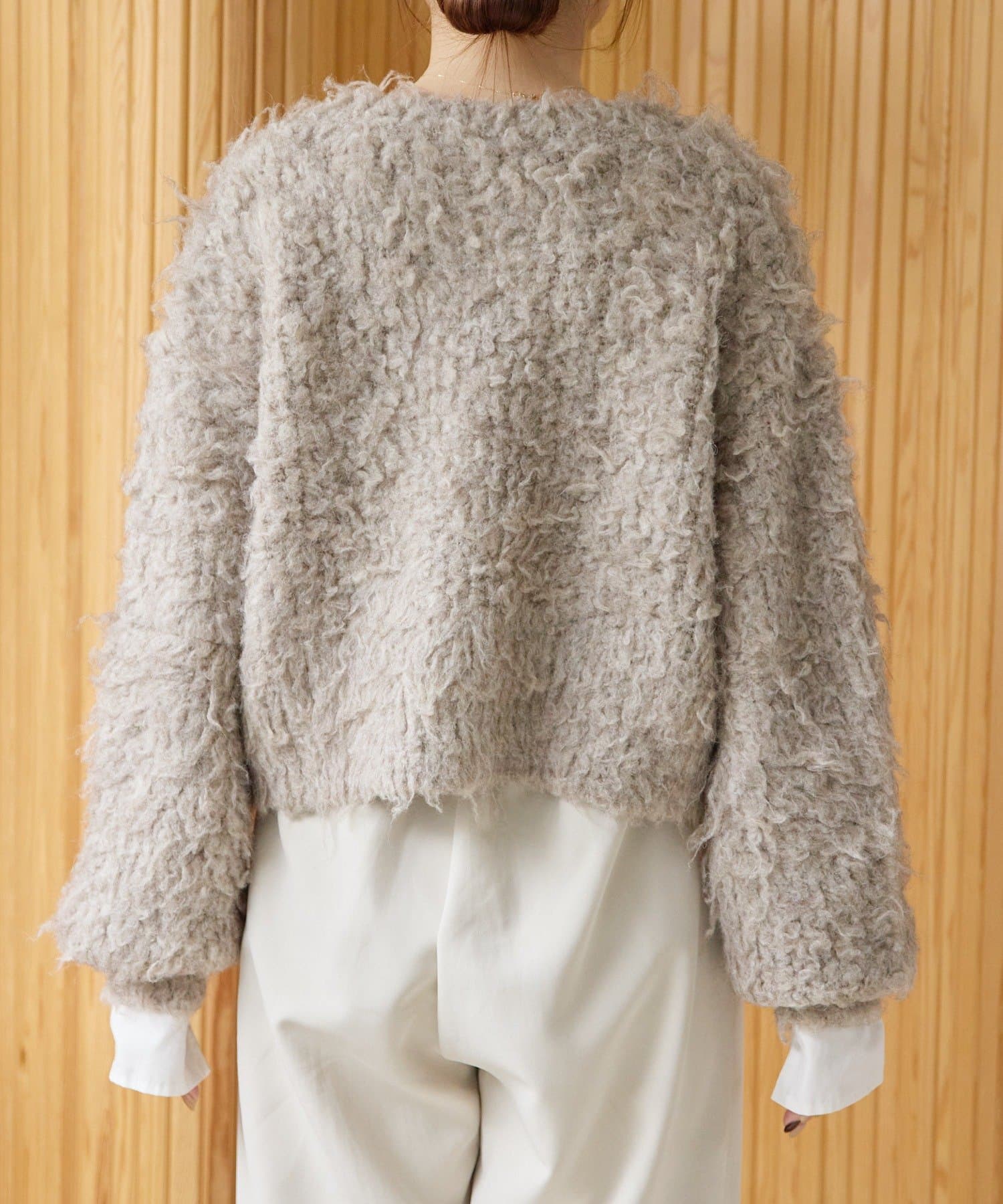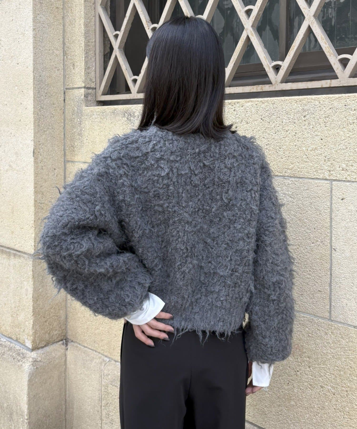 暖かみのあるシャギー素材が、秋冬のコーディネートに柔らかな印象を与えます。