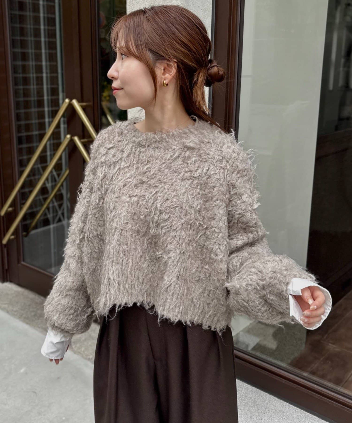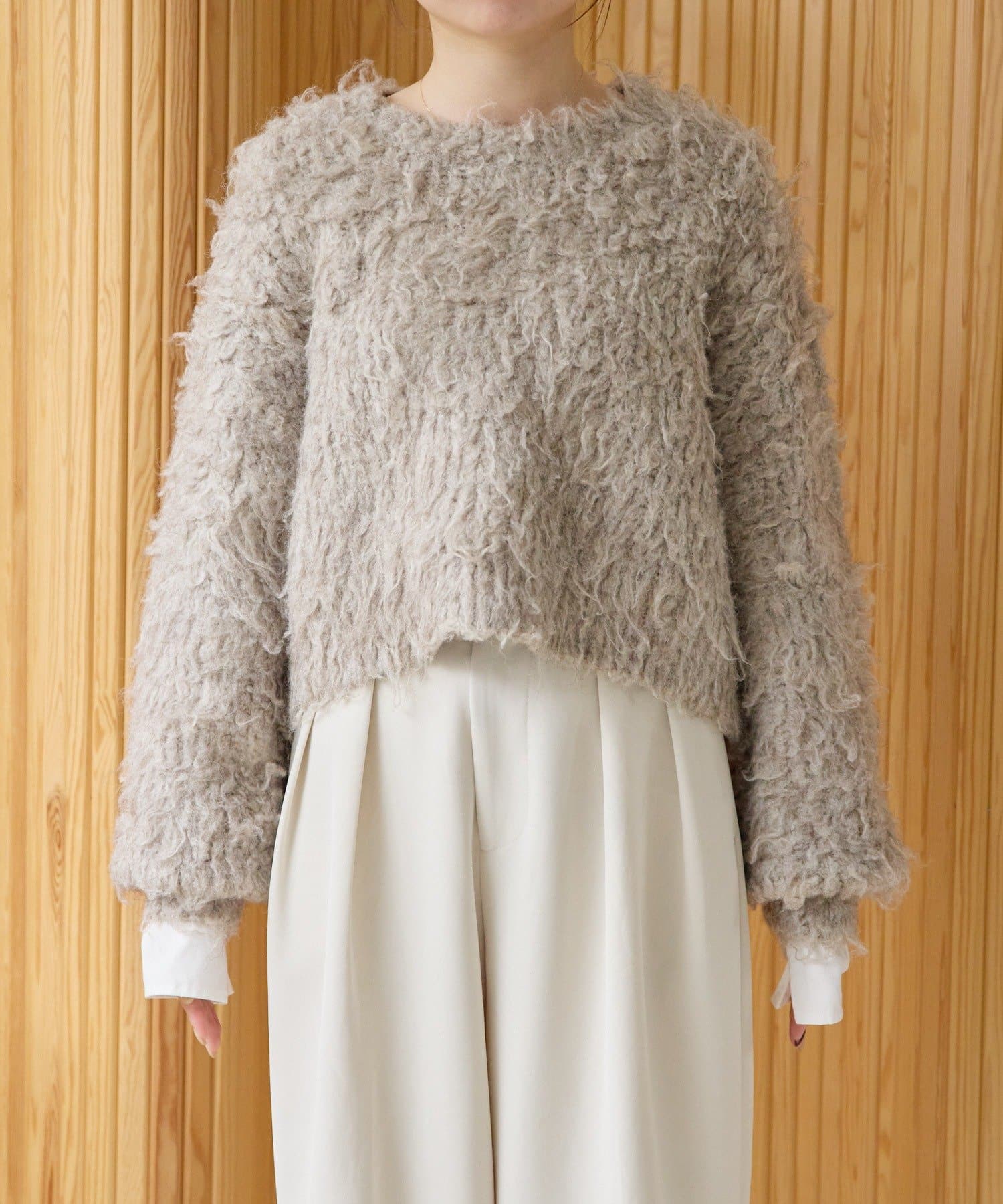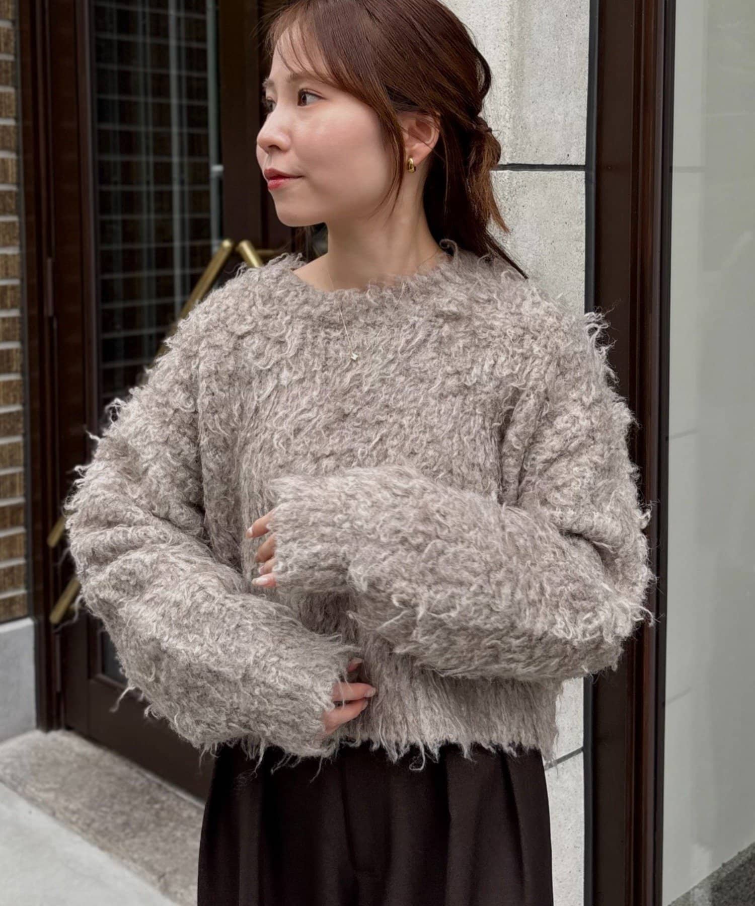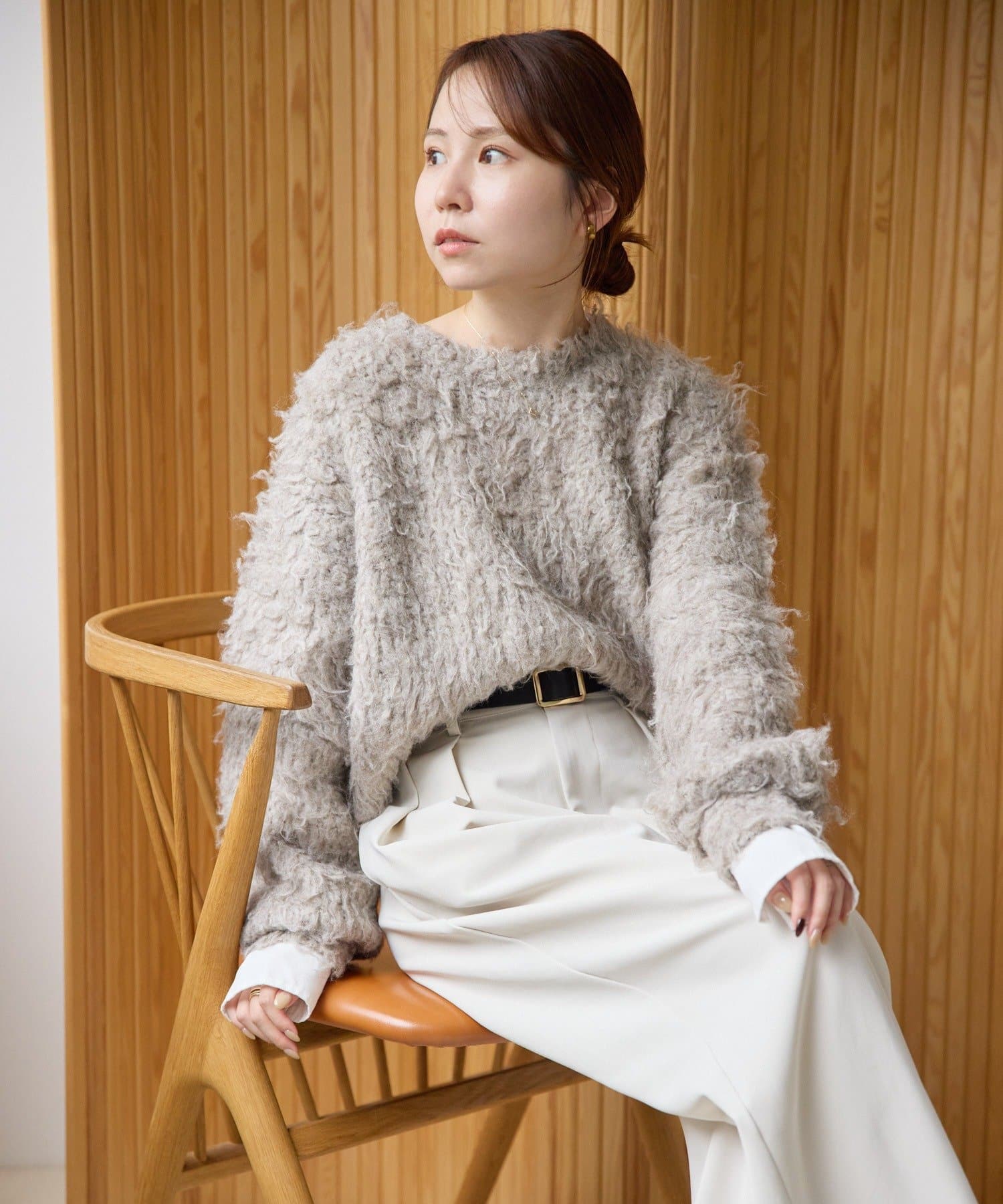 暖かみのあるシャギー素材が、秋冬のコーディネートに柔らかな印象を与えます。