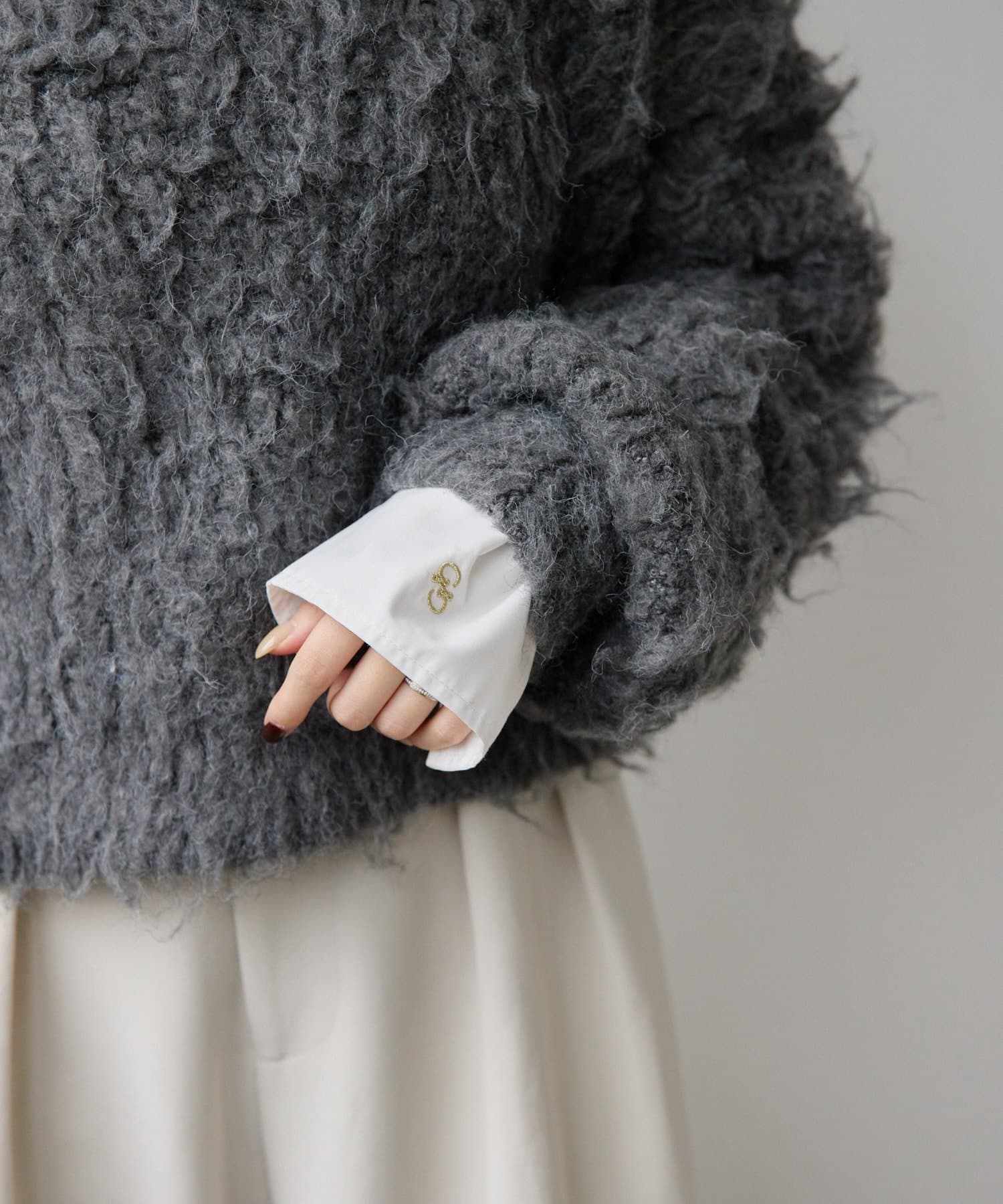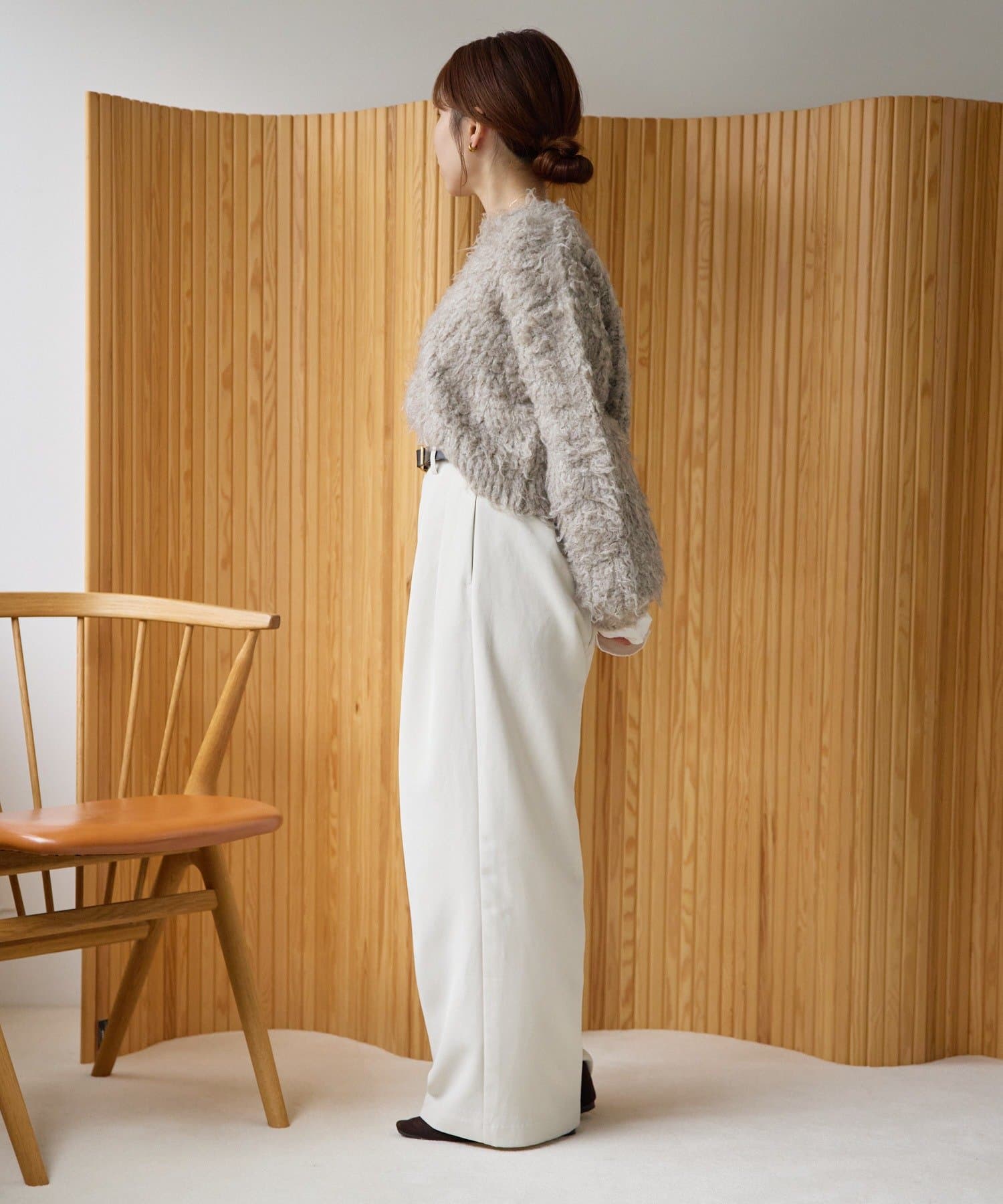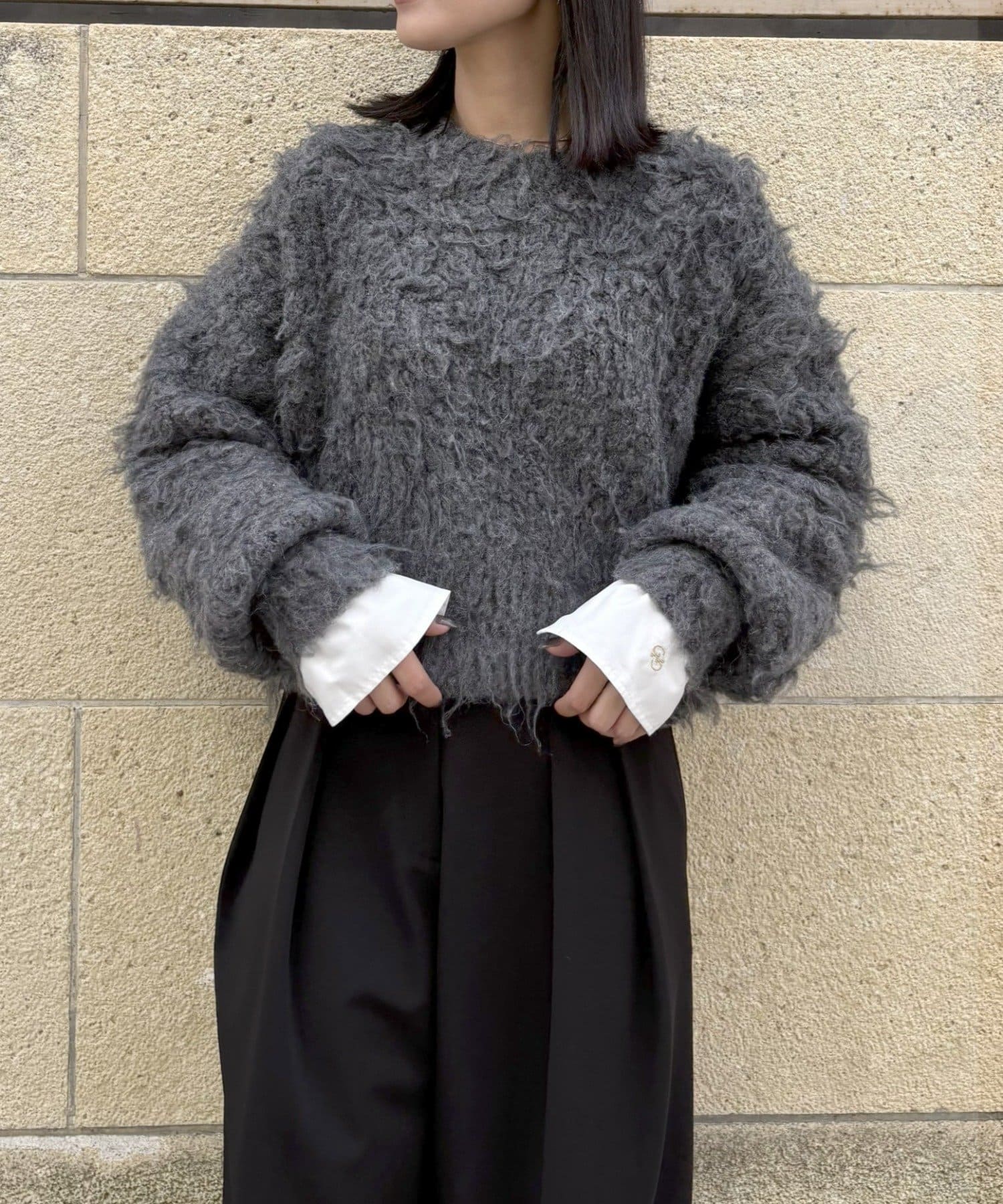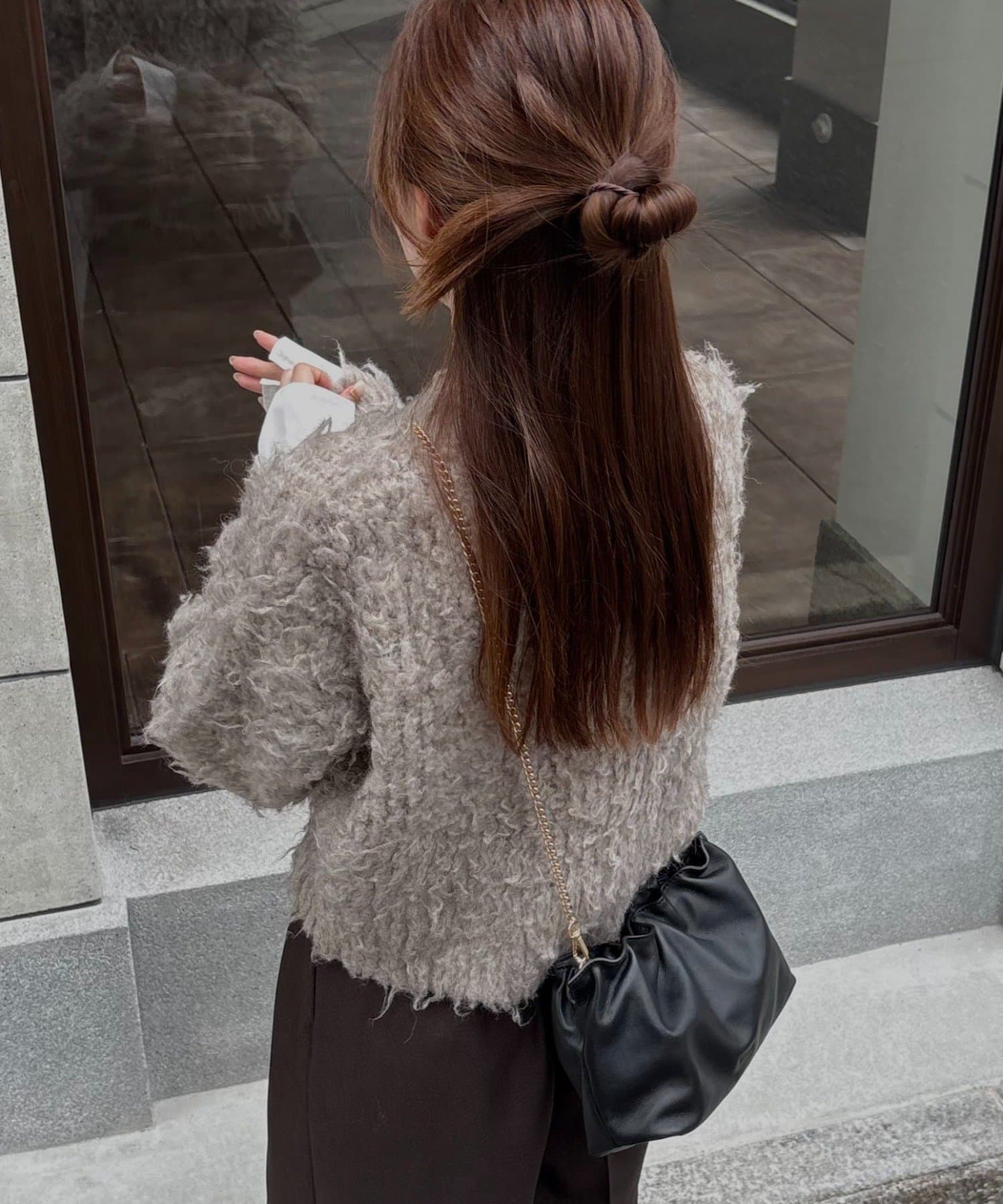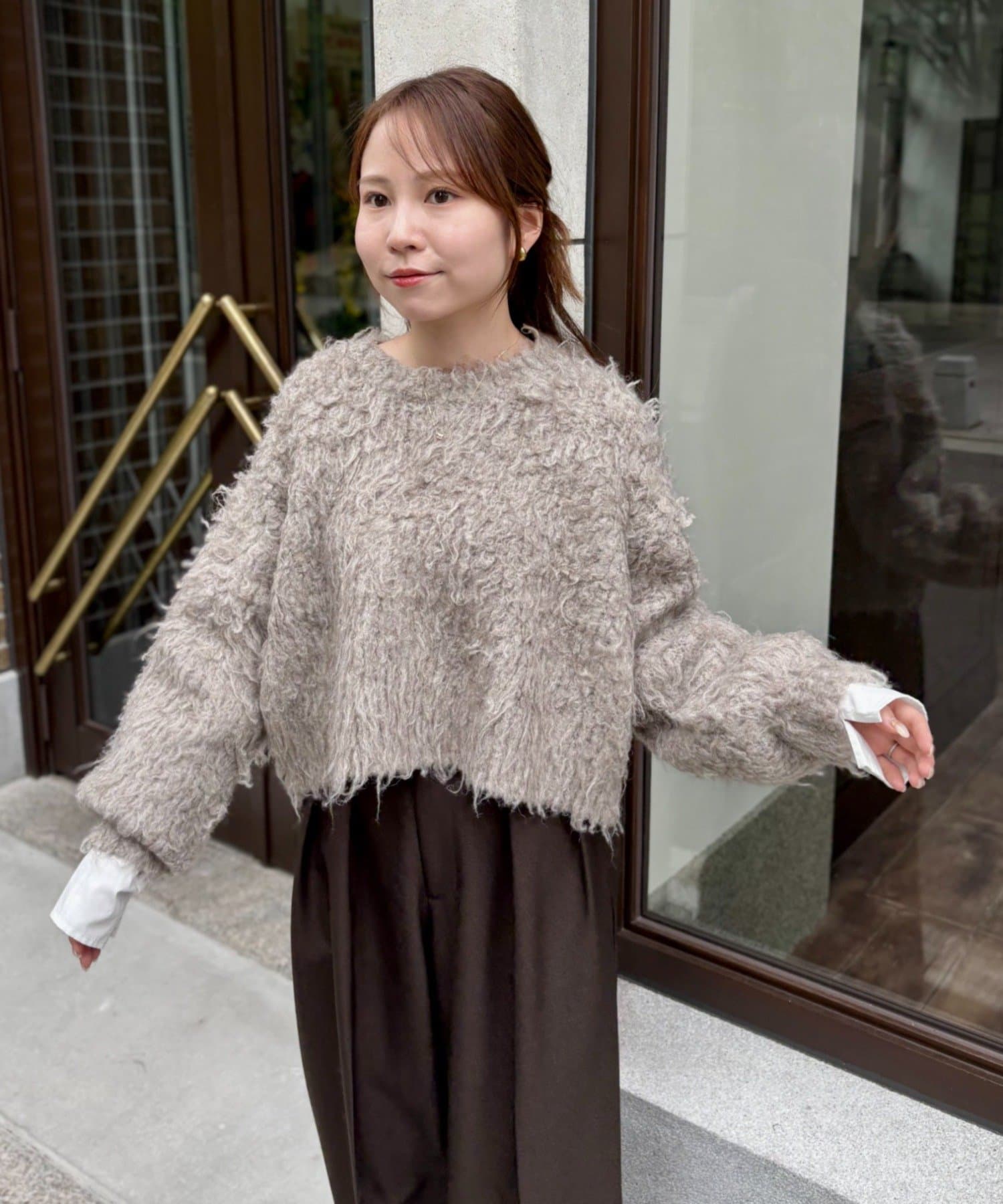 暖かみのあるシャギー素材が、秋冬のコーディネートに柔らかな印象を与えます。