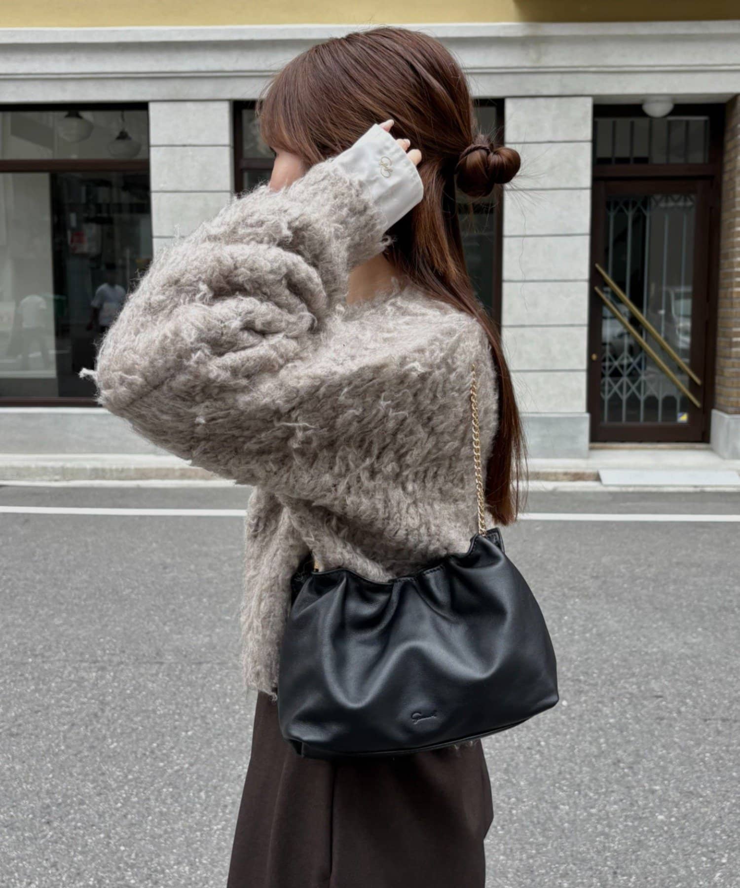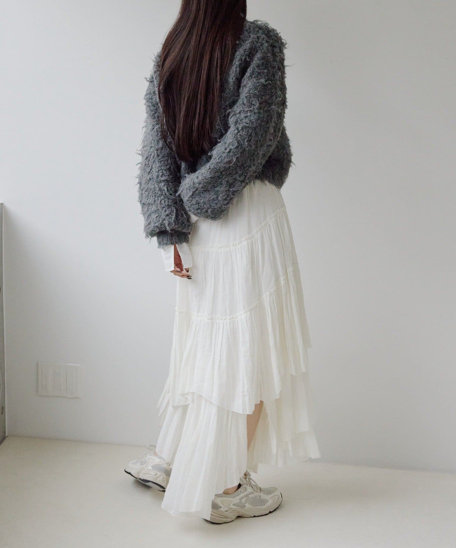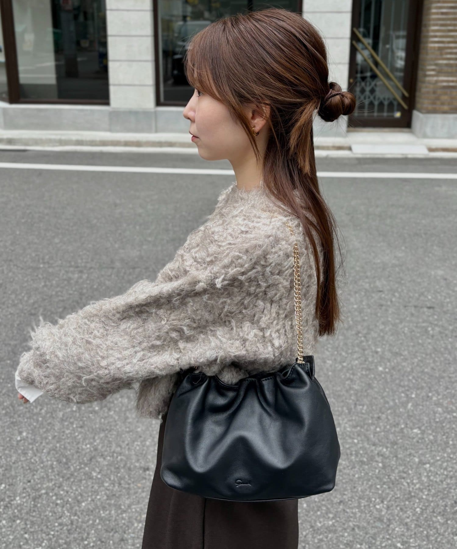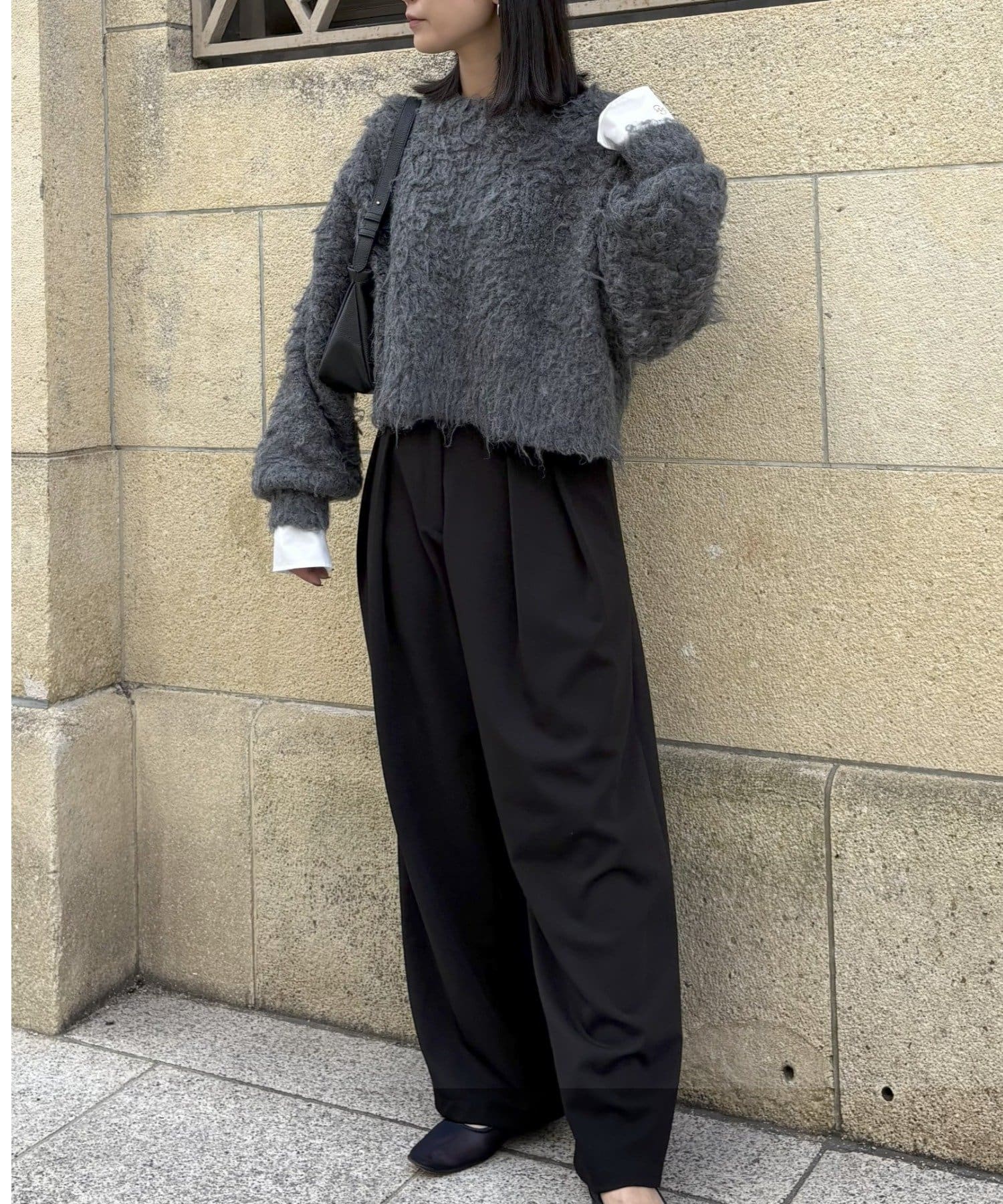暖かみのあるシャギー素材が、秋冬のコーディネートに柔らかな印象を与えます。