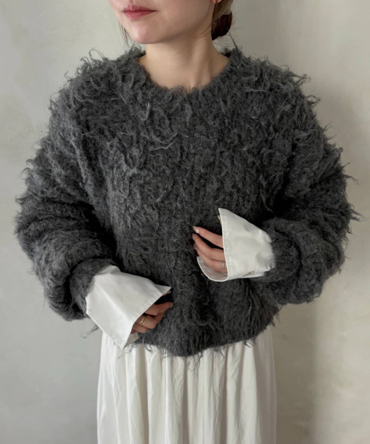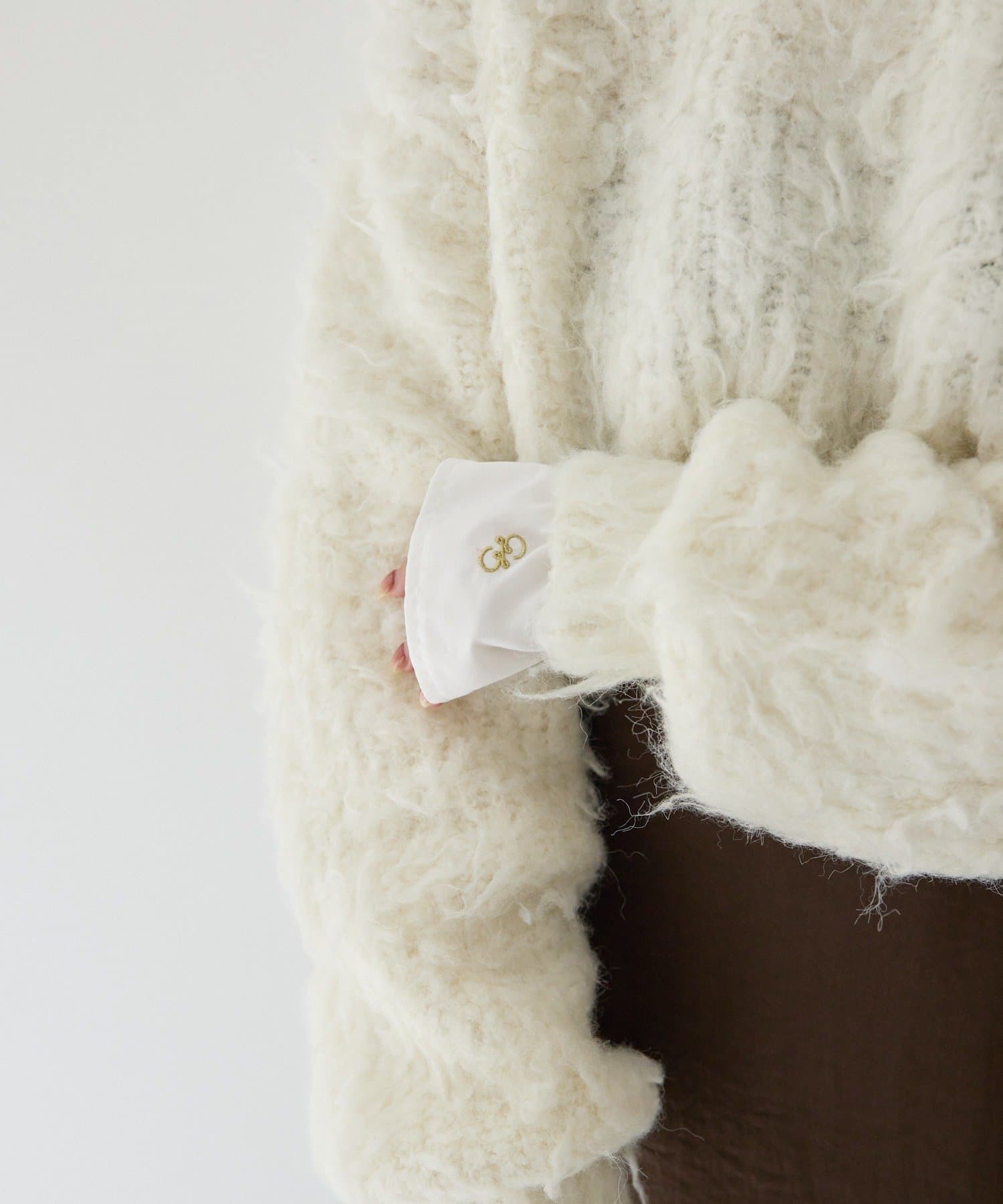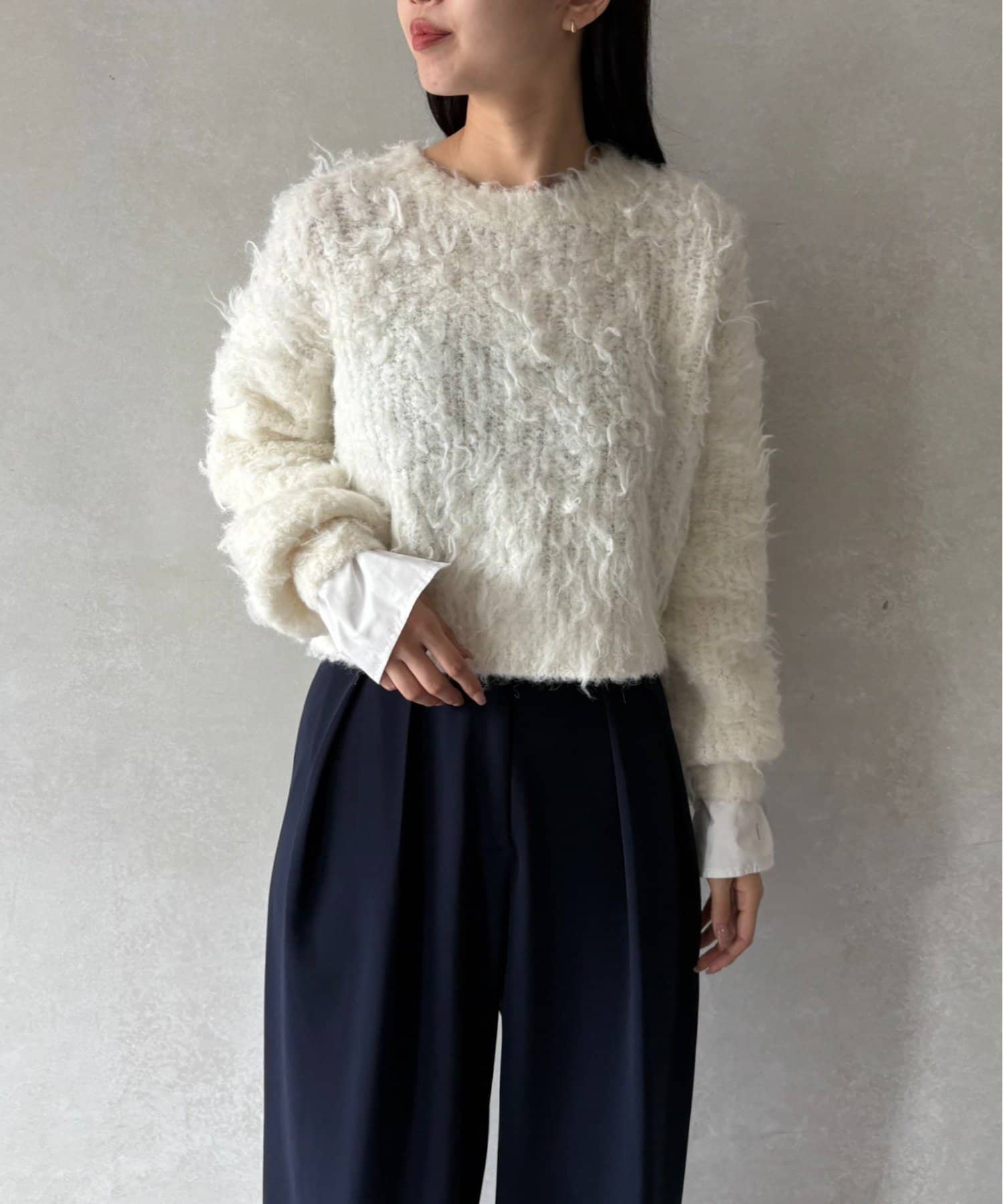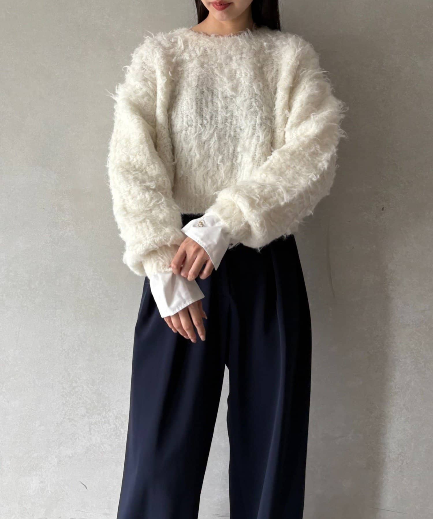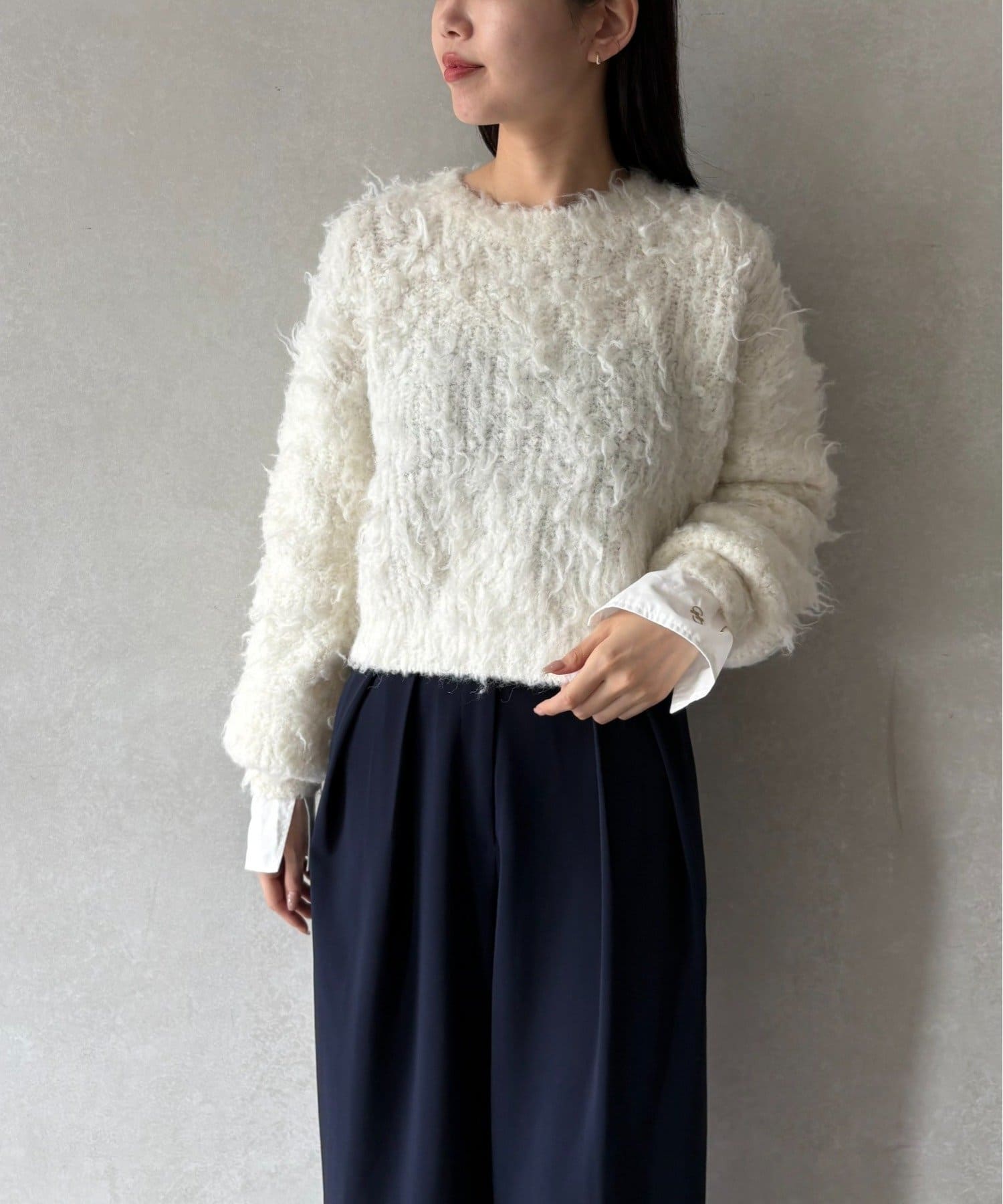 ふわふわとしたシャギーの質感が魅力的なニット。