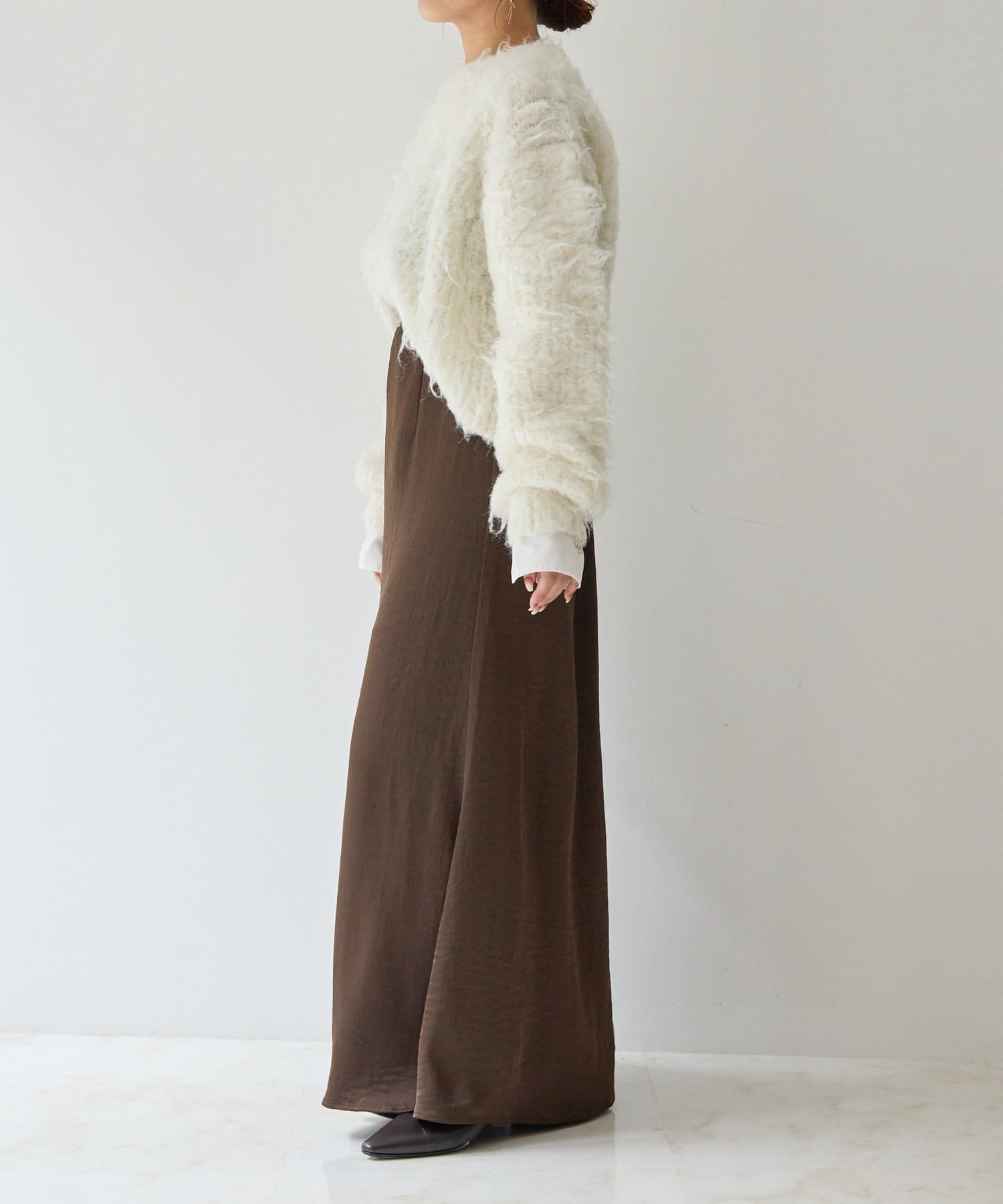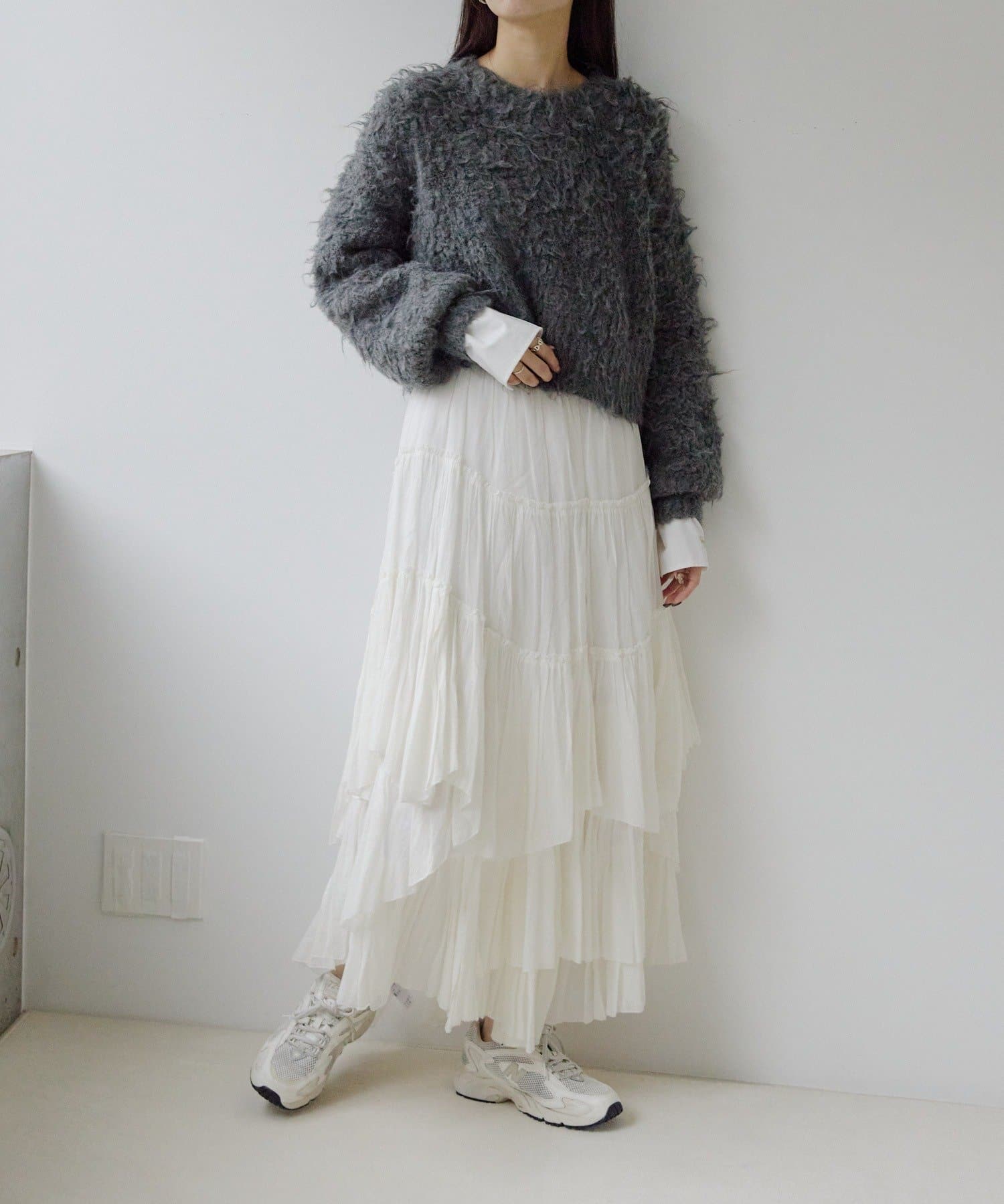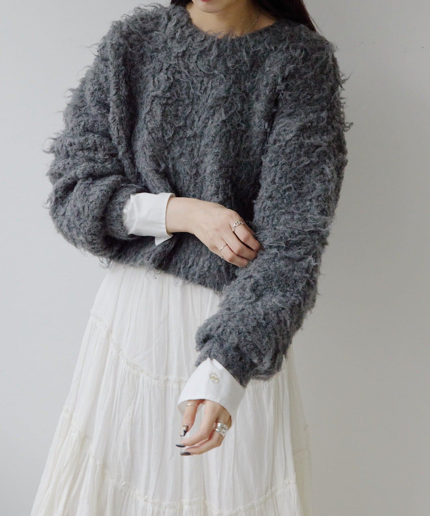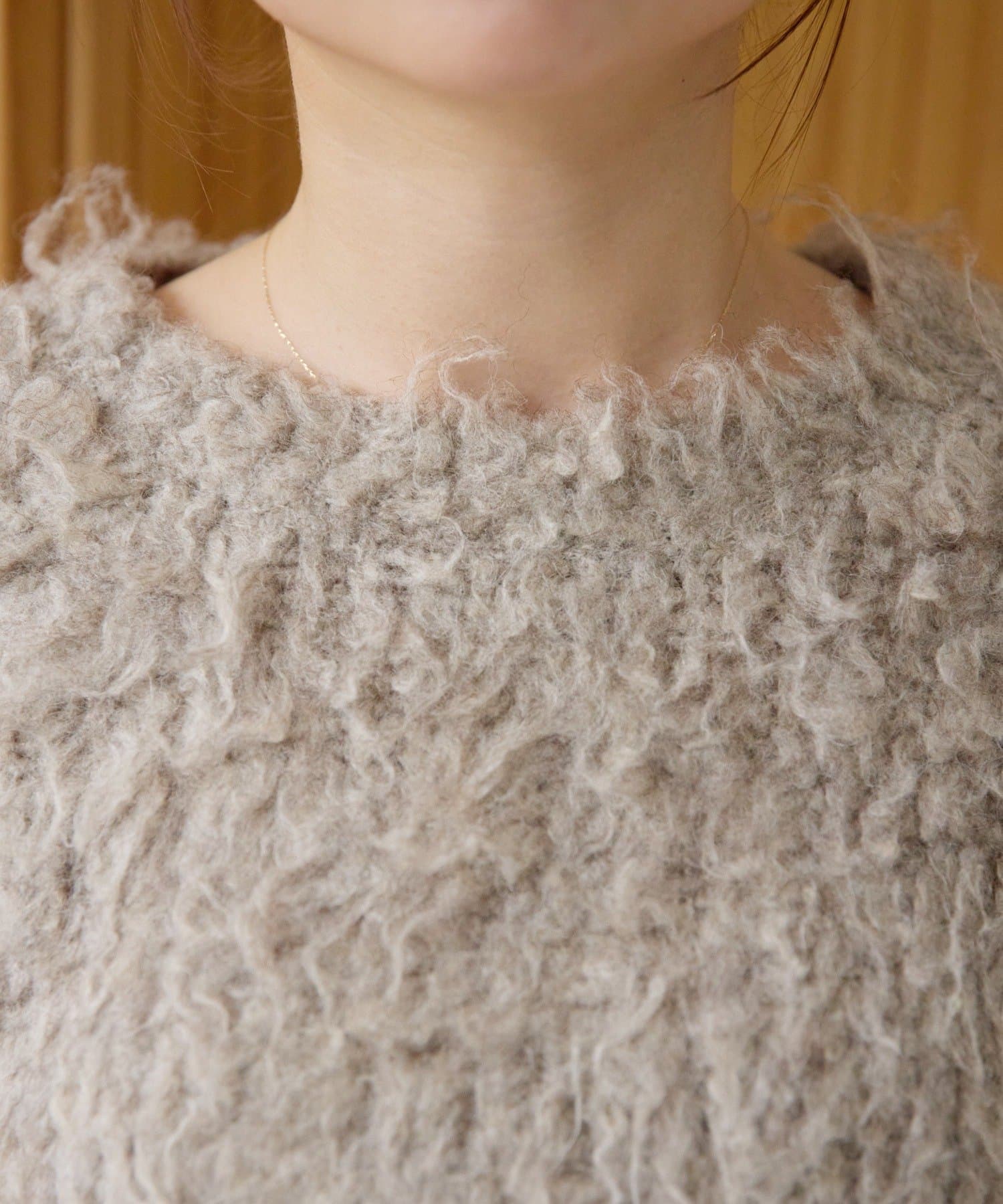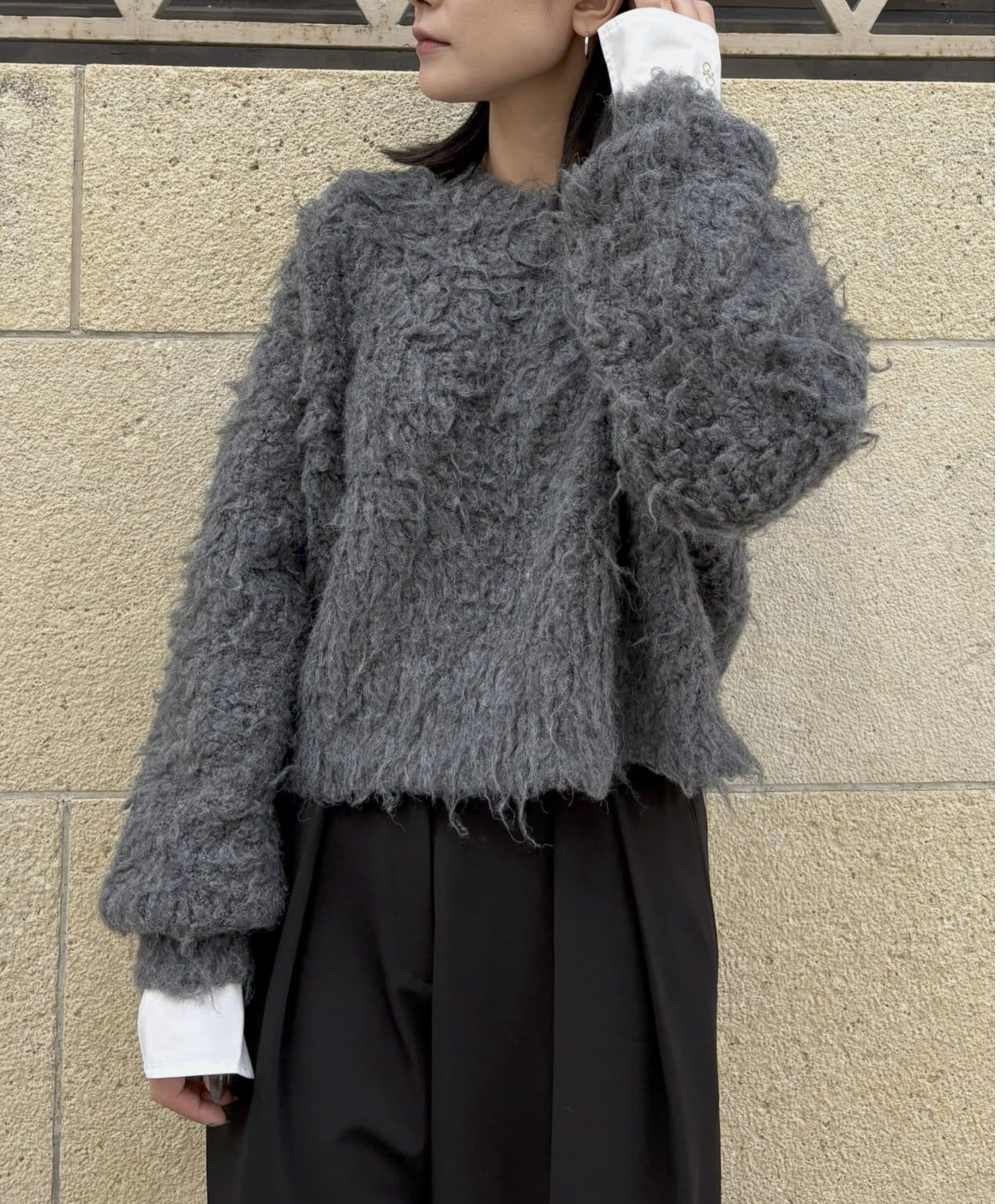 ふわふわとしたシャギーの質感が魅力的なニット。