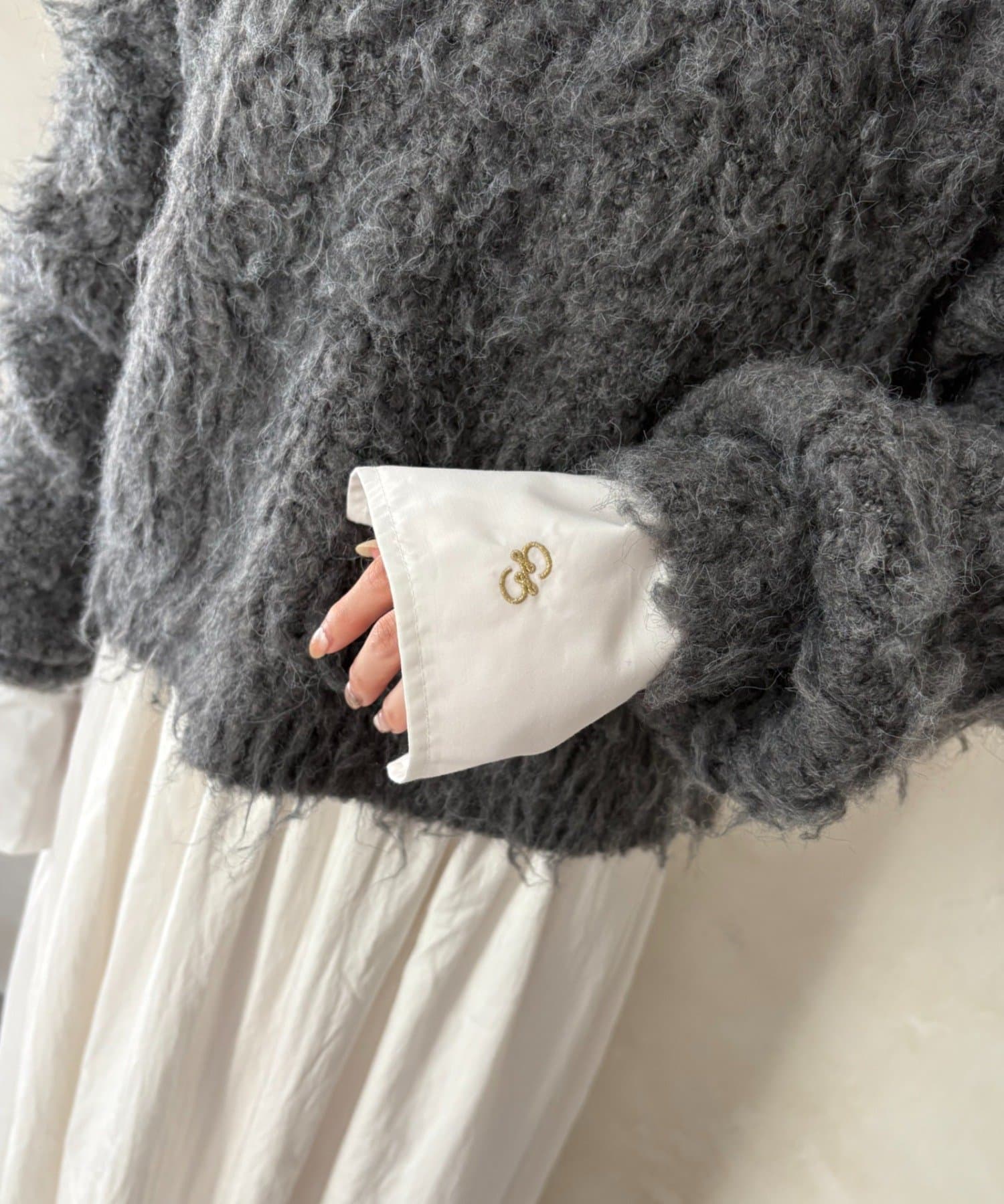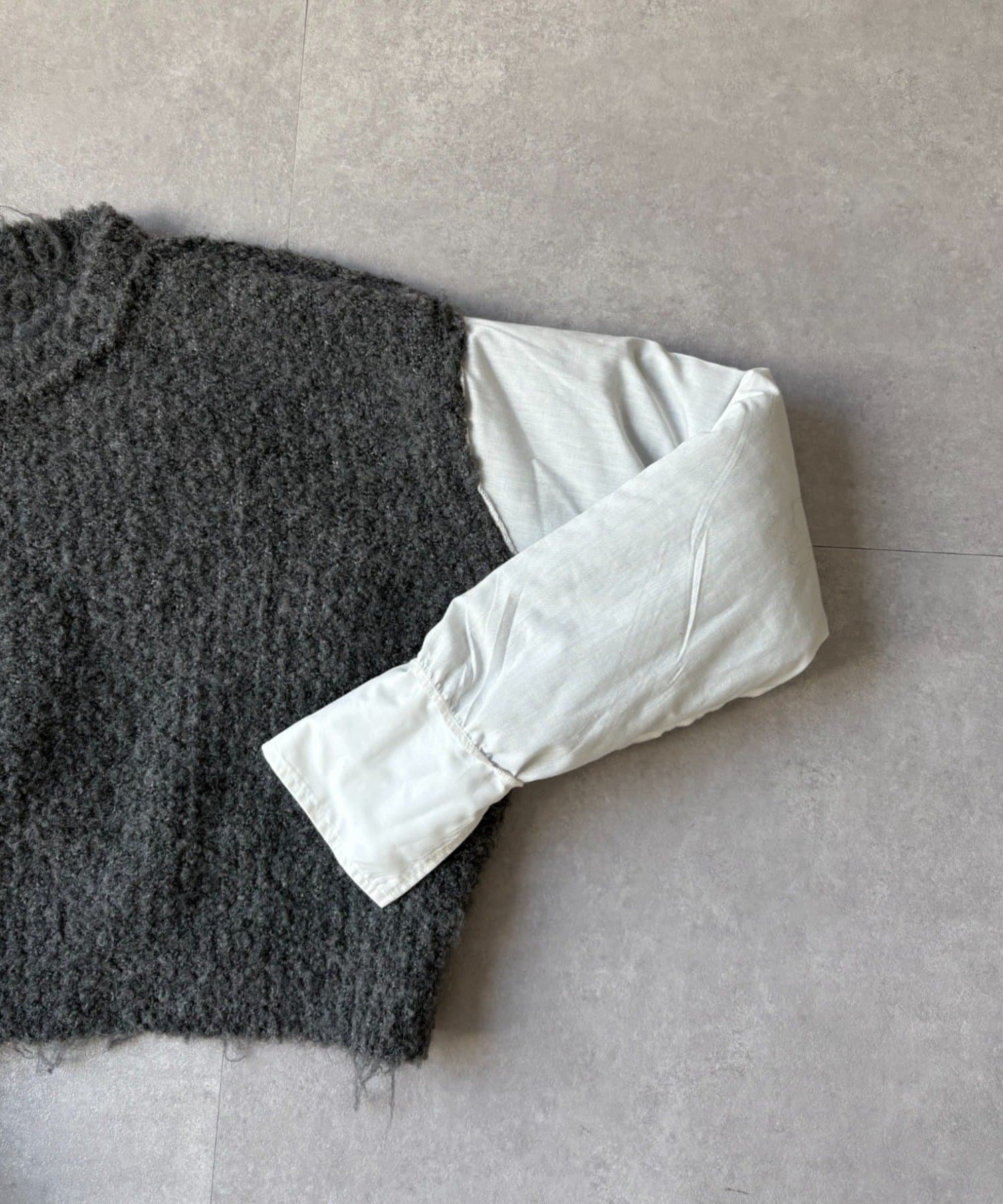 袖にはシャツ生地をドッキングし、まるで重ね着をしているかのような、こなれ感のあるスタイリングが叶います。