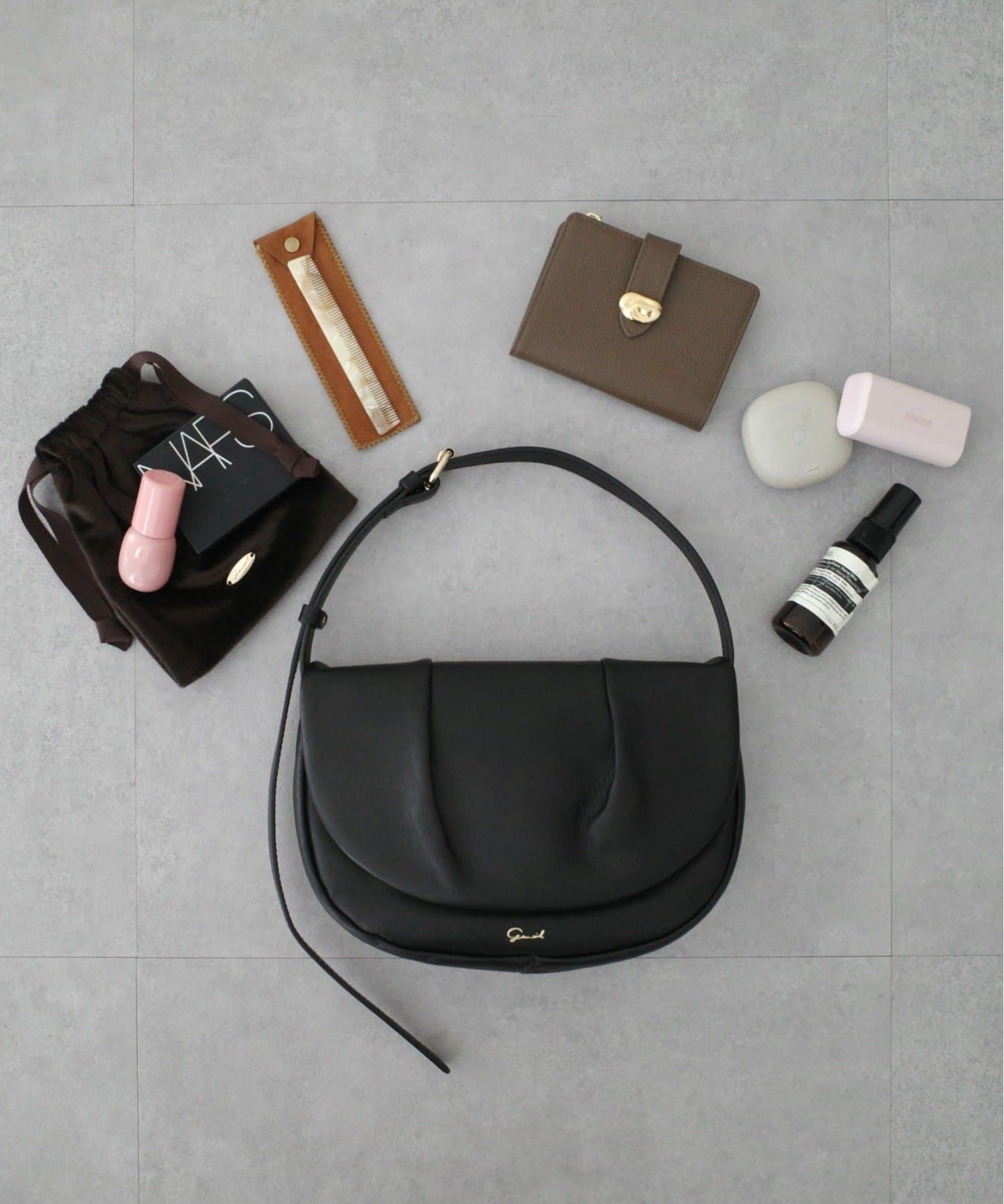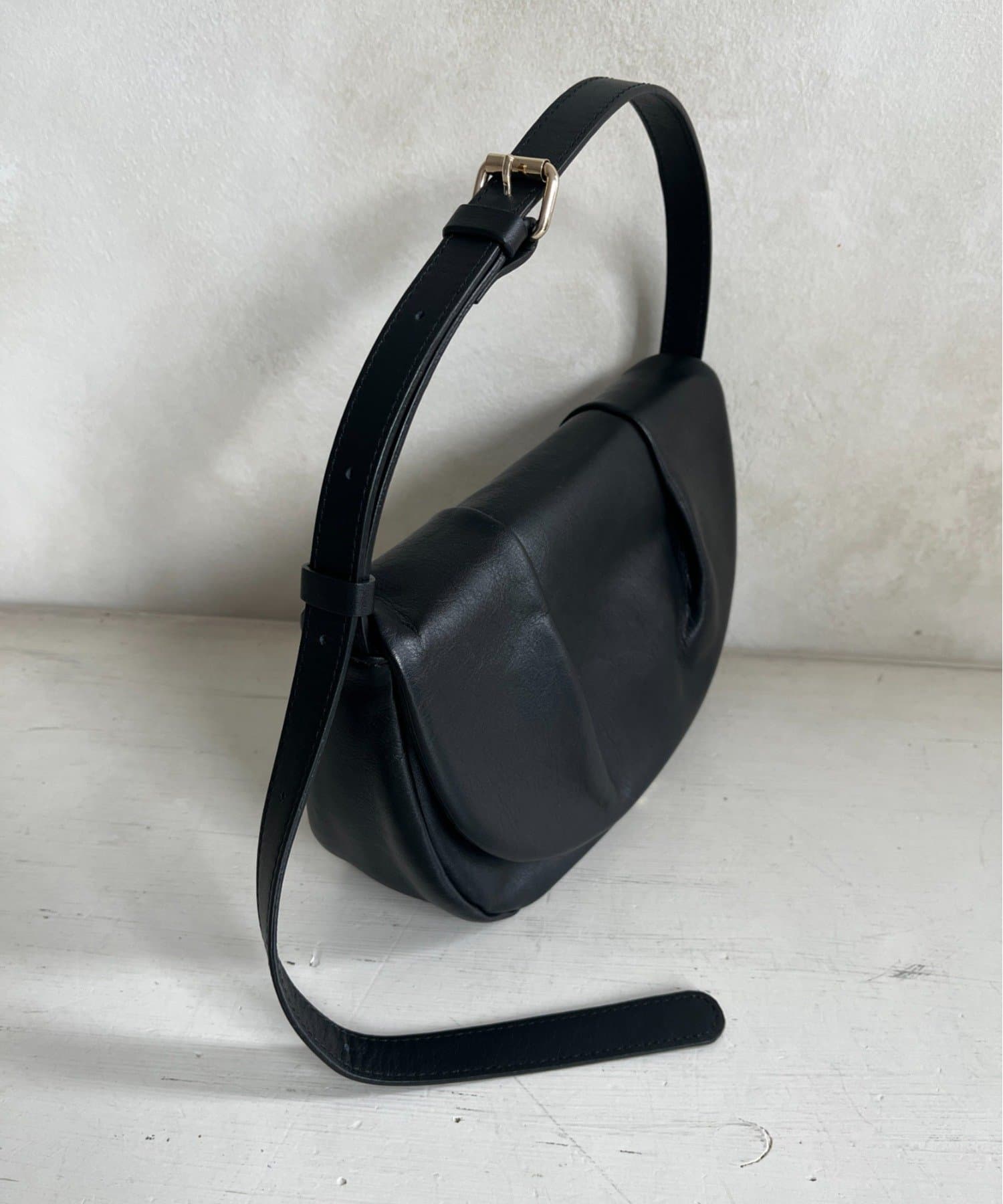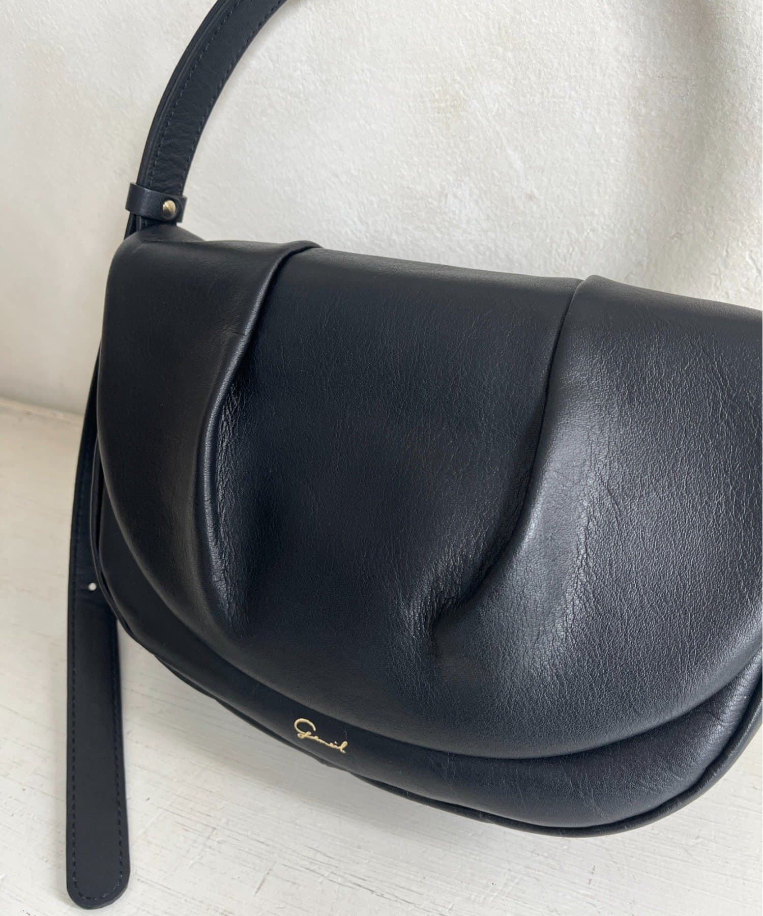 ふっくらとしたギャザーが目を惹く、半月型のワンショルダーバッグ