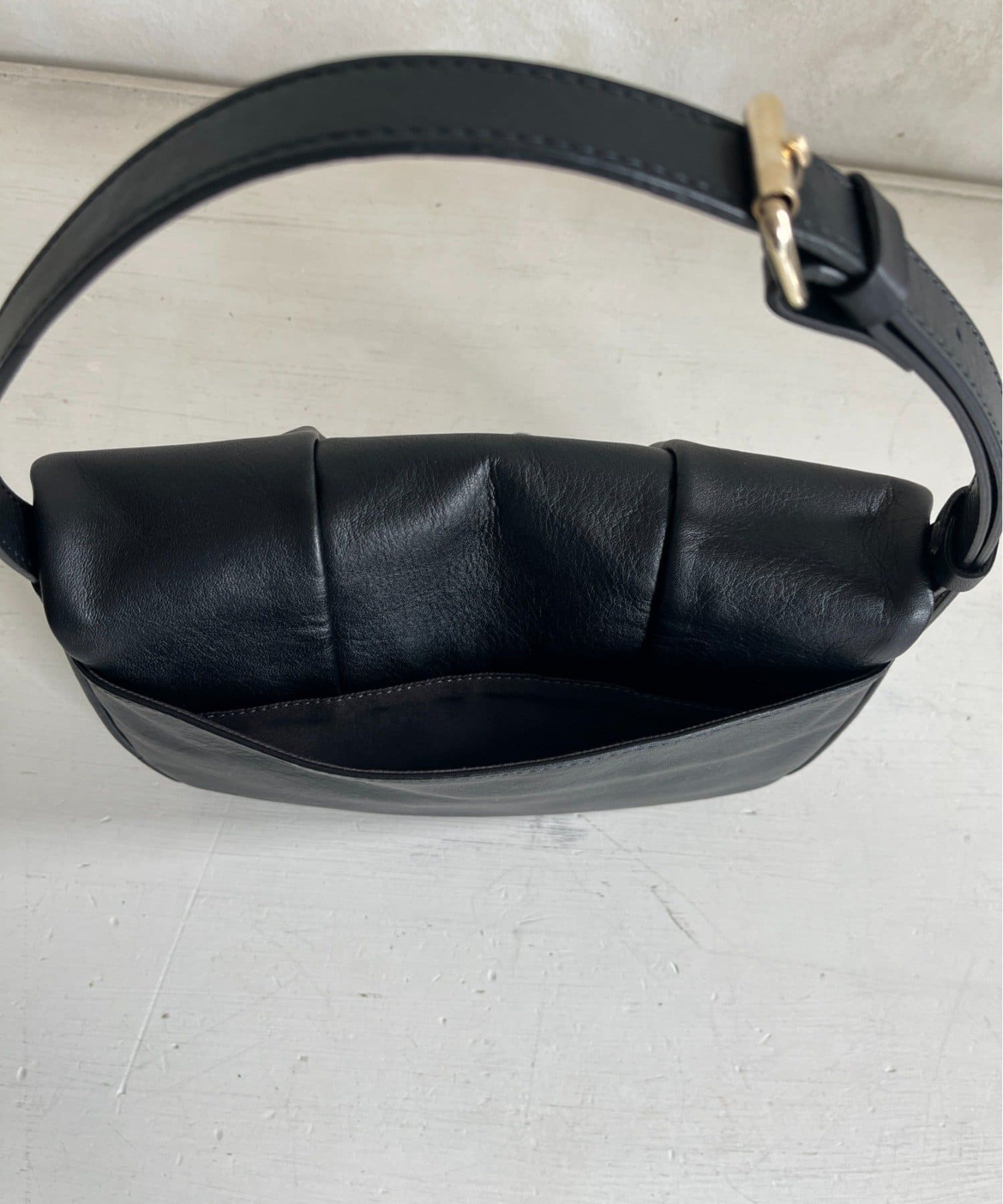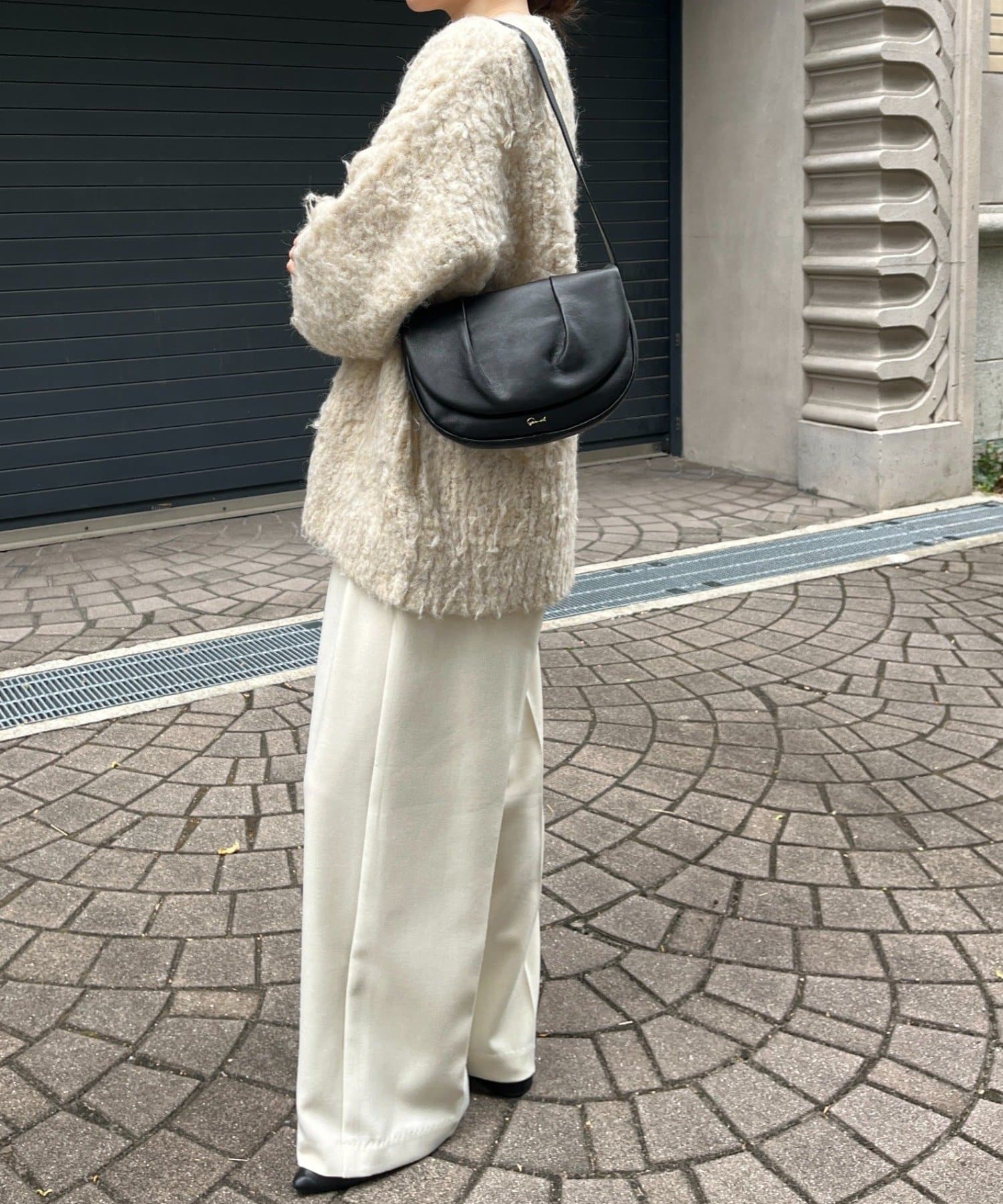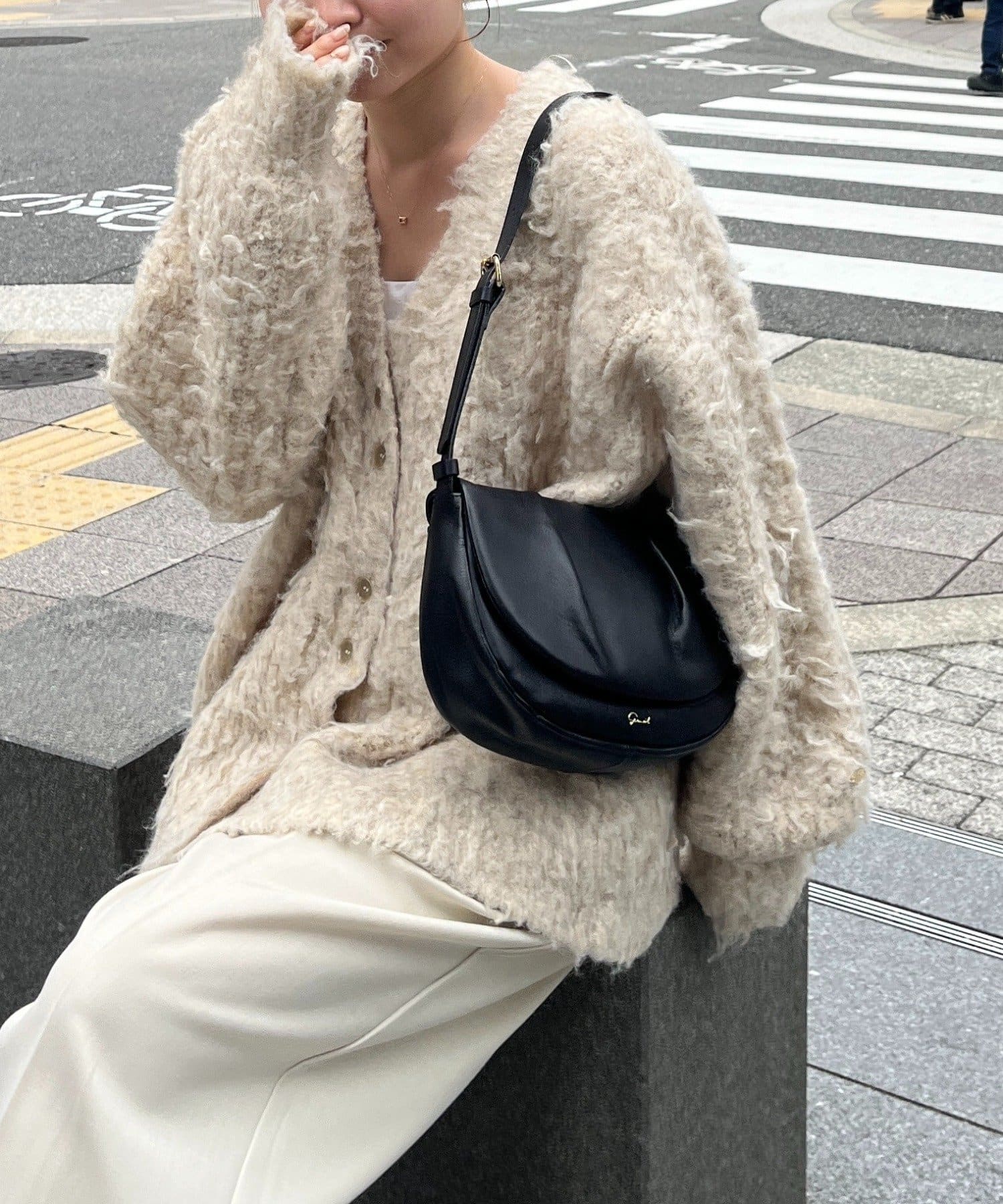 ふっくらとしたギャザーが目を惹く、半月型のワンショルダーバッグ