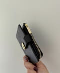開閉はスナップボタン式。コンパクトなサイズ感ながら、カードポケットは8つ。