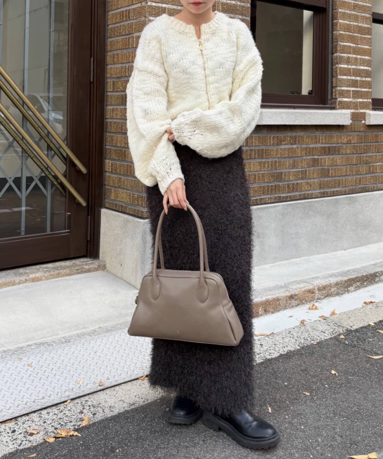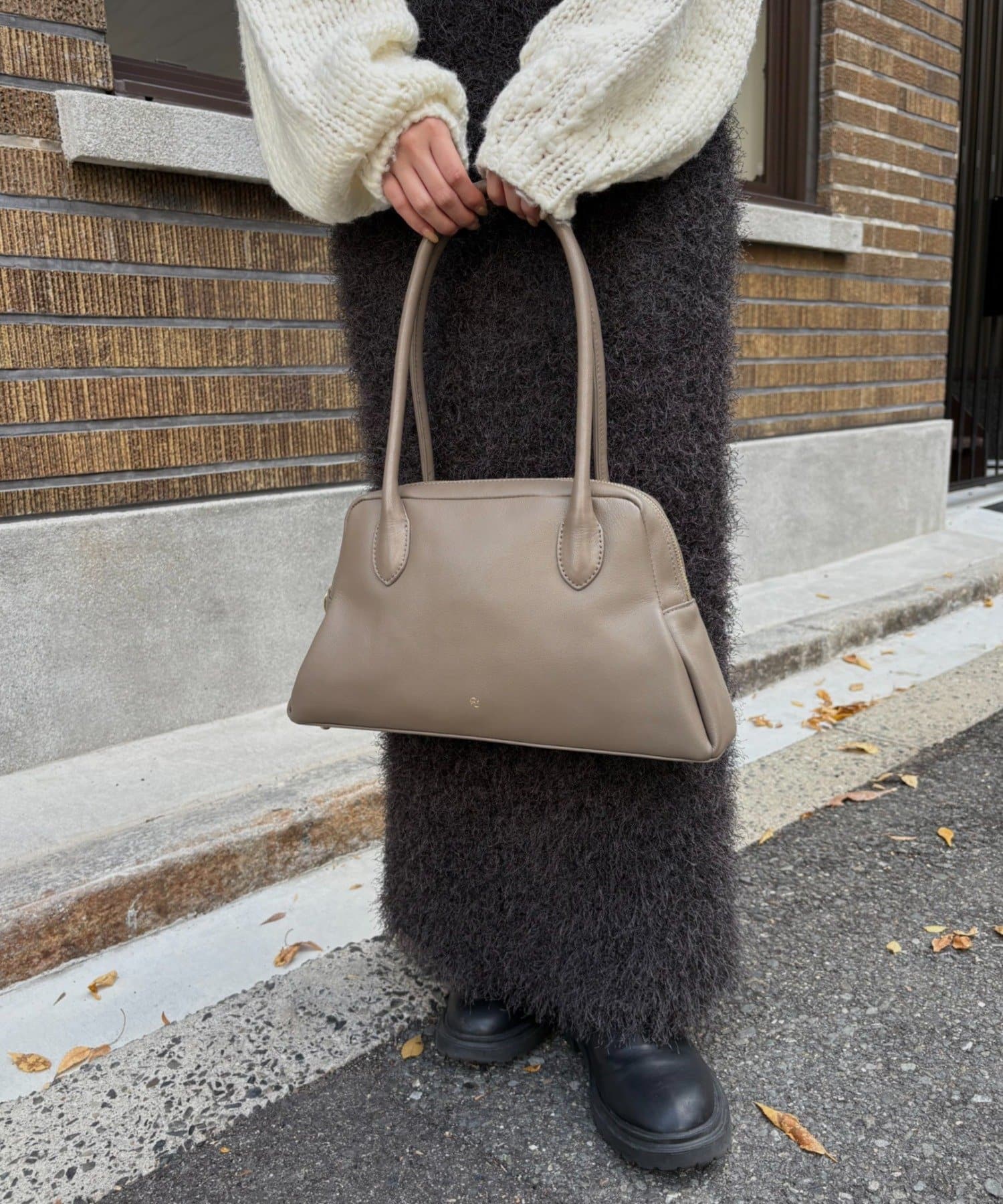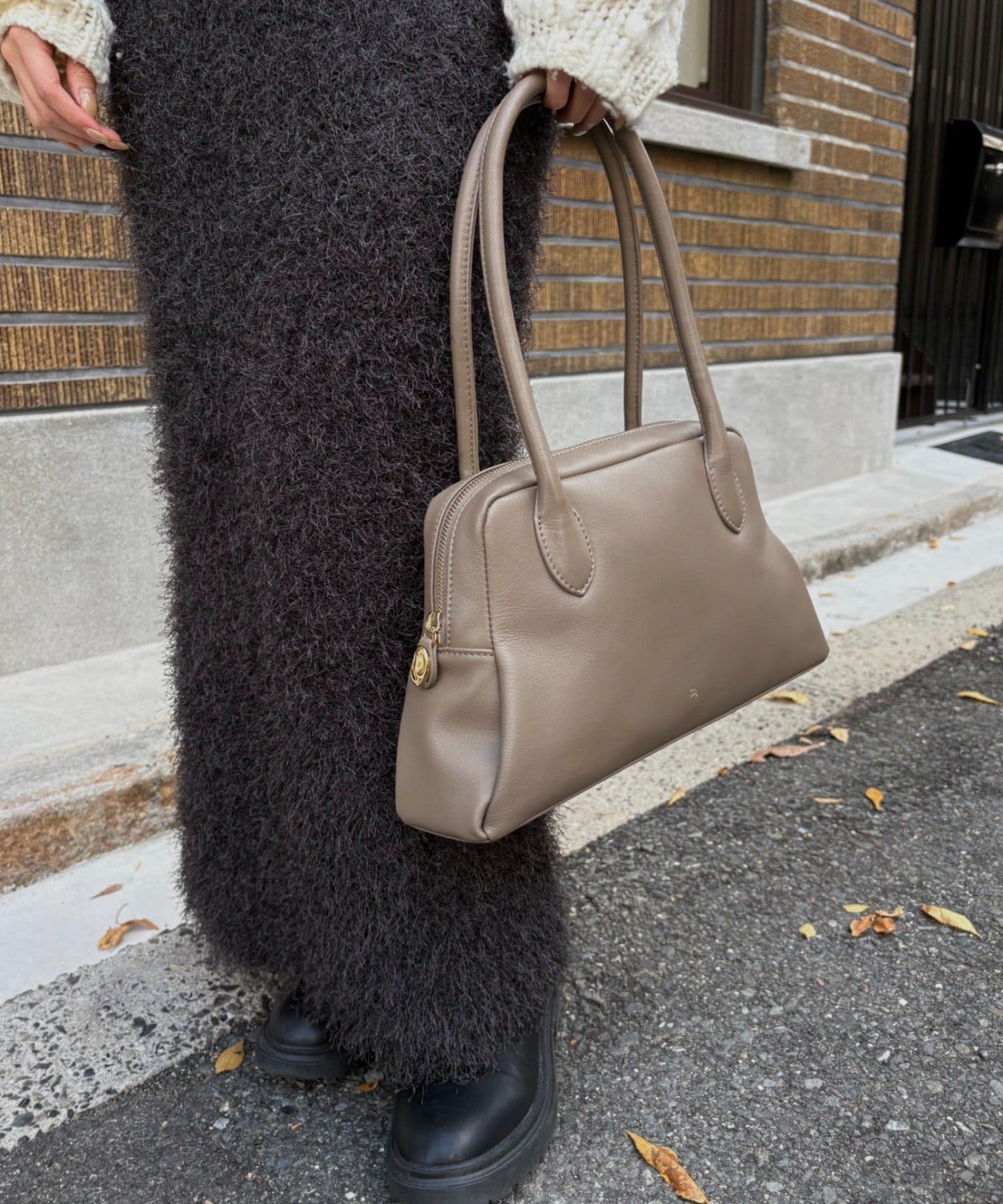 長めのハンドルは、アウターの上からでも肩掛けしやすく、機能性も抜群です。