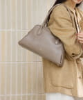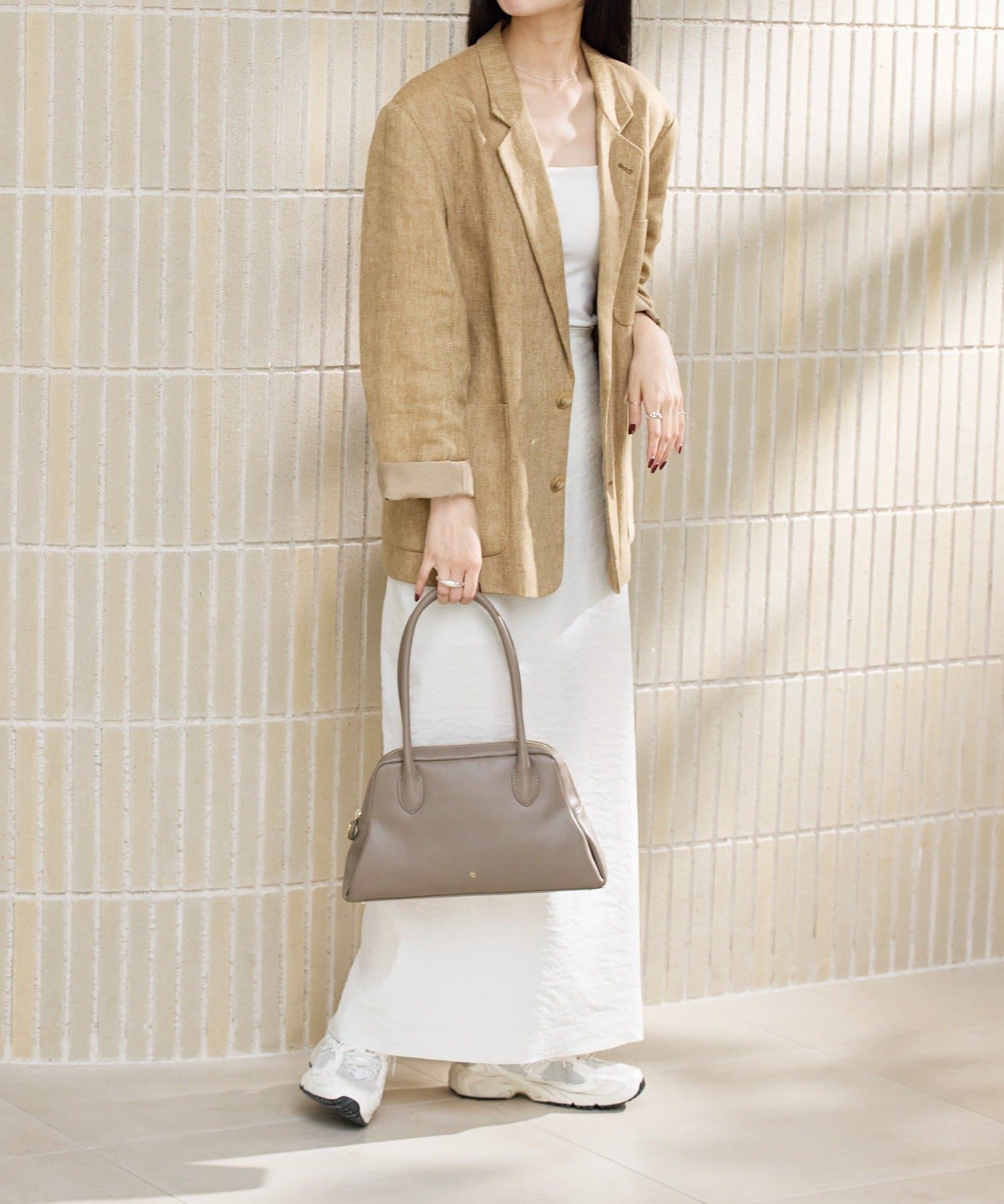 長めのハンドルは、アウターの上からでも肩掛けしやすく、機能性も抜群です。