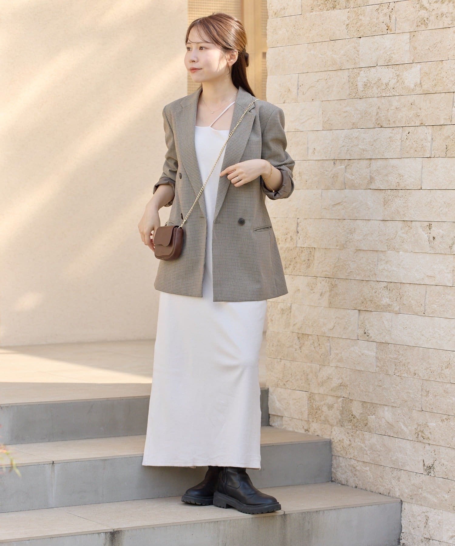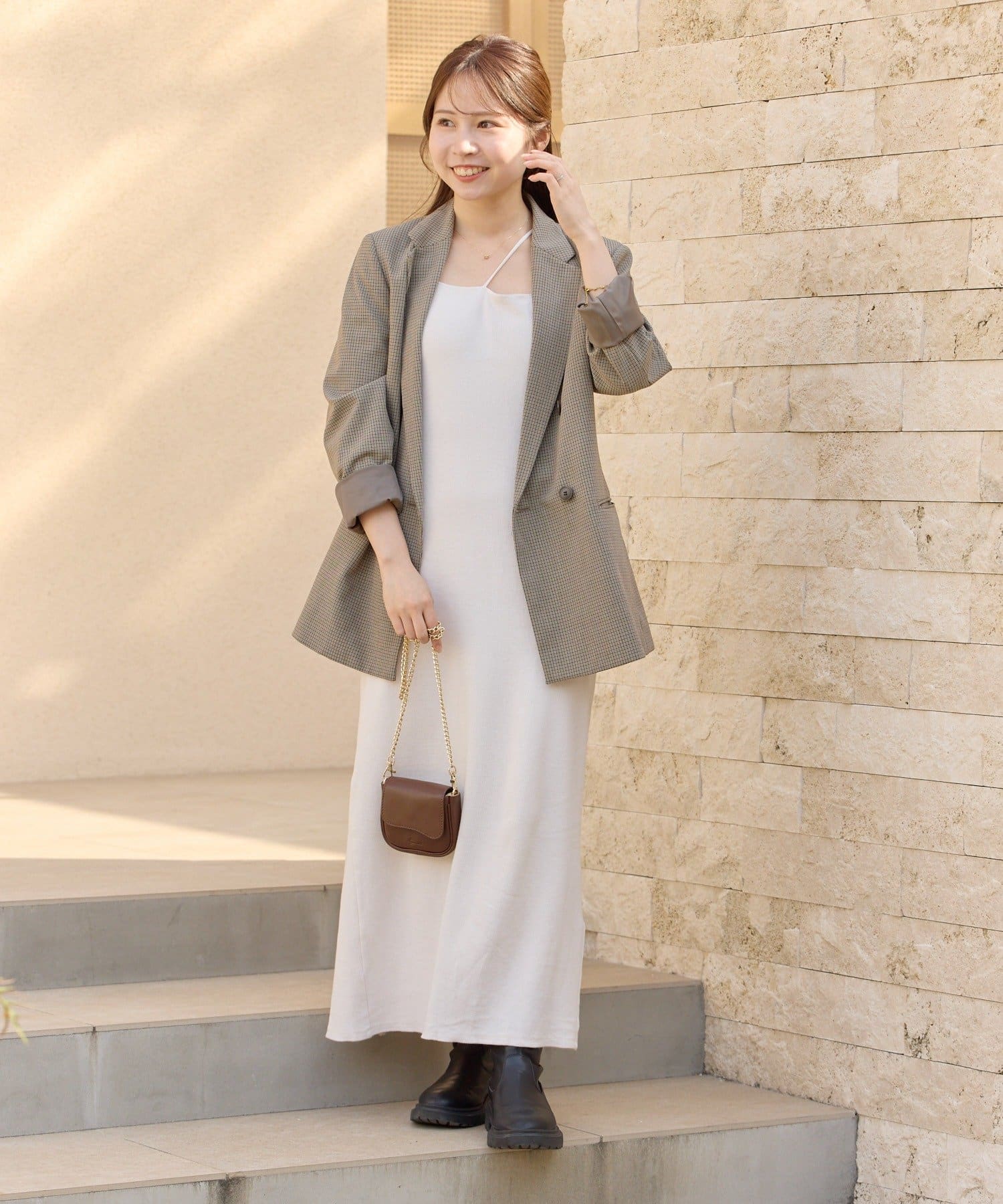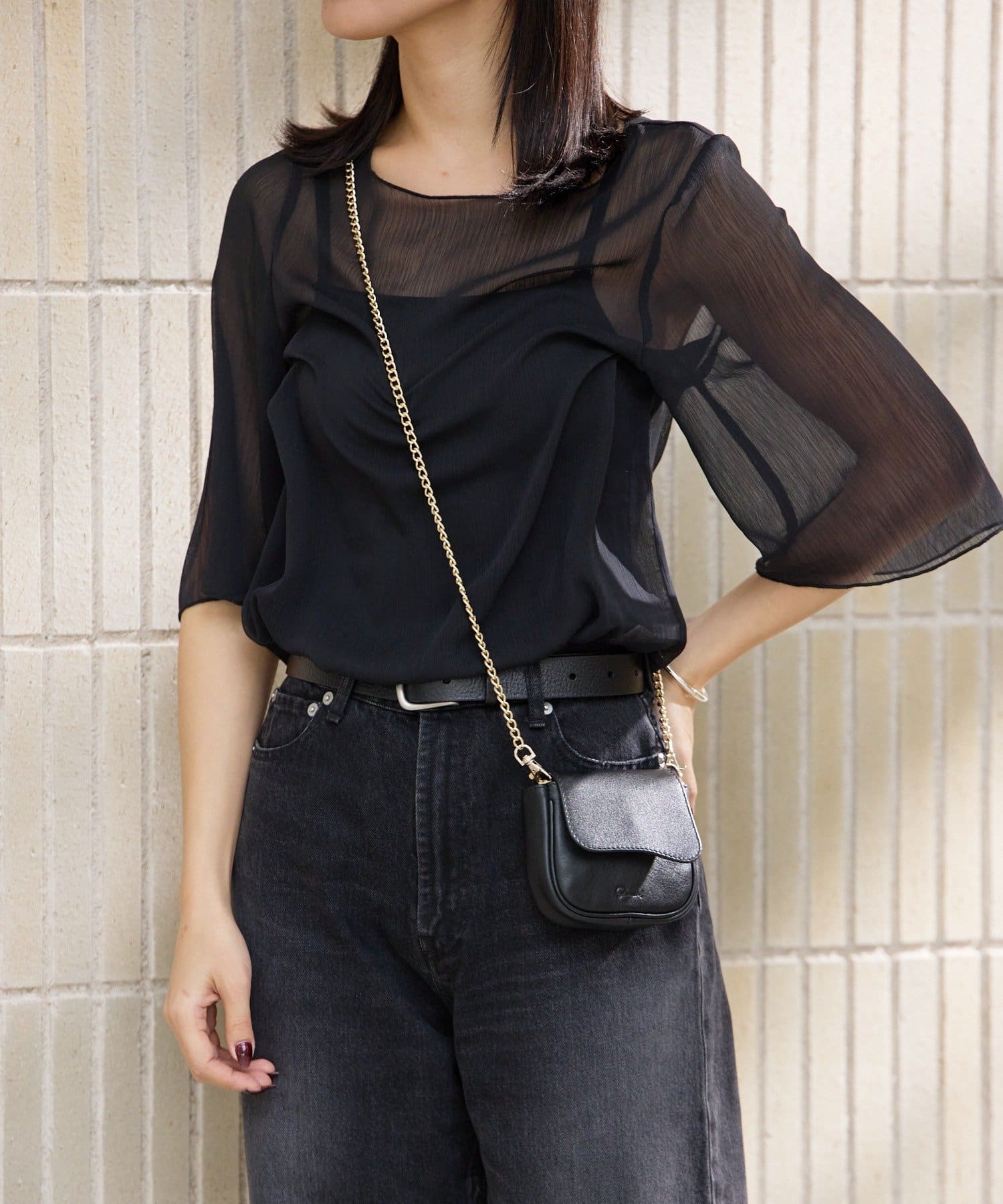 華奢なゴールドチェーンが、アクセサリーのような上品さを演出。いつものコーディネートにプラスするだけで、ワンランク上のスタイルが完成します