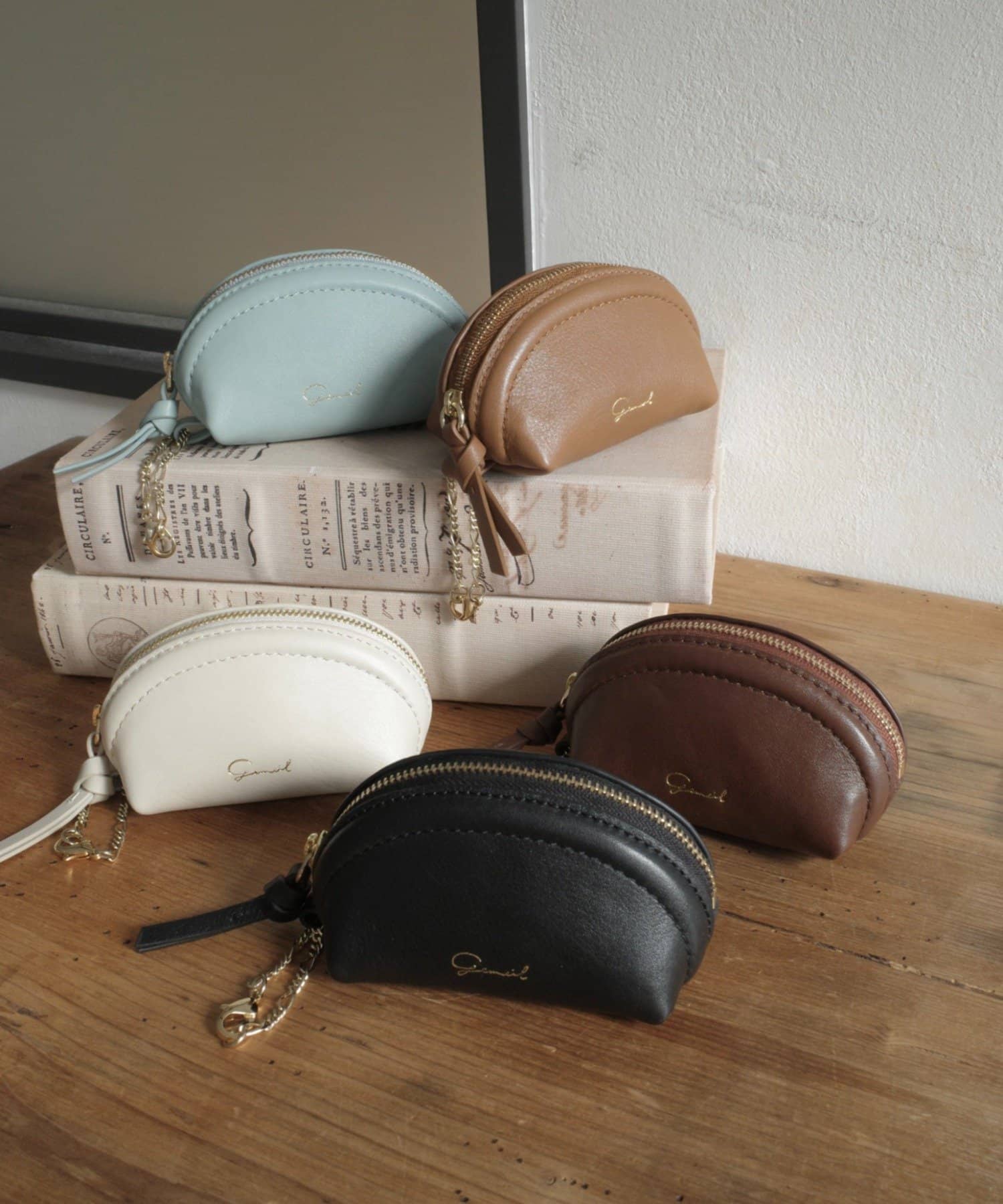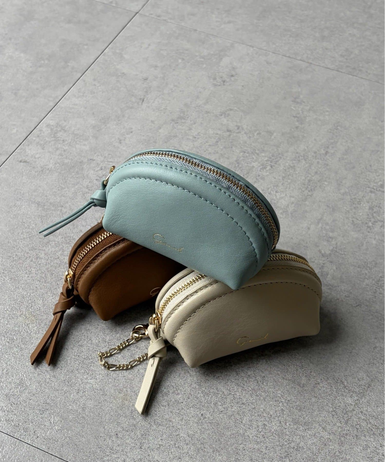 ころんとしたフォルムが愛らしい牛革ミニポーチ