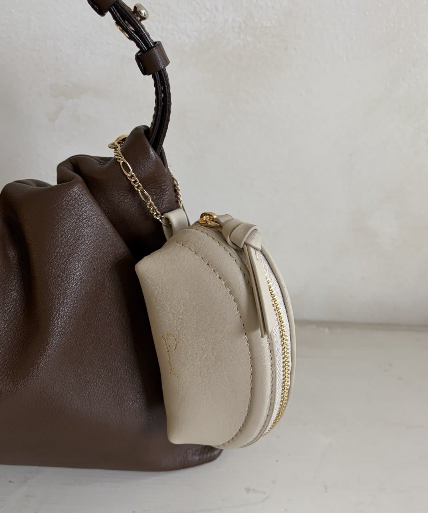 毎日使うバッグに、遊び心と実用性をプラスしてくれるレザーポーチチャーム。