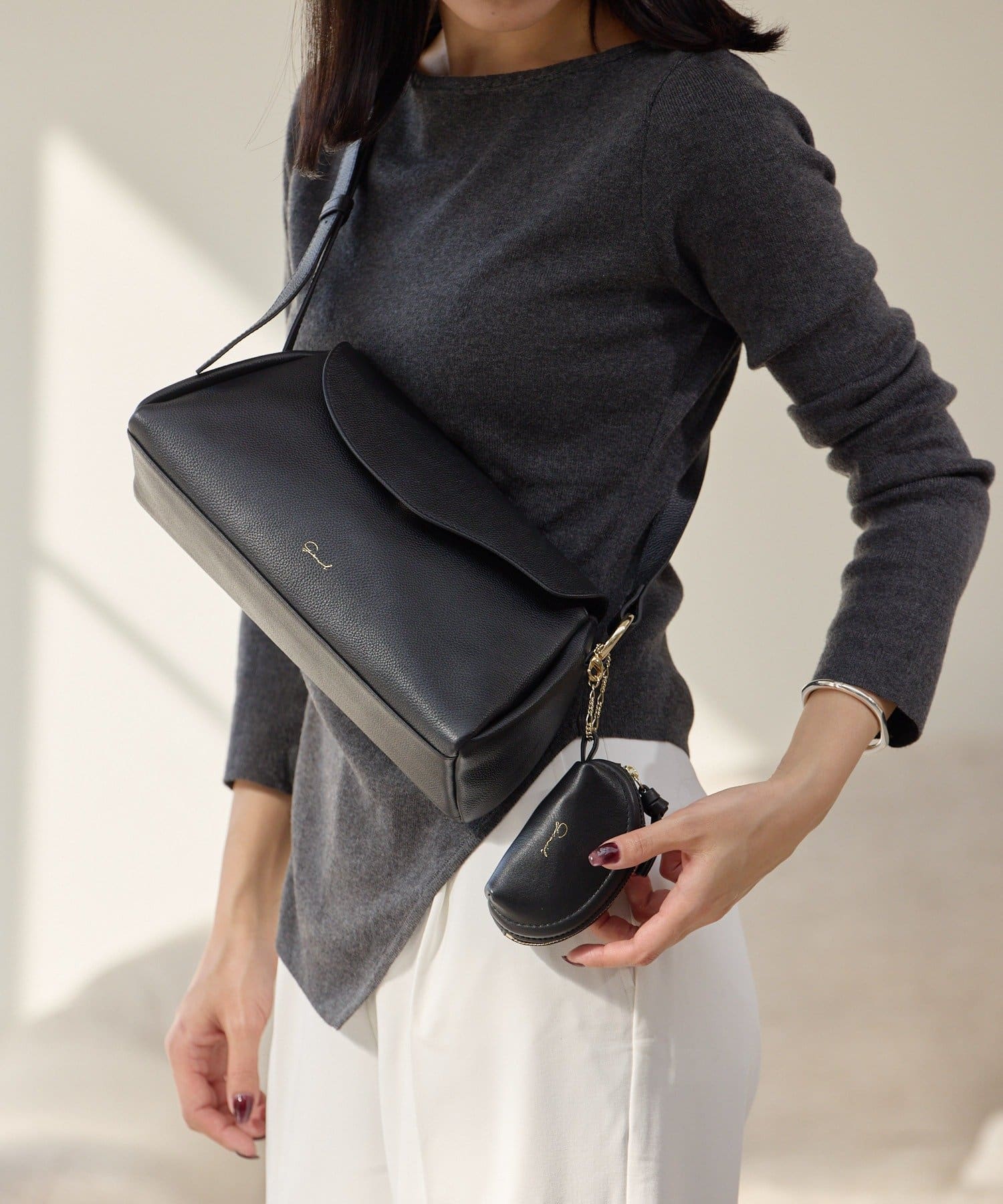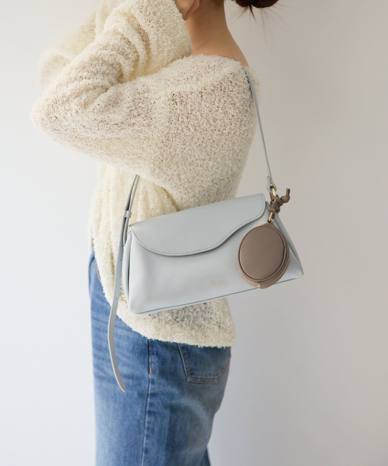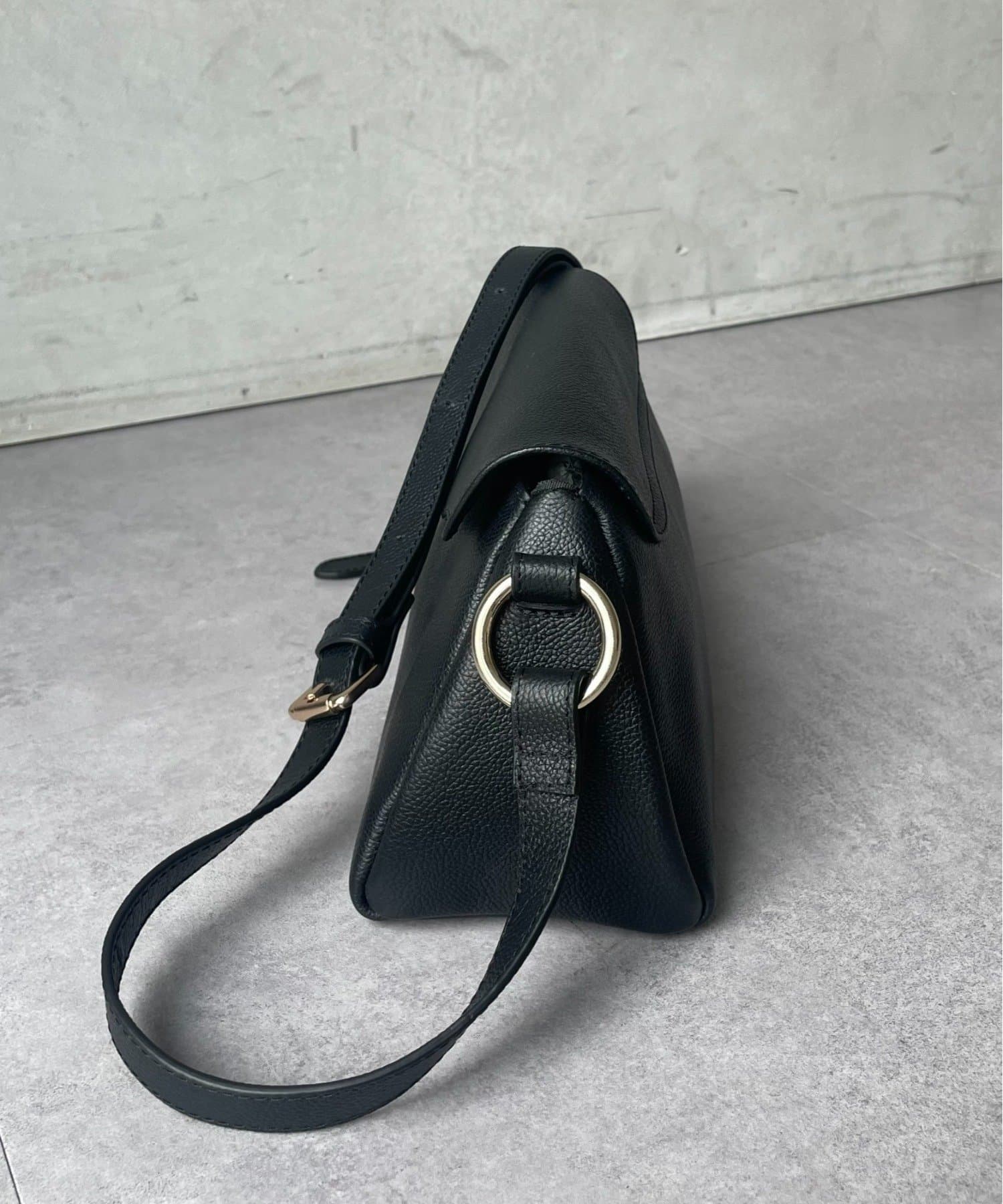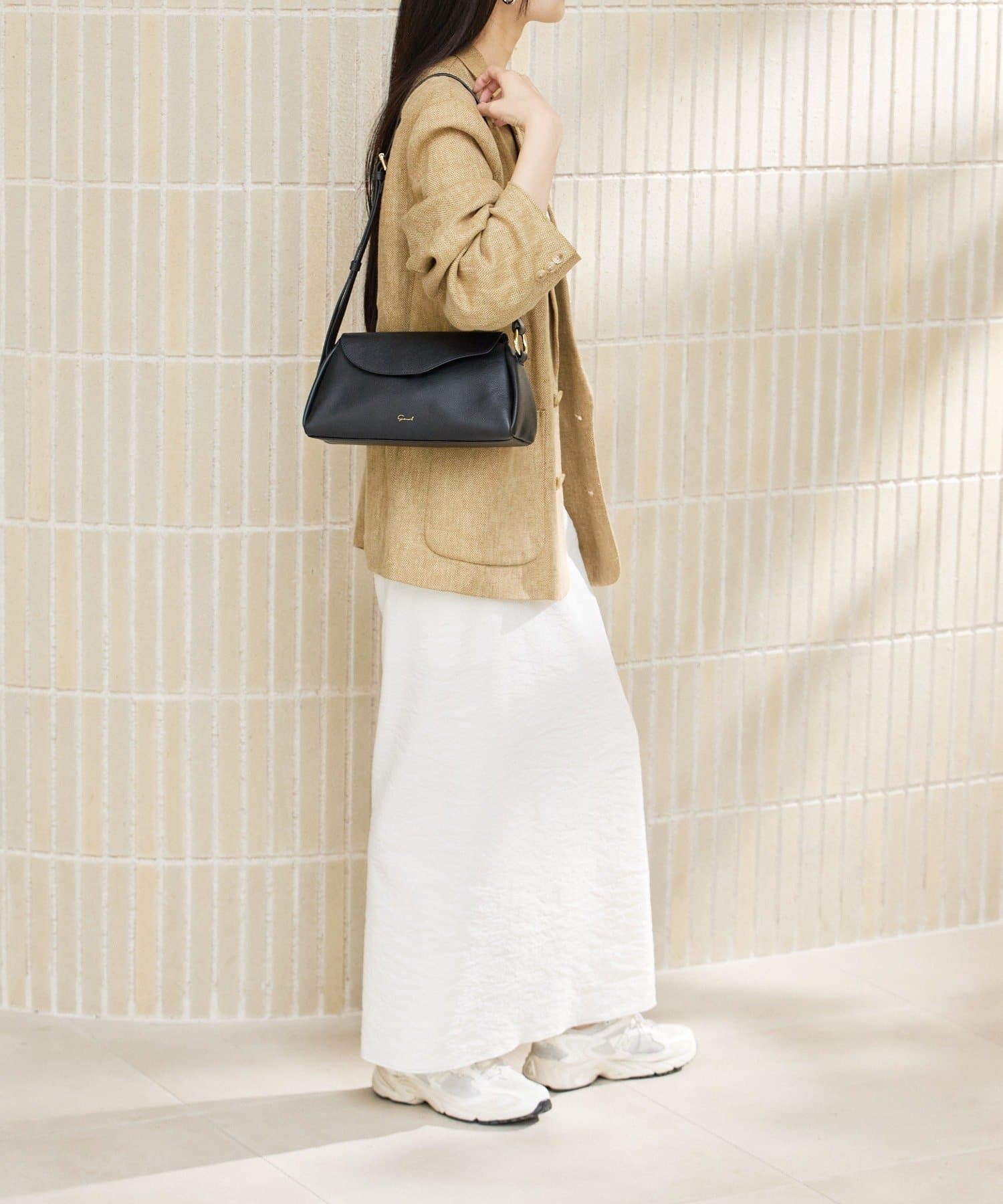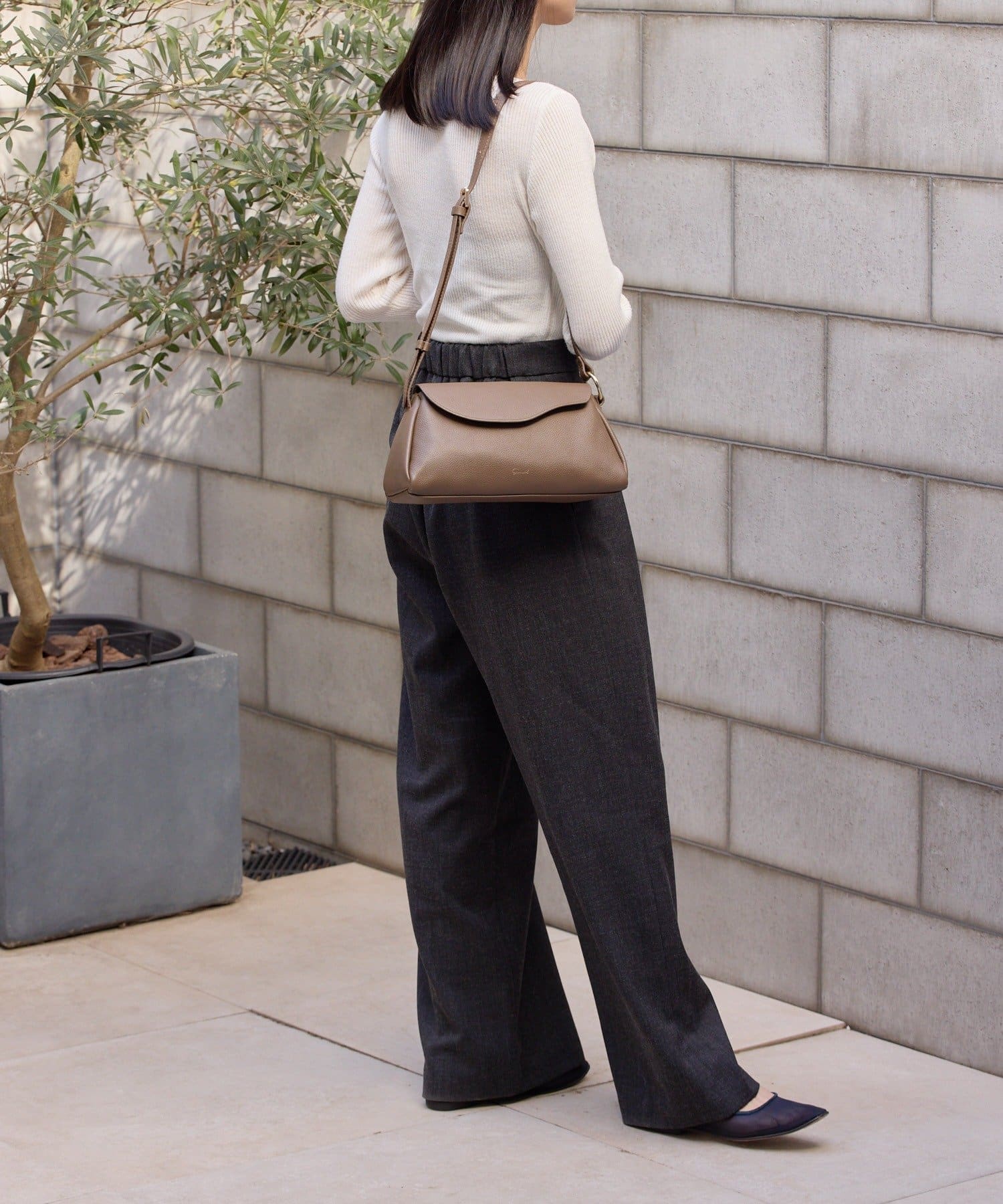 フラップ部分にあしらわれた、緩やかなウェーブが目を引くショルダーバッグ。
