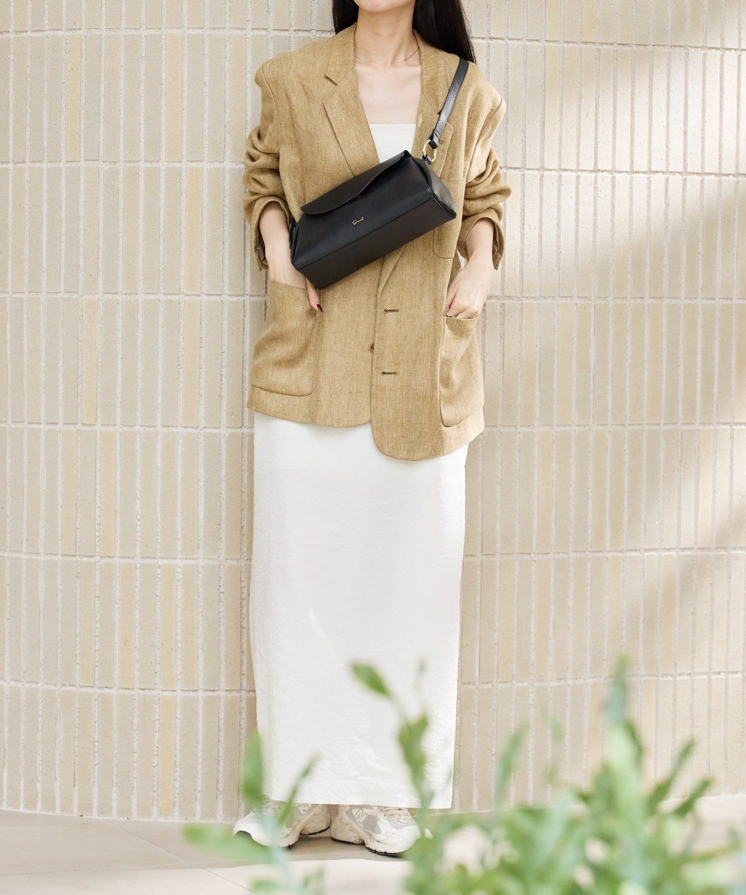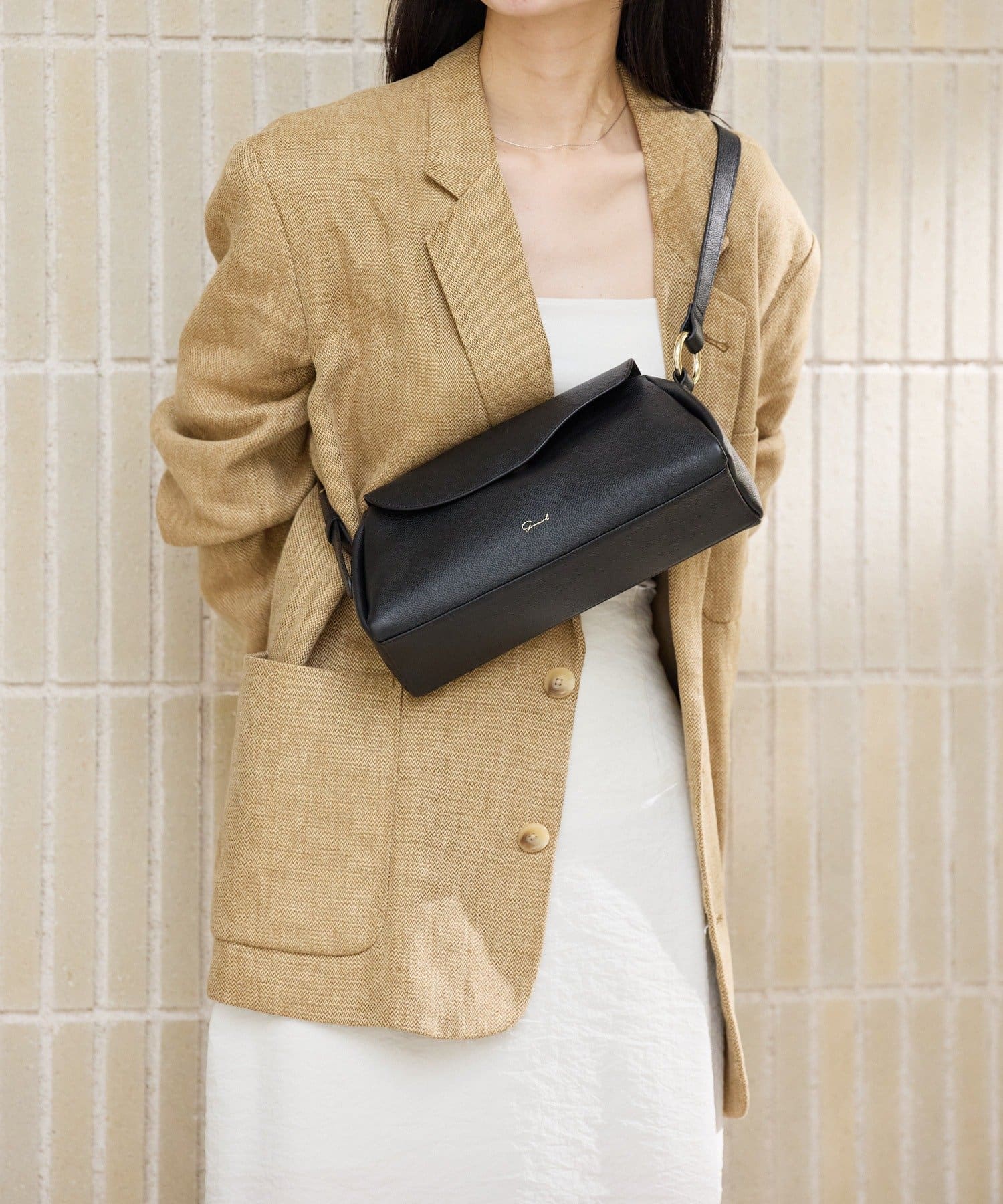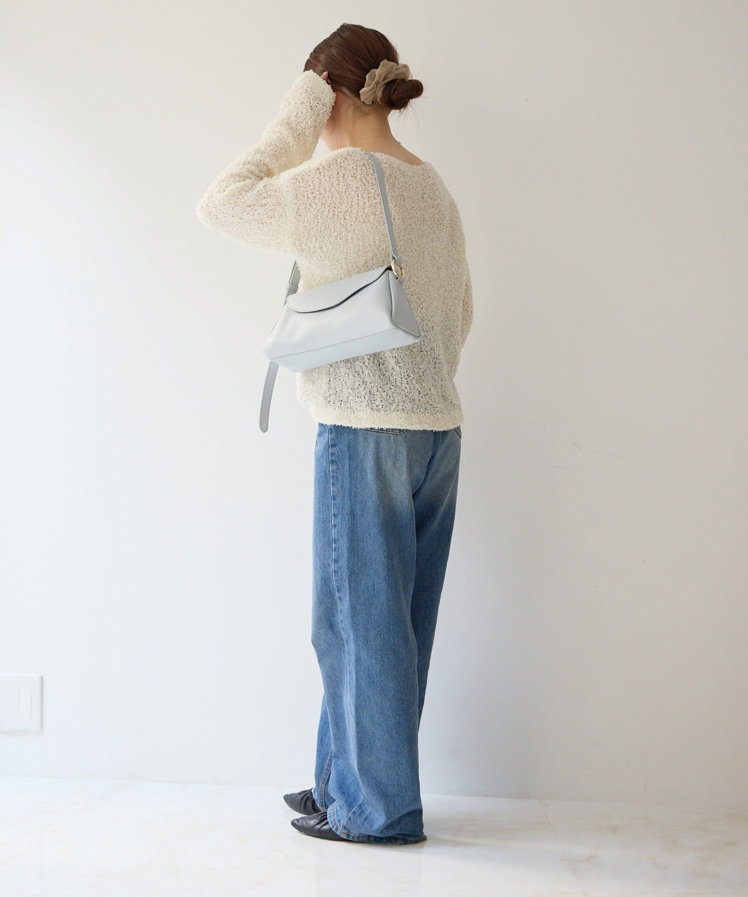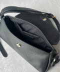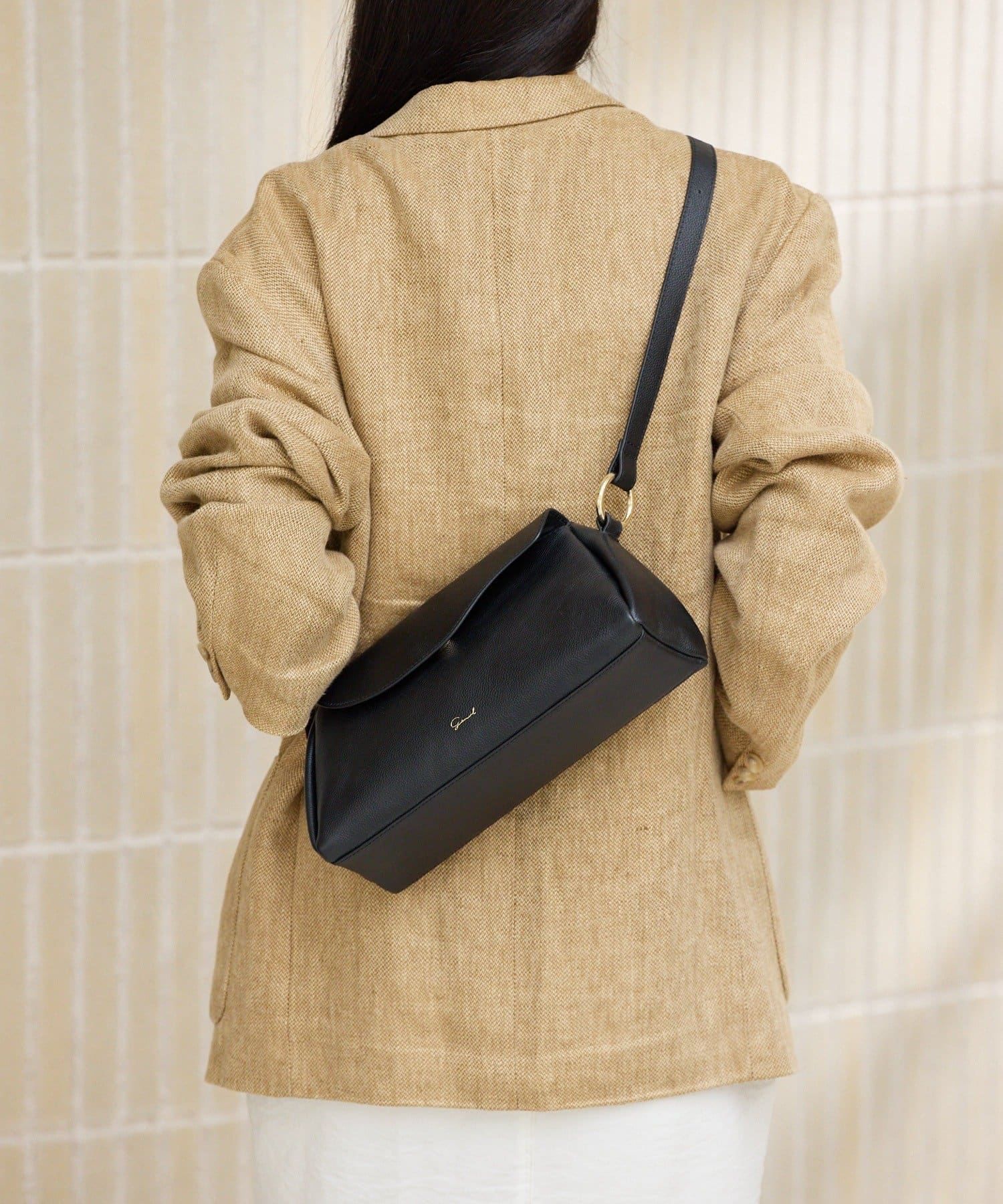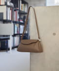 フラップ部分にあしらわれた、緩やかなウェーブが目を引くショルダーバッグ。